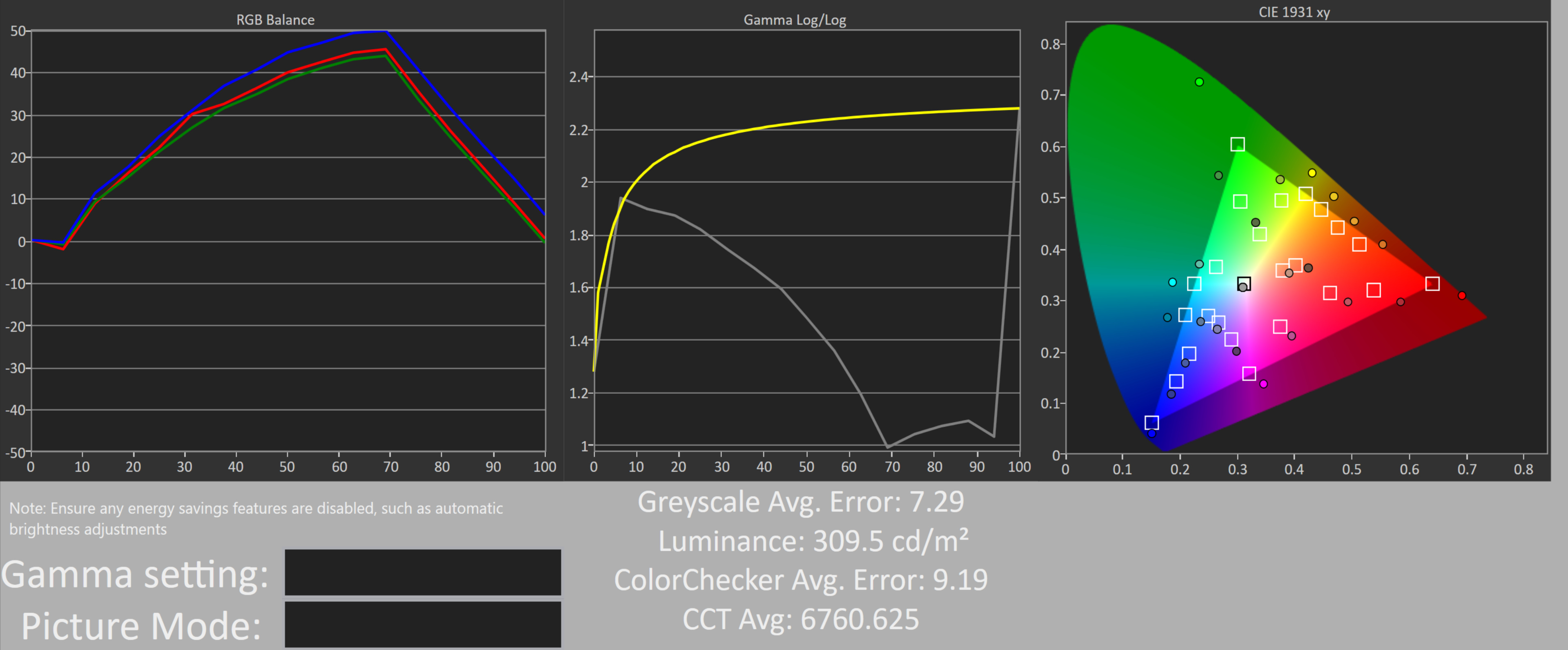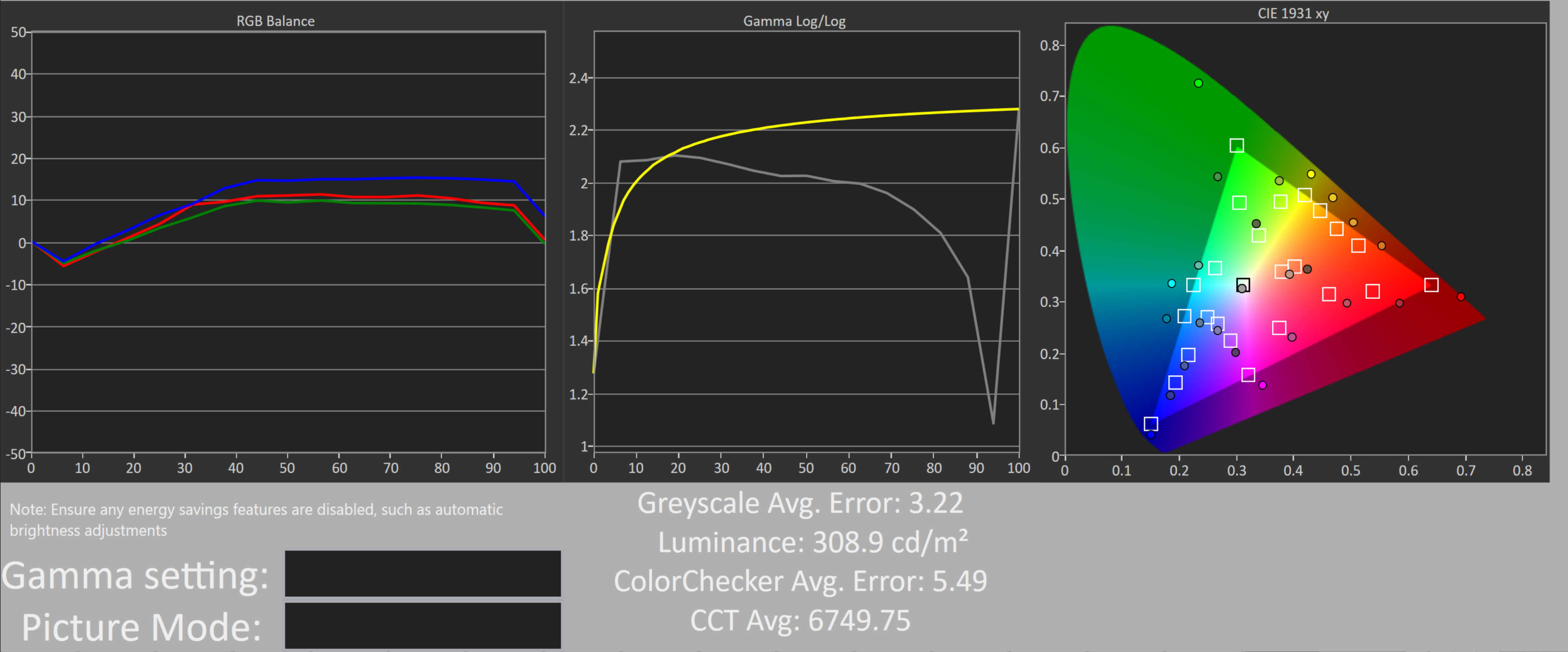 These results are with Peak Brightness off. Even though its gamma tracking is a bit off, with most content being brighter than intended, it's still more accurate than setting Peak Brightness to 'Low' or 'High.' Gamma is way too bright with these settings, as you can see below: