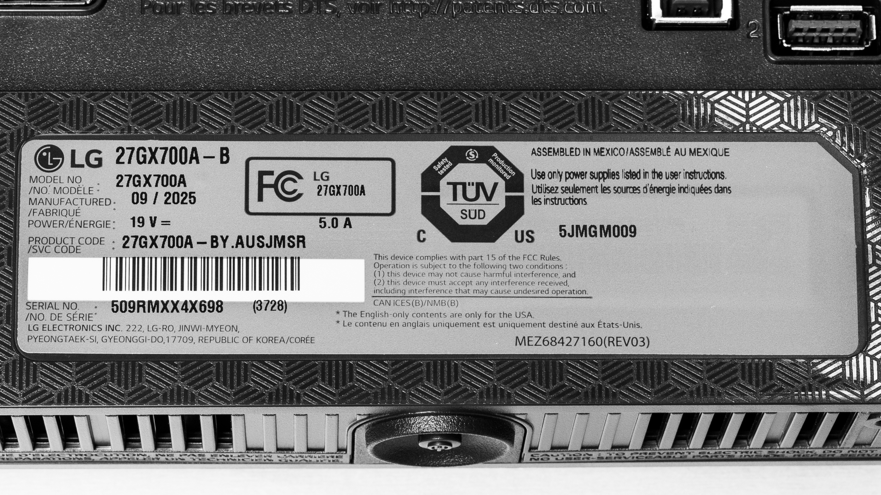 Our unit's label indicates it was manufactured in September 2025 in Mexico. We tested it with firmware version 3.02, 2.04.