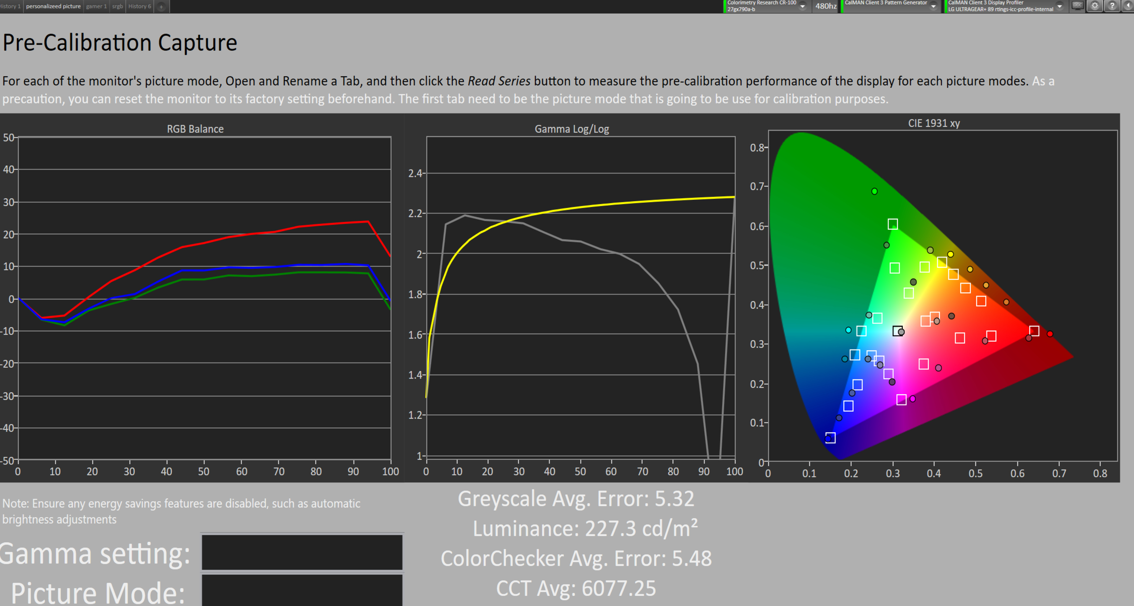 The accuracy before calibration in the 'sRGB' Game Mode is great. However, you need to have the monitor's firmware updated to version 3.04, 2.04 or newer, as the accuracy was worse before the update. It locks colors well to the sRGB color space, and has good color accuracy, but the white balance is off. It also has bad gamma tracking, with most content being too bright.