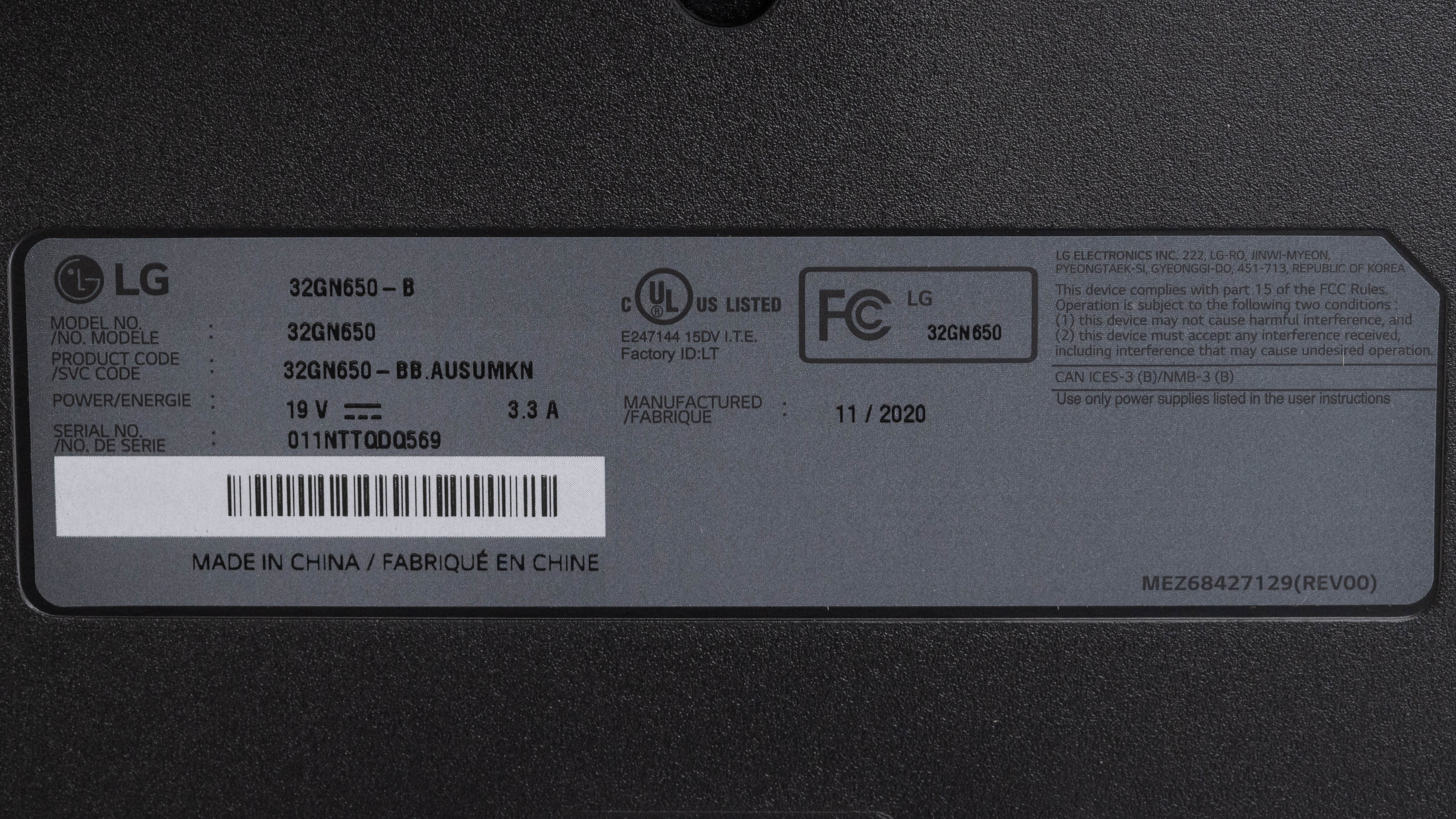 The LG UltraGear 32GN650-B we tested was manufactured in November 2020. You can see our unit's label here.
