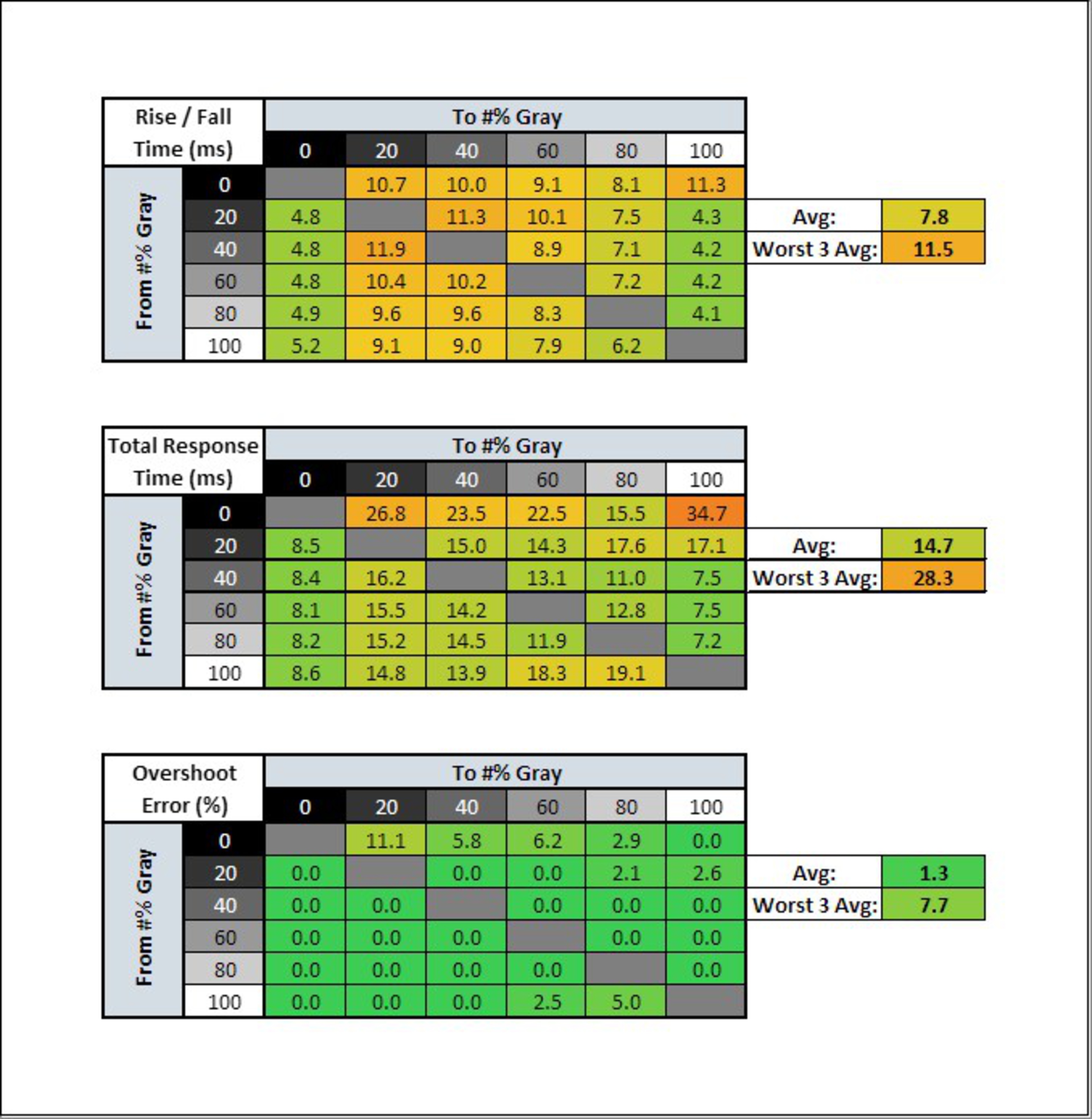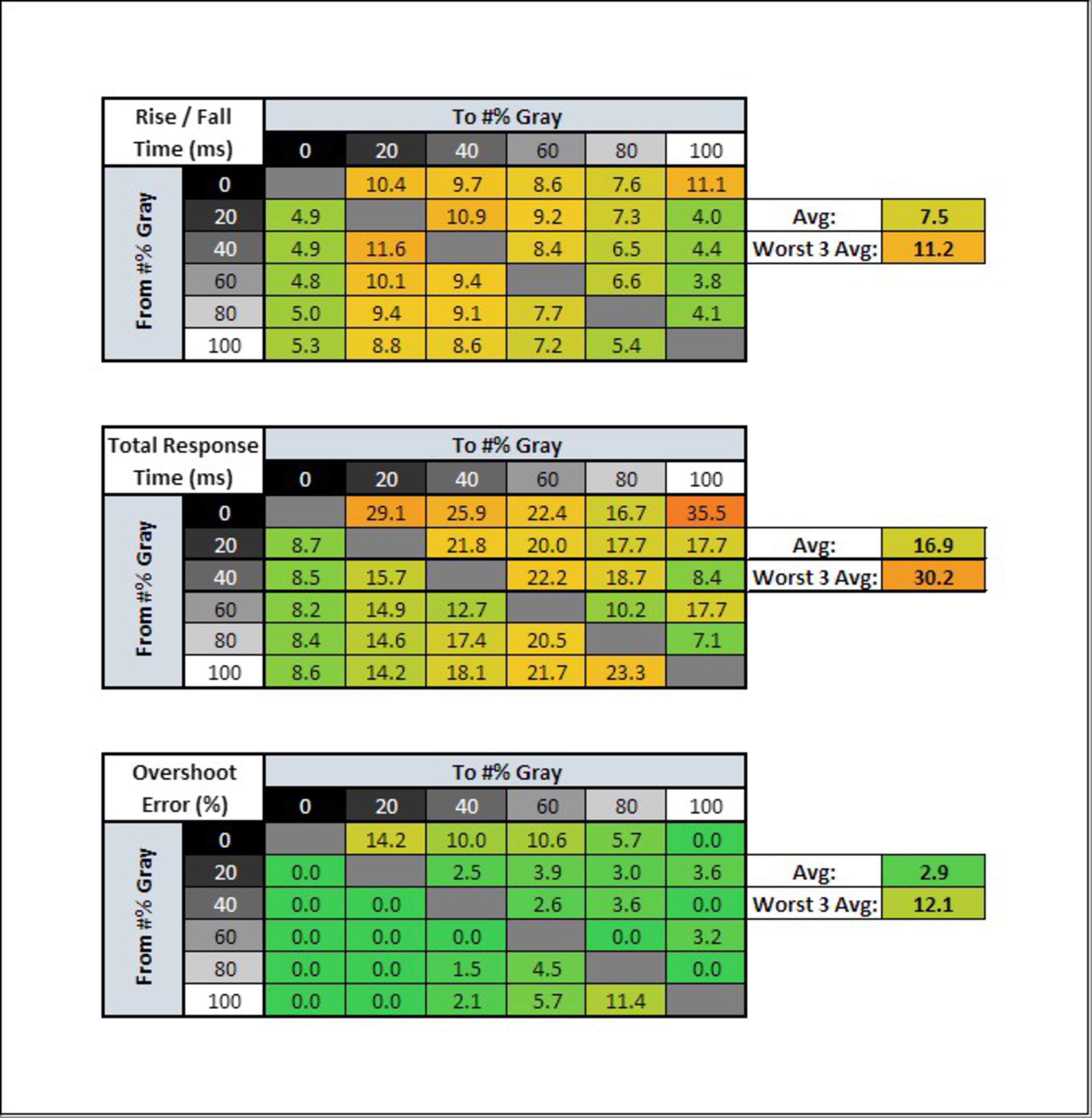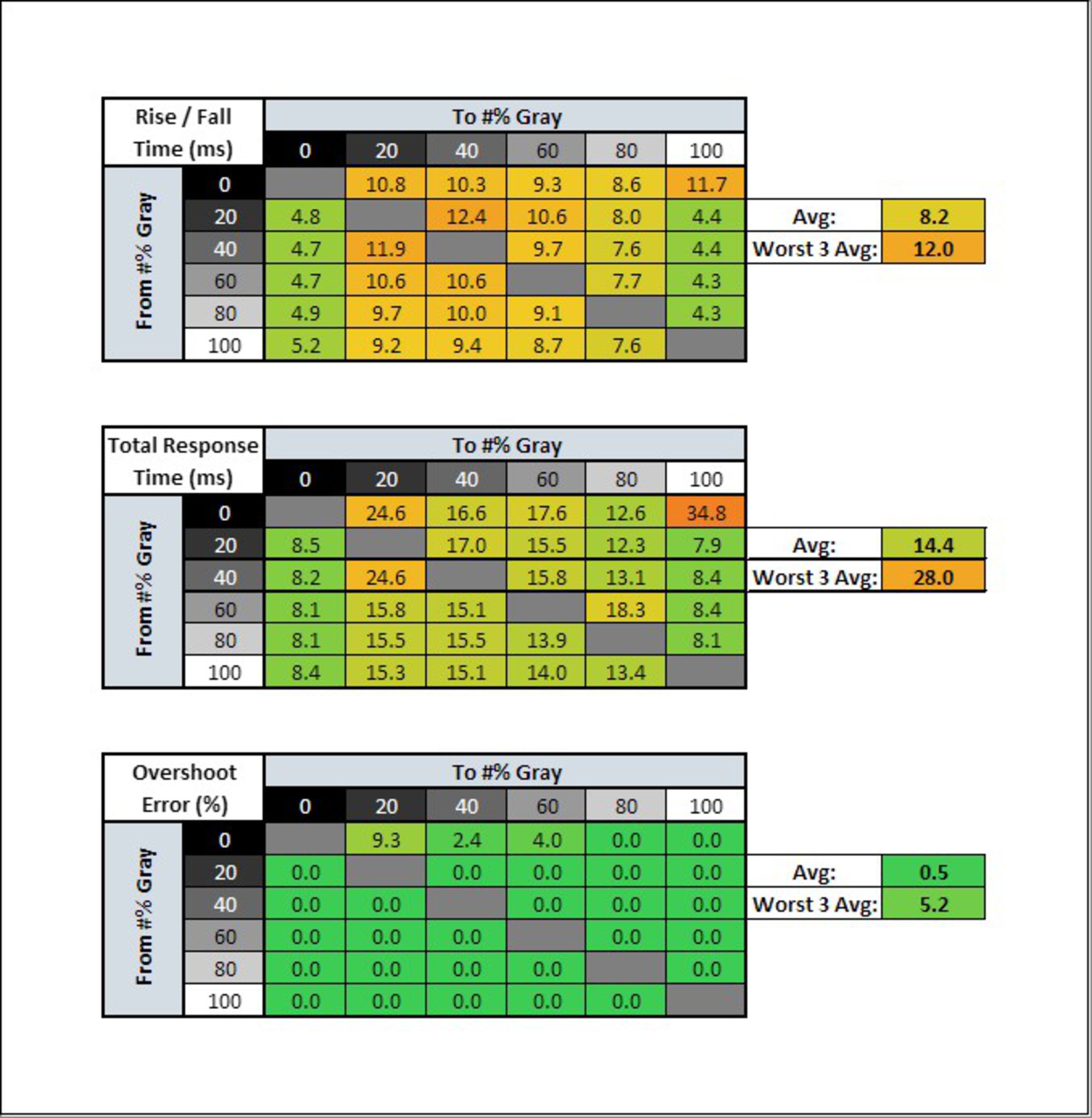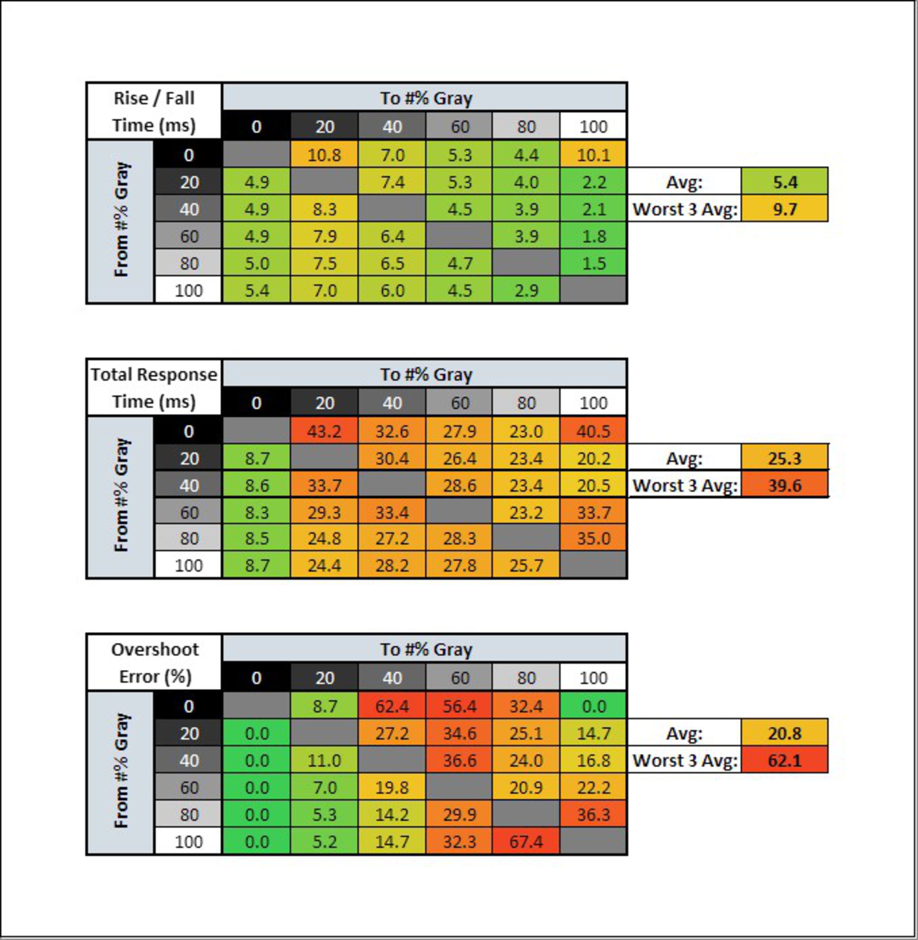 | Overdrive Setting | Response Time Chart | Response Time Tables | Motion Blur Photo |