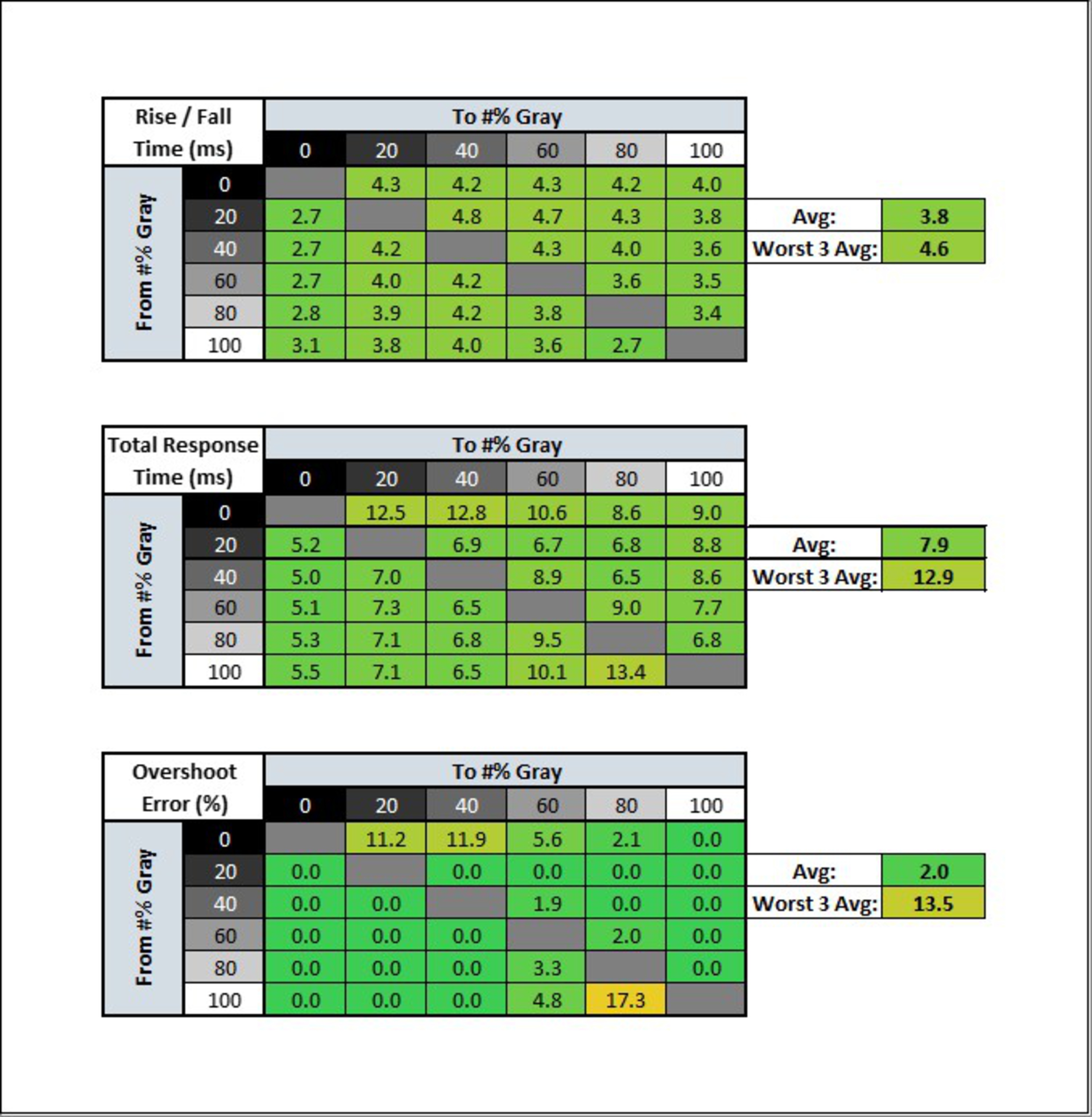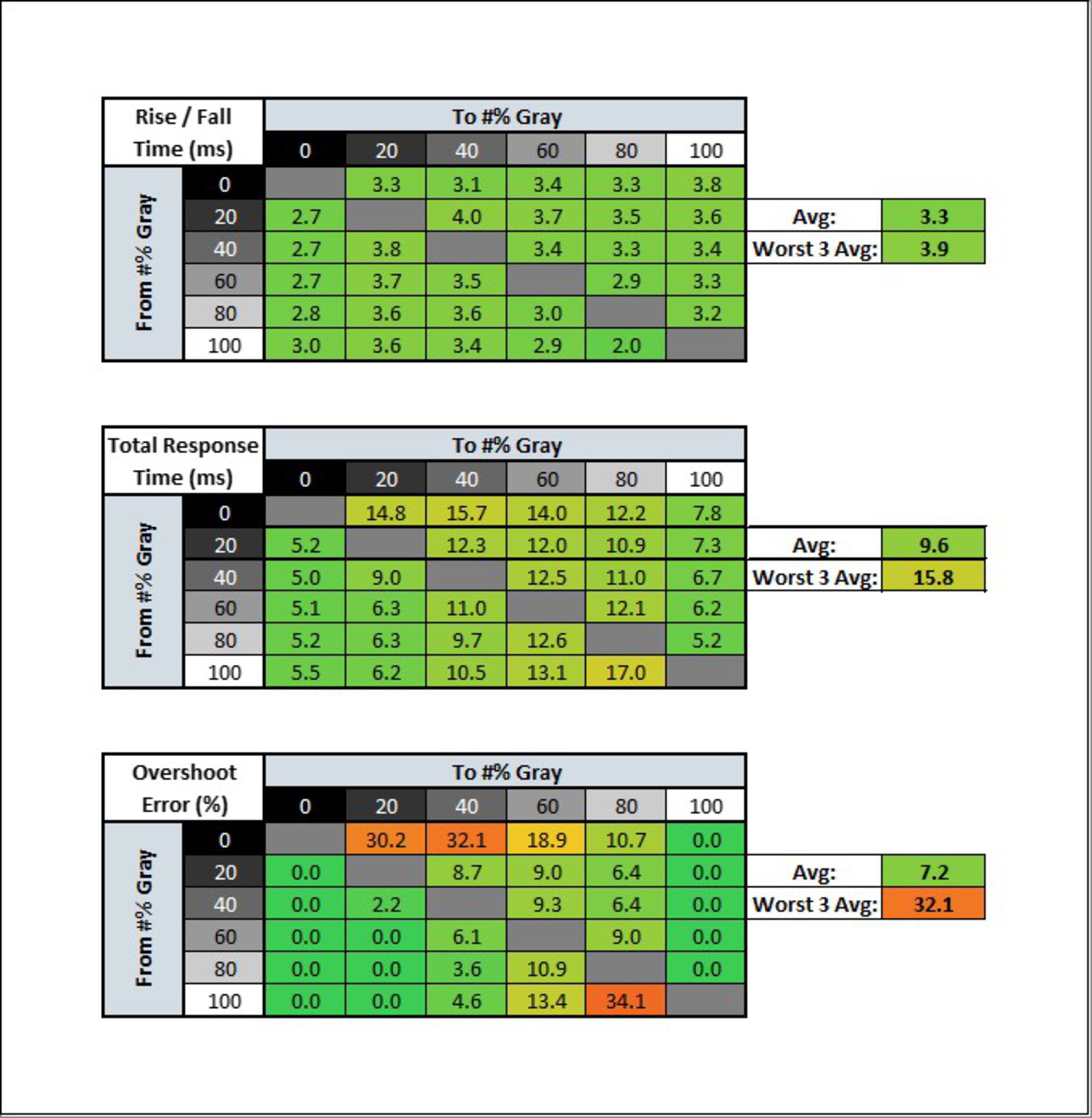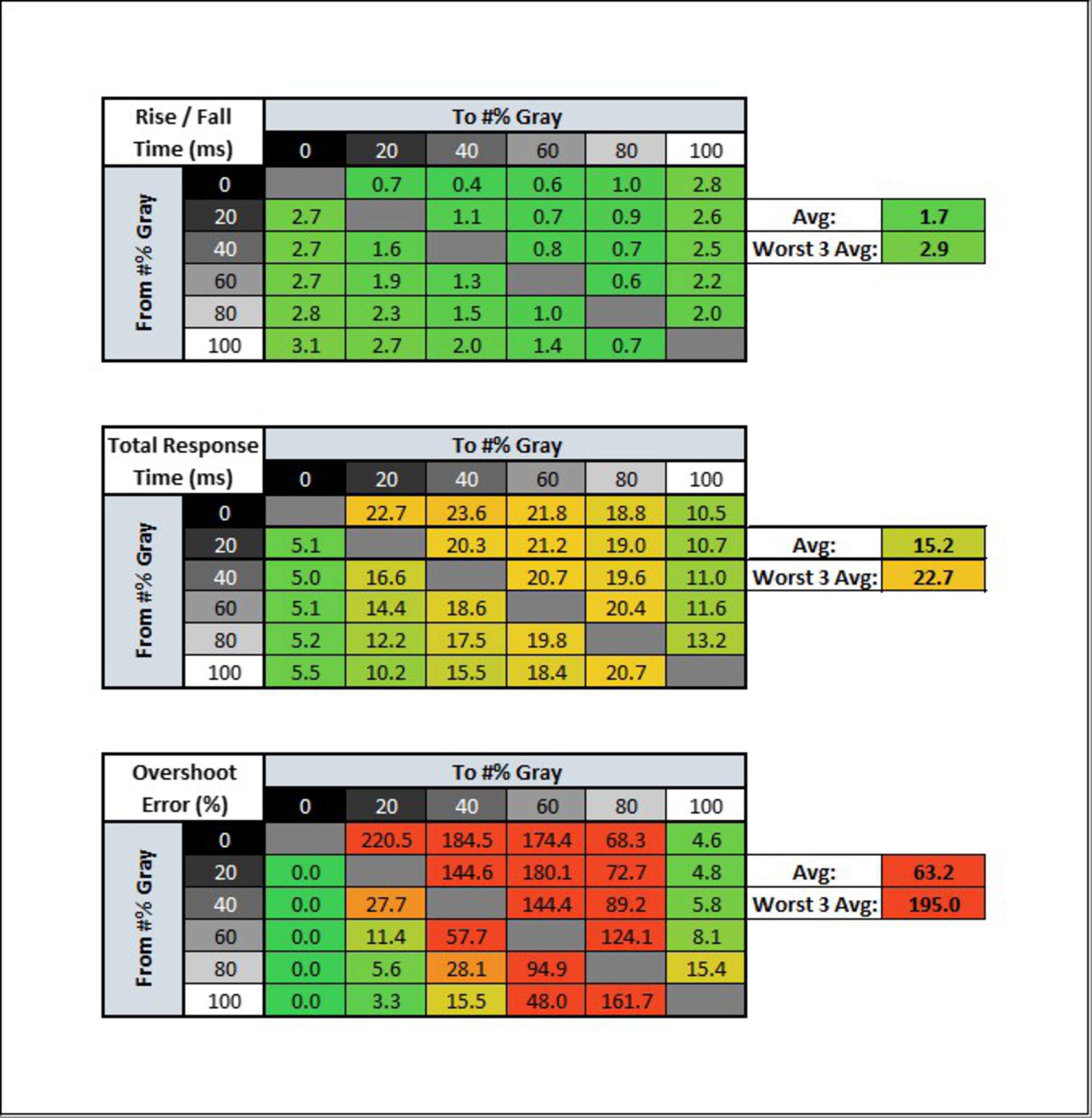 | Overdrive Setting | Response Time Chart | Response Time Tables | Motion Blur Photo |