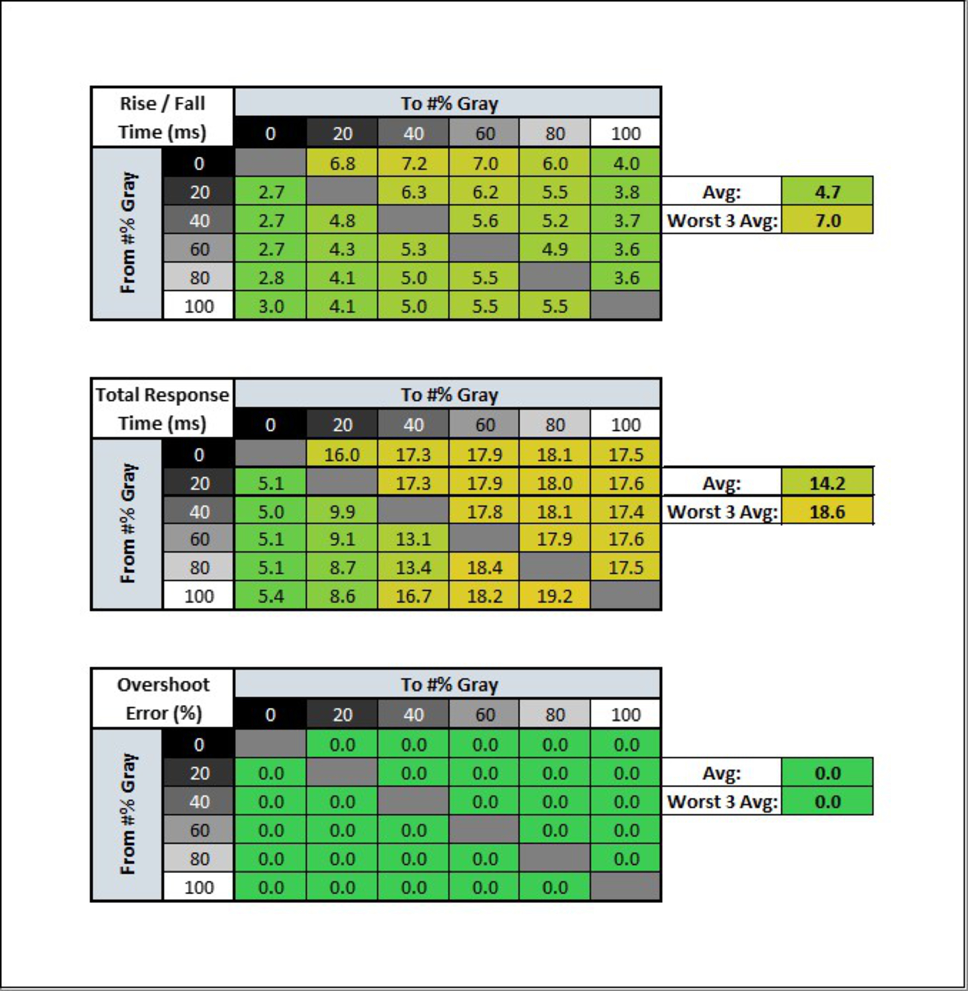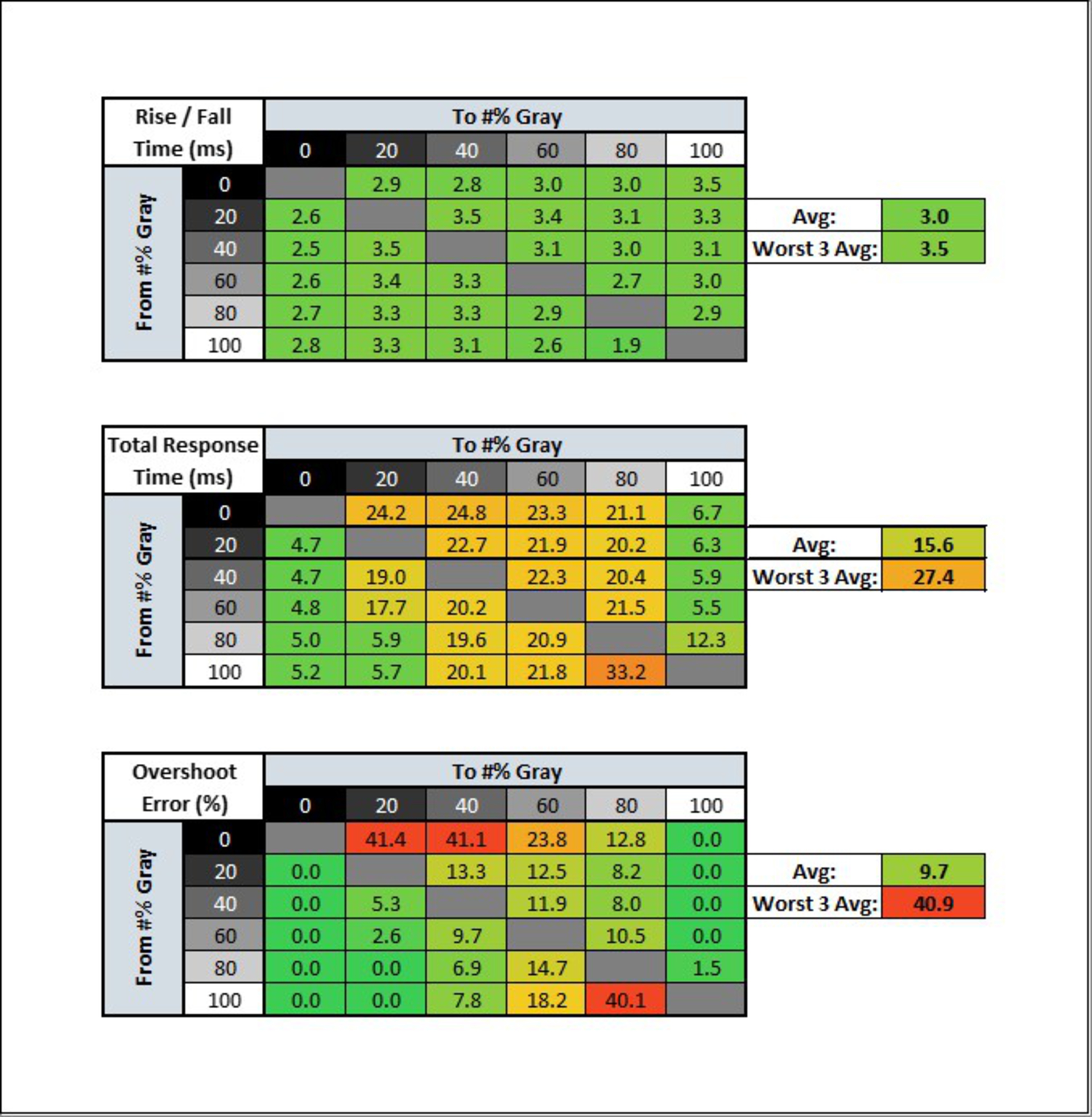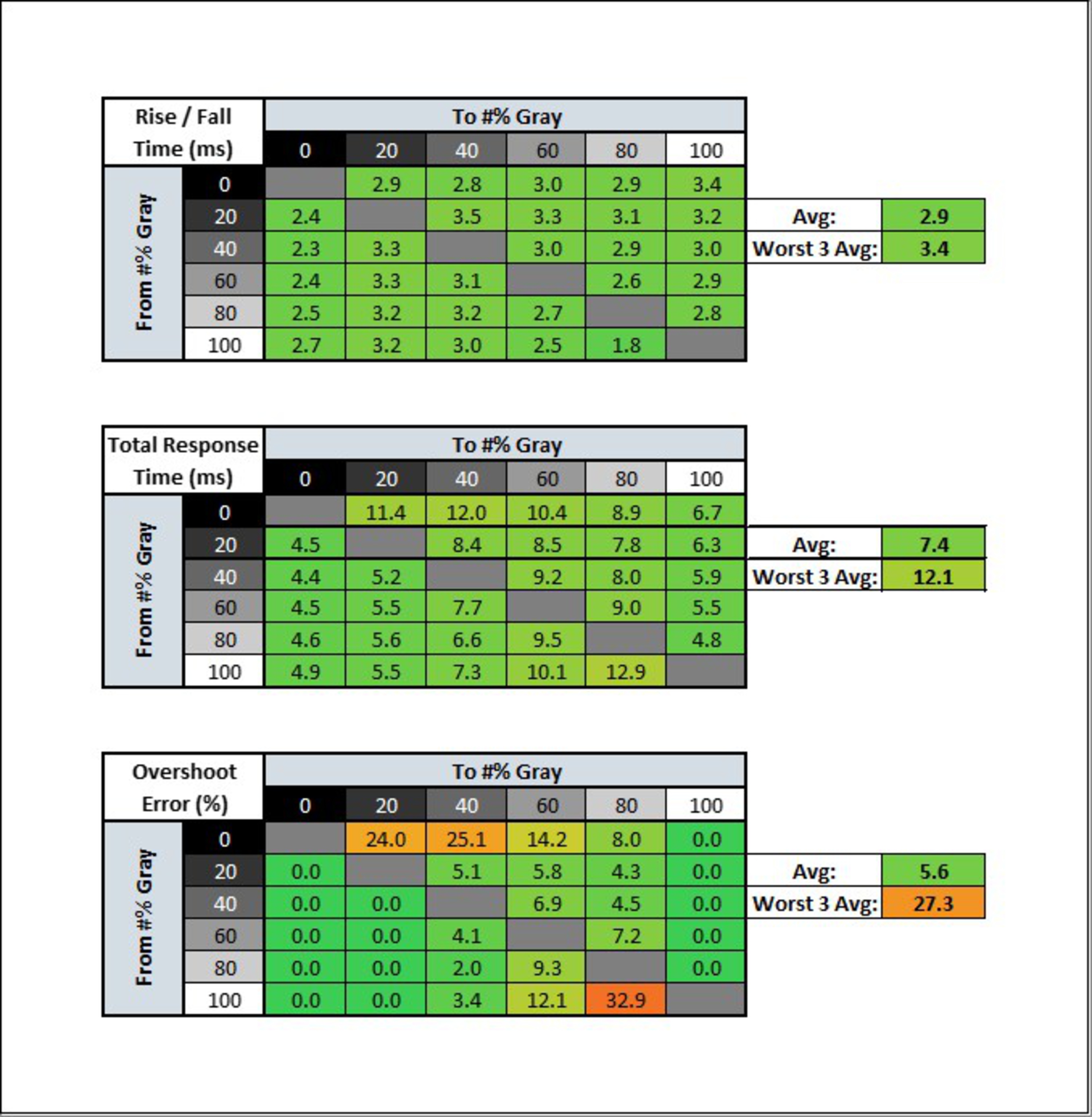 | Overdrive Setting | Response Time Chart | Response Time Tables | Motion Blur Photo |