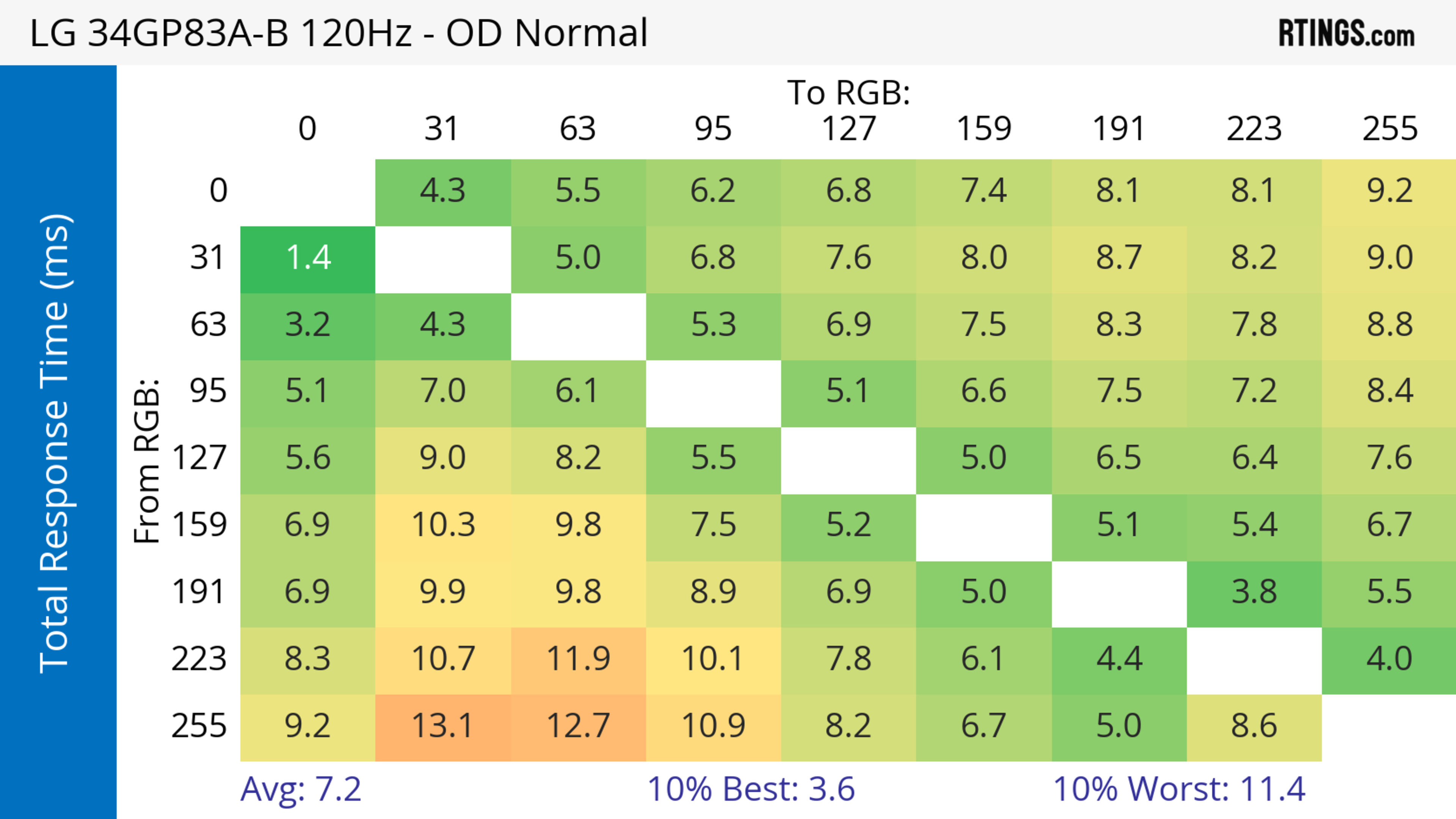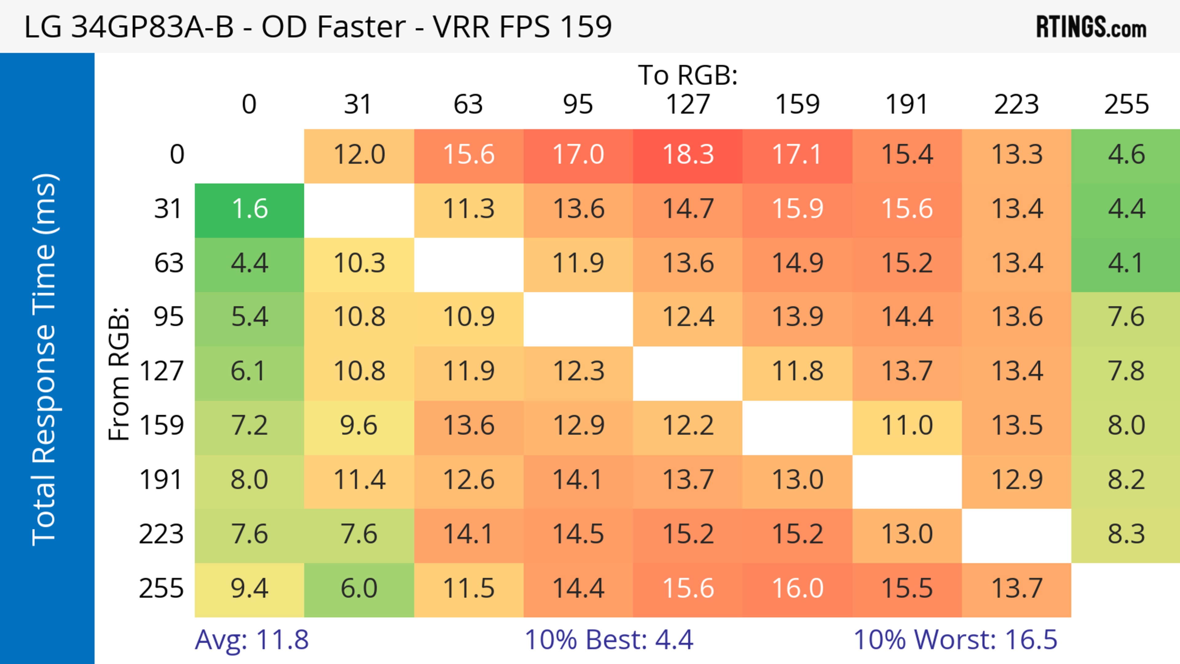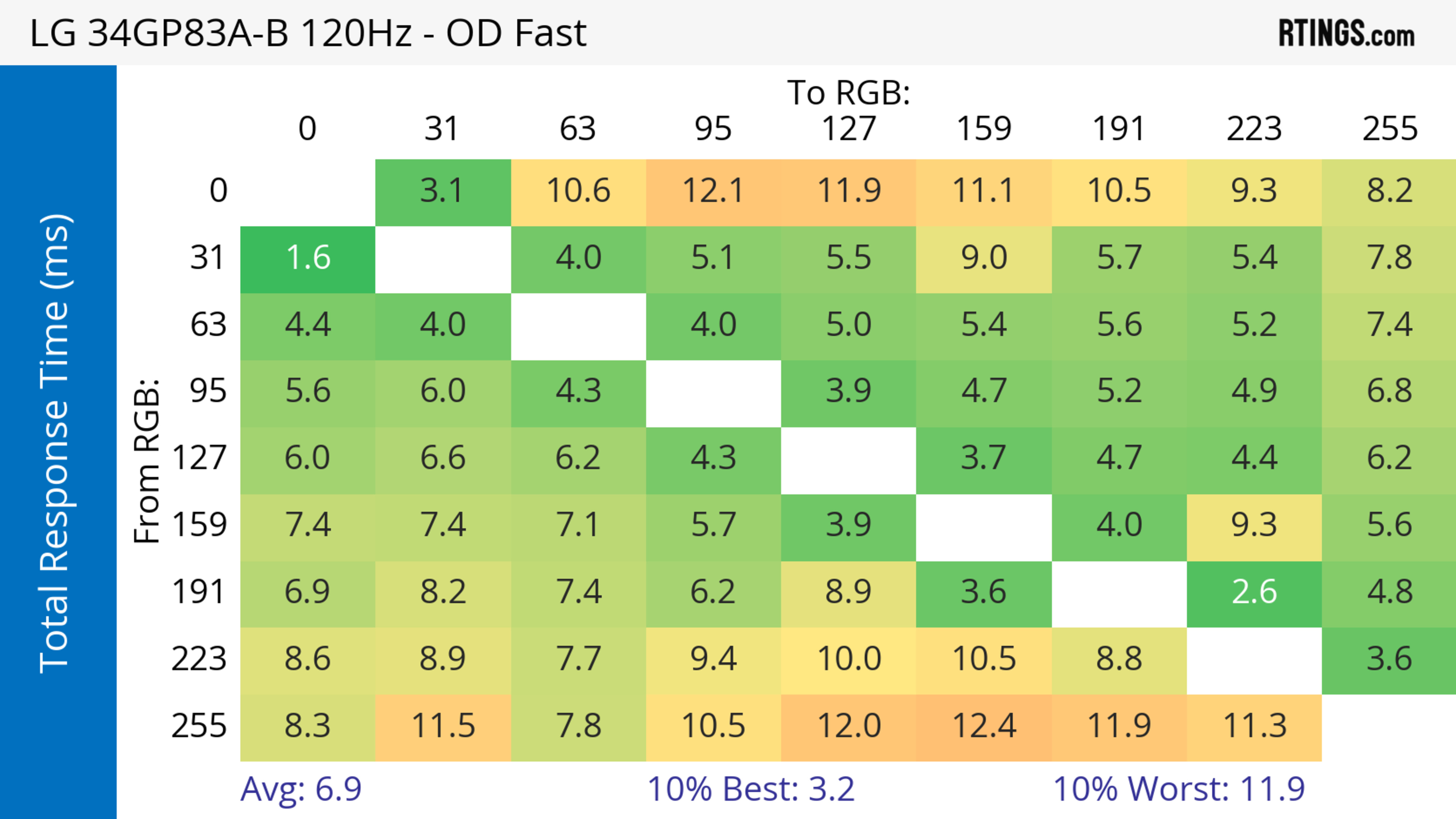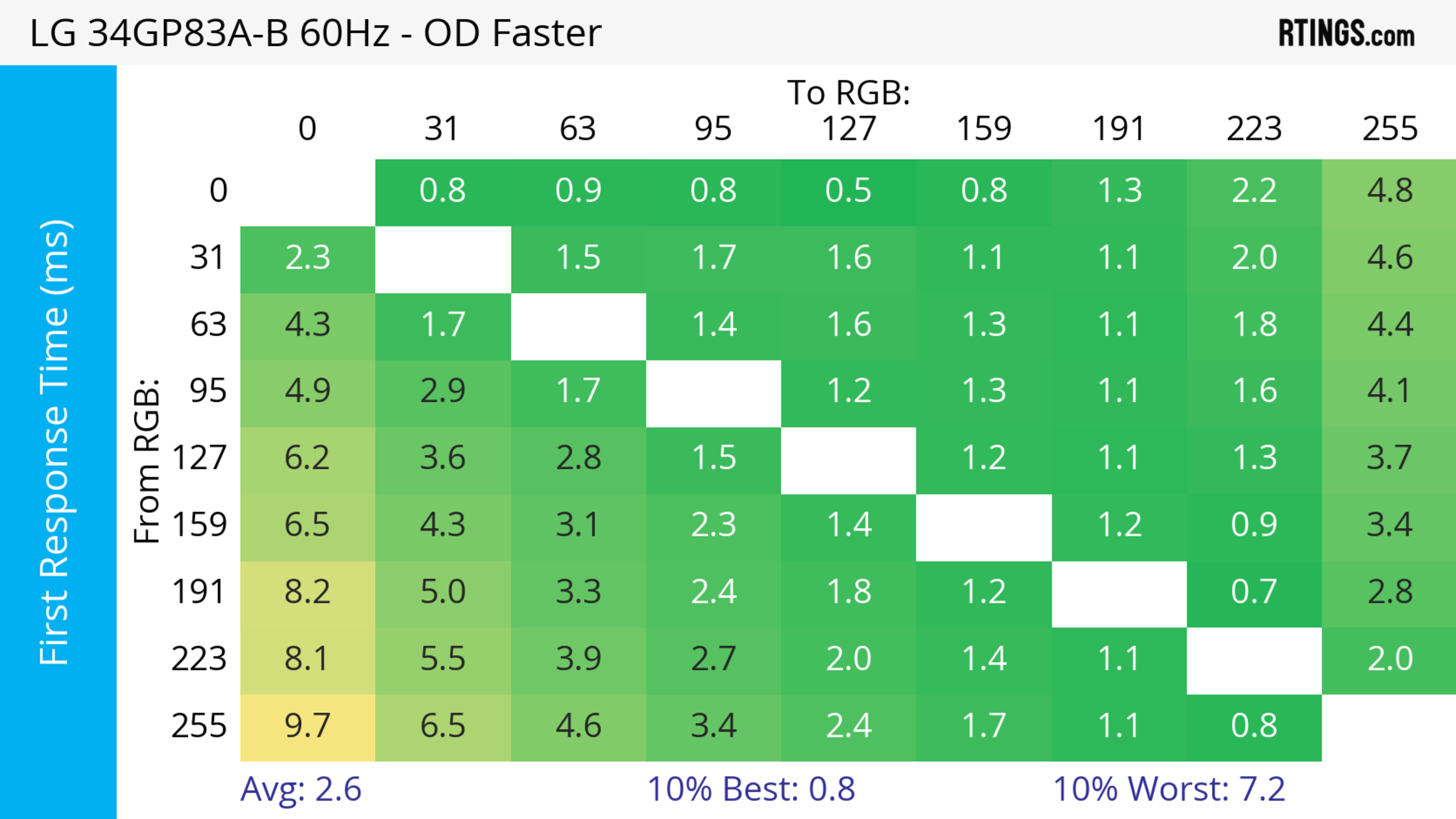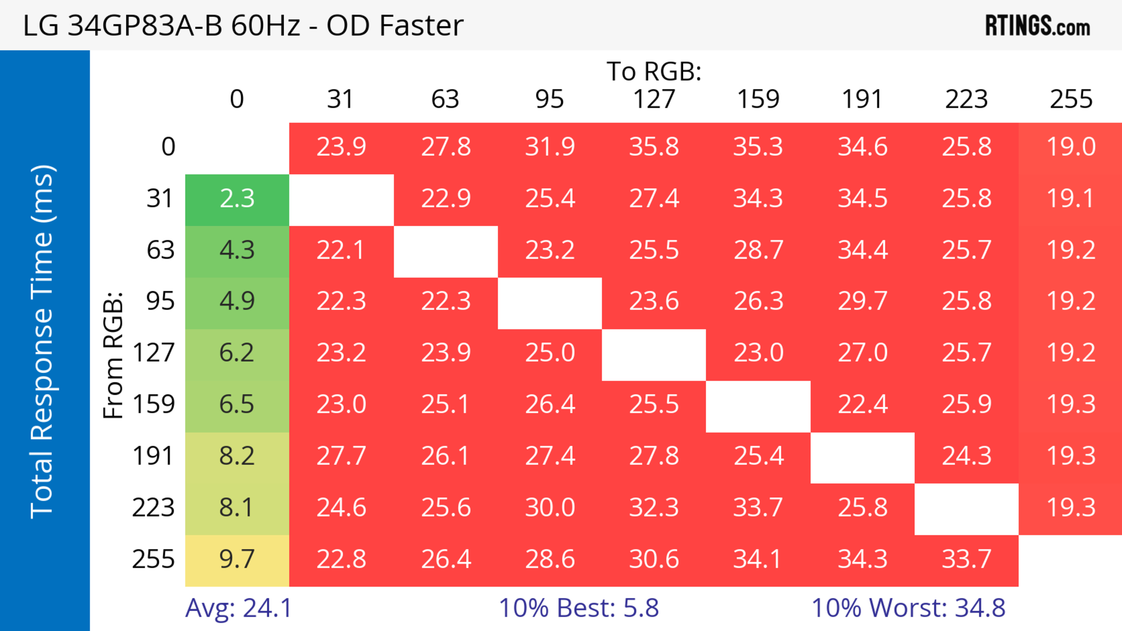The LG 34GP83A-B has a good response time at all refresh rates.