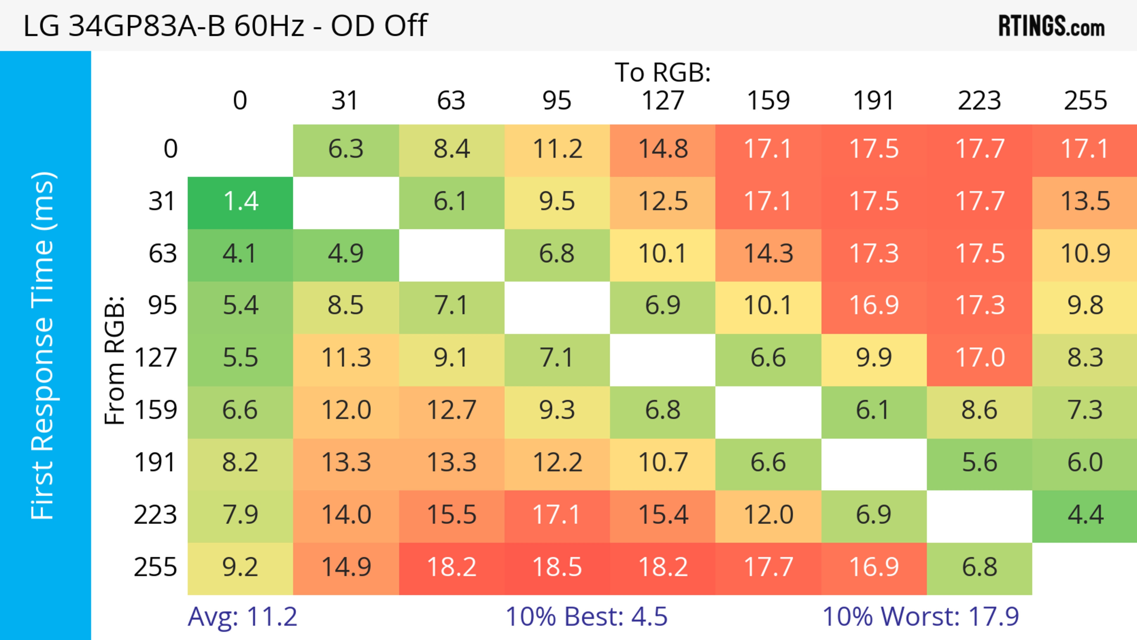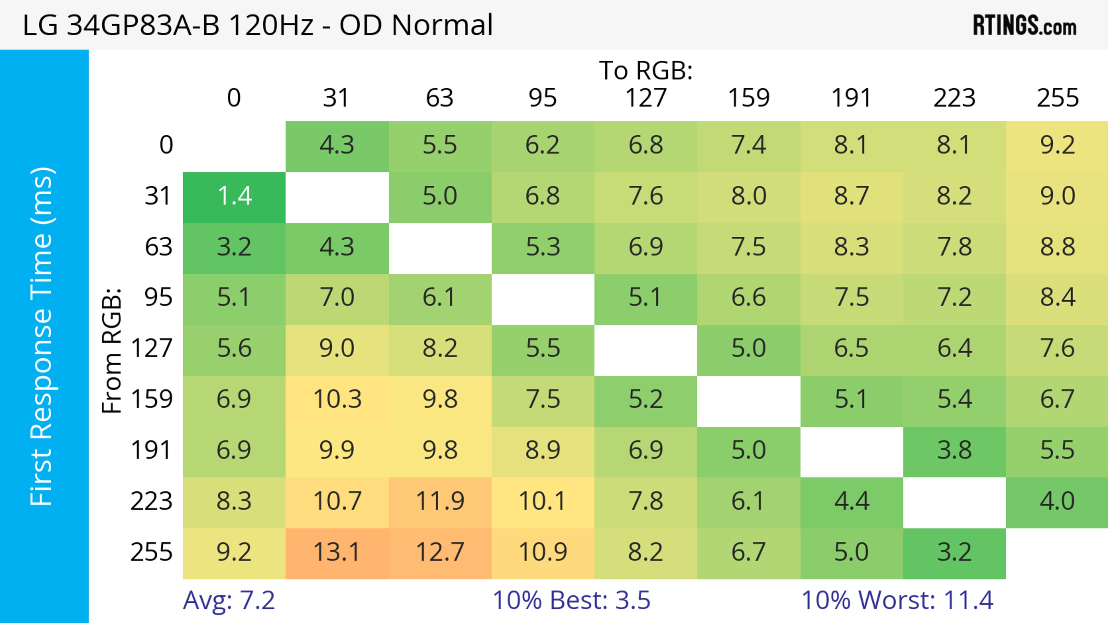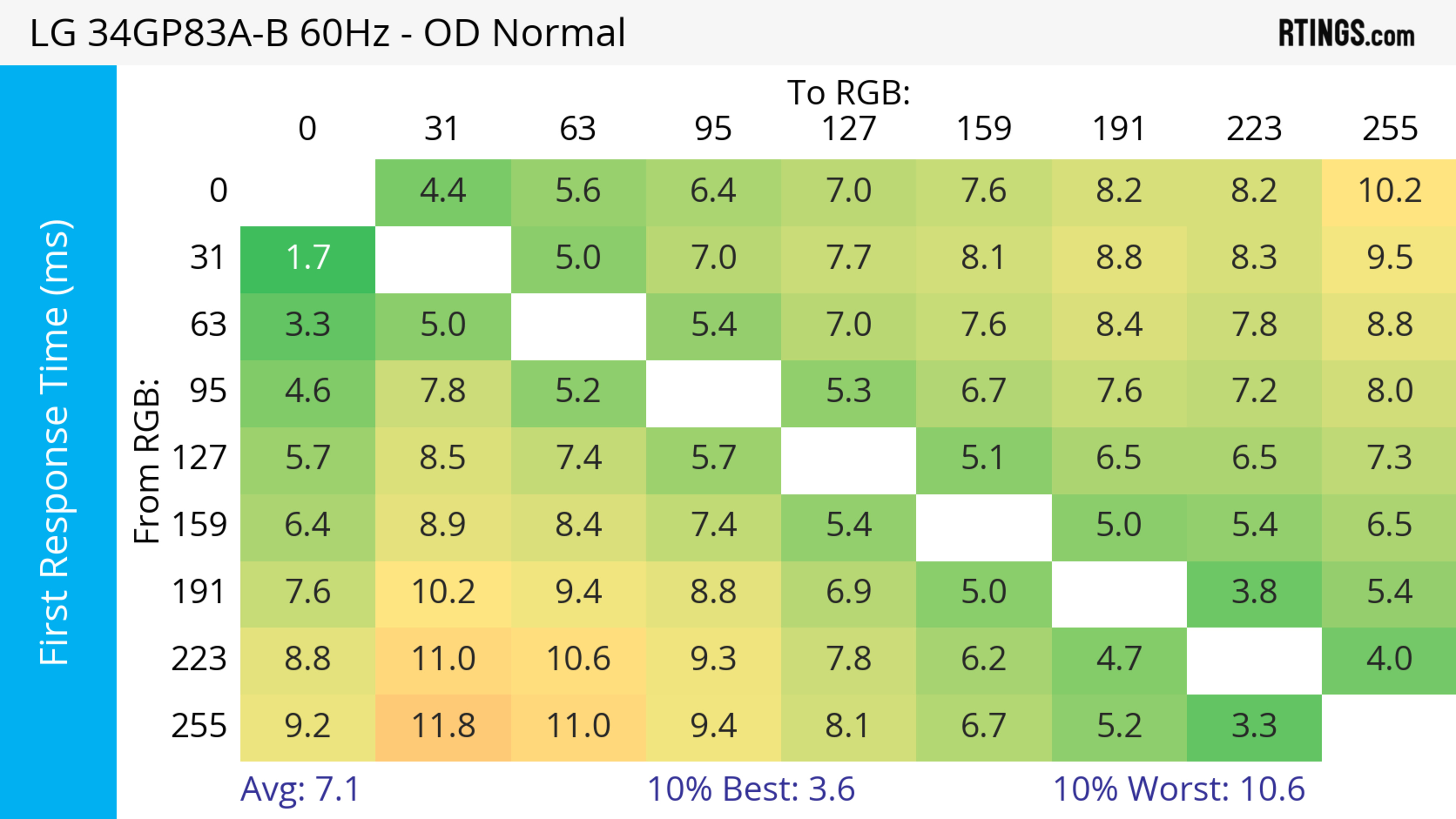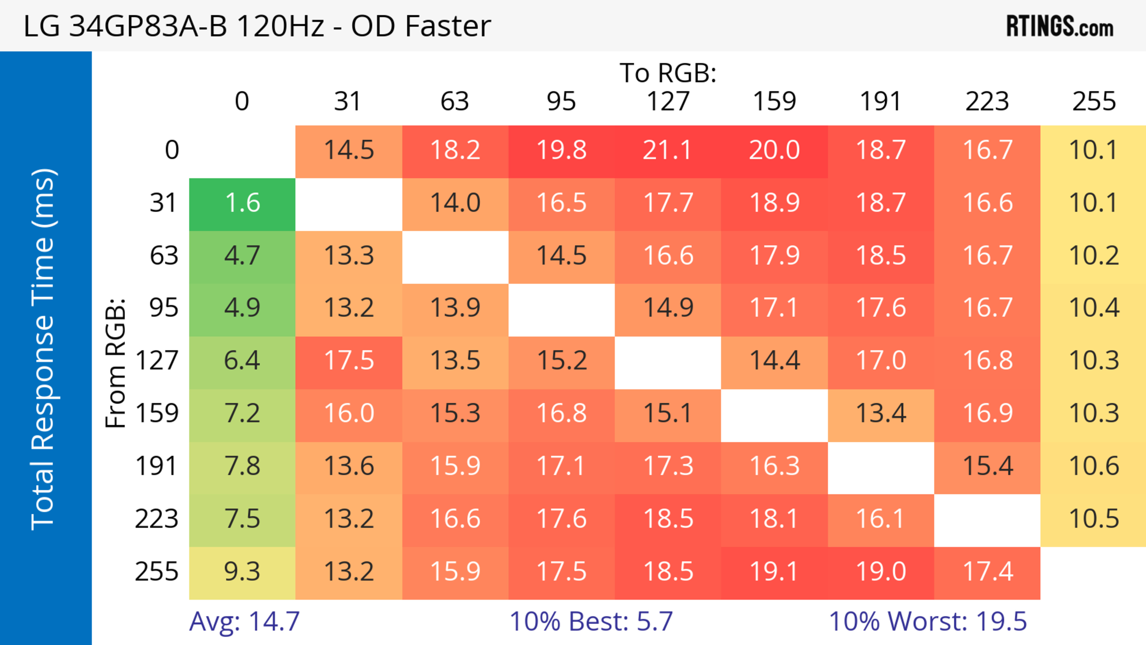 The LG 34GP83A-B has a good response time at all refresh rates.
