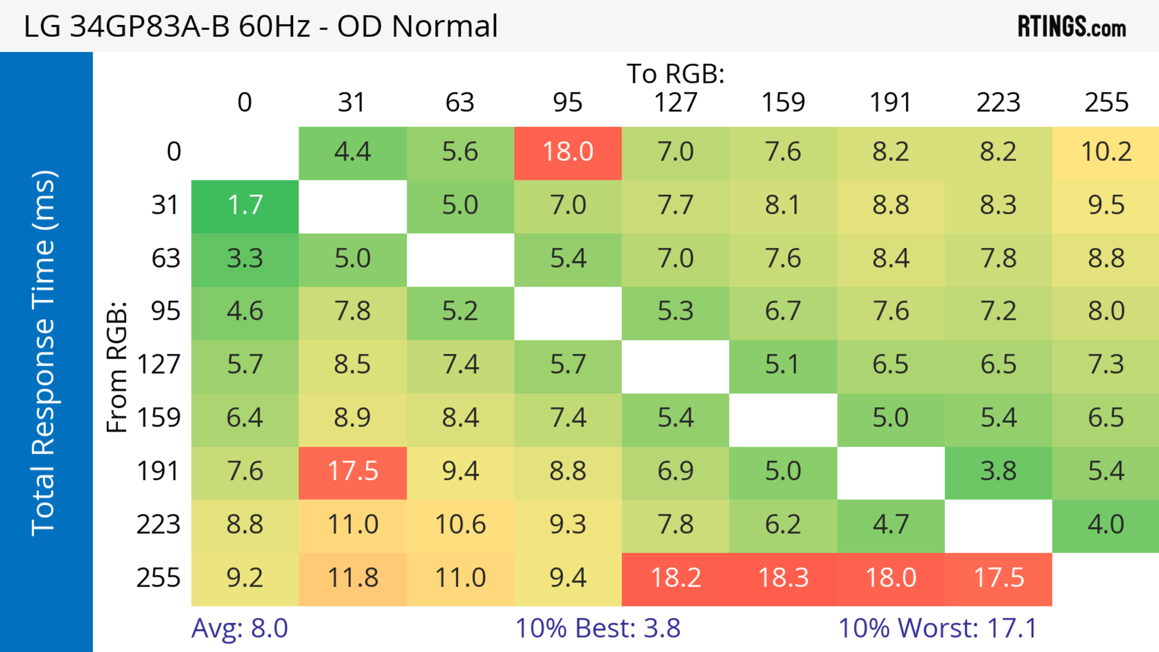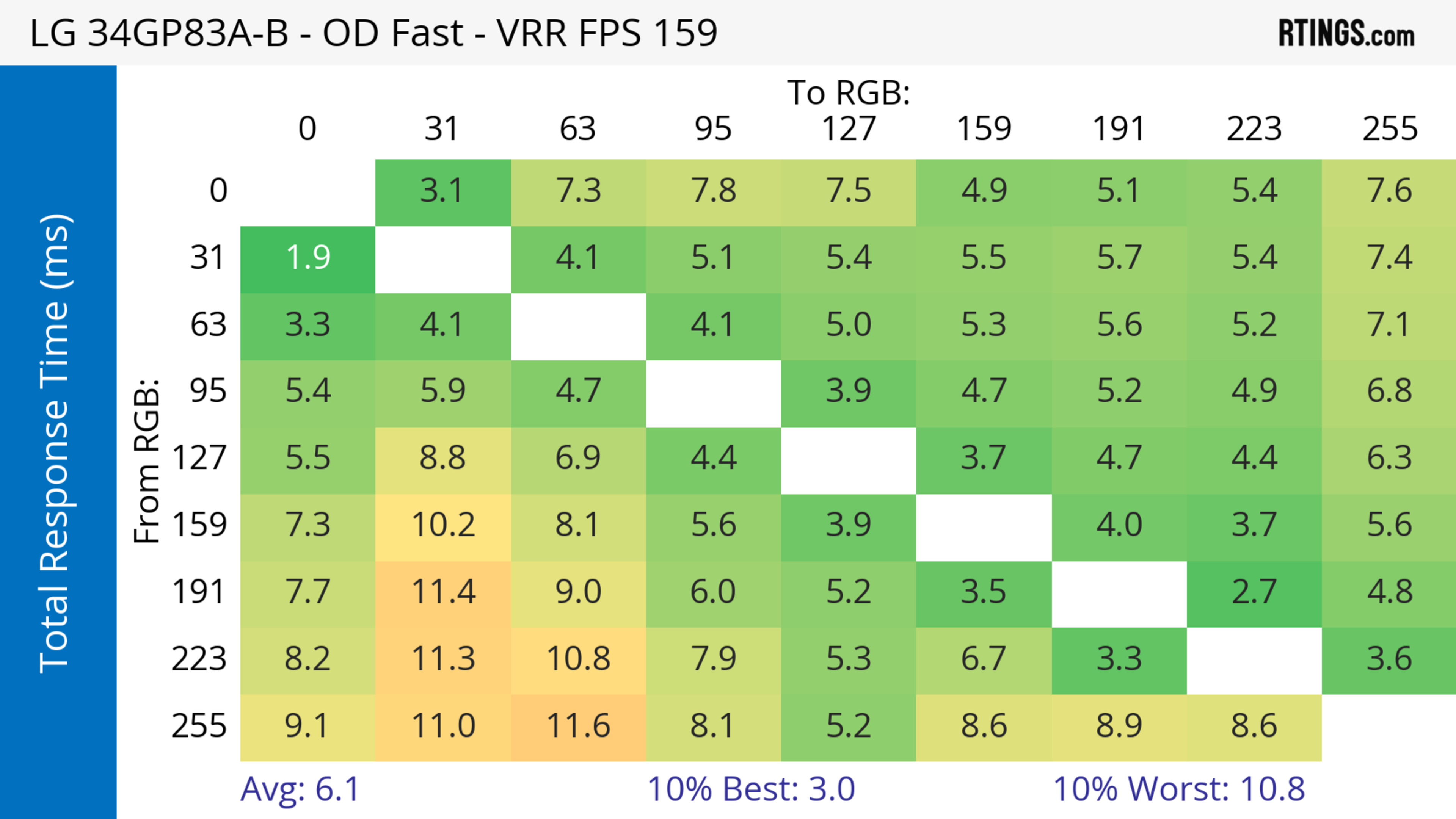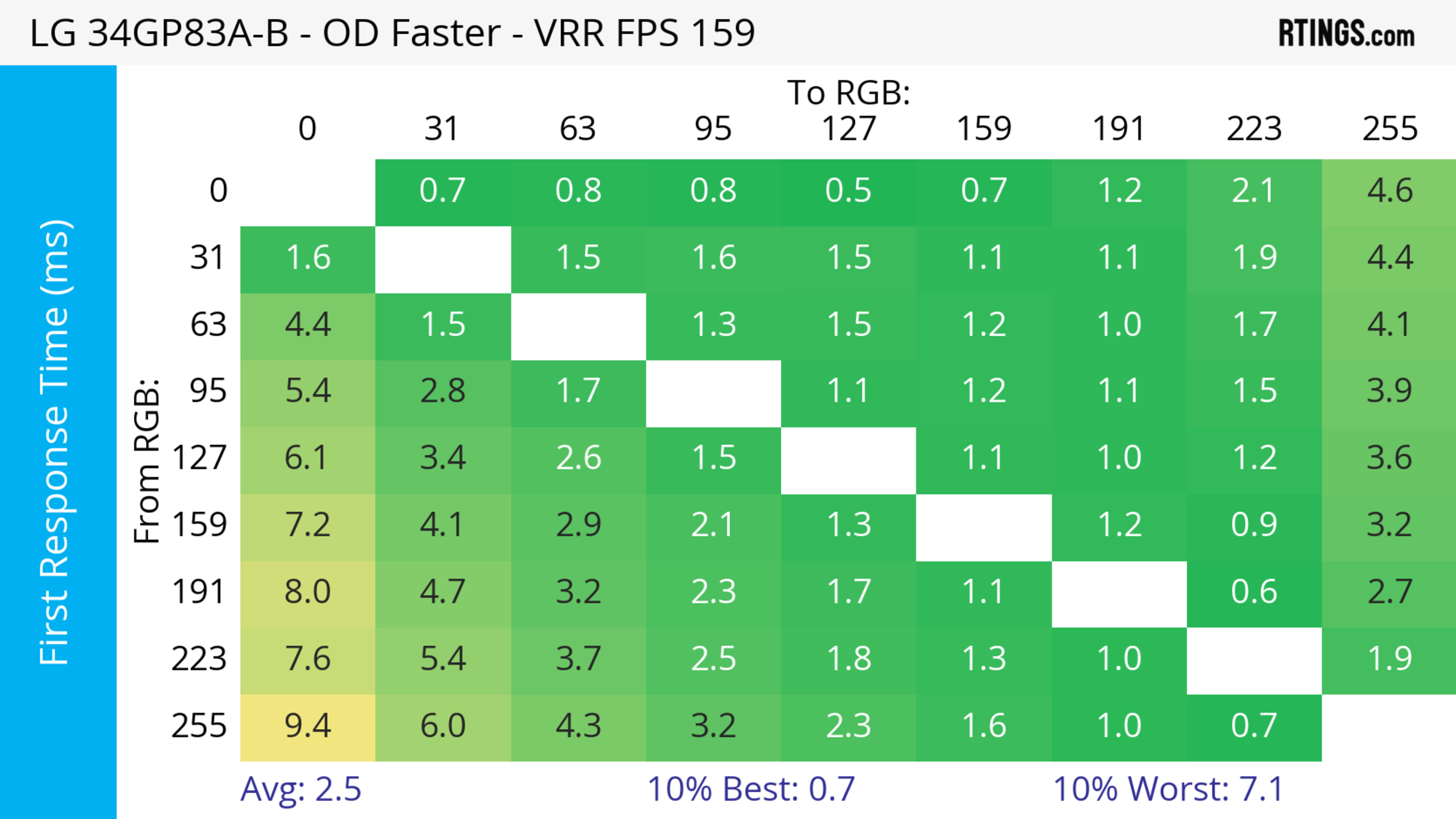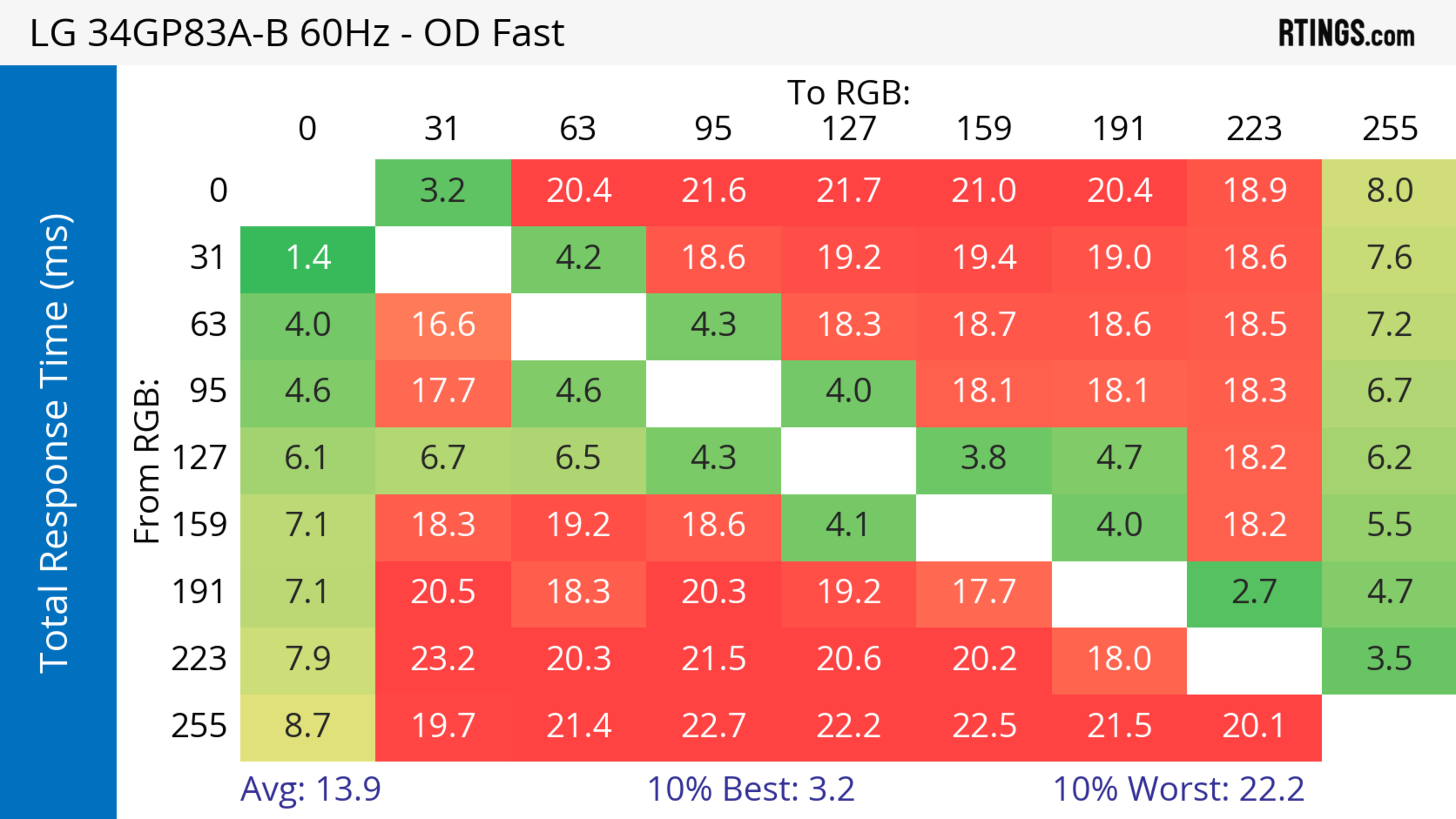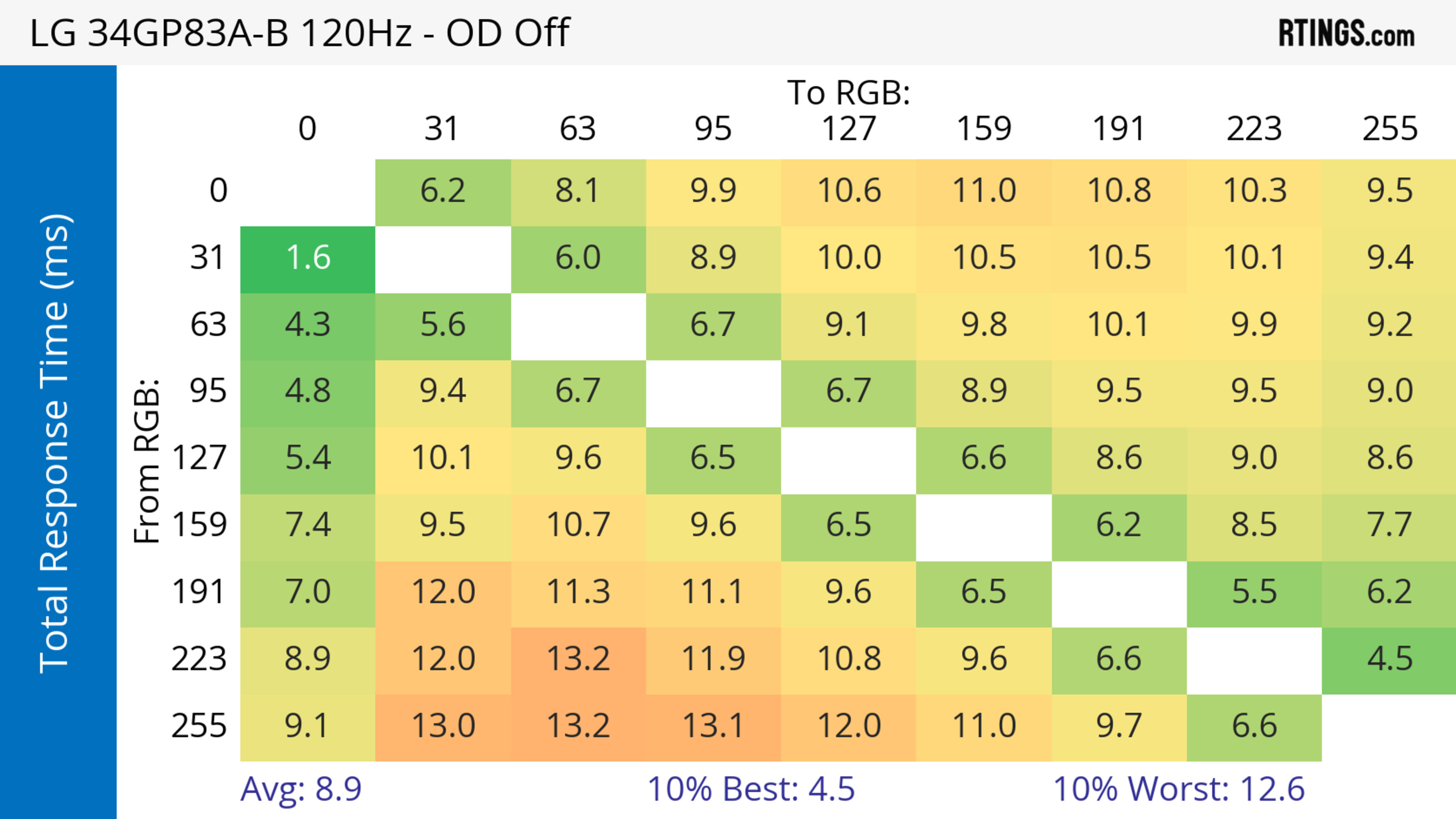 The LG 34GP83A-B has a good response time at all refresh rates.