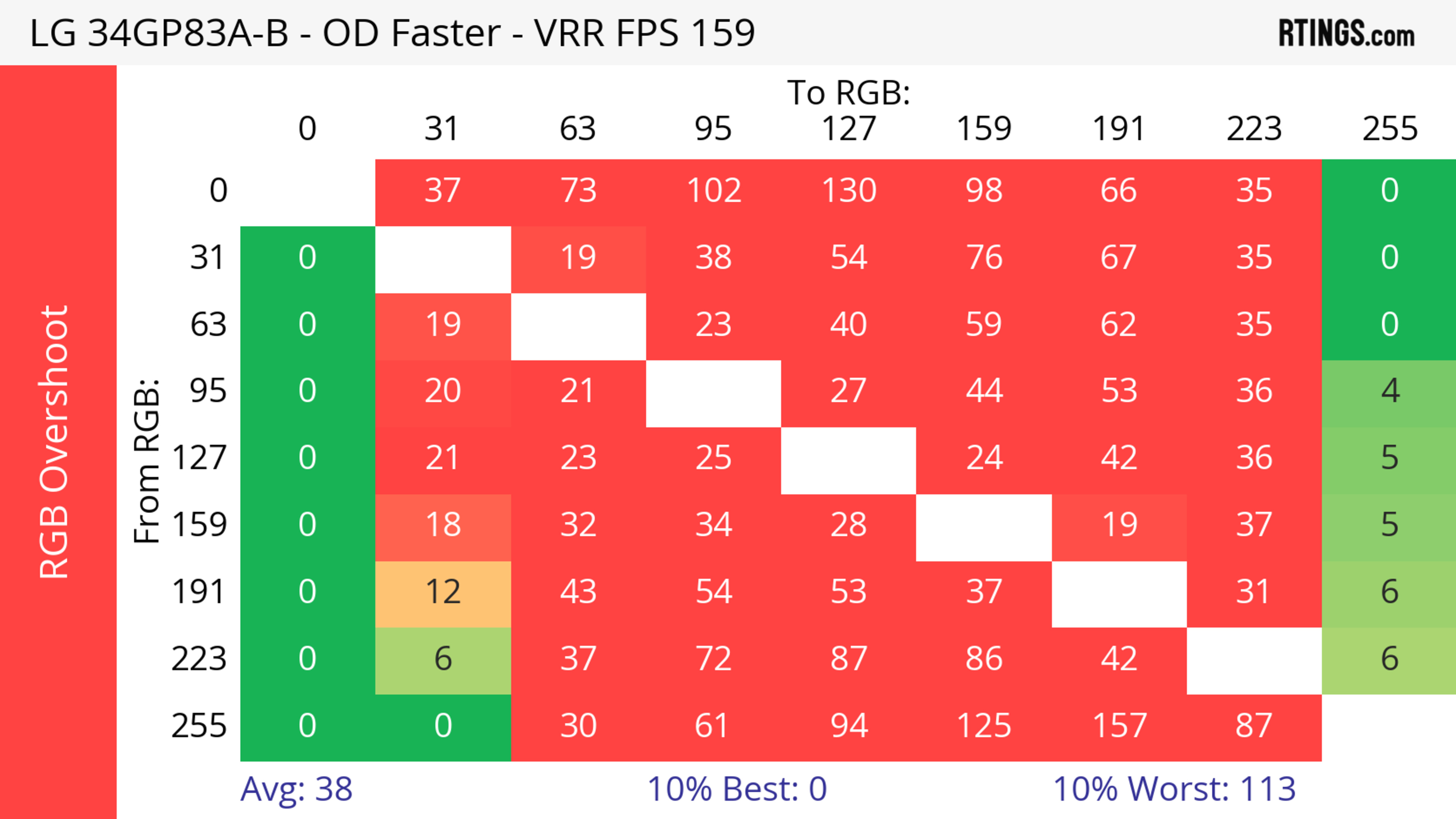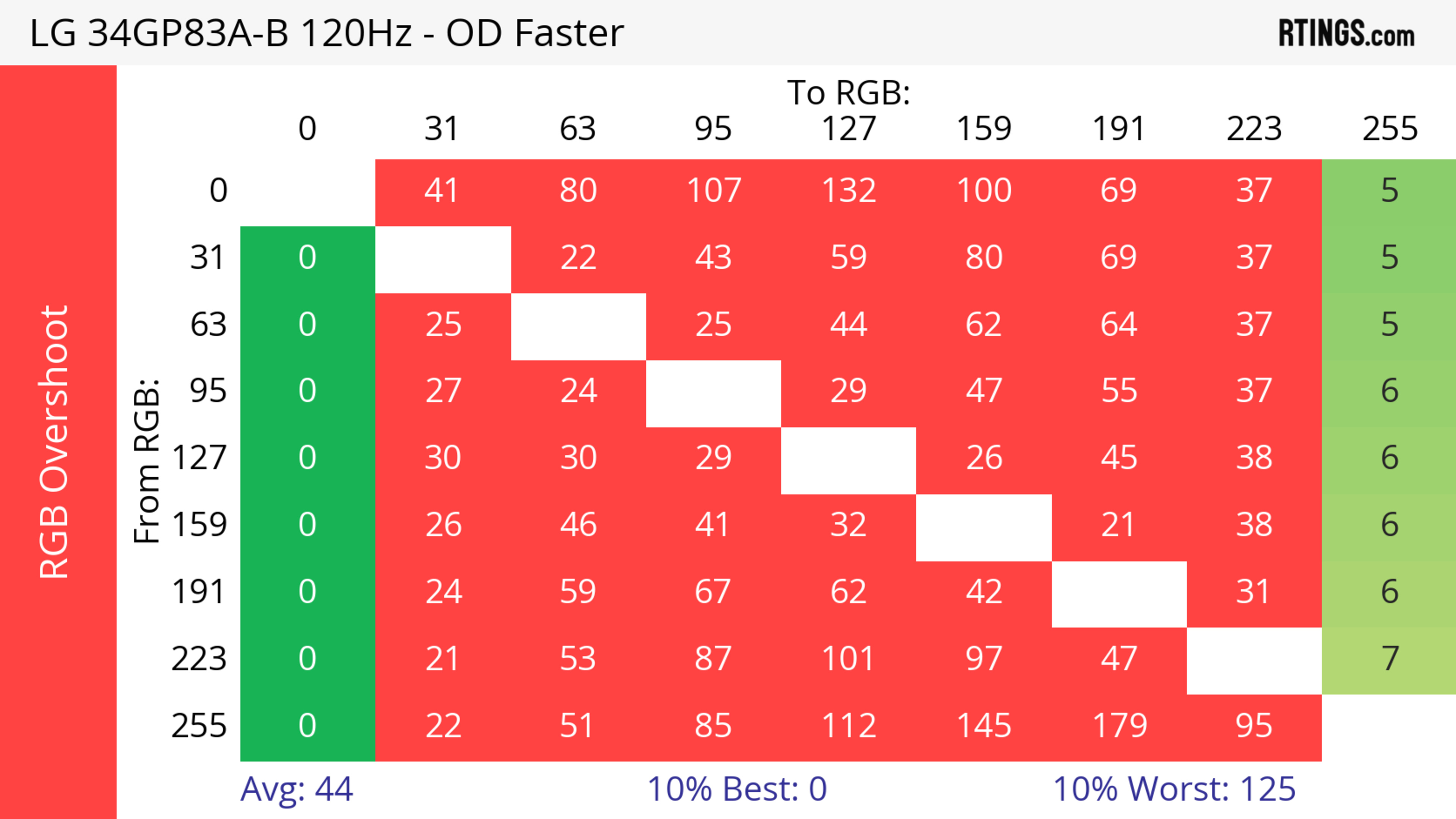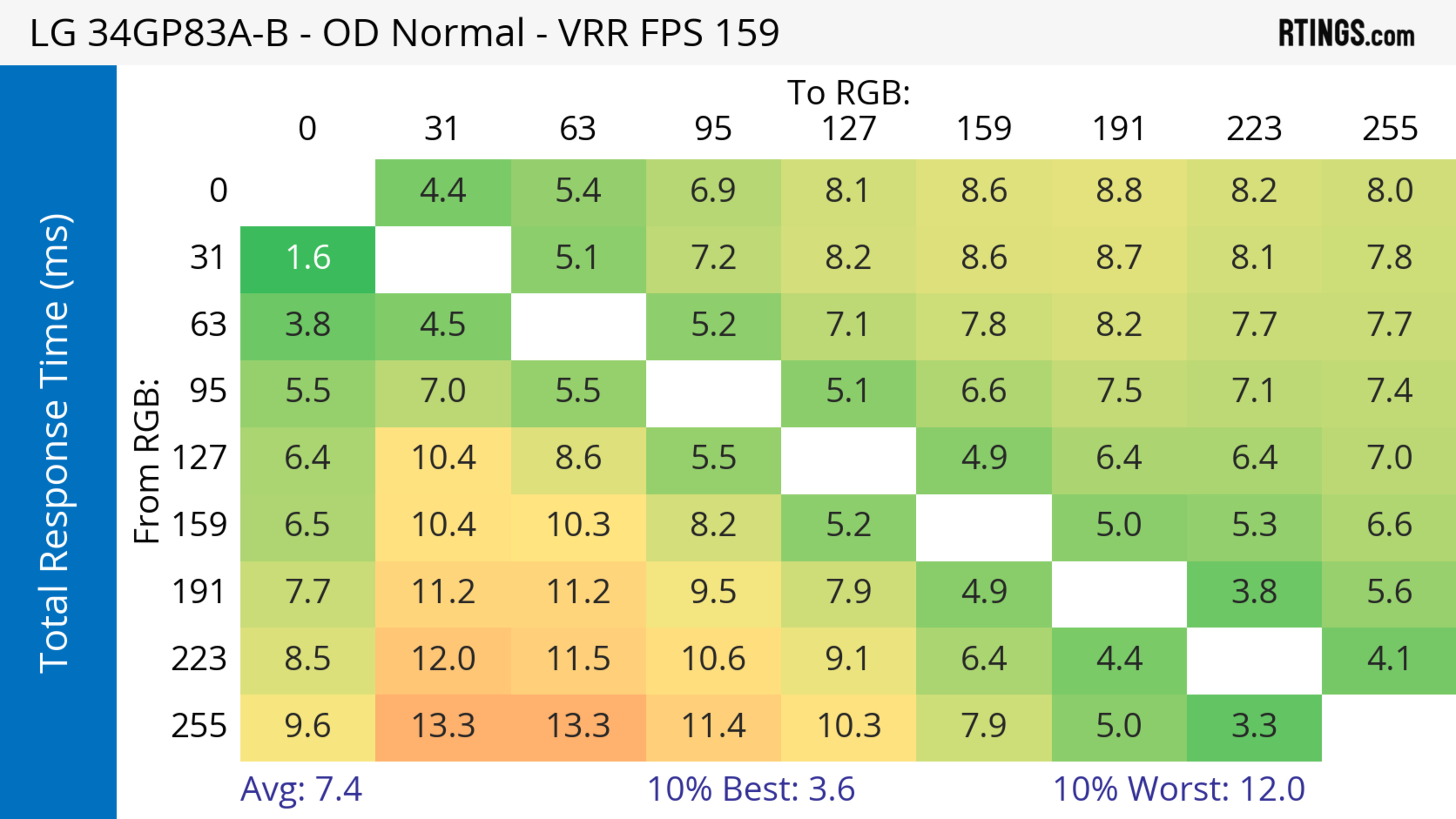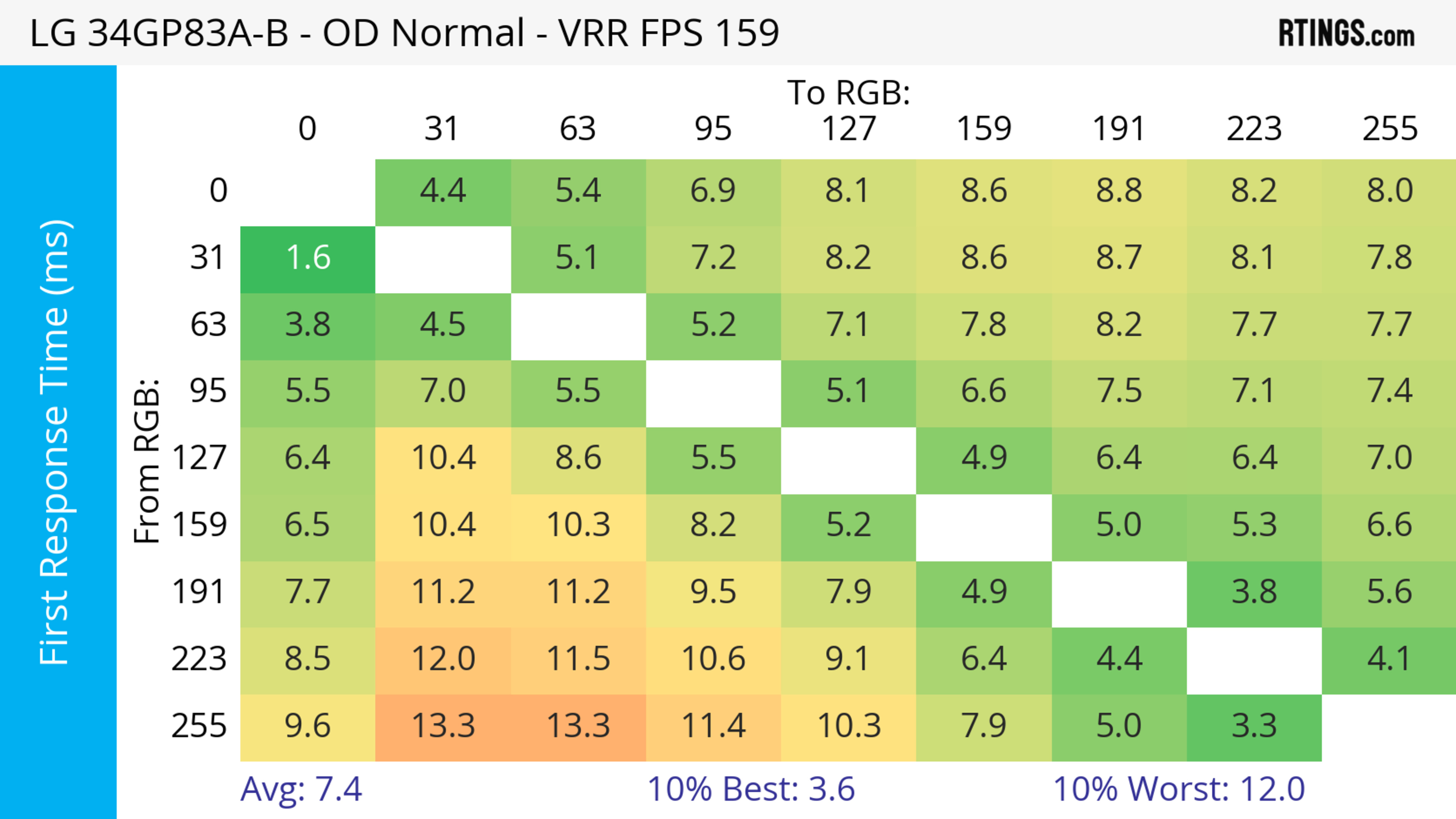 The LG 34GP83A-B has a good response time at all refresh rates.