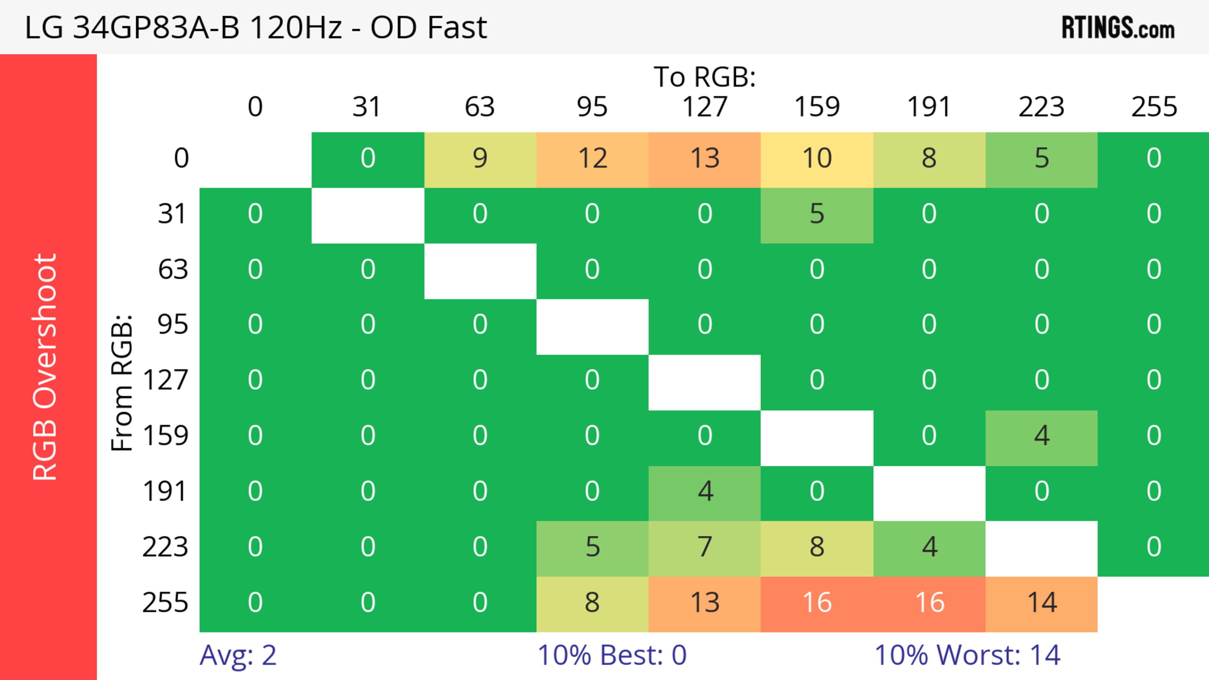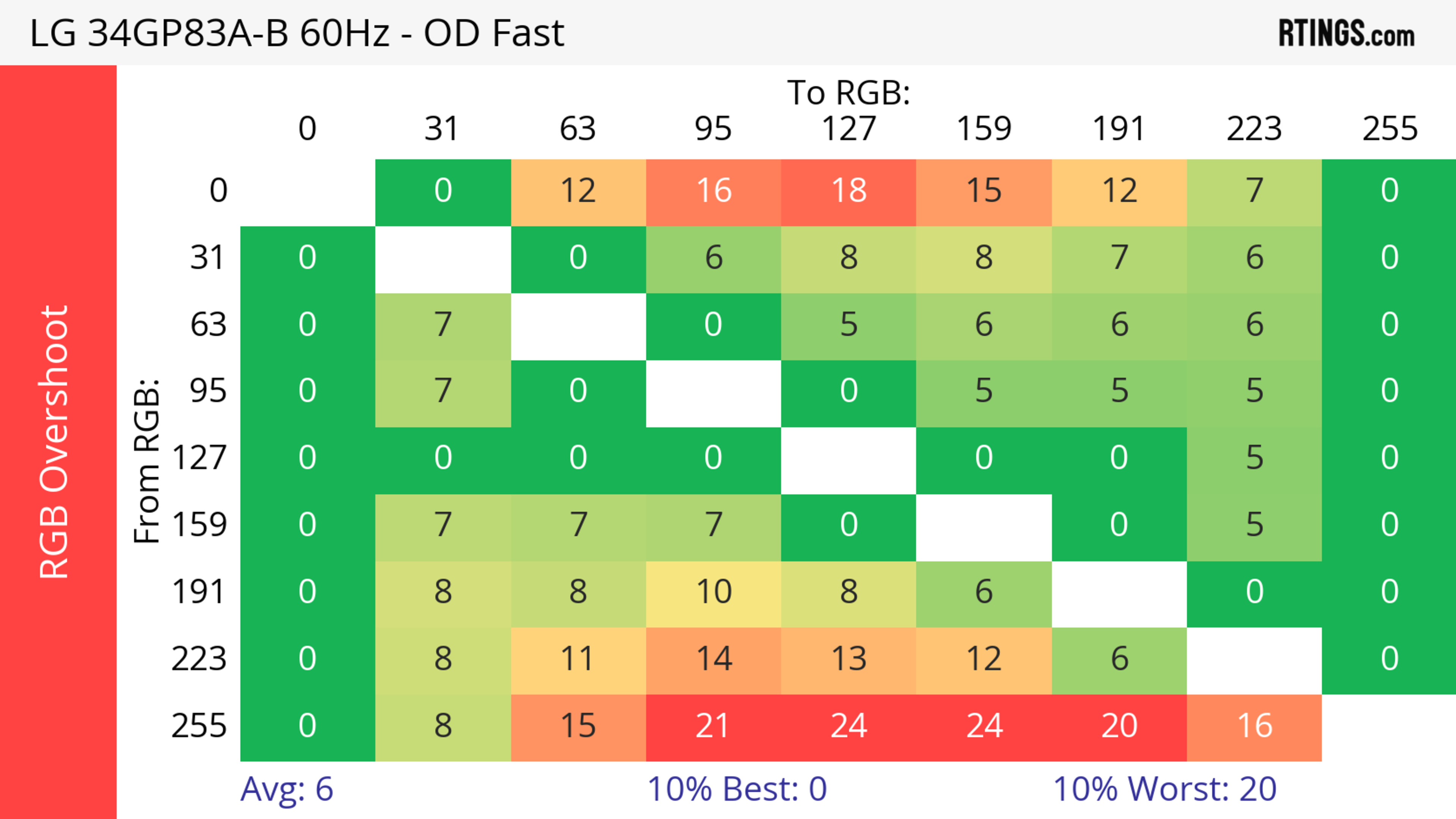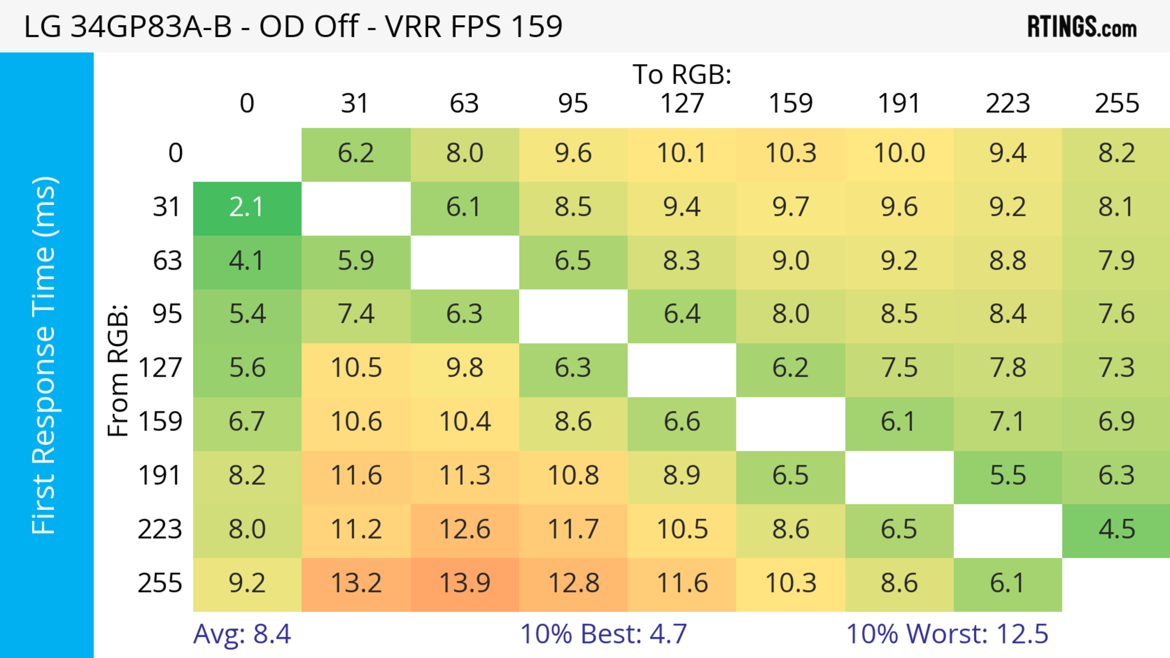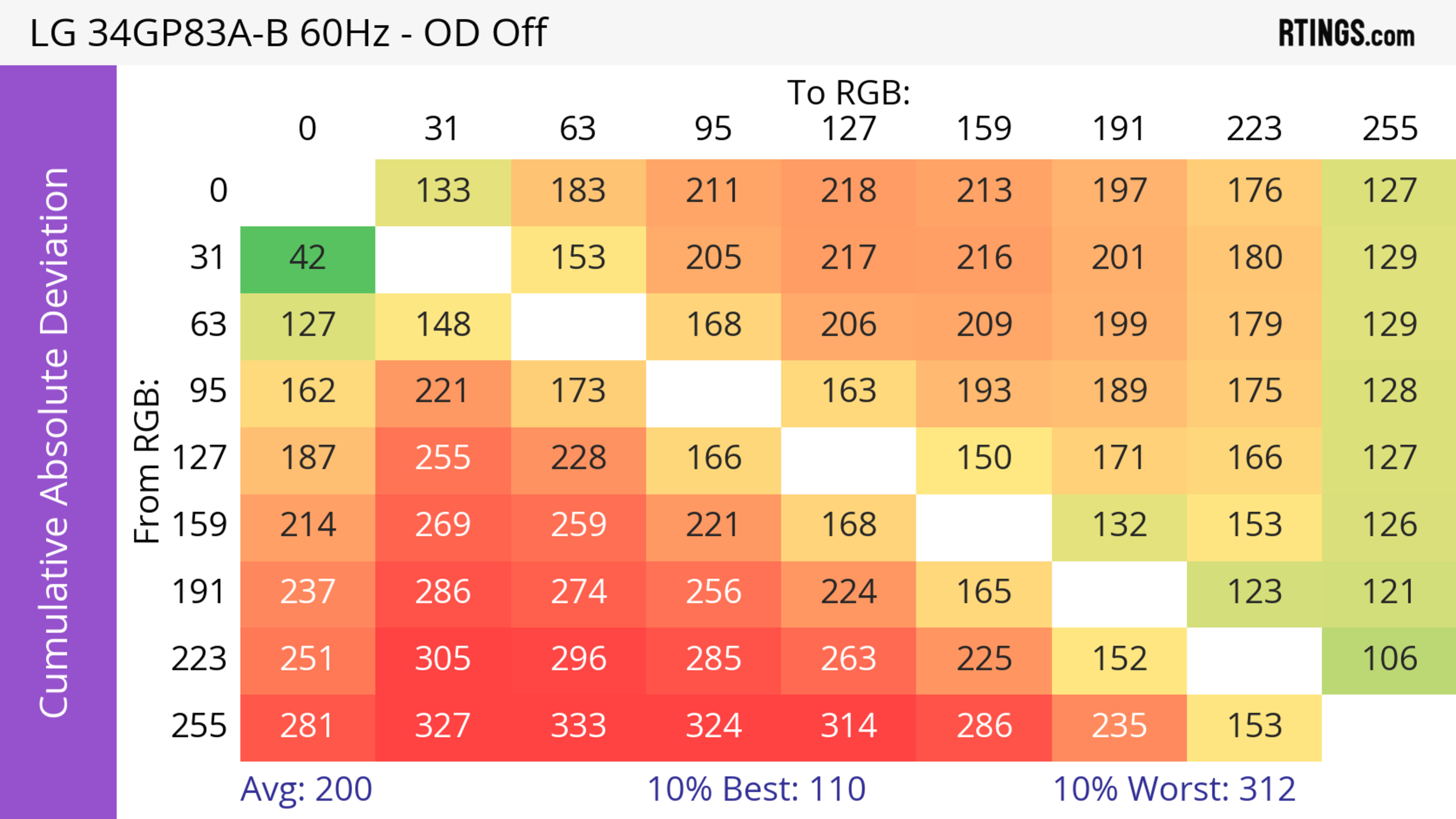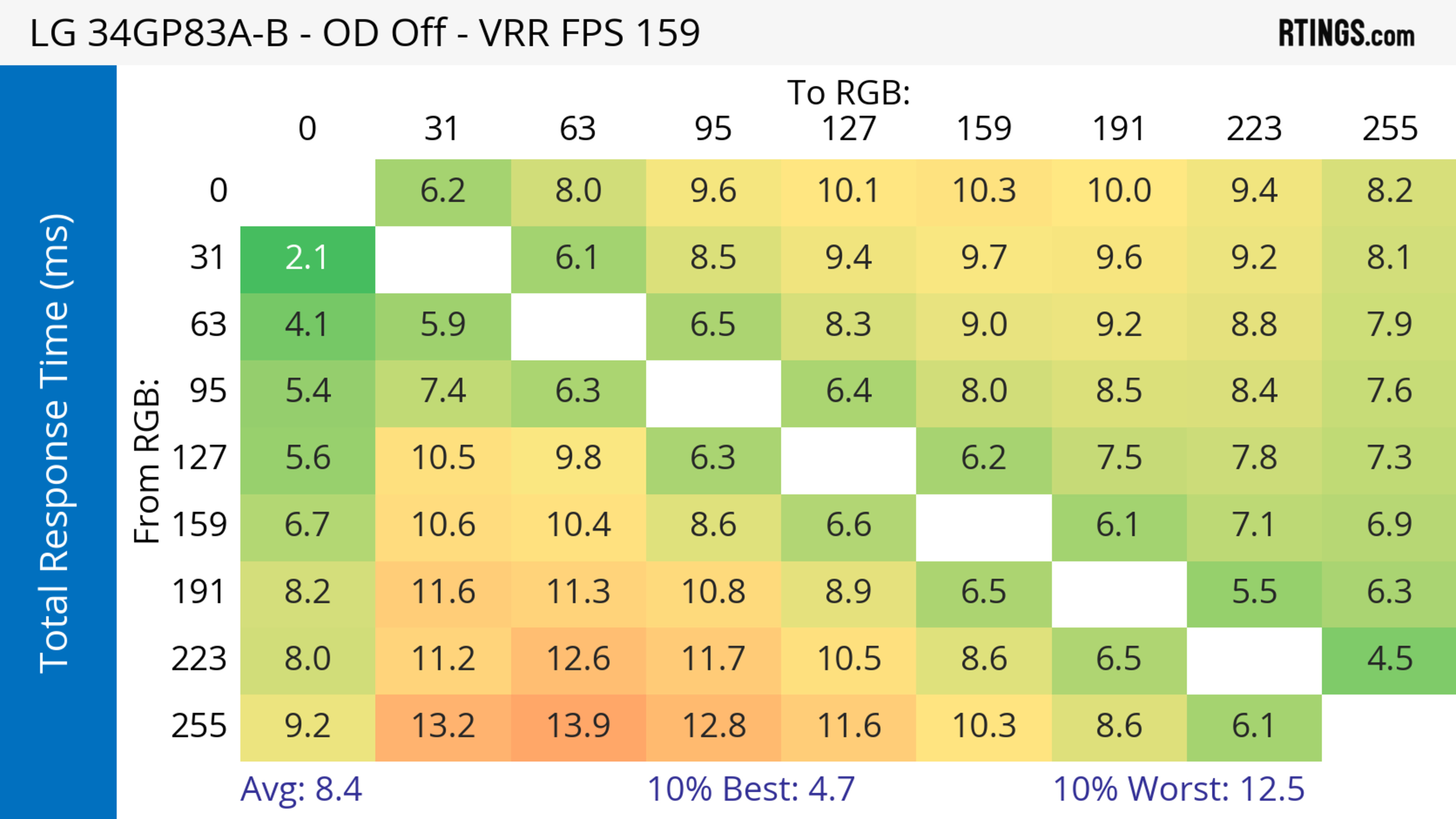 The LG 34GP83A-B has a good response time at all refresh rates.