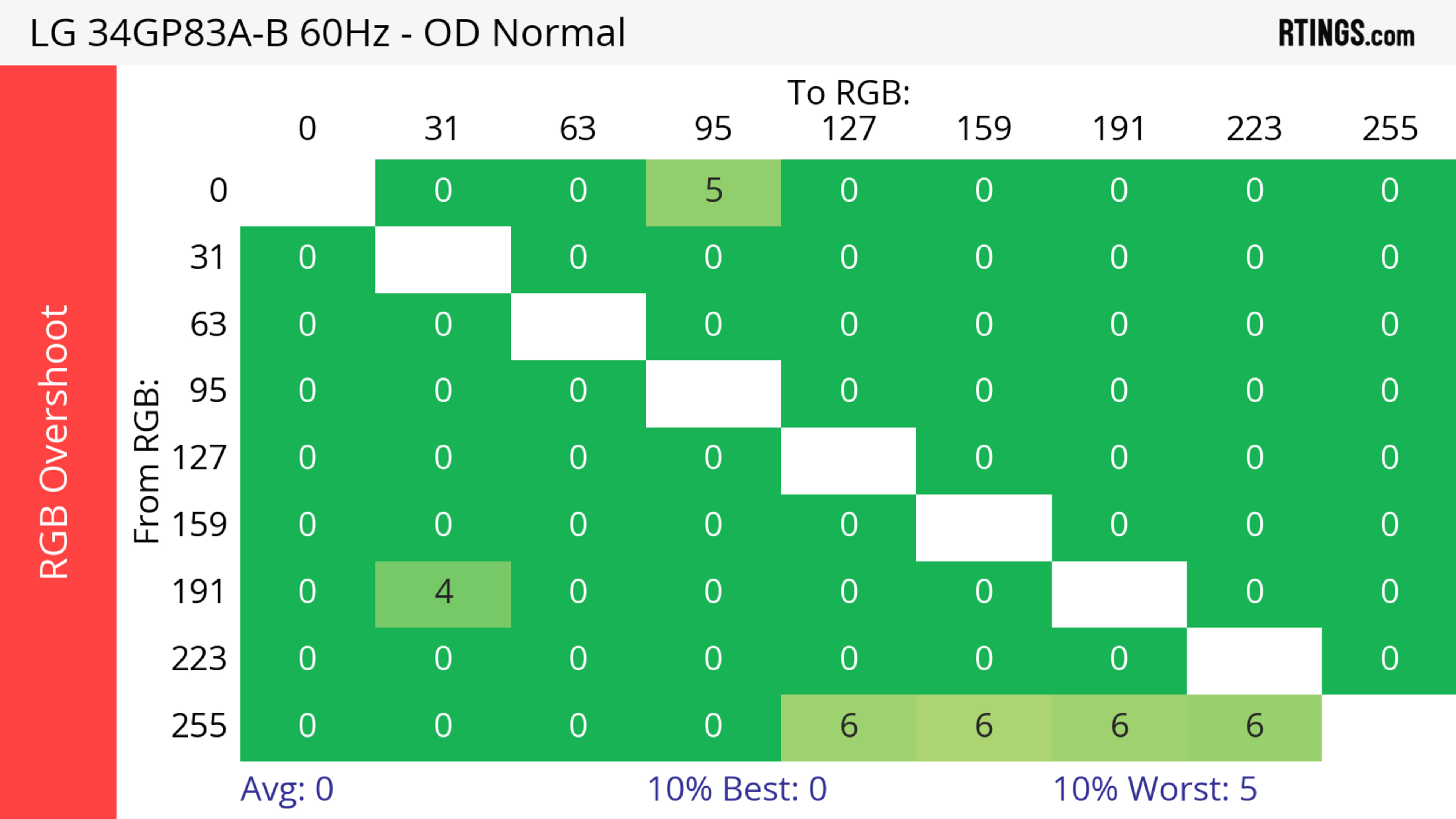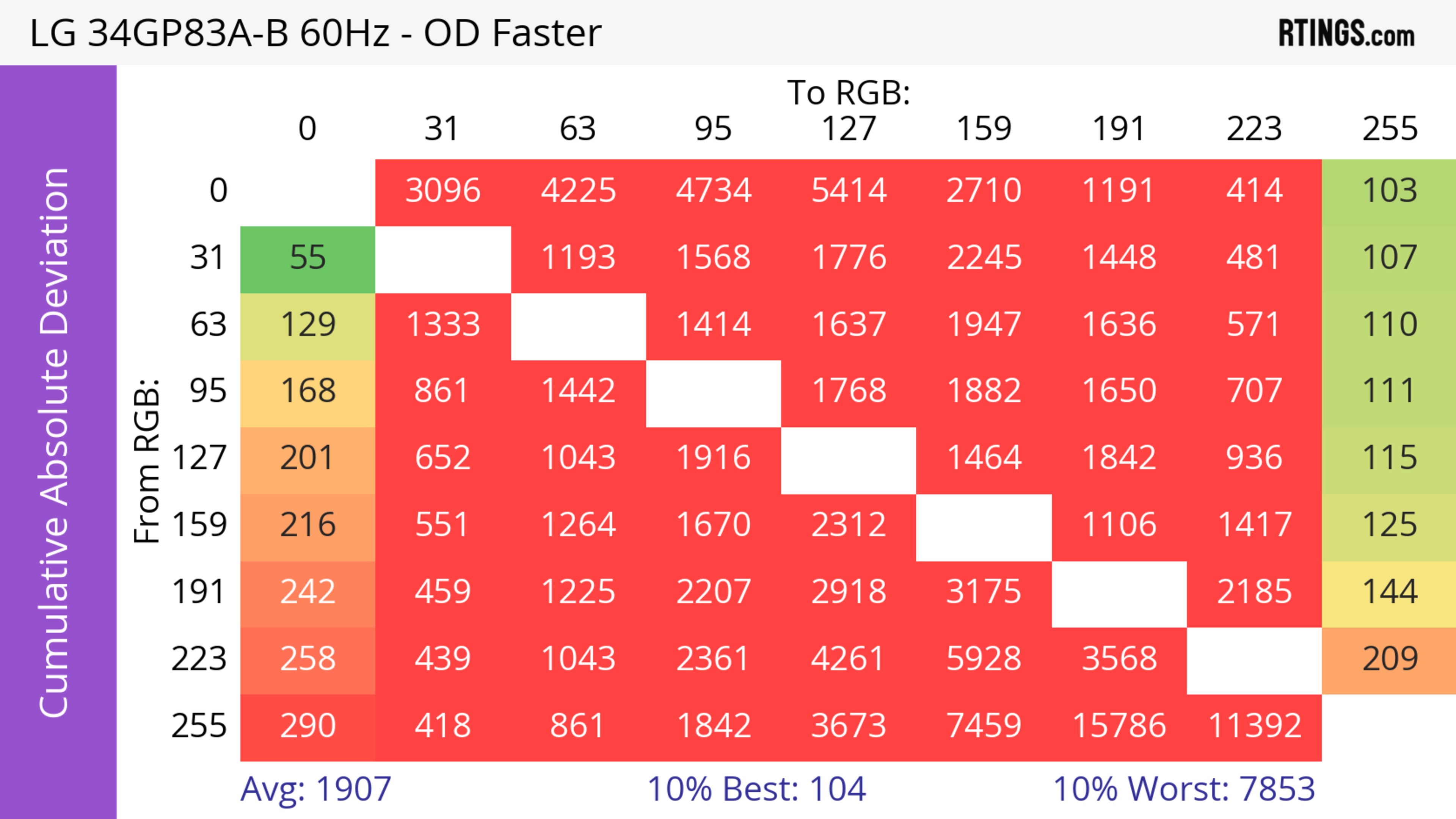 The CAD at 60Hz is good. The 'Normal' overdrive setting has the fastest total response time and almost no overshoot, unlike at higher refresh rates.