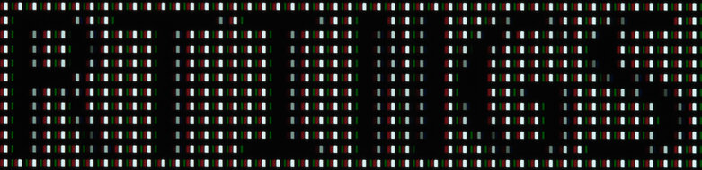As this uses a RWBG subpixel layout, all four pixels are never on at the same time, but you can see different pixel combinations below: