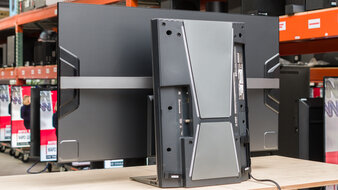 You can adjust the LG 42 OLED Flex in a couple of different ways, but its overall ergonomics are unfortunately limited as you can't remove the stand, meaning you can't wall-mount it. The back has a stylish design with a silver and gray finish and RGB lighting. You can remove the covers for cable management, and you can also route cables through the clips on the stand. If you want a curved monitor to be rotated into portrait mode, consider the Samsung Odyssey Ark S55BG970.