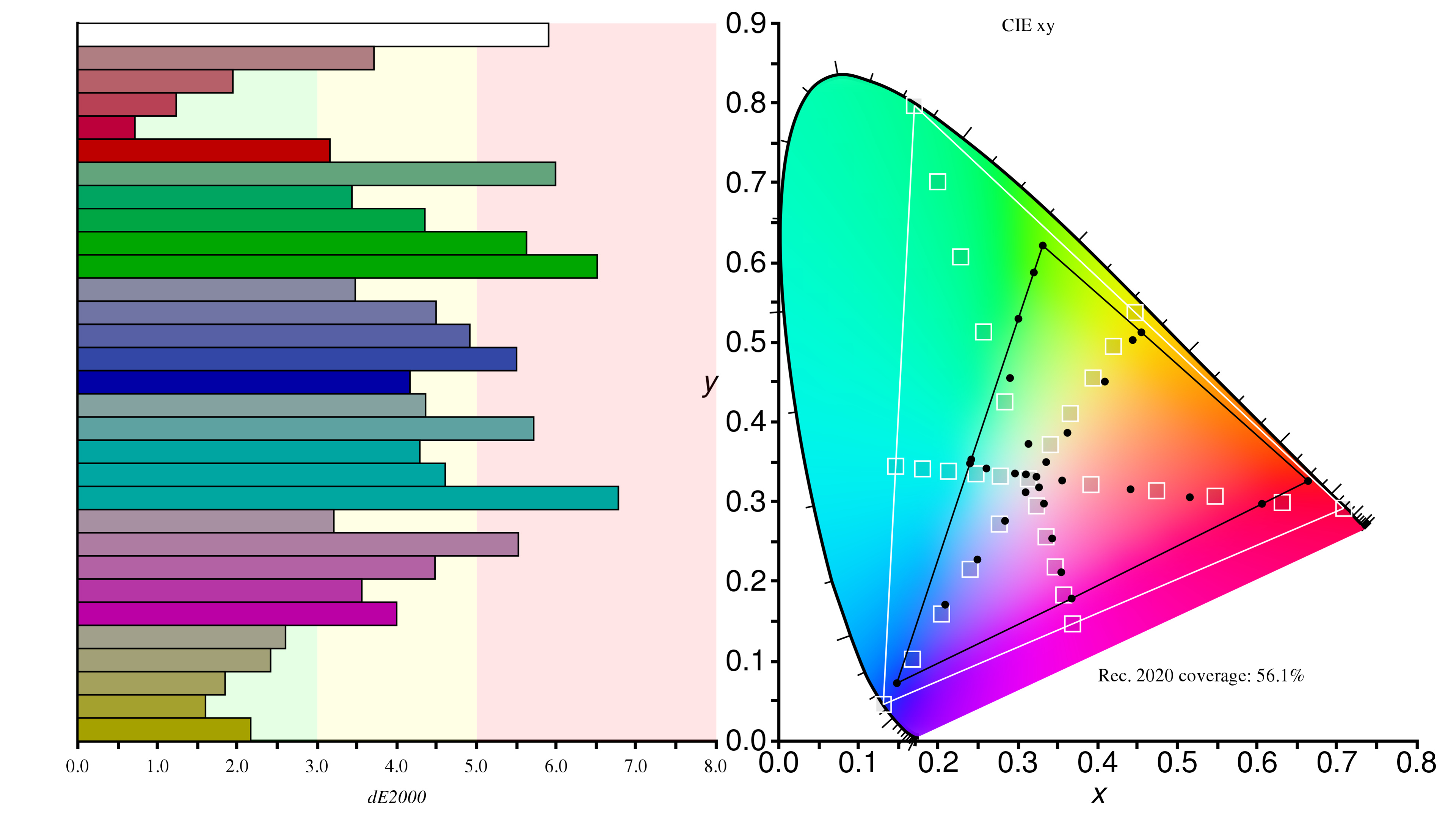 Great overall color gamut, but it can't display the entire sRGB color space, which is a bit disappointing. It has only decent coverage of the wider Adobe RGB color space, which isn't ideal for professional photo editing. These results are slightly worse than the Dell U4919DW and the Samsung C49RG9/CRG9.