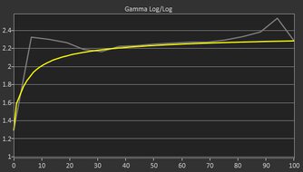 These results are in the 'Peak 1000 nits' DisplayHDR mode, which lets it get bright, but it has an aggressive ABL. This can be noticeable when you're on the desktop, as you'll see some changes in brightness when opening and closing windows. If that bothers you, you can also use the 'True Black 400' DisplayHDR mode, for which you can see the results below. It doesn't get as bright, but the EOTF is also much better, following the target almost perfectly.
