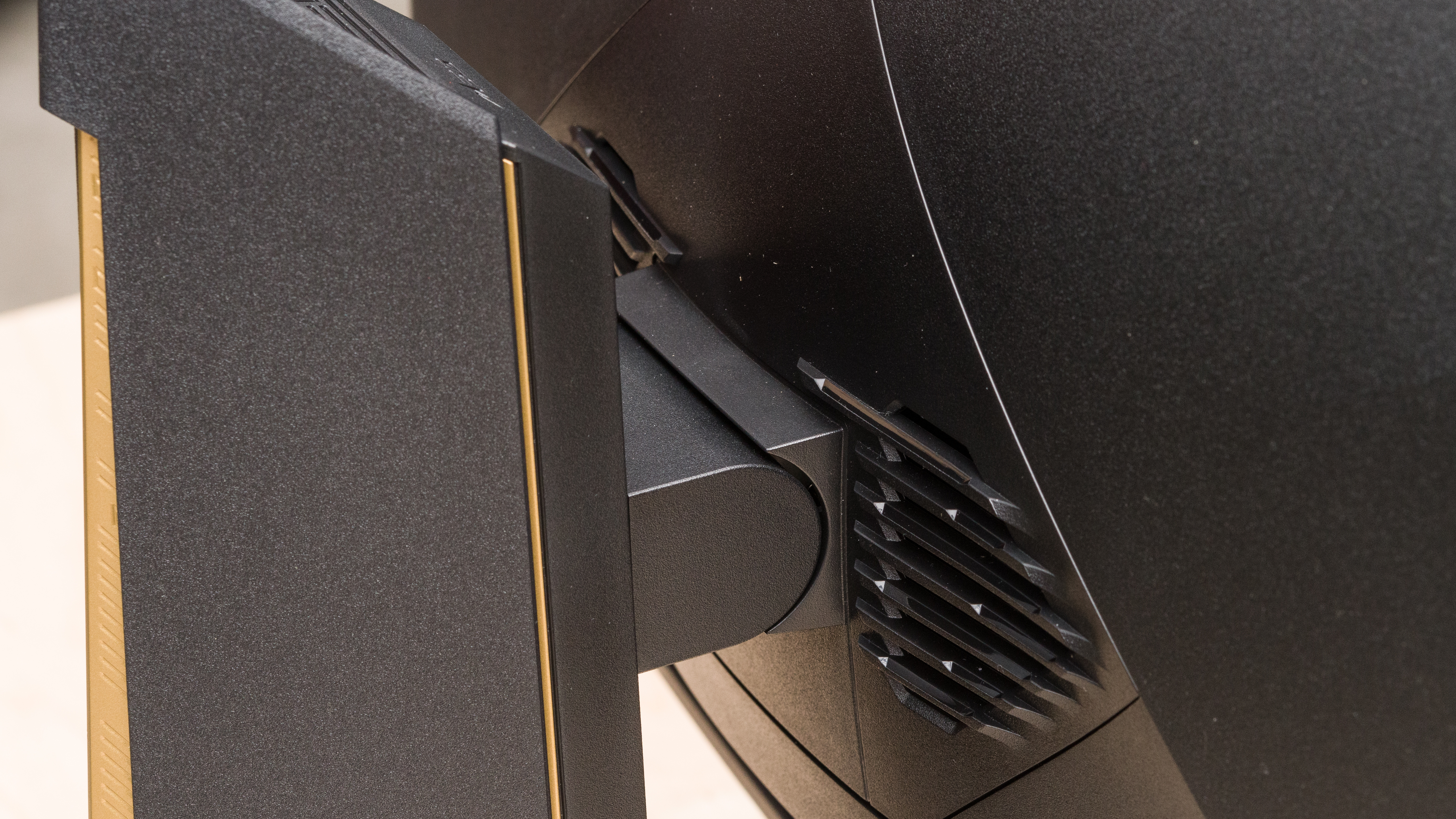 The ergonomics are decent for an ultrawide monitor, but without having swivel range, it can be difficult to turn the screen to show to a friend. The back features matte plastic with vents on top, and cable management is serviced through the stand.