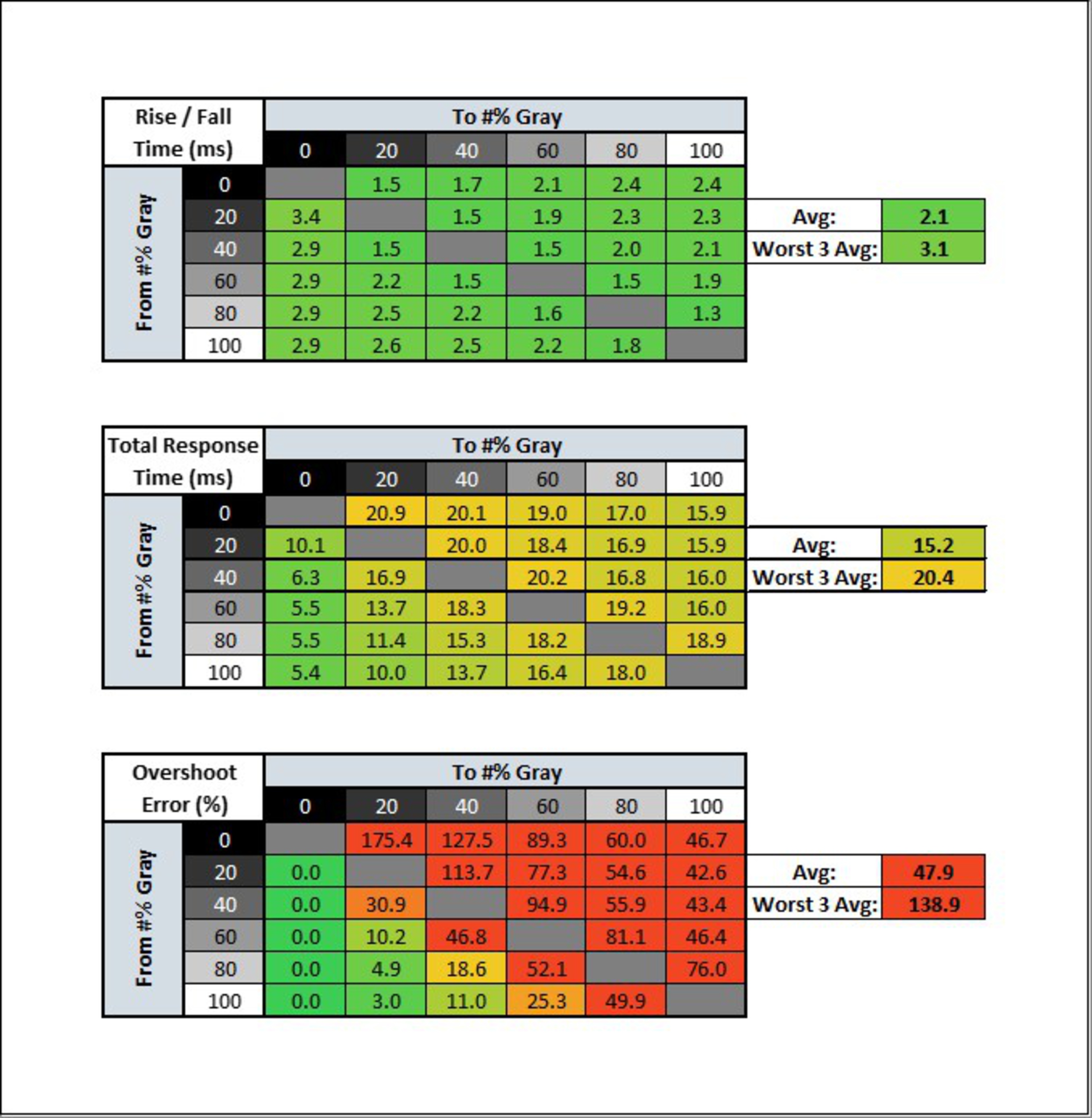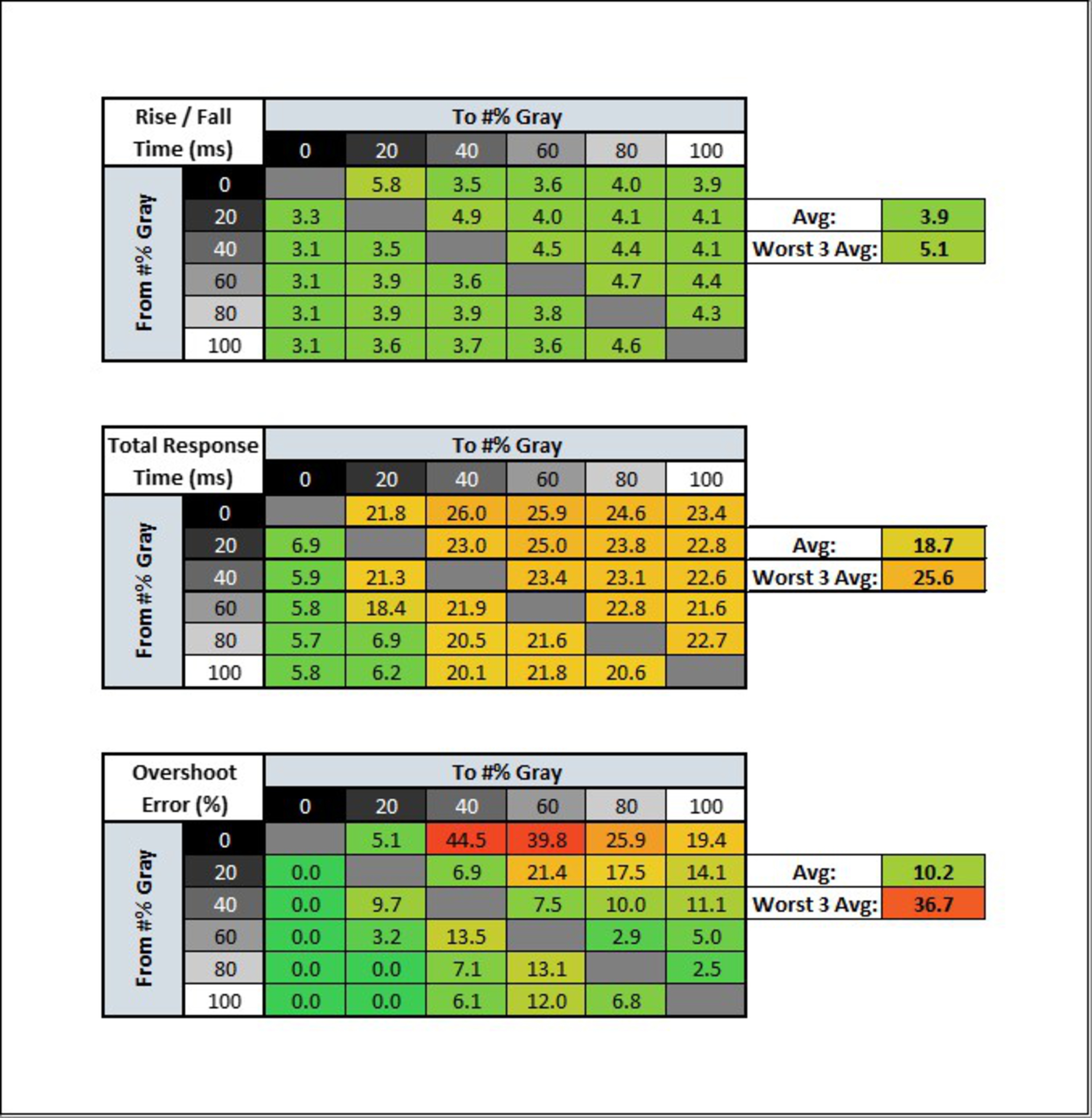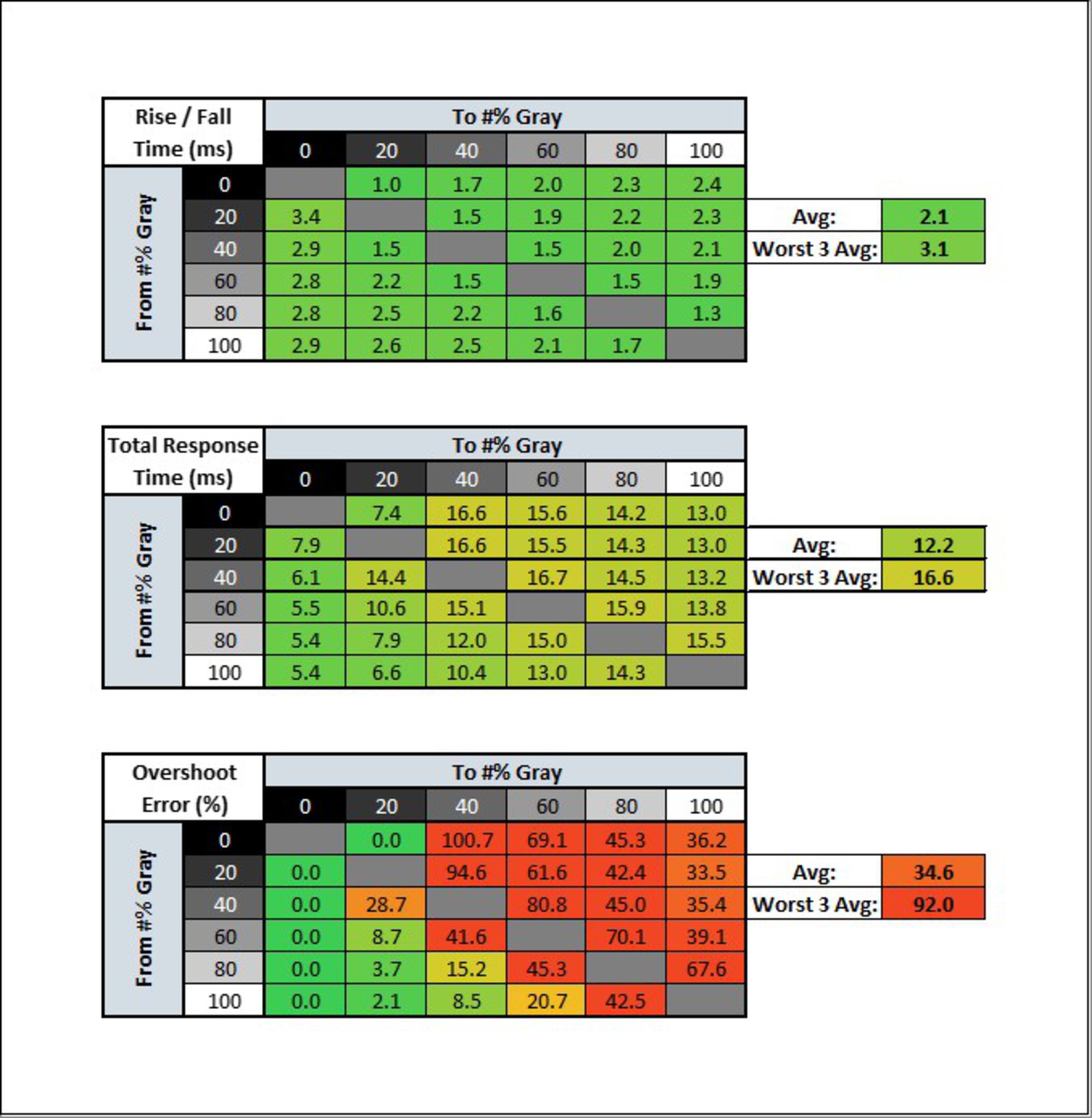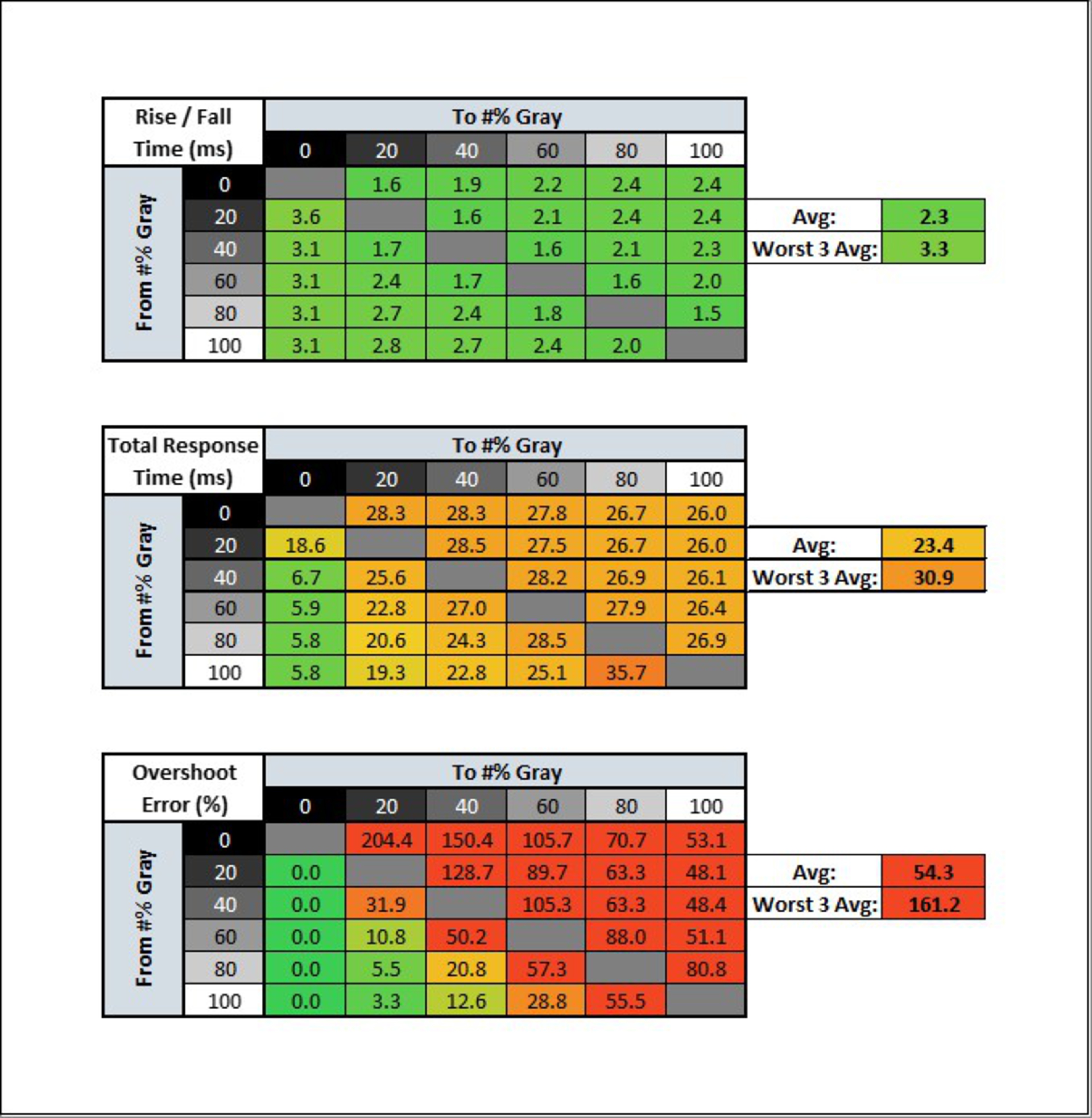| Overdrive Setting | Response Time Chart | Response Time Tables | Motion Blur Photo |
