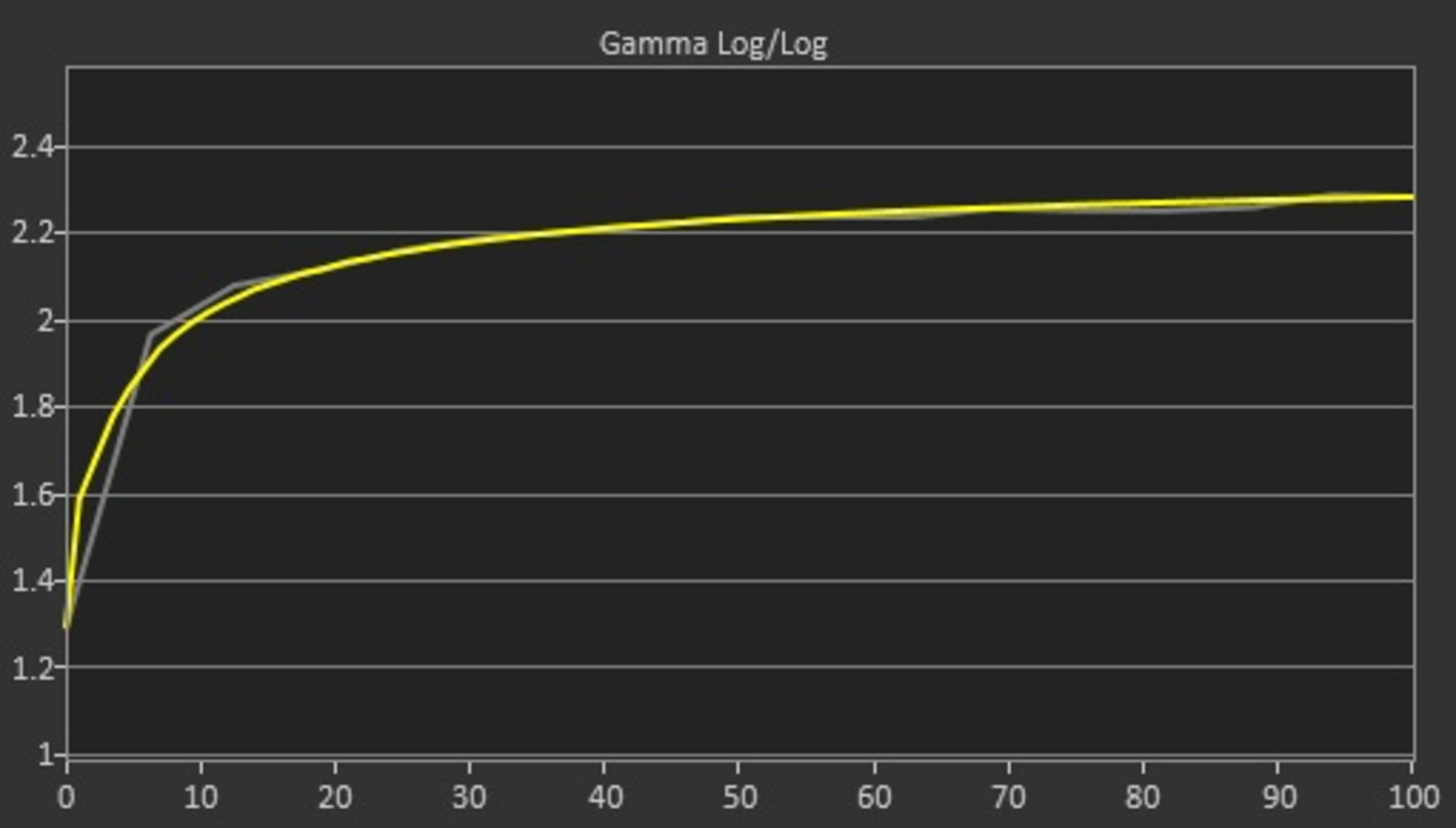 Out of the box, when set on the 'Standard' picture mode, the accuracy of the monitor is disappointing. The white balance dE and color dE are both higher and the inaccuracy could be noticed by most enthusiasts out there. The overall gamma is close to our 2.4 target, but the curve is not tracking the target very closely.
