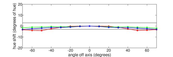 Okay out-of-the-box color accuracy. Most colors are inaccurate and the color temperature is warm, giving the image a red-yellow tint. The white balance is off, which affects shades of gray. Also, gamma seems to follow a target of 2.0 instead of the sRGB curve, so most scenes are brighter than they should be.