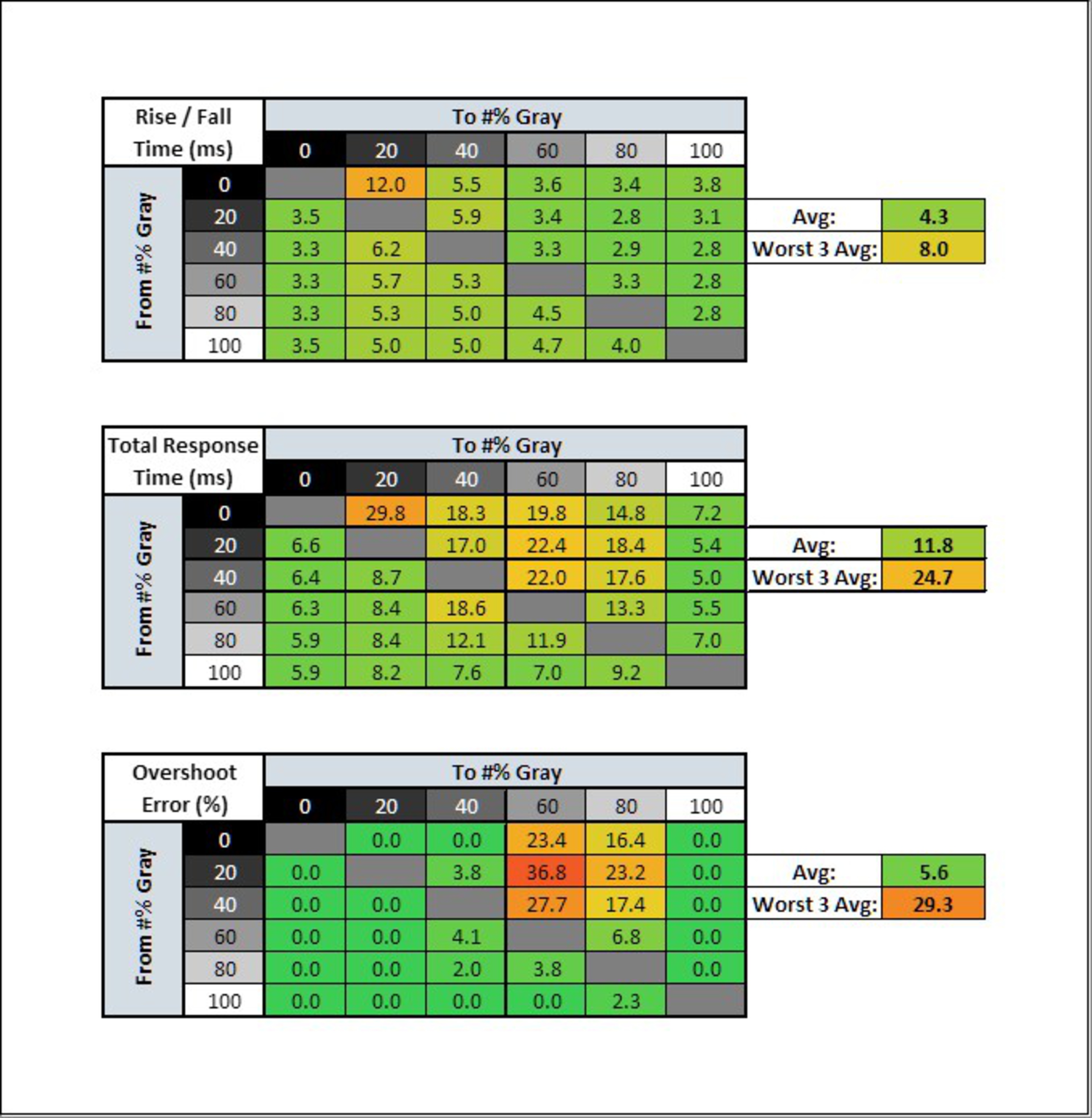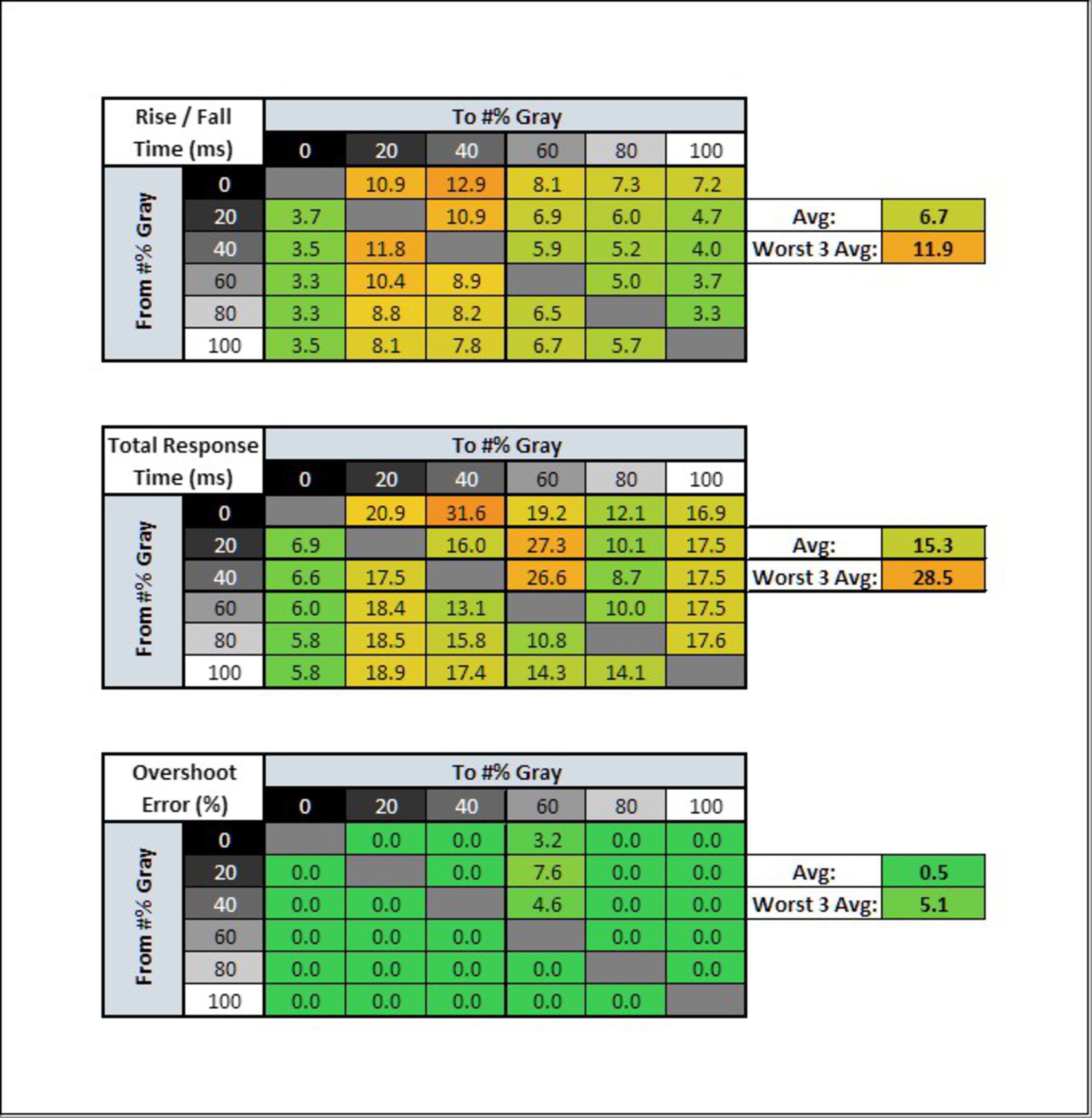 | Picture Mode | Response Time Chart | Response Time Tables | Motion Blur Photo |