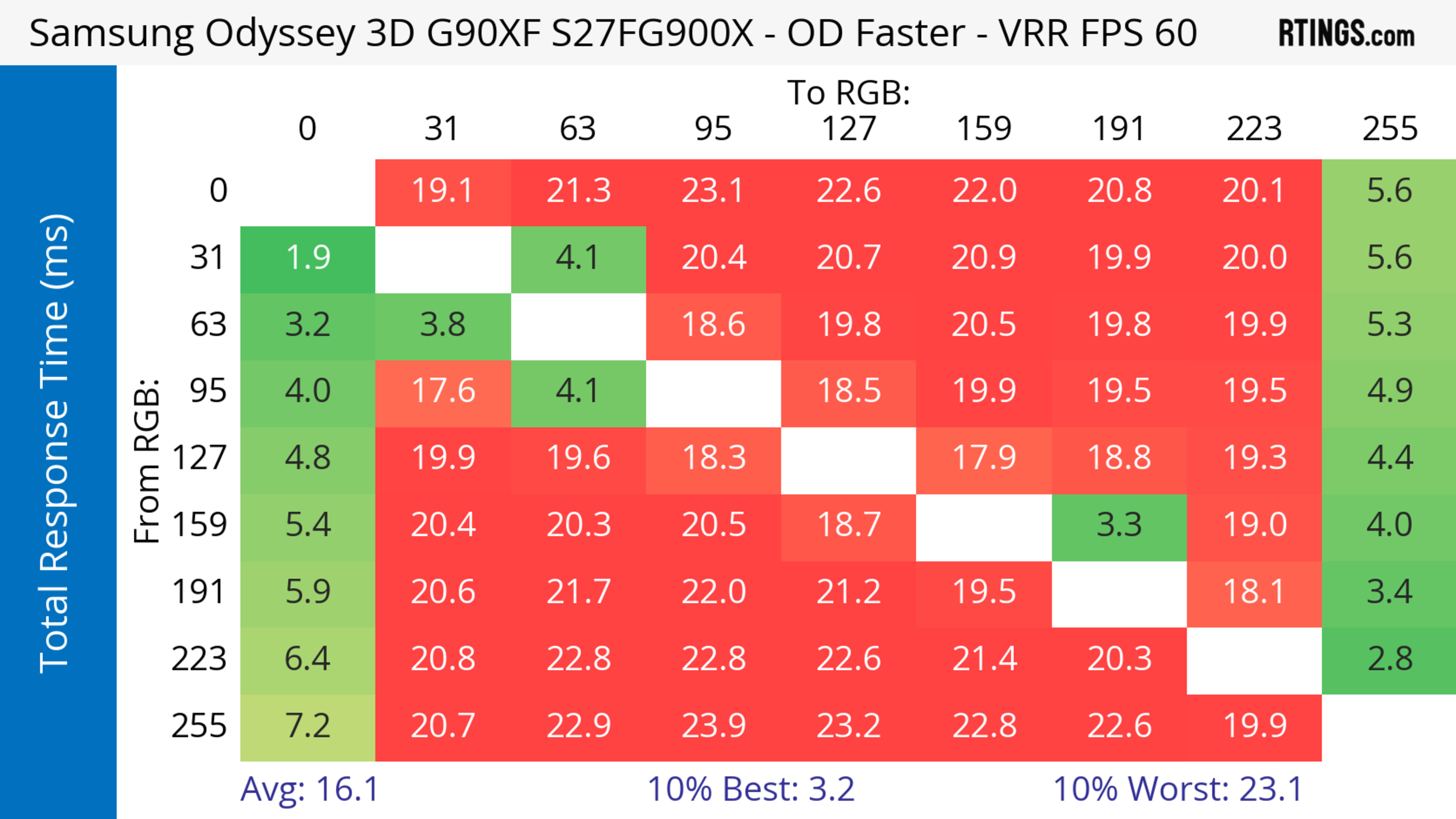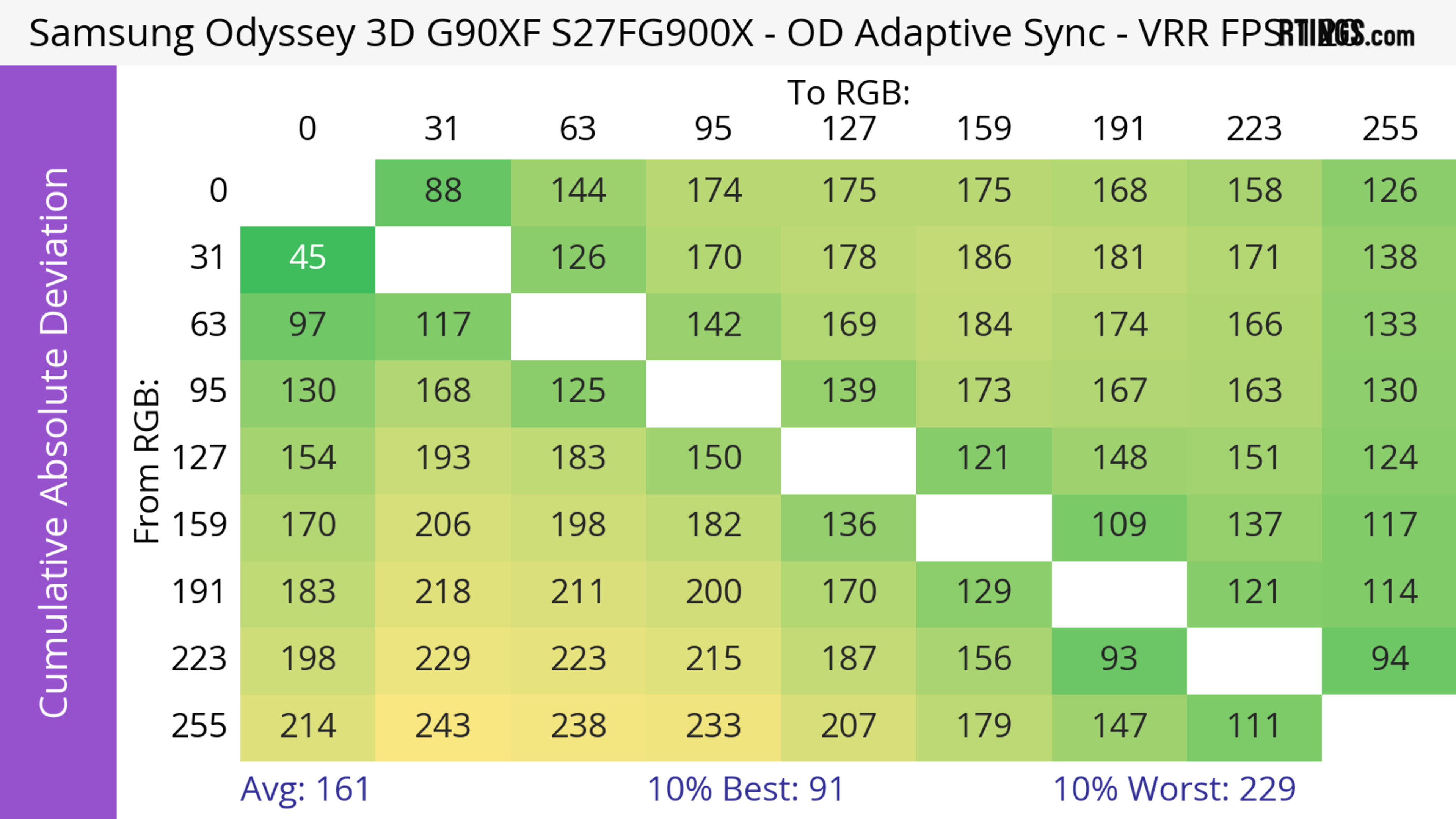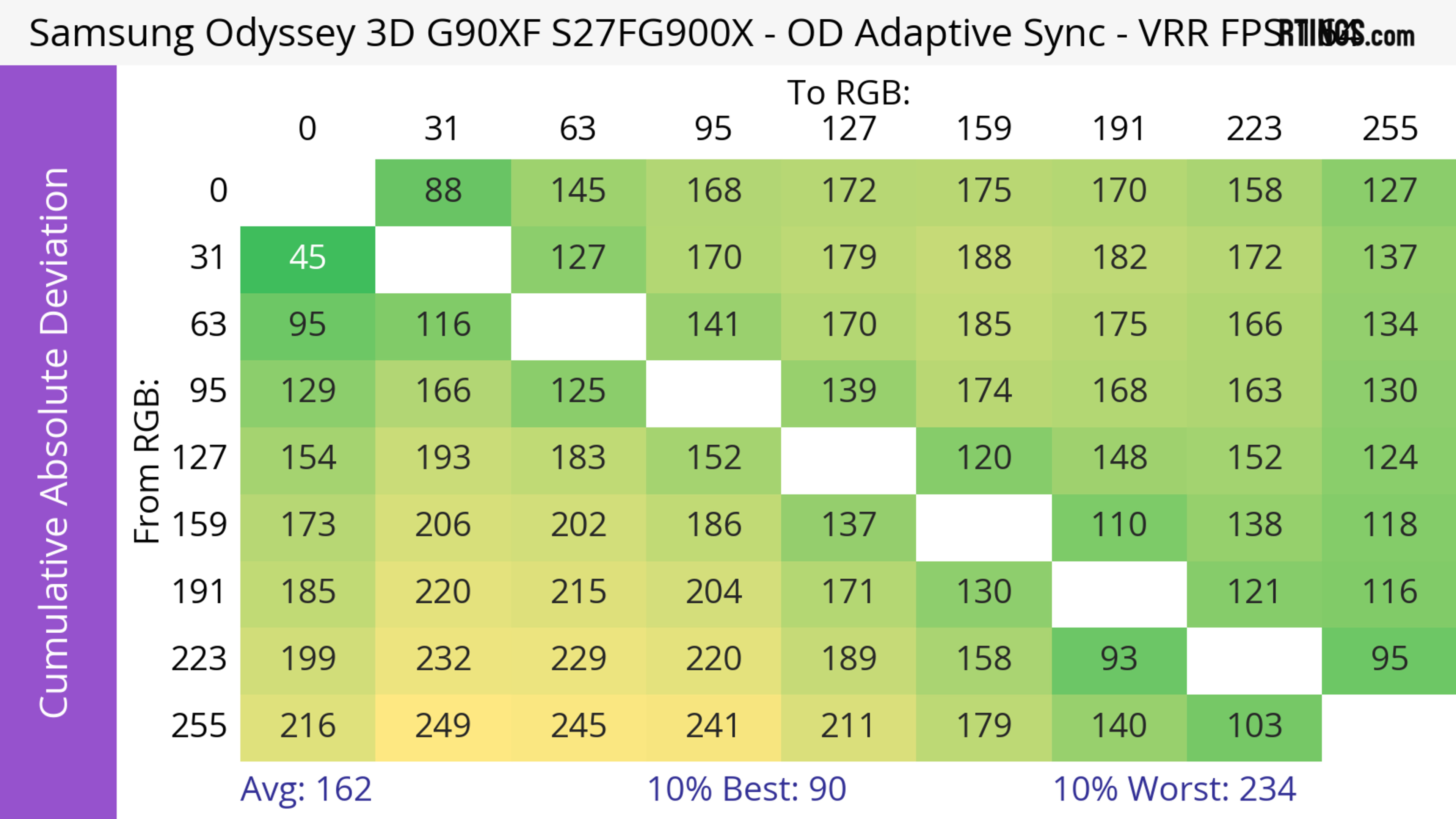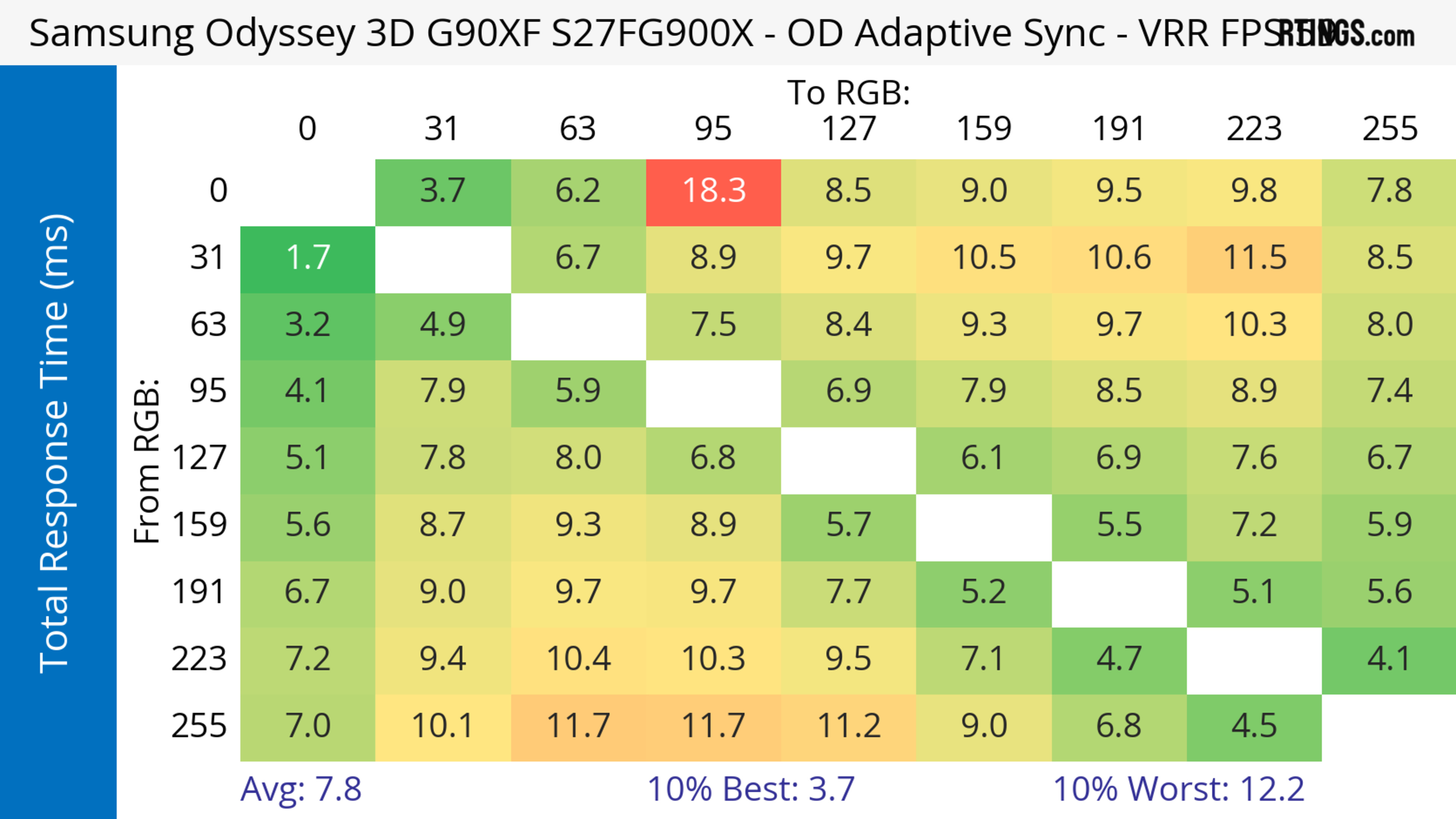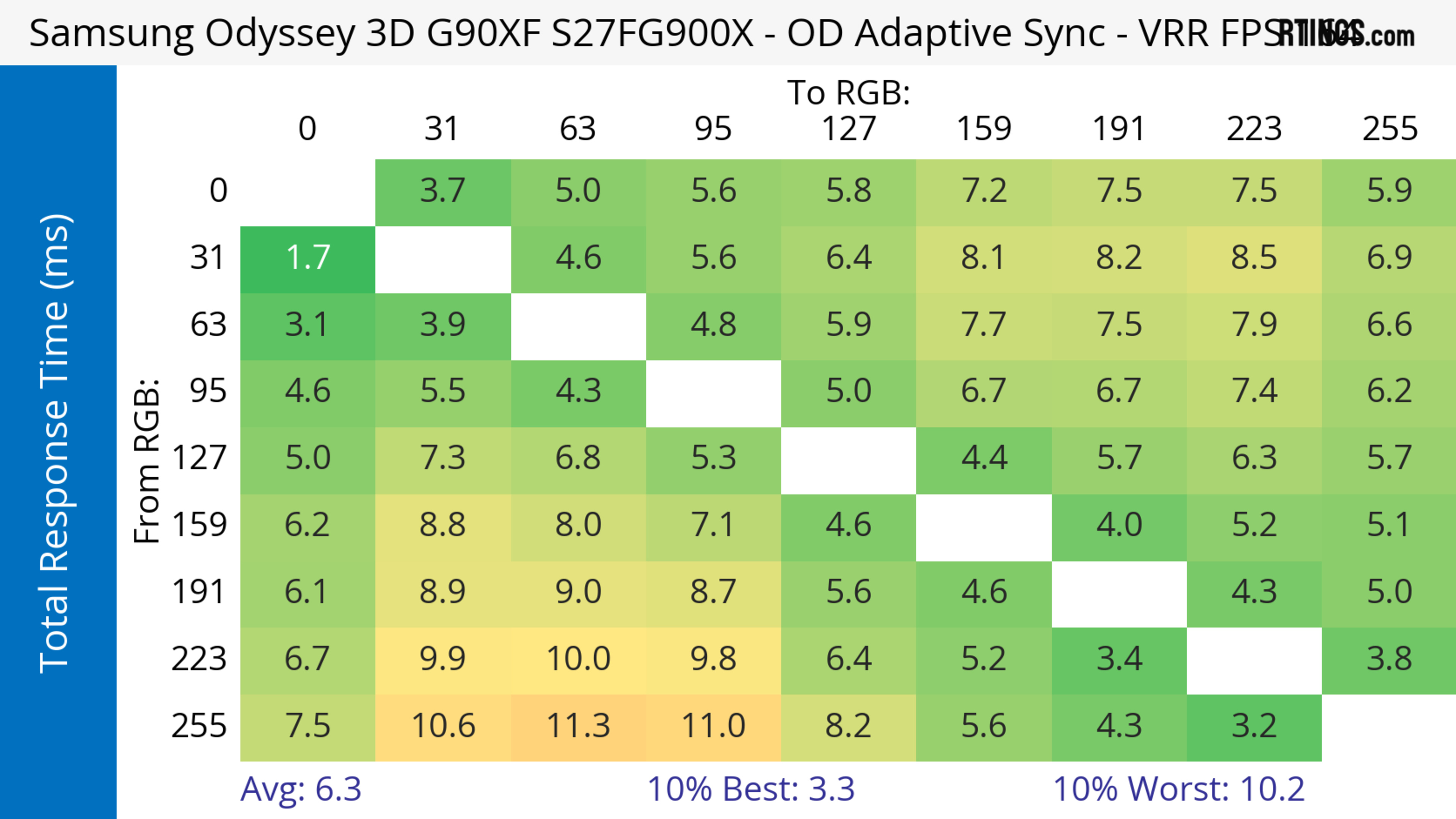 The Samsung G90XF has very good motion handling across its VRR range. The 'Adaptive-Sync' Response Time setting is the only overdrive setting available when you enable VRR.