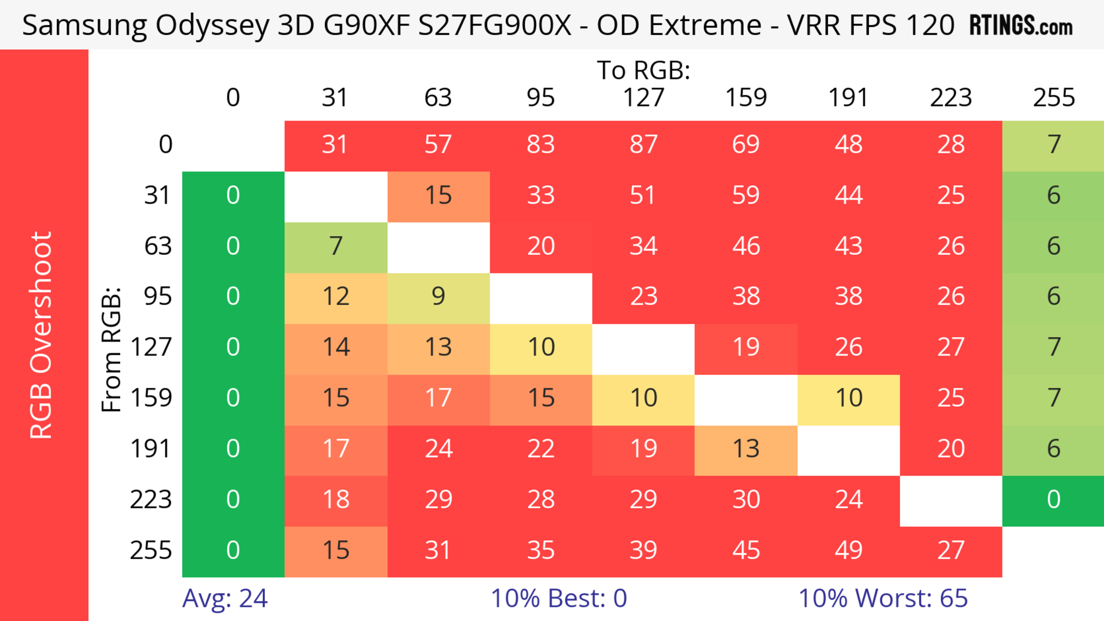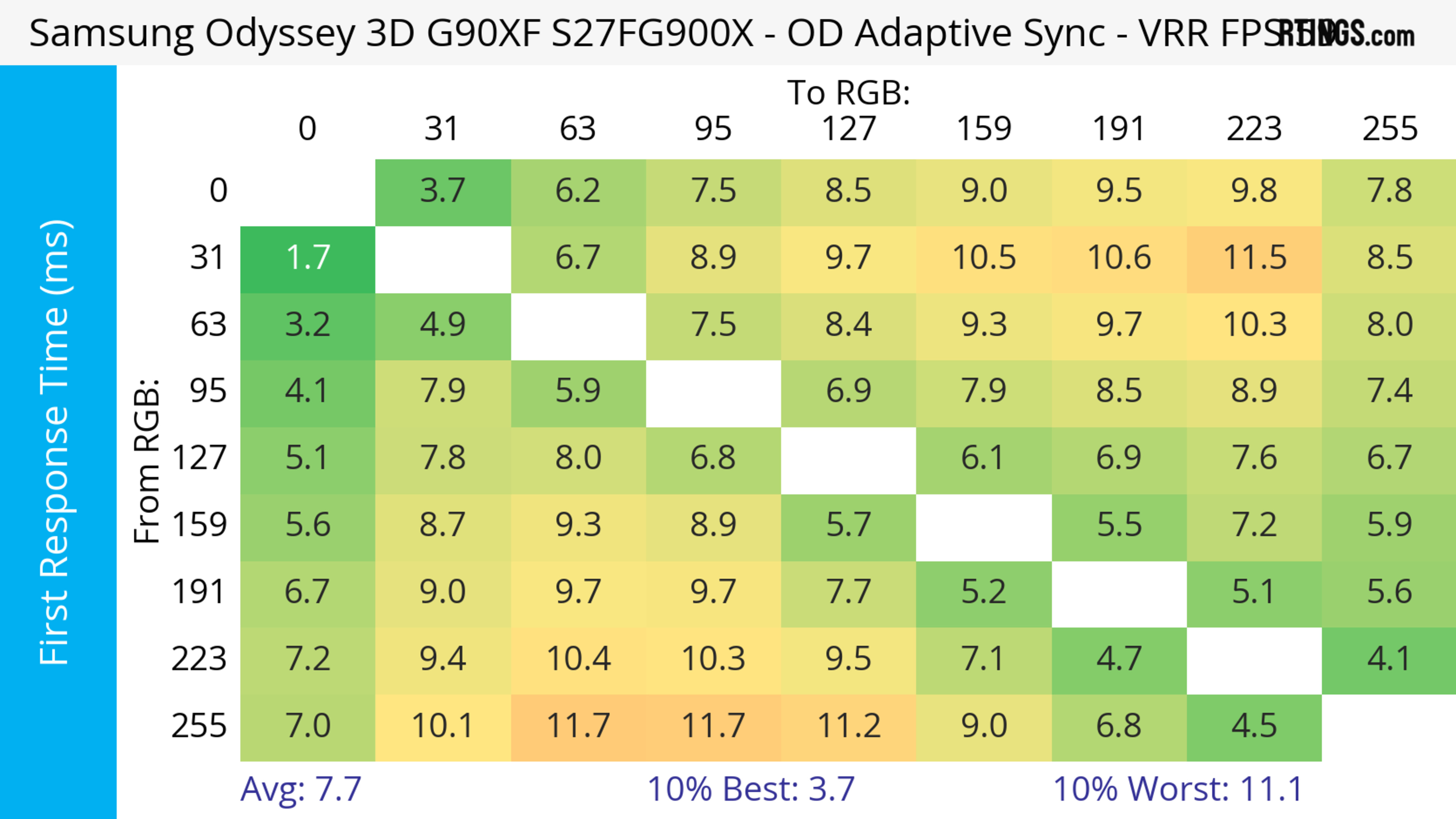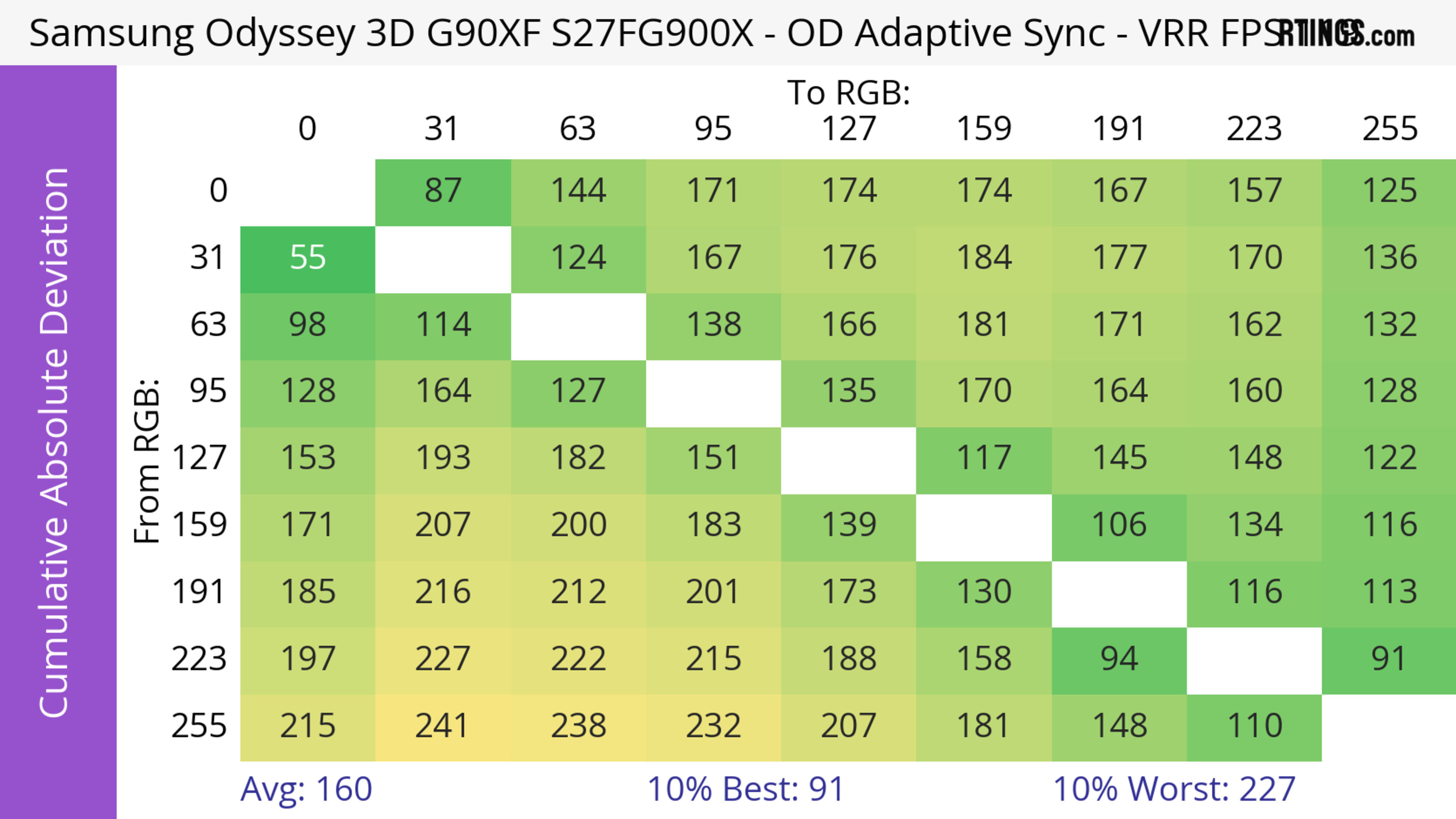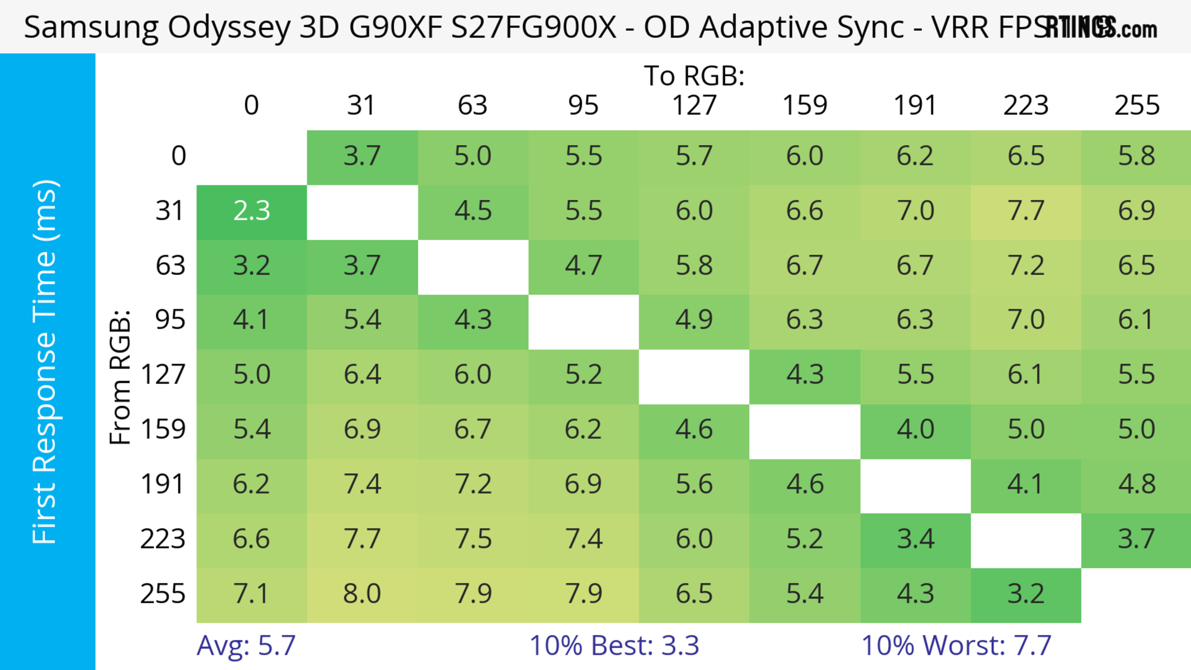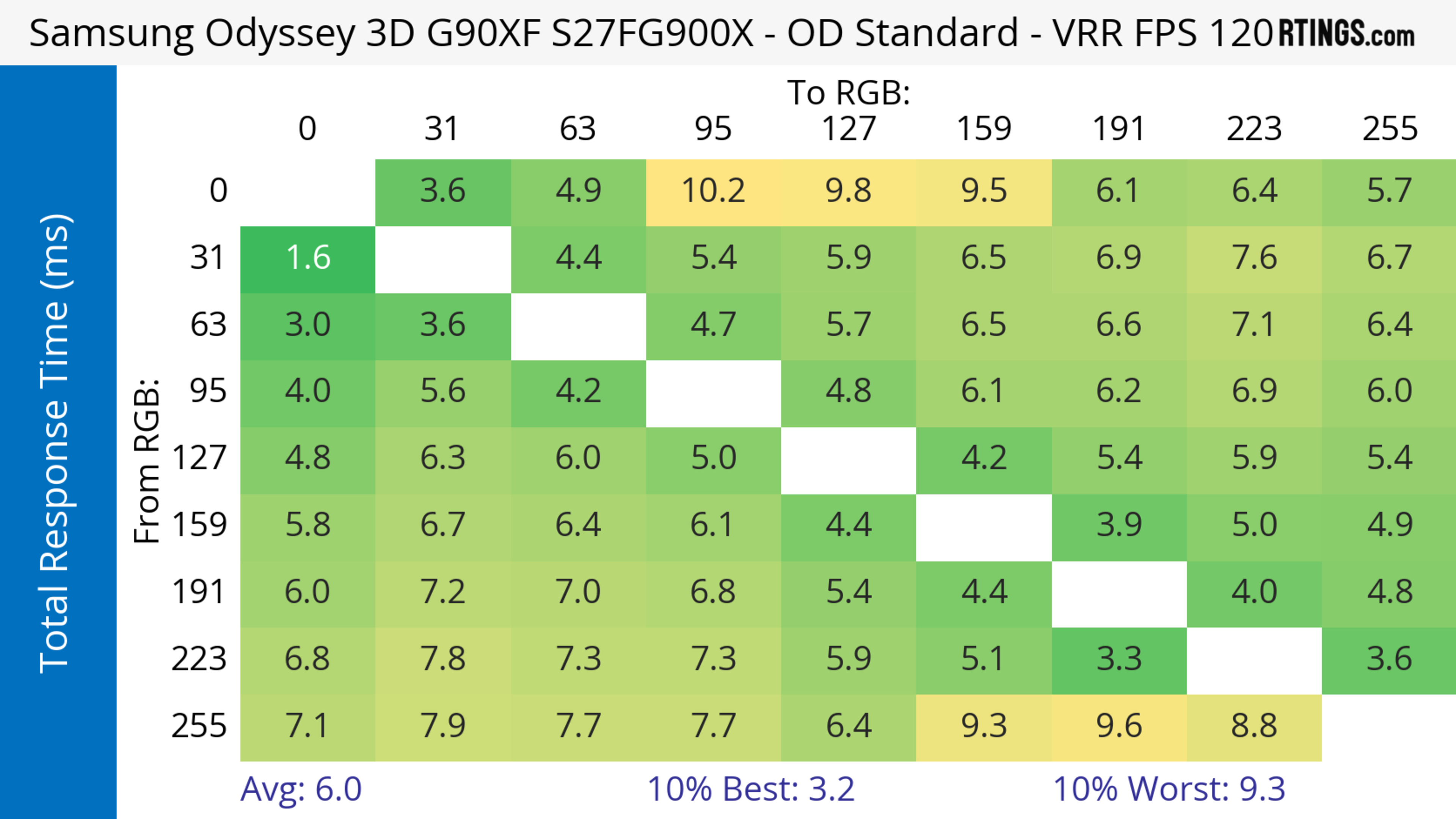 The Samsung G90XF has very good motion handling across its VRR range. The 'Adaptive-Sync' Response Time setting is the only overdrive setting available when you enable VRR.