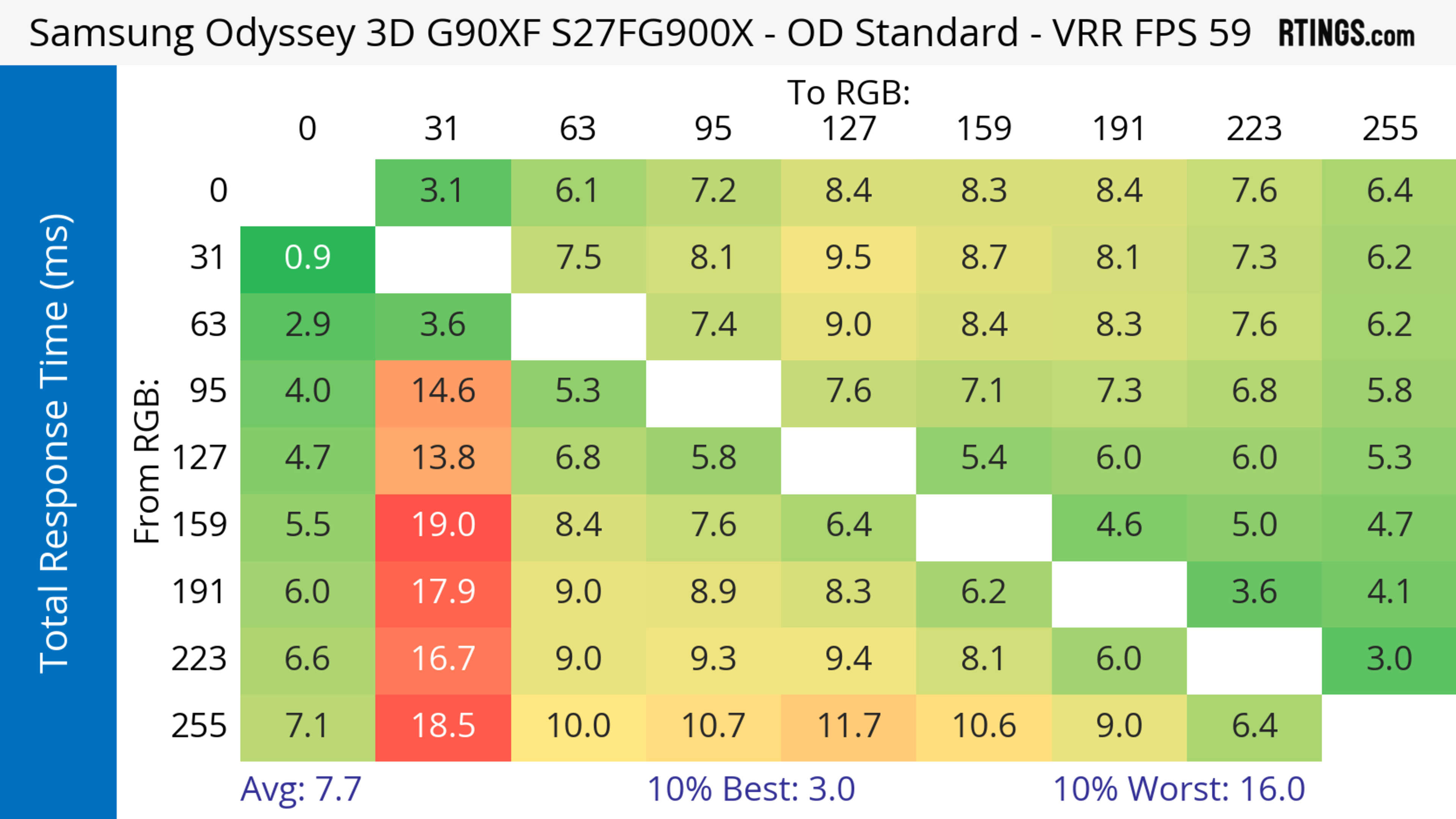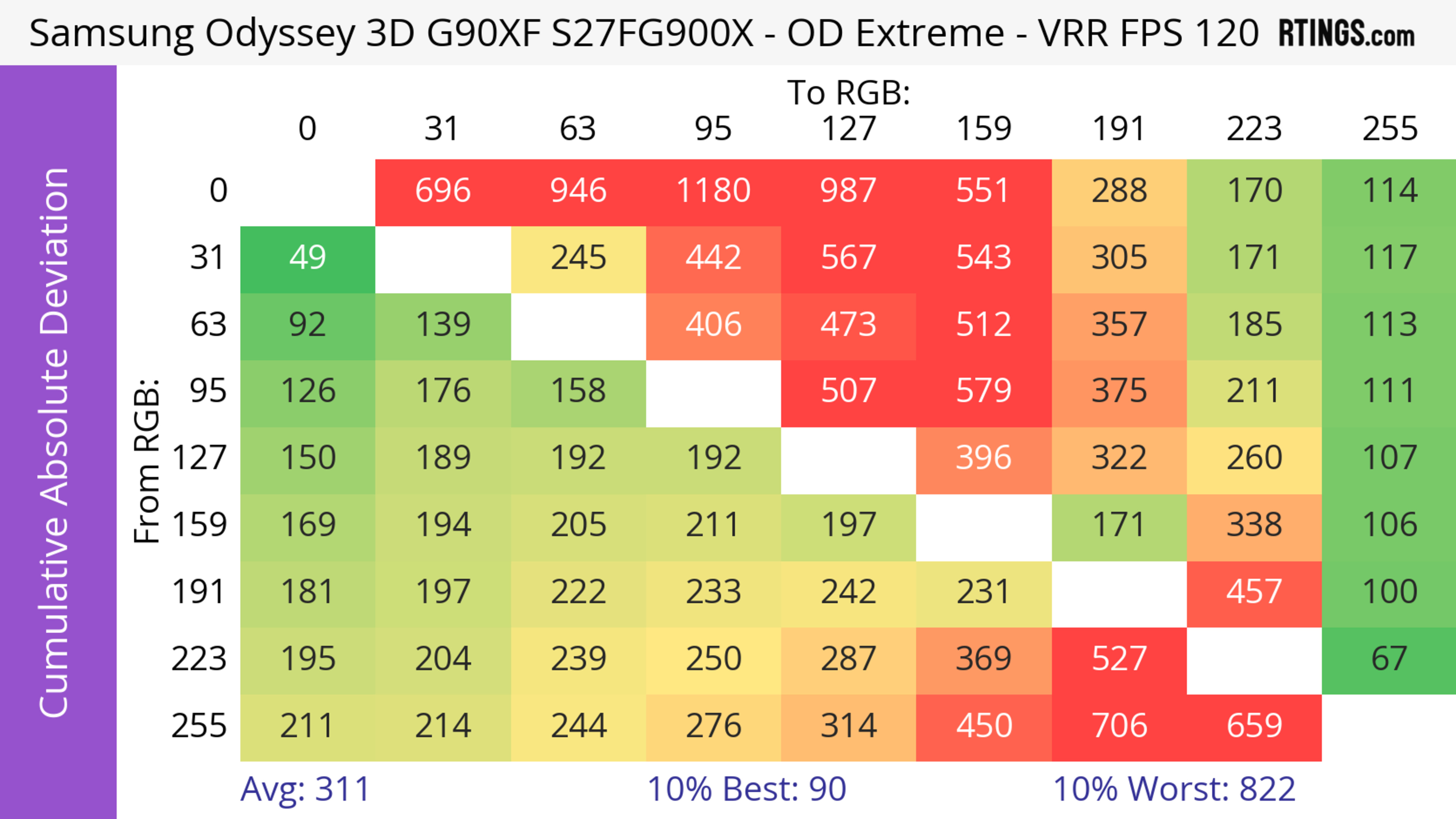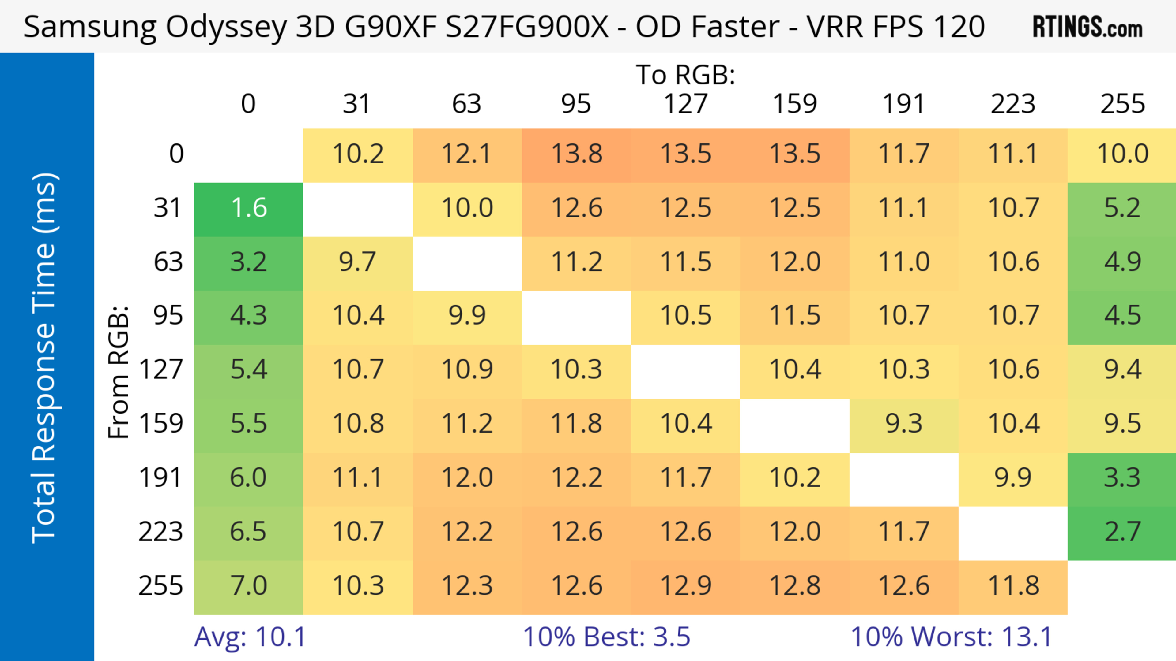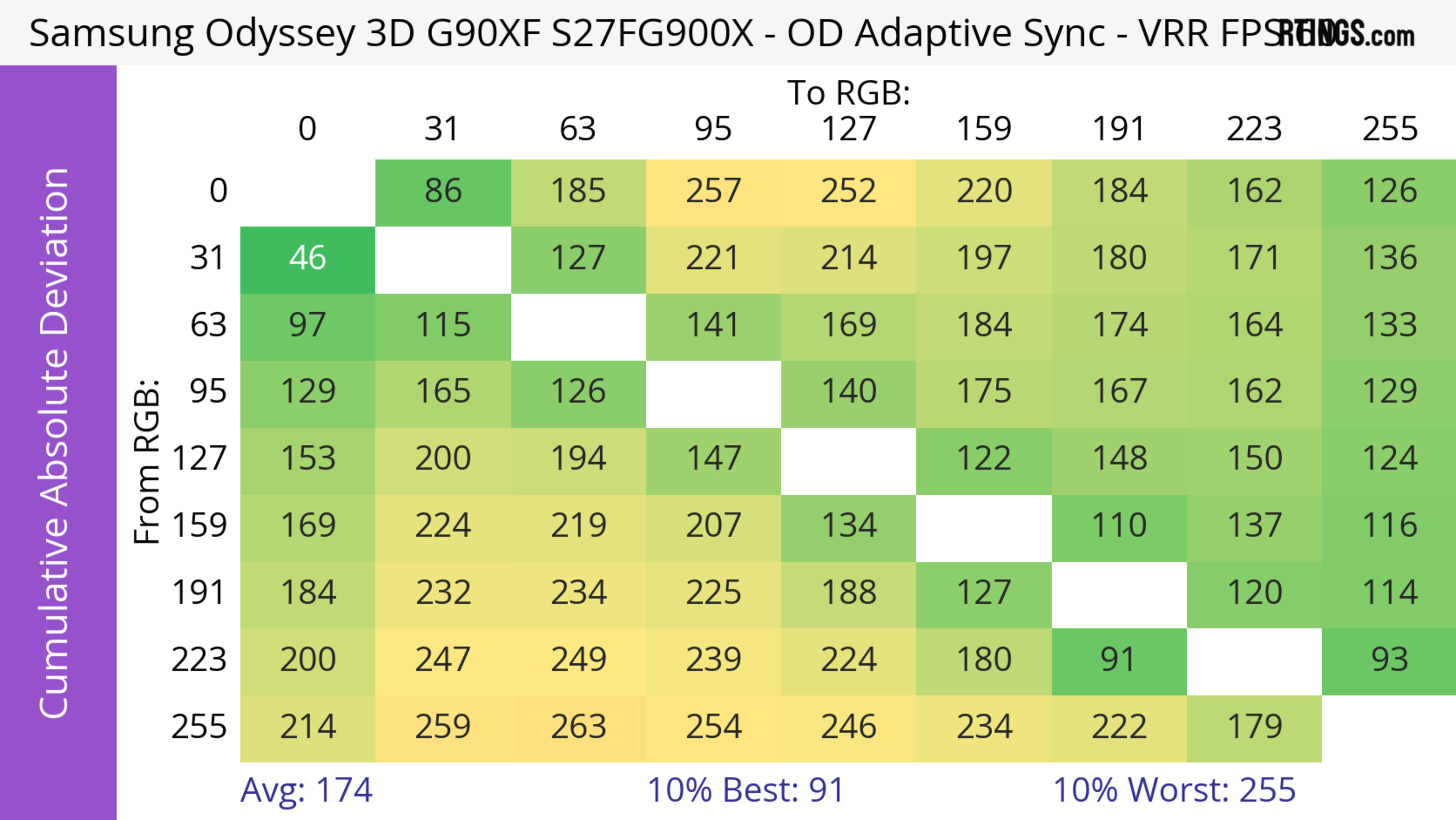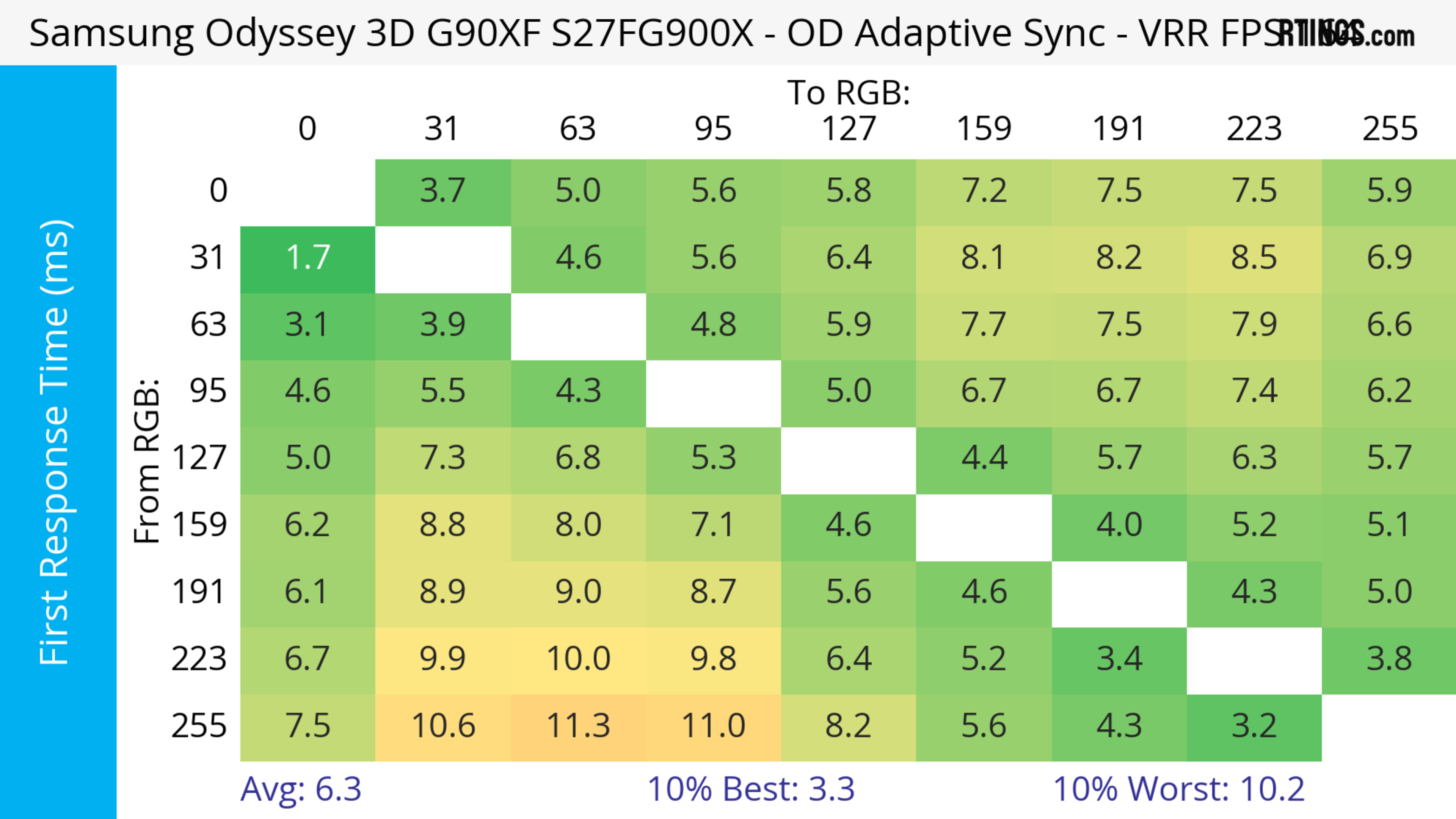 The Samsung G90XF has very good motion handling across its VRR range. The 'Adaptive-Sync' Response Time setting is the only overdrive setting available when you enable VRR.
