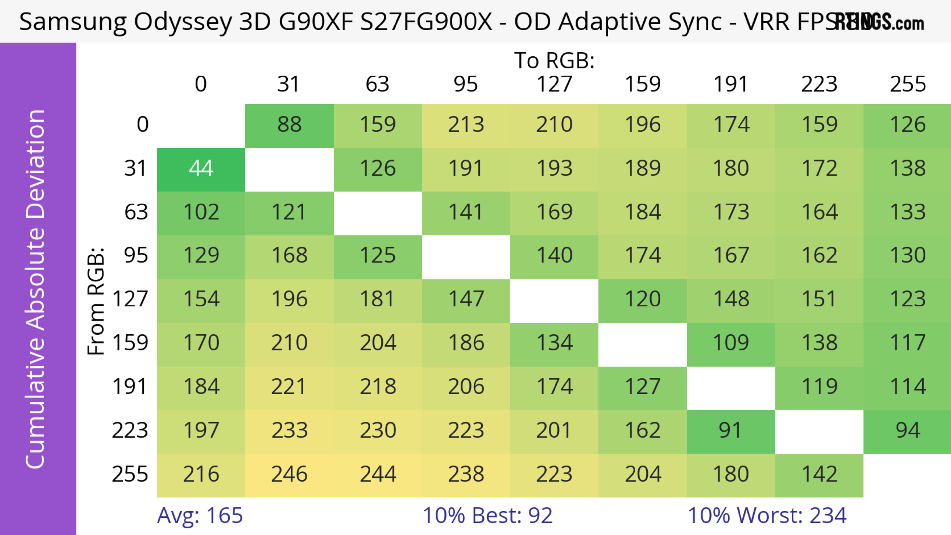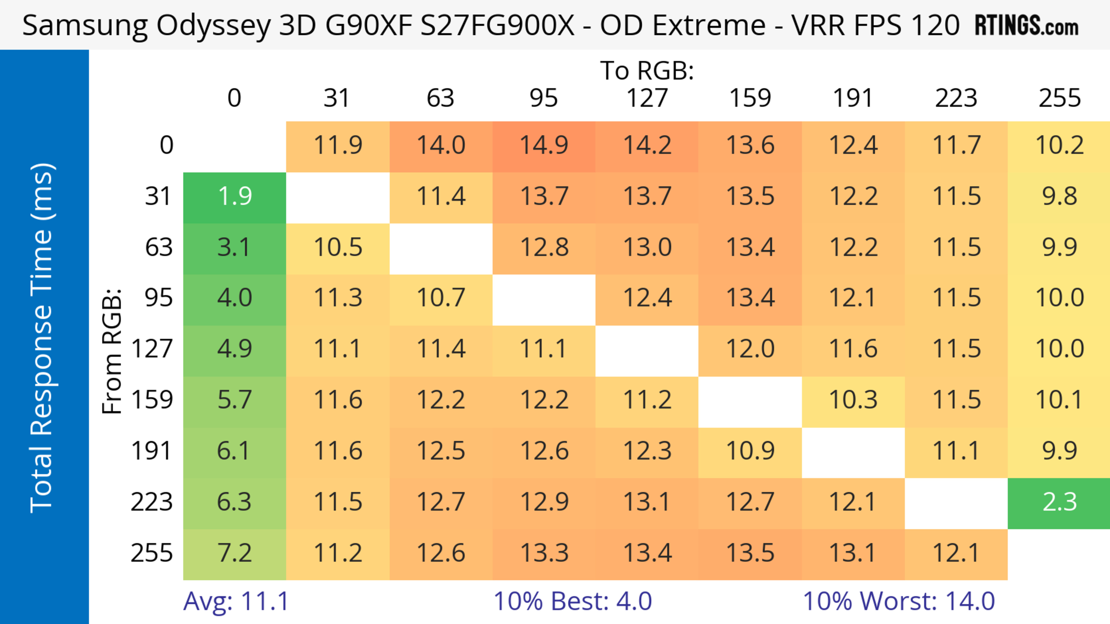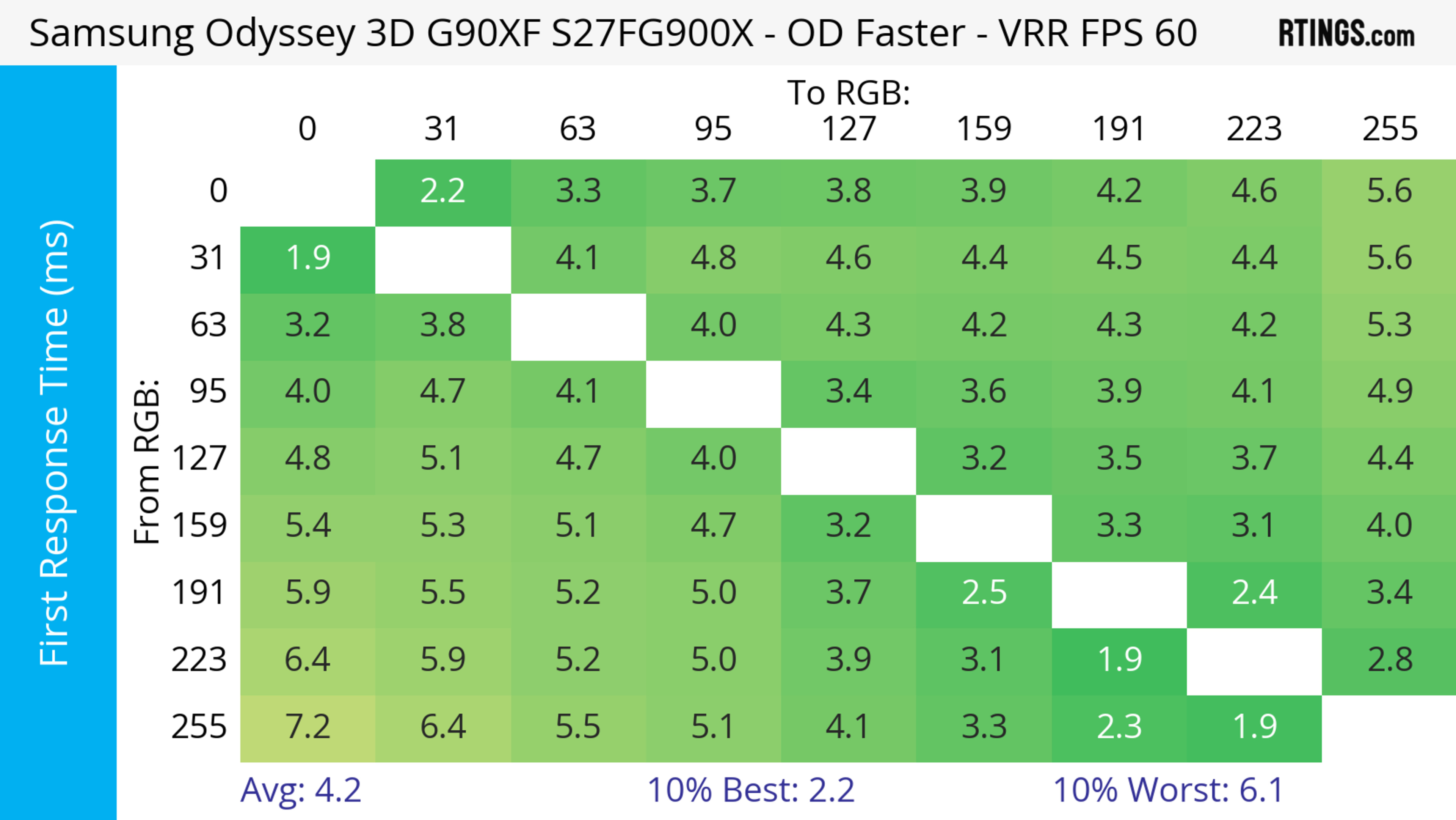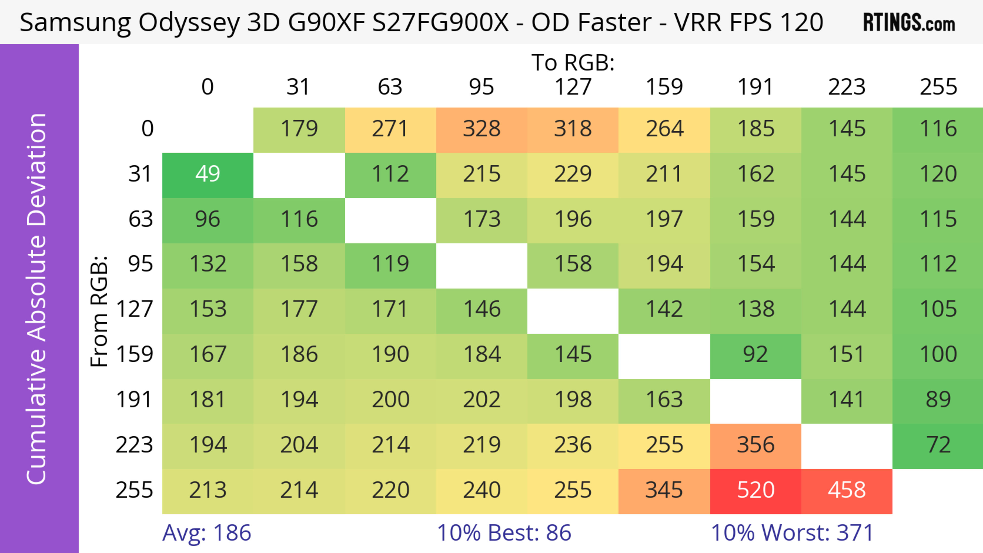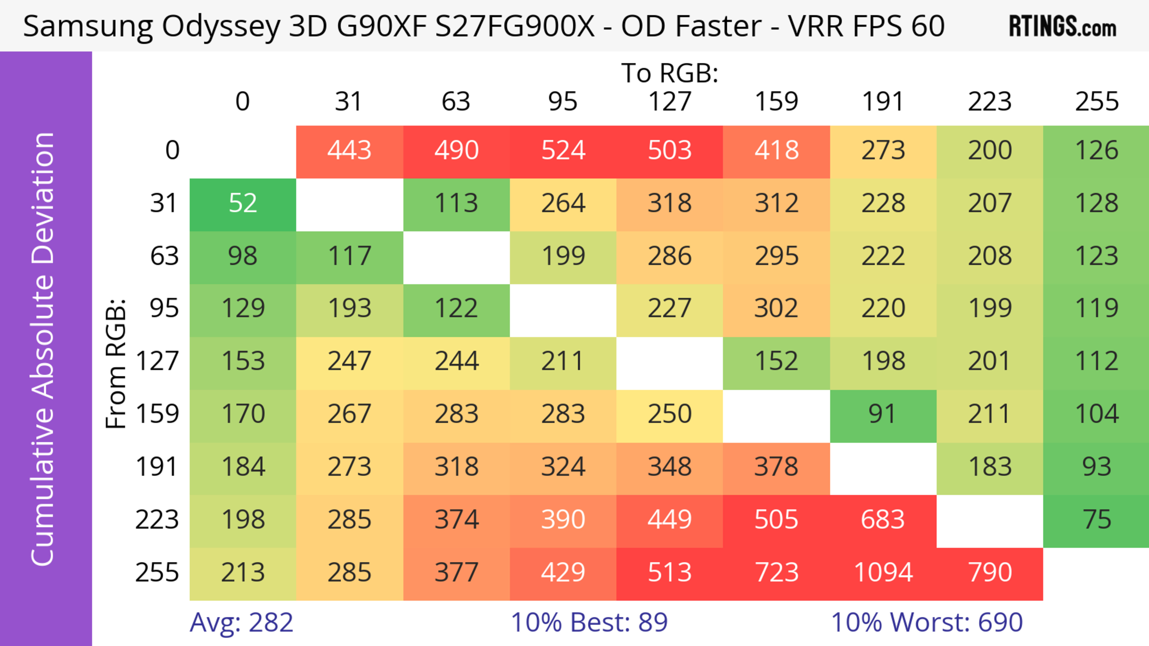 The Samsung G90XF has very good motion handling across its VRR range. The 'Adaptive-Sync' Response Time setting is the only overdrive setting available when you enable VRR.
