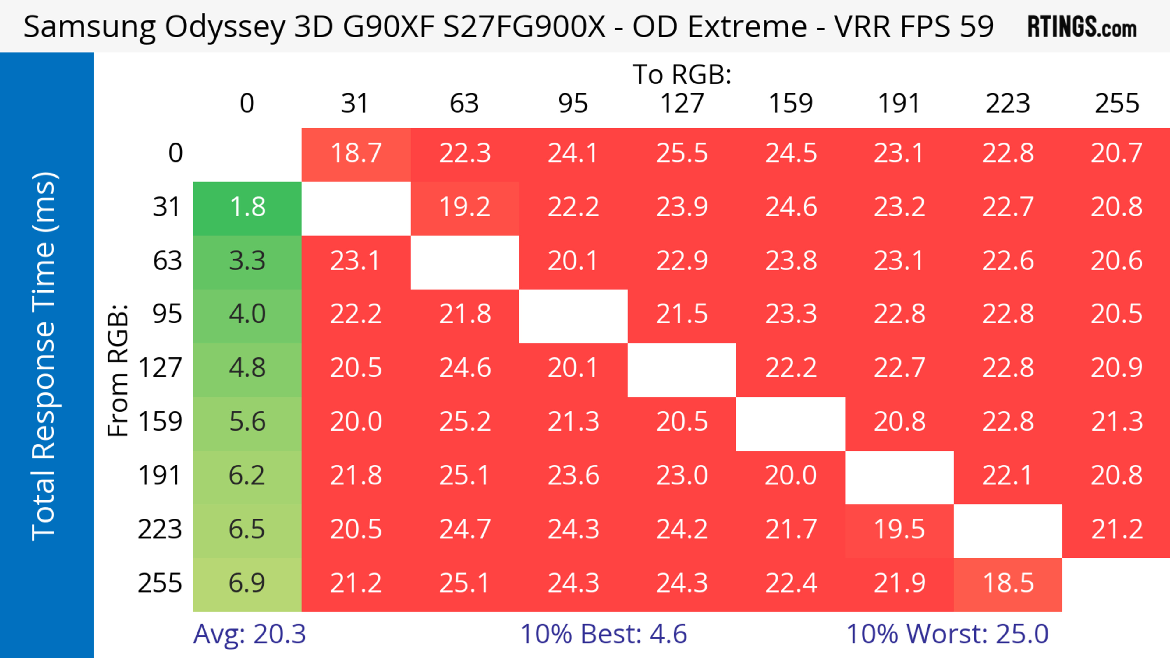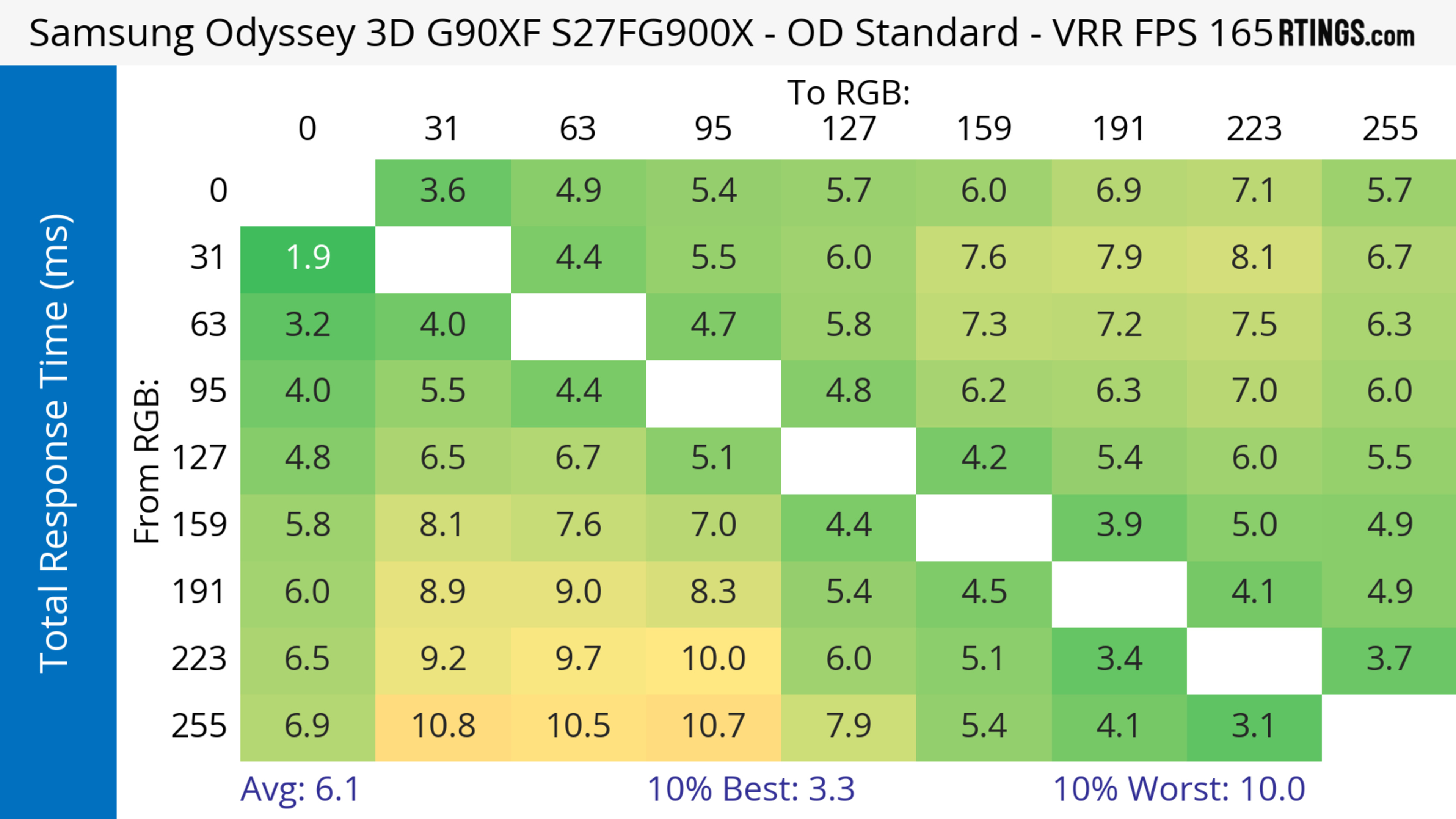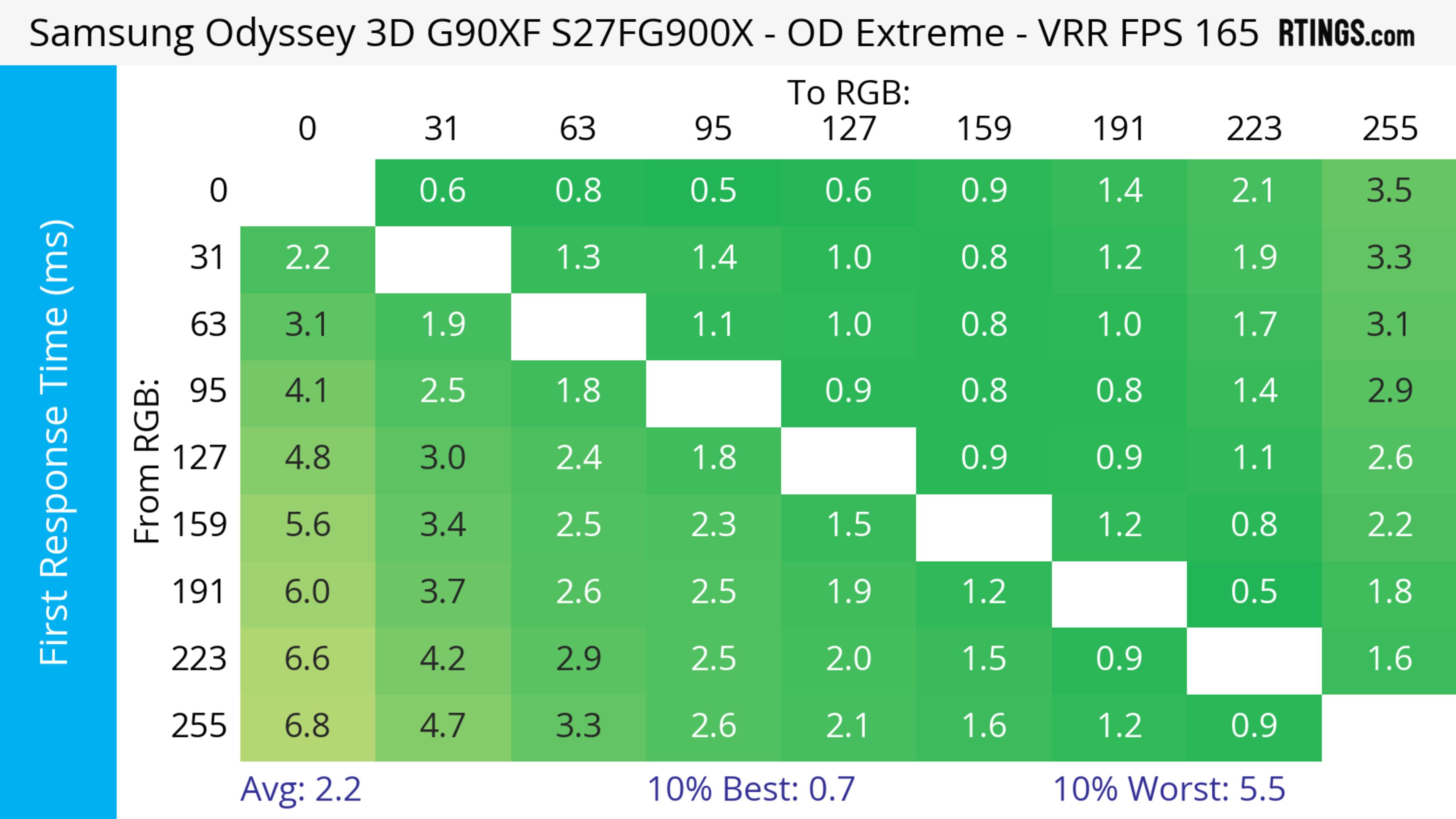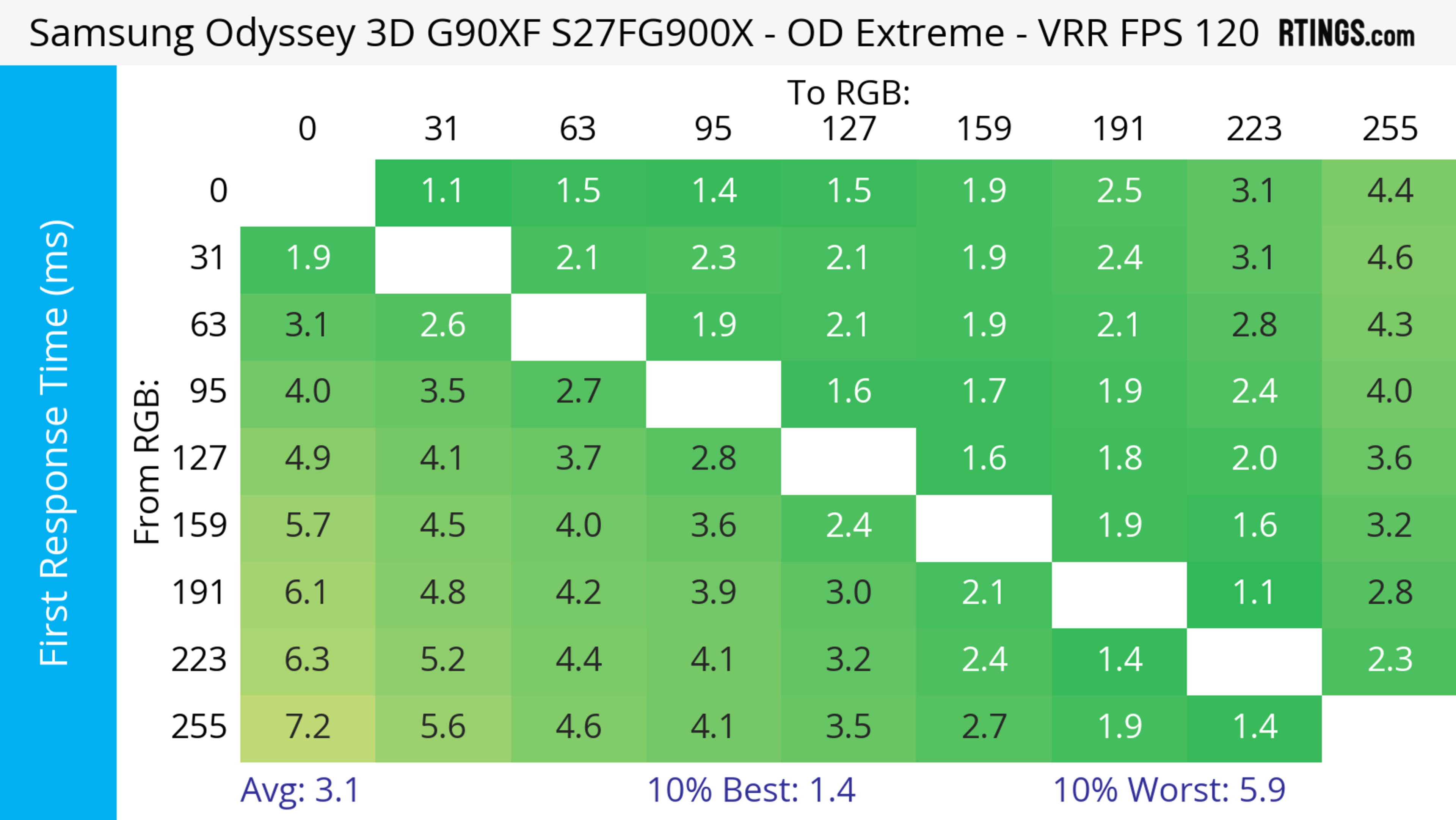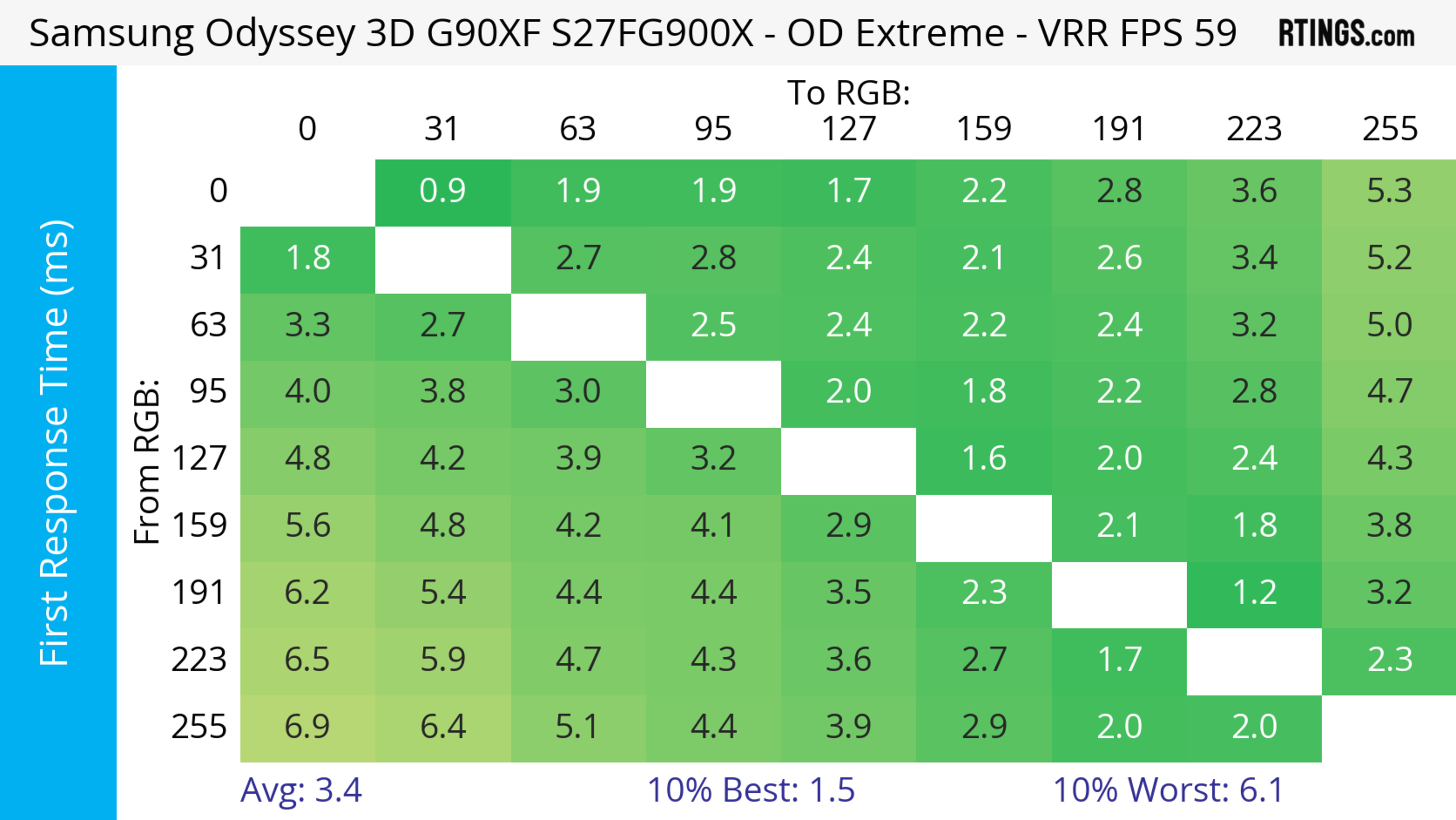The Samsung G90XF has very good motion handling across its VRR range. The 'Adaptive-Sync' Response Time setting is the only overdrive setting available when you enable VRR.