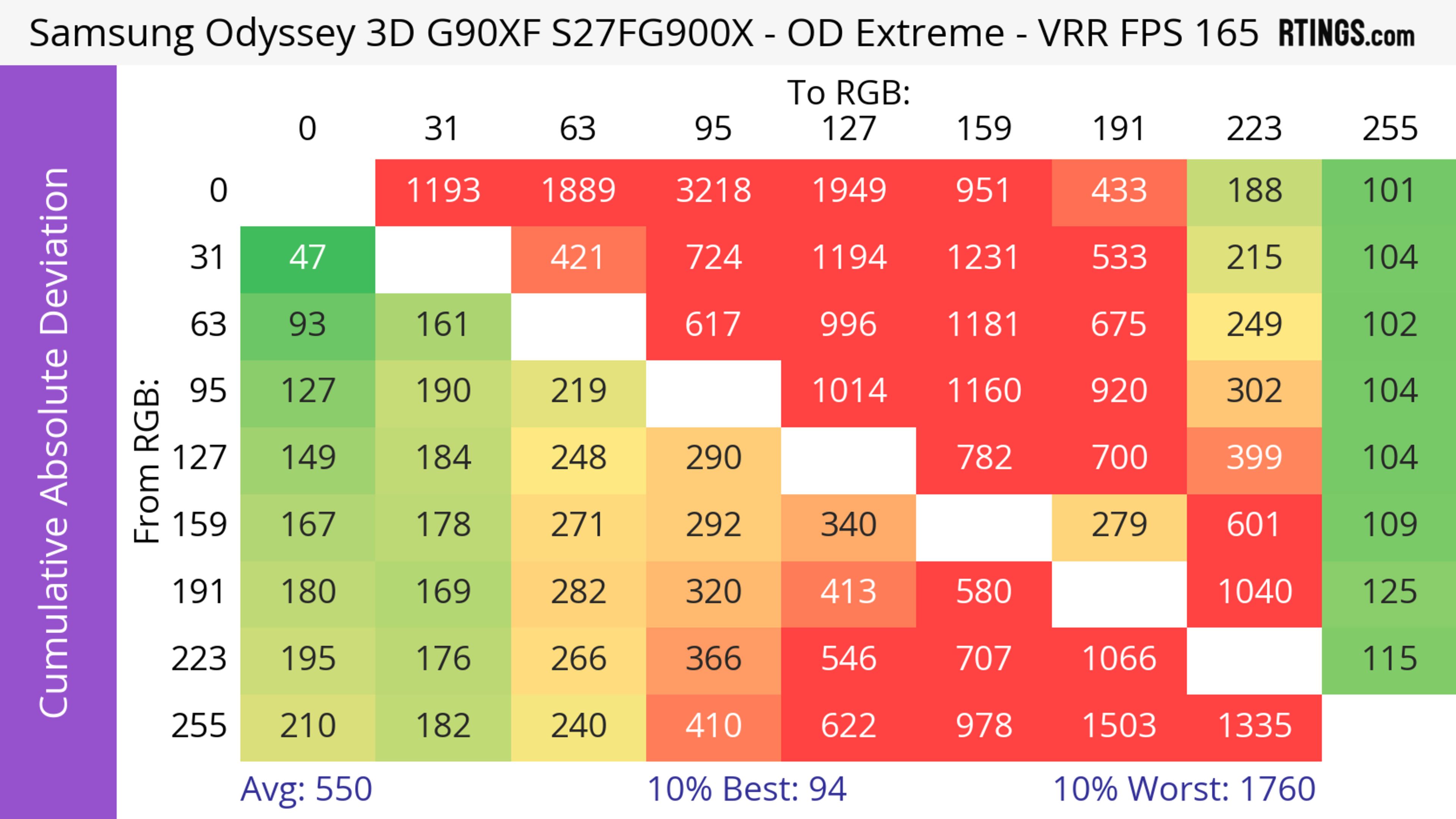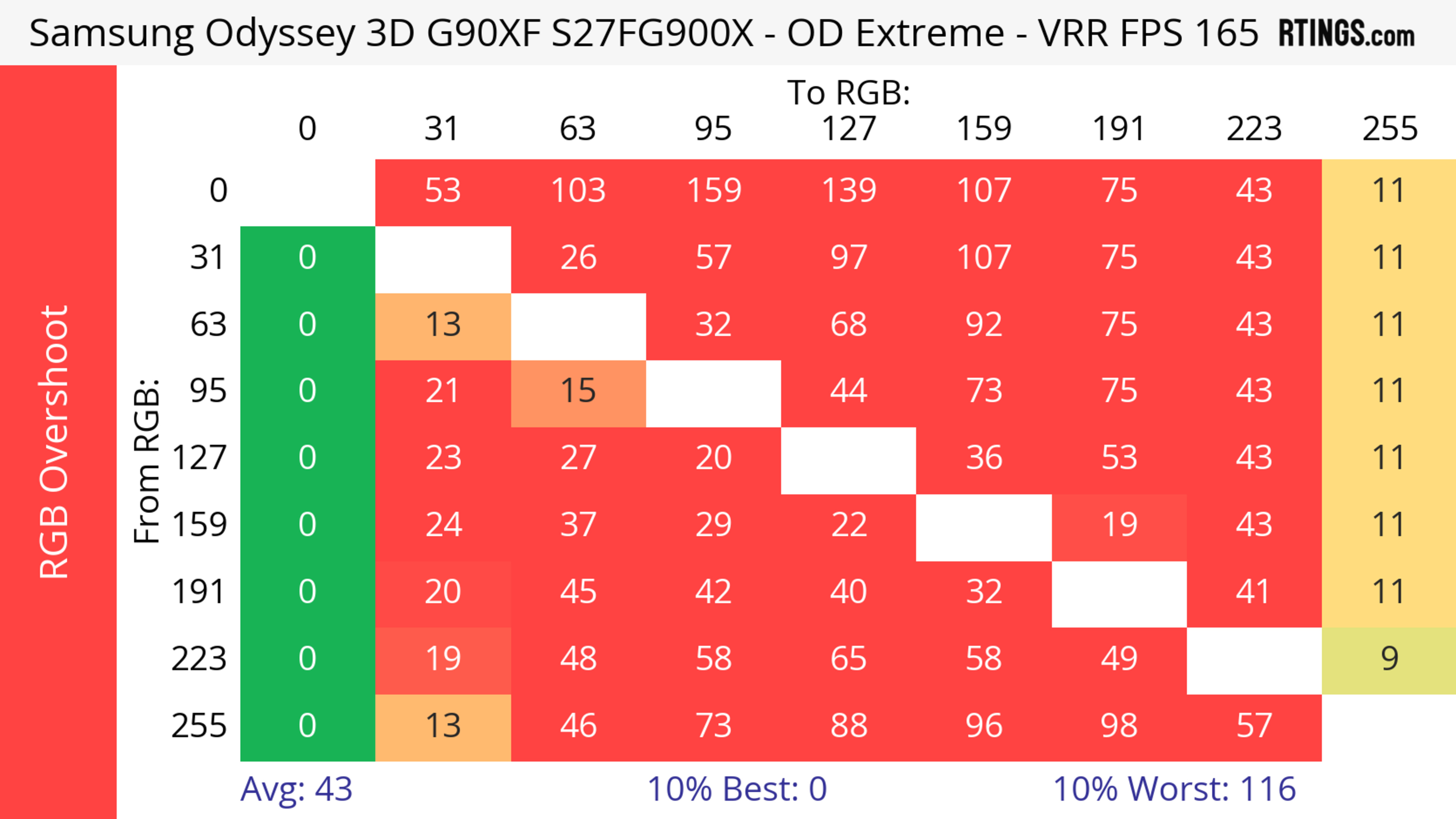The CAD at the max refresh rate is very good, and fast-moving objects look fairly crisp. The 'Faster' Response Time setting has a faster first response time than 'Standard' and far less inverse ghosting than 'Extreme'.