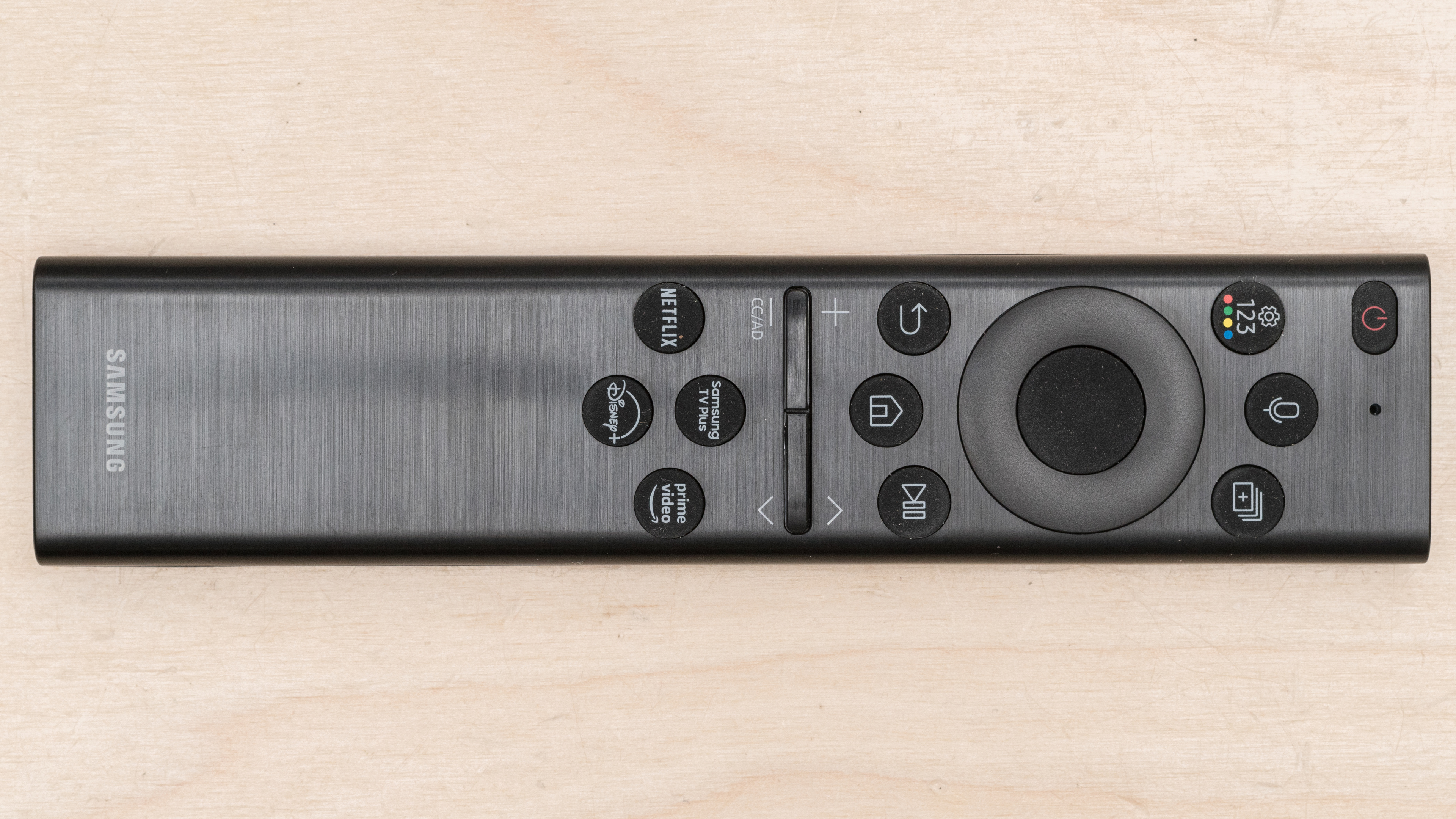 The Samsung Odyssey Ark comes with two remotes. One of them is the monitor's proprietary Ark Dial, which can be used to access quick settings, the Game Bar, or even use the Flex Move Screen feature to adjust the size and aspect ratio of the image. It also comes with the regular remote you would normally find with Samsung TVs, which allows you to open the full settings menu easier. It even has a mic for voice control that works with Bixby and Alexa. There's also a power button on the back of the monitor to turn the screen on and off.