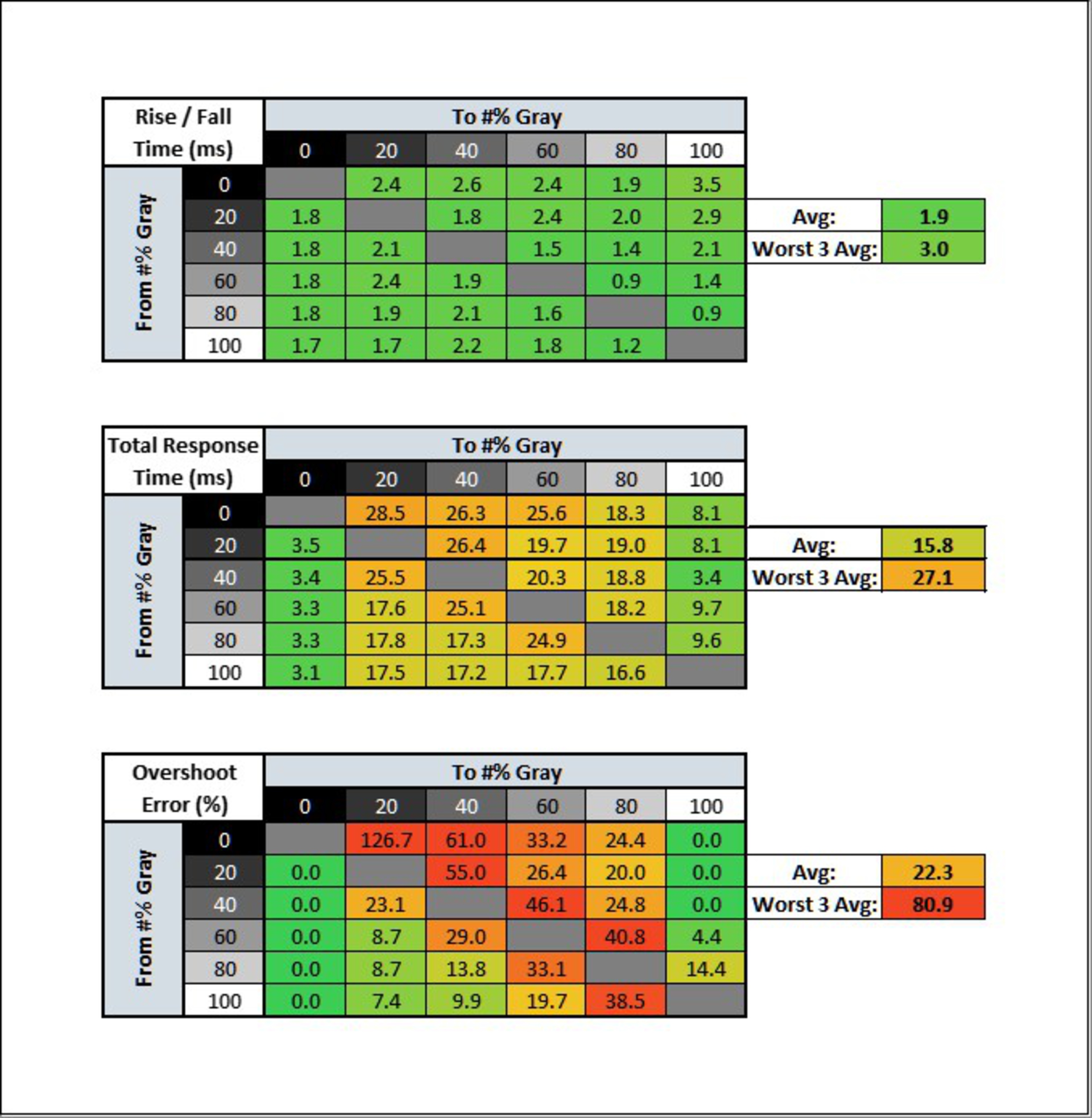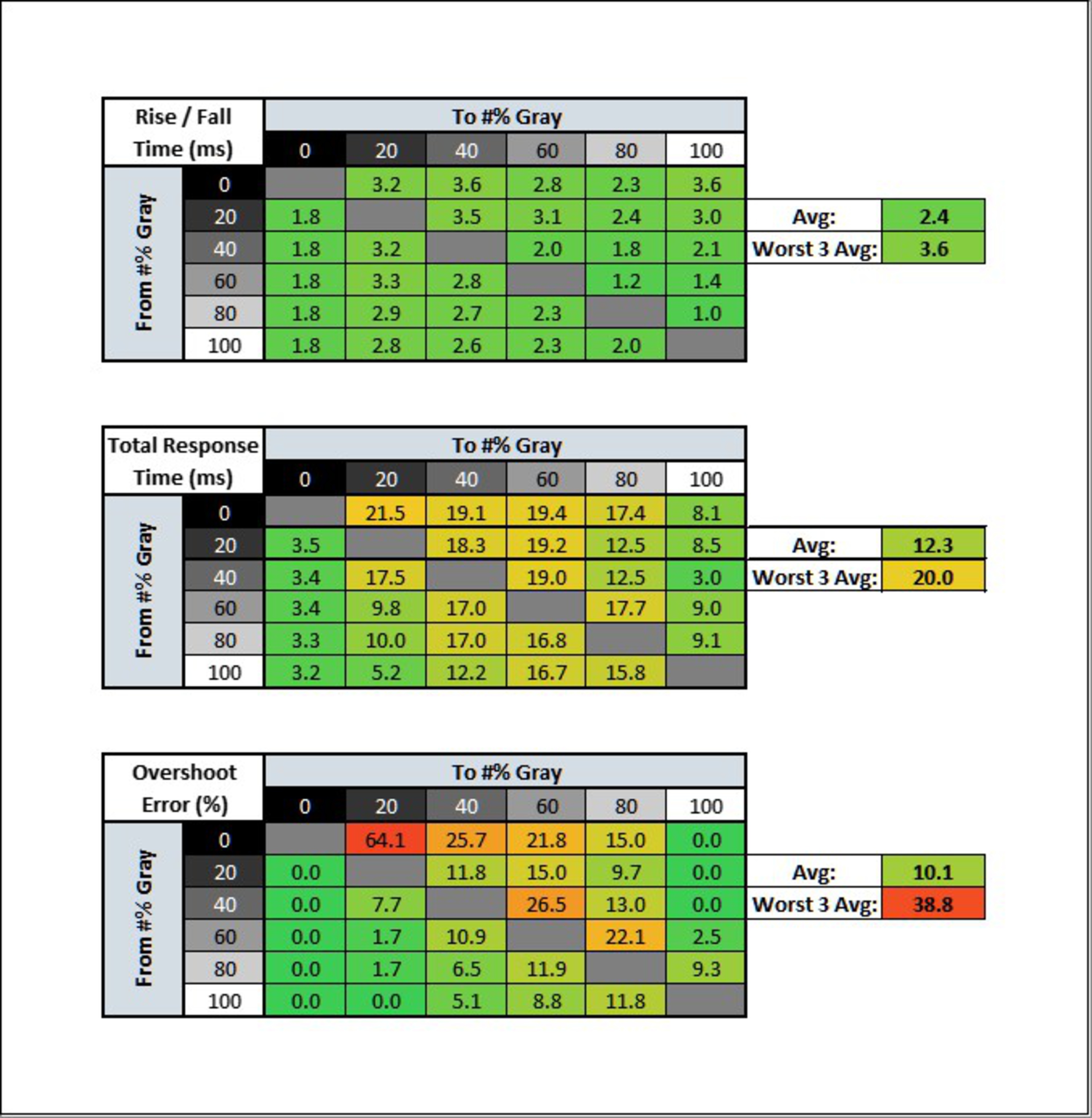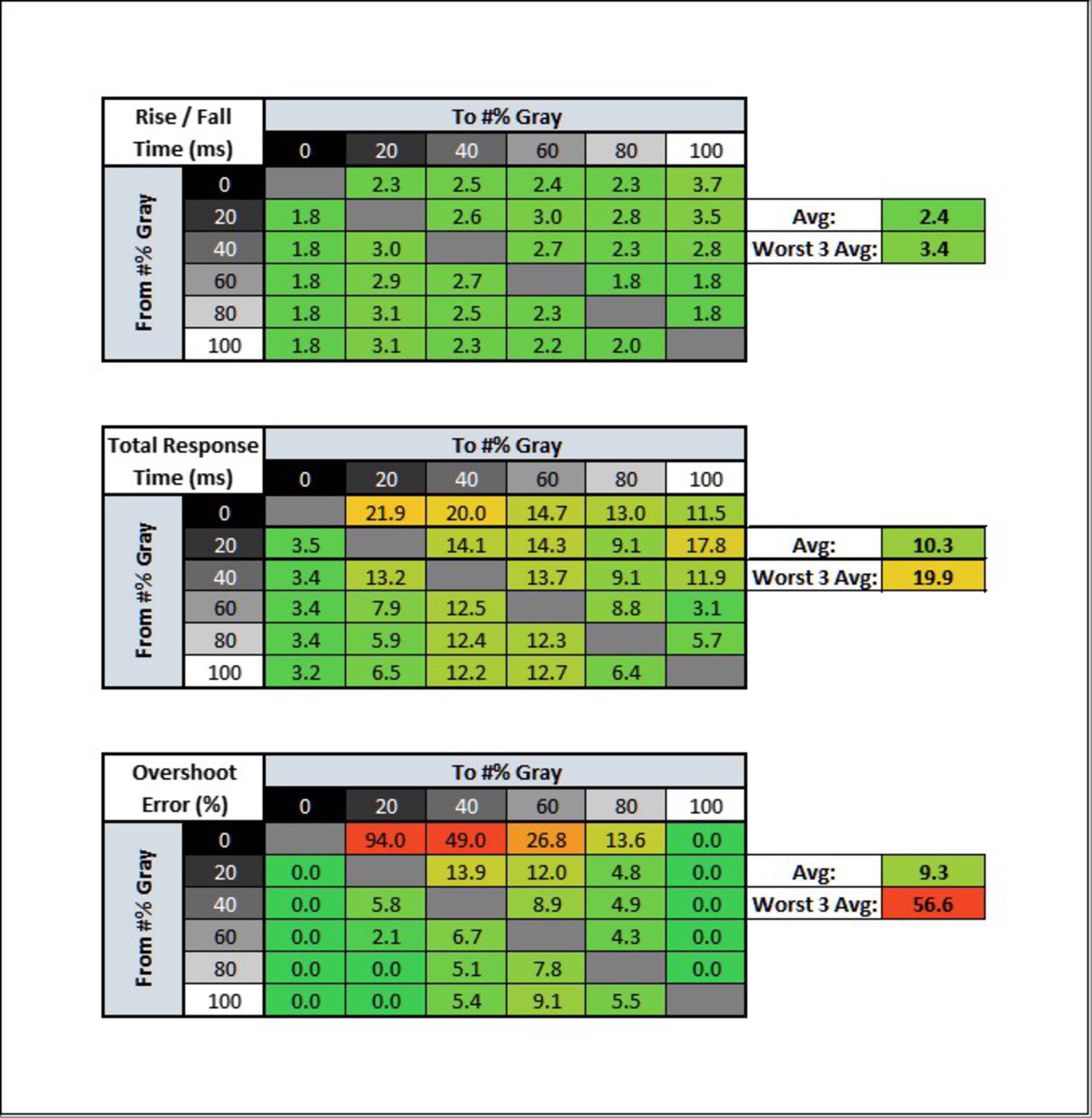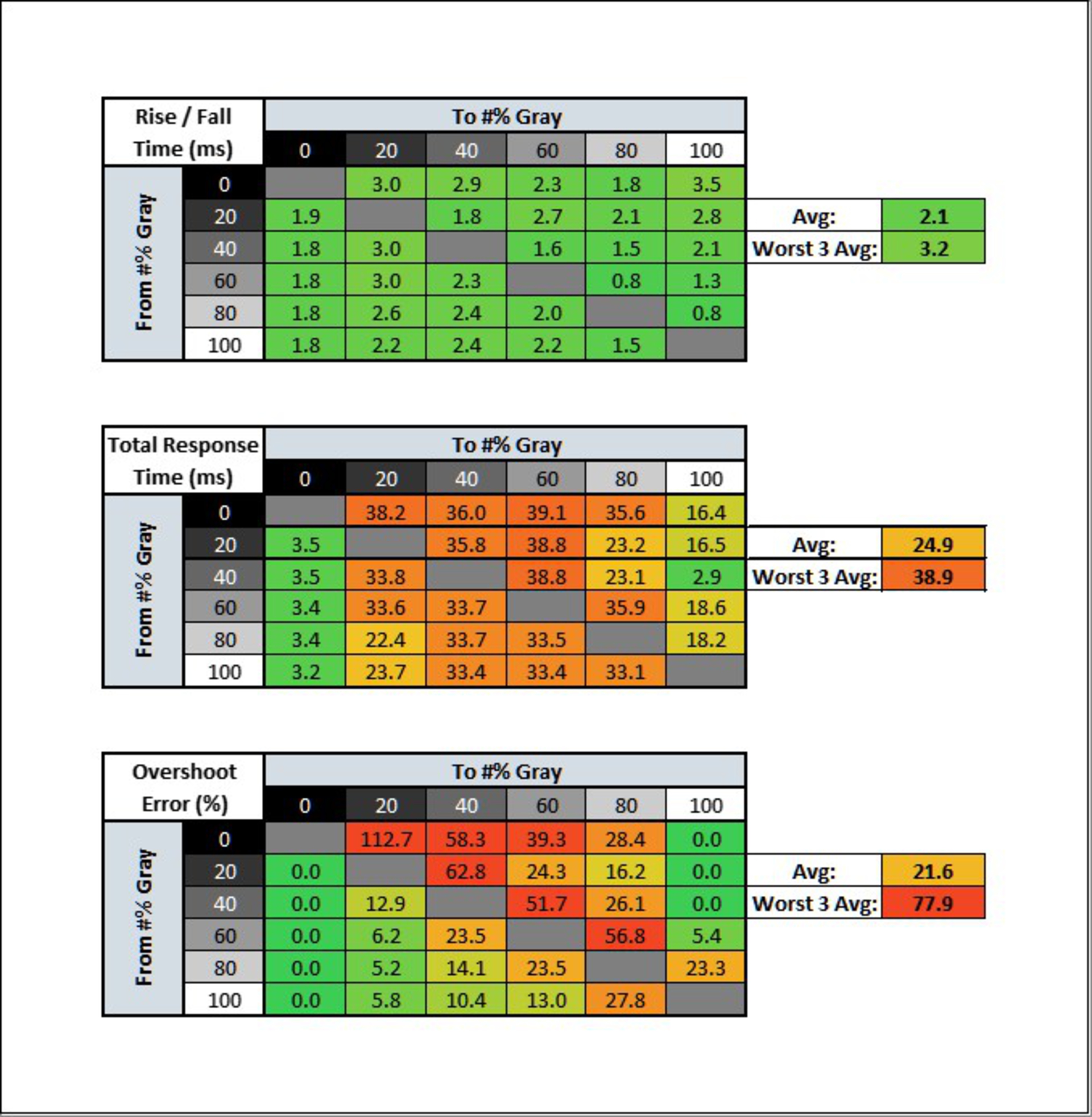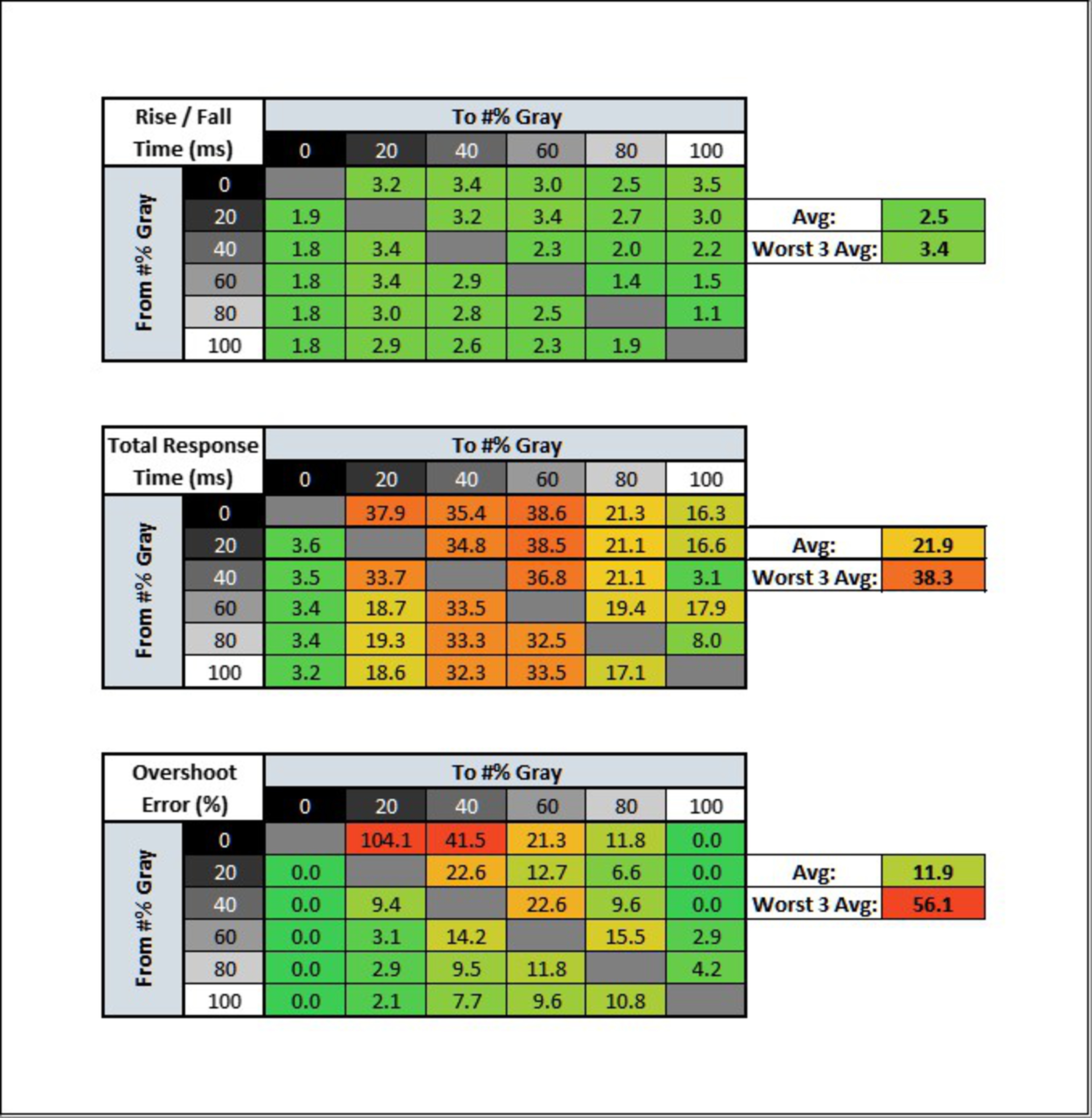 | Overdrive Setting | Response Time Chart | Response Time Tables | Motion Blur Photo |