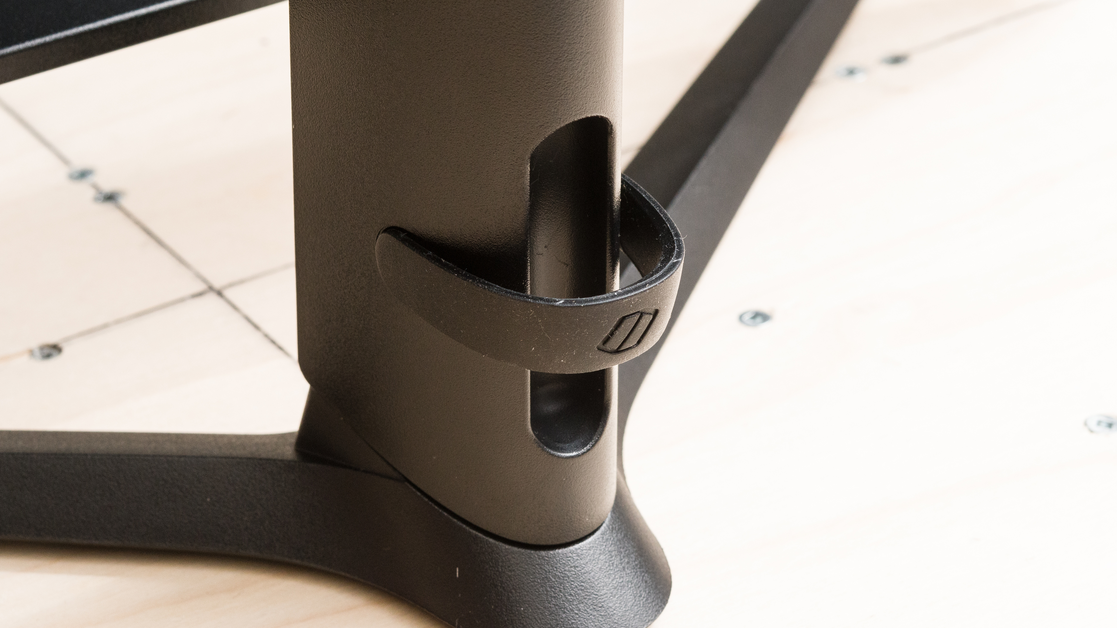 The Samsung G4 has excellent ergonomics. You can easily adjust the screen, but the swivel range is narrow, which isn't ideal if you need to turn the screen to share it with someone else. The stand features a clip in the back for cable management.