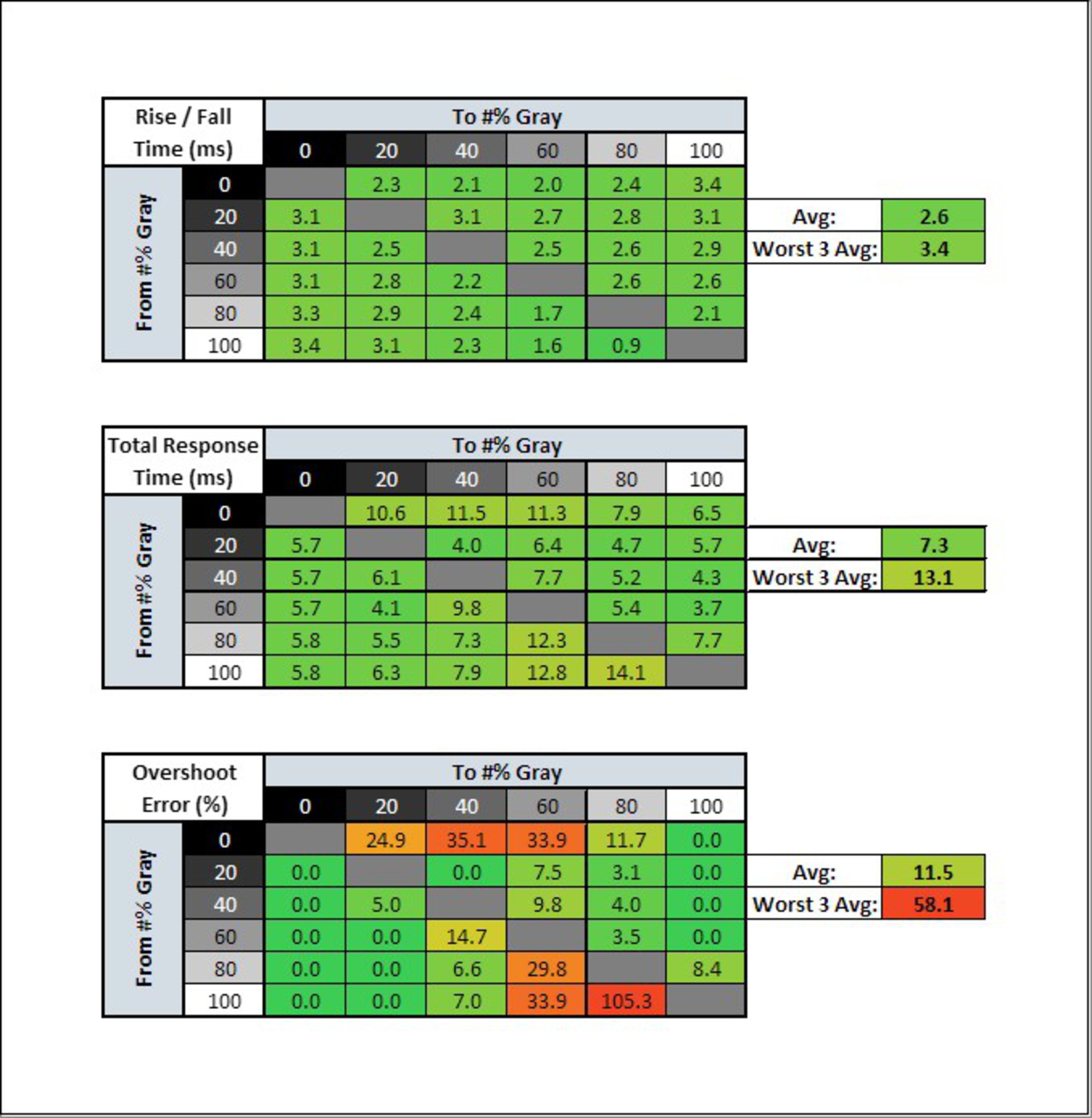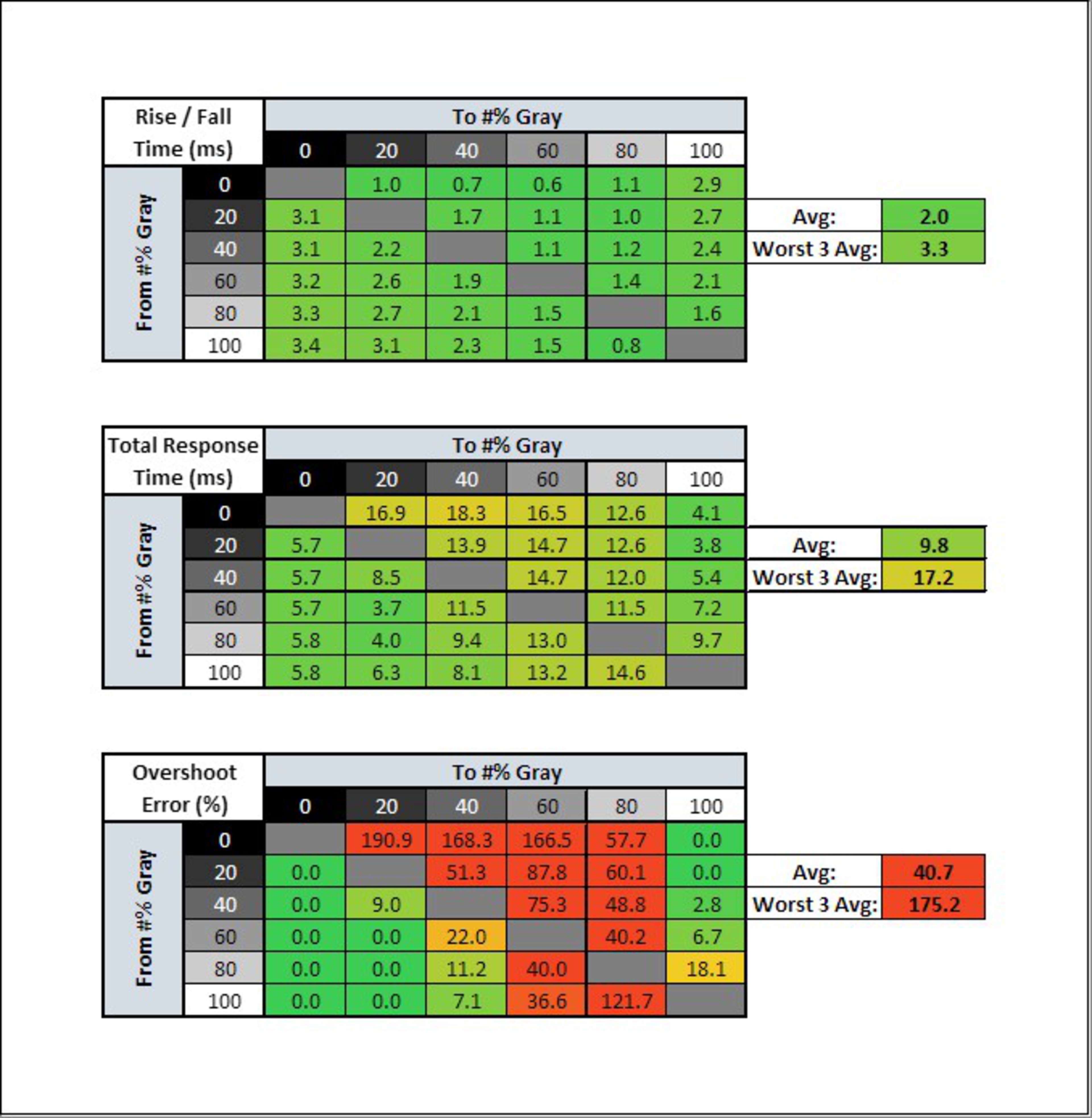| Overdrive Setting | Response Time Chart | Response Time Tables | Motion Blur Photo |