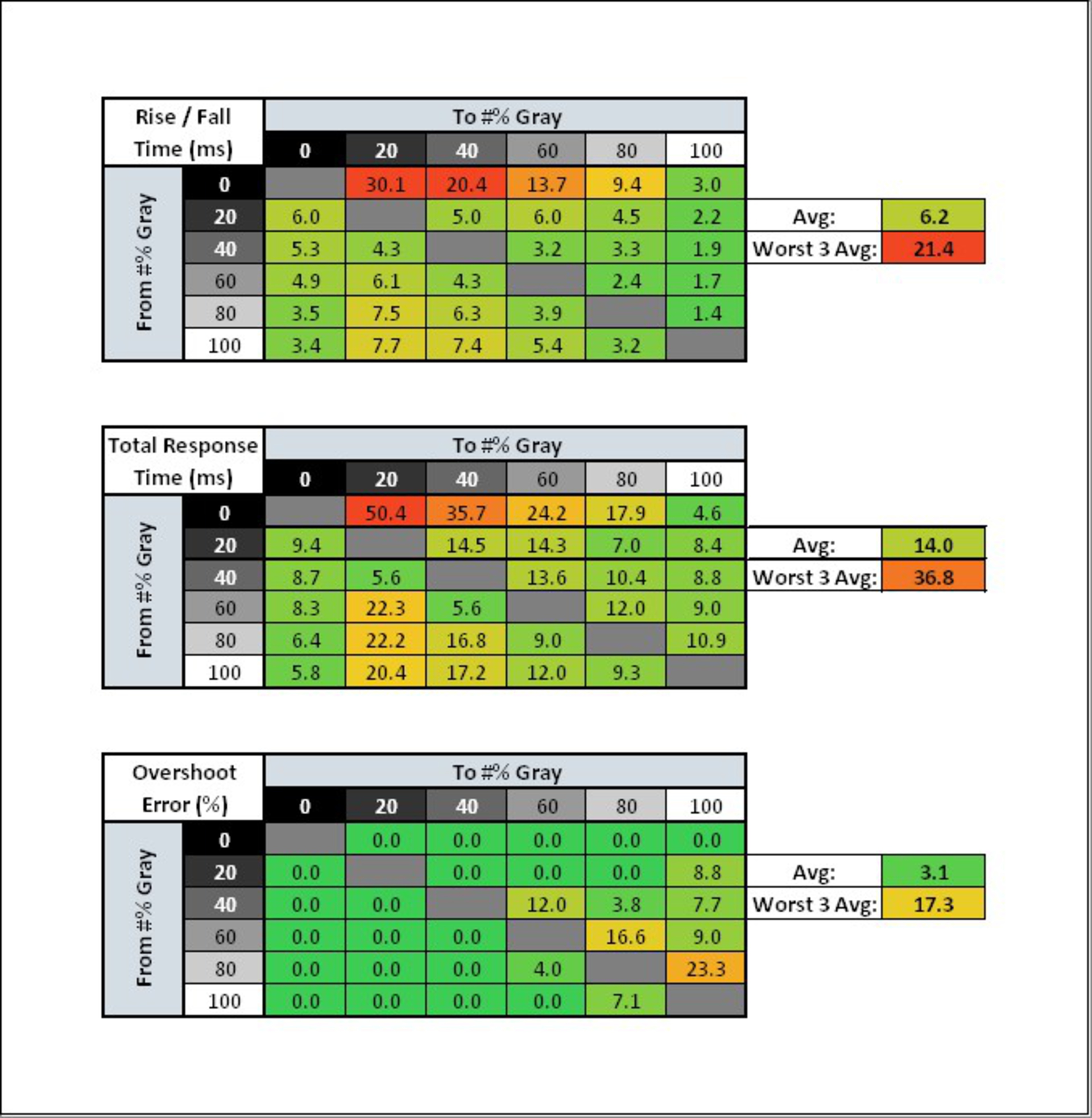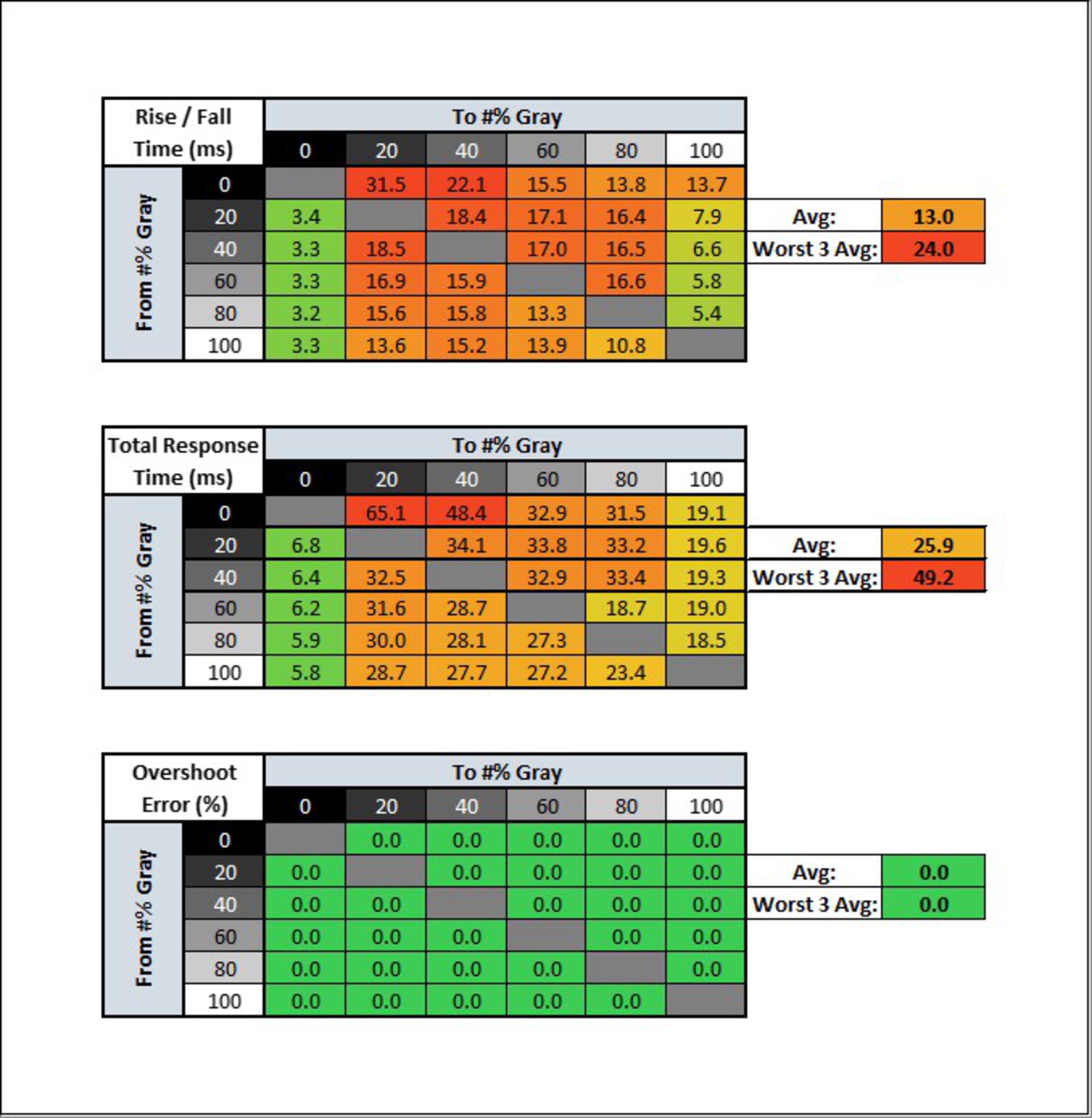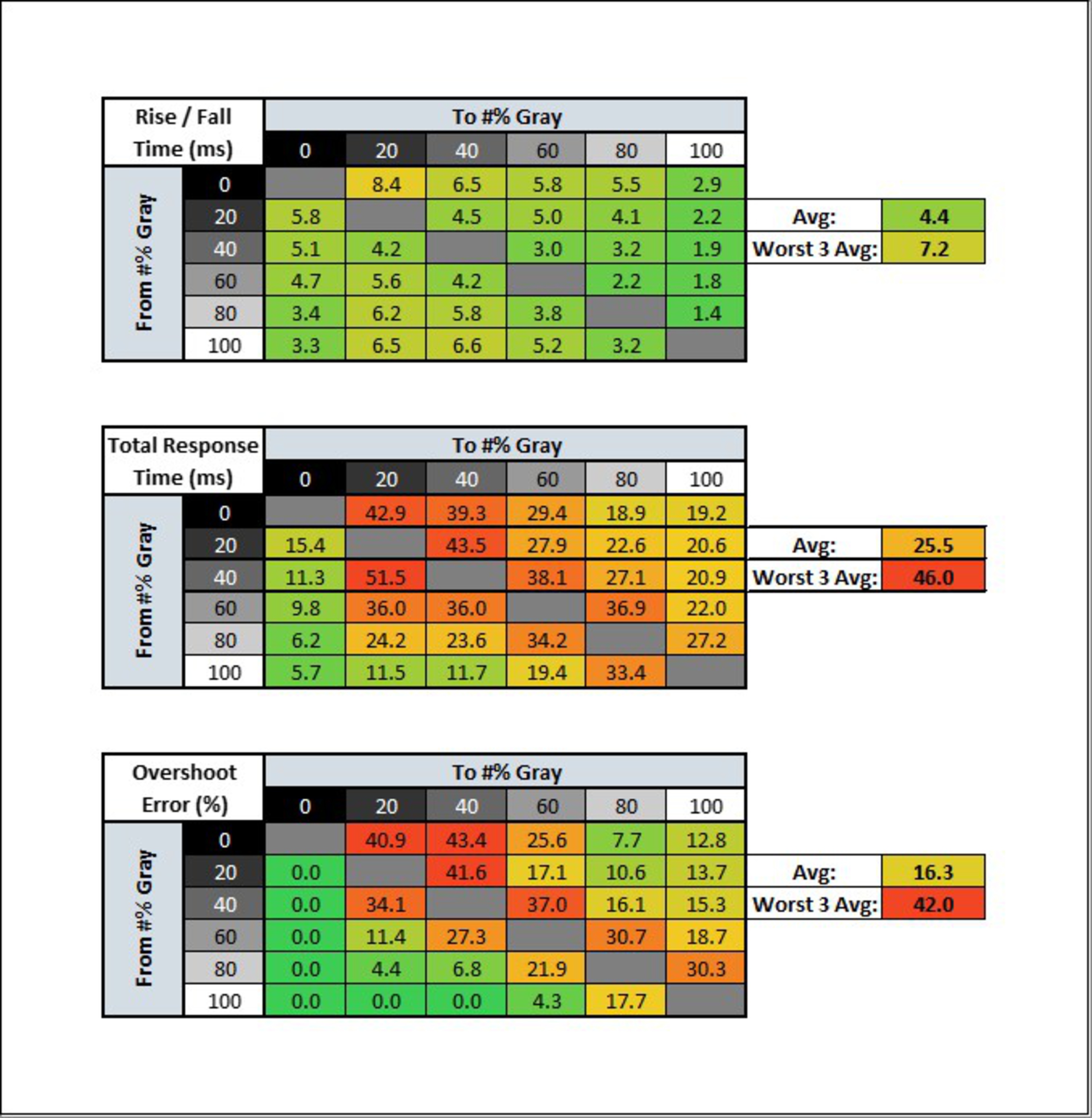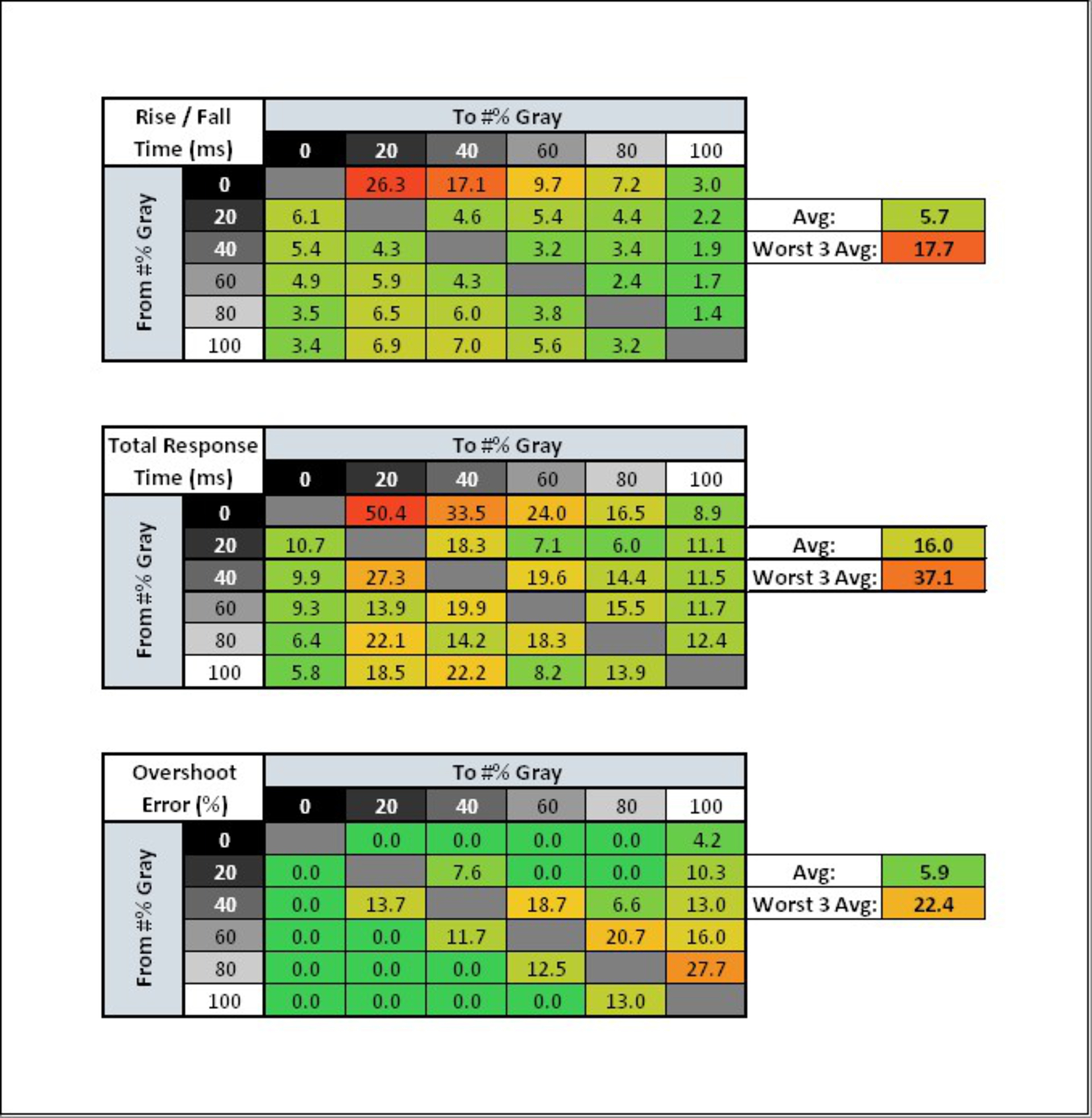The refresh rate compliance is okay. Its response time isn't fast enough to make full color transitions before the monitor draws the next frame at its max refresh rate, but it's better at lower refresh rates, like at 60Hz.
