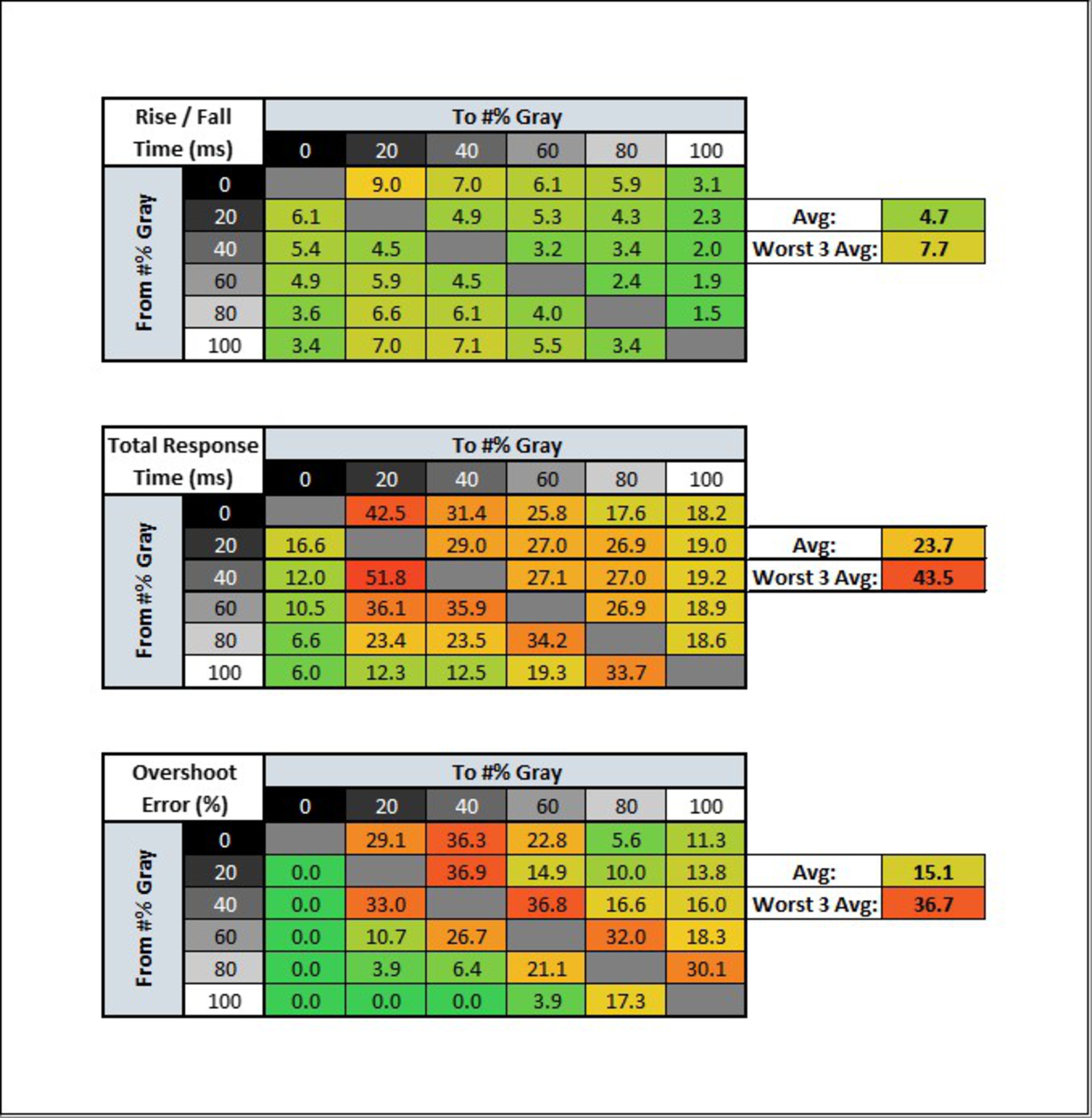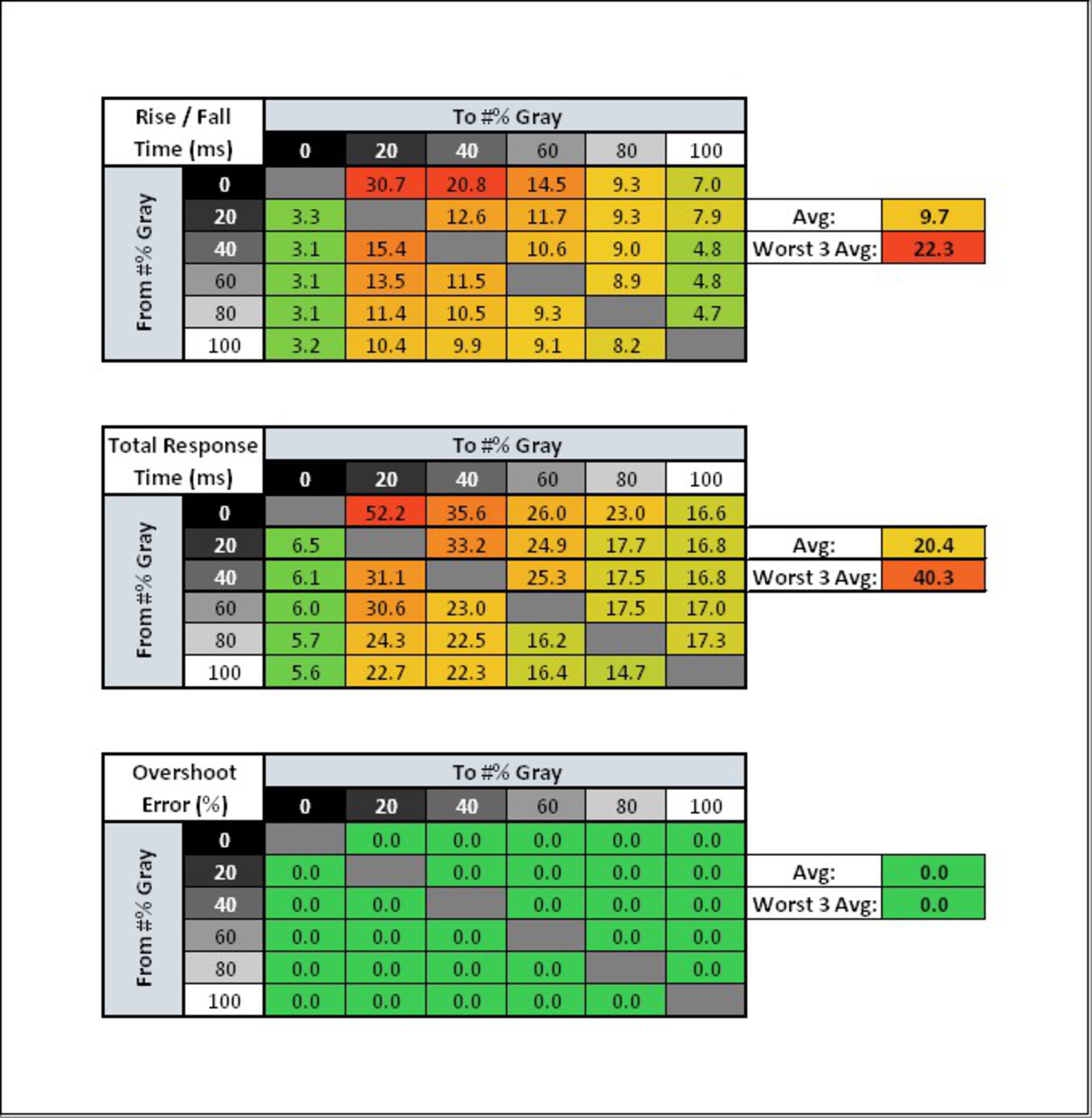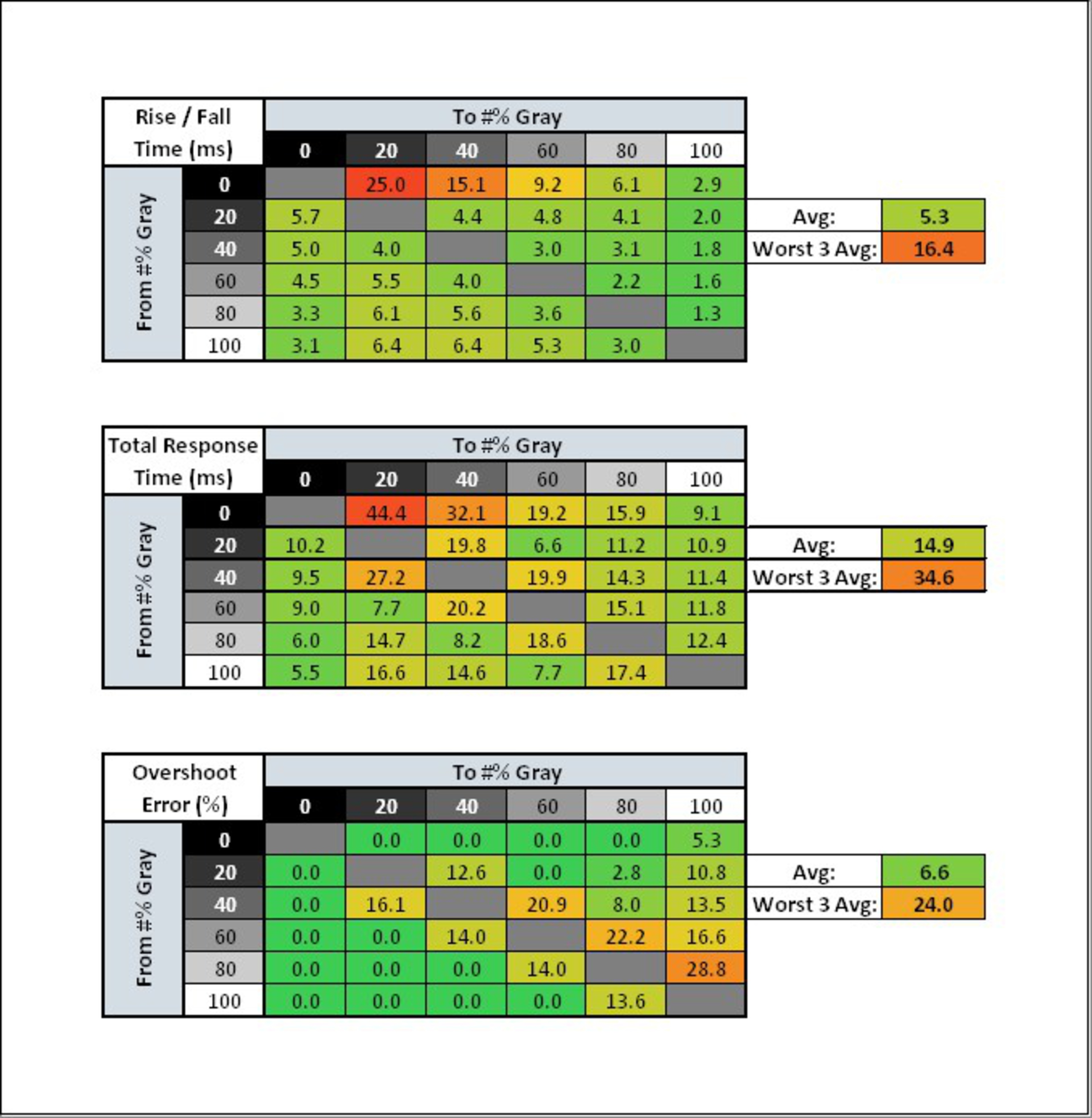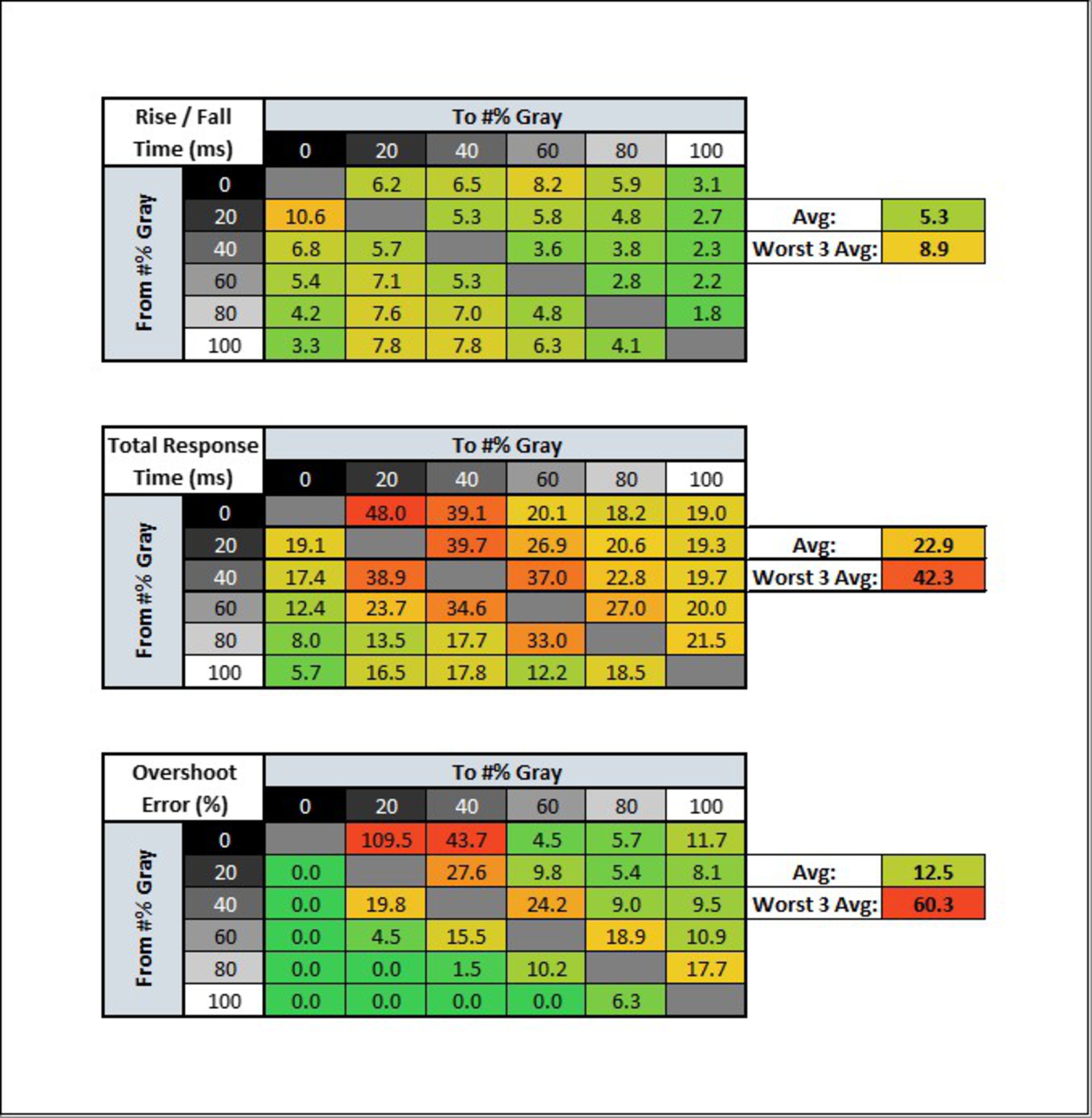 The refresh rate compliance is okay. Its response time isn't fast enough to make full color transitions before the monitor draws the next frame at its max refresh rate, but it's better at lower refresh rates, like at 60Hz.