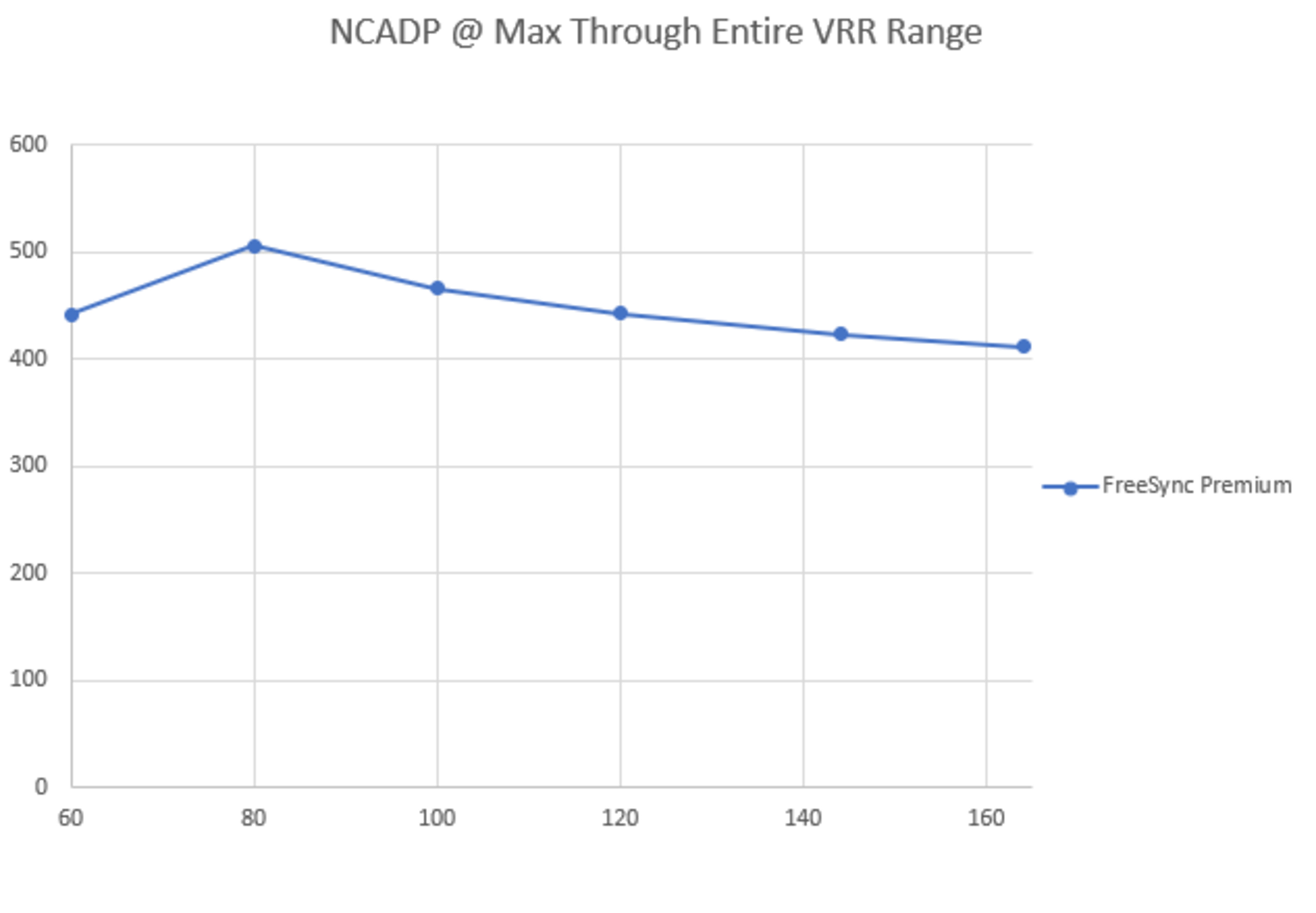 This monitor has bad motion handling across its VRR range. You can't use any of the overdrive settings with VRR enabled, and there's noticeable blur and smearing with fast-moving objects. In fact, the CAD is so high with VRR that it passes the limits of the chart, but you can see an alternative chart with it here.
