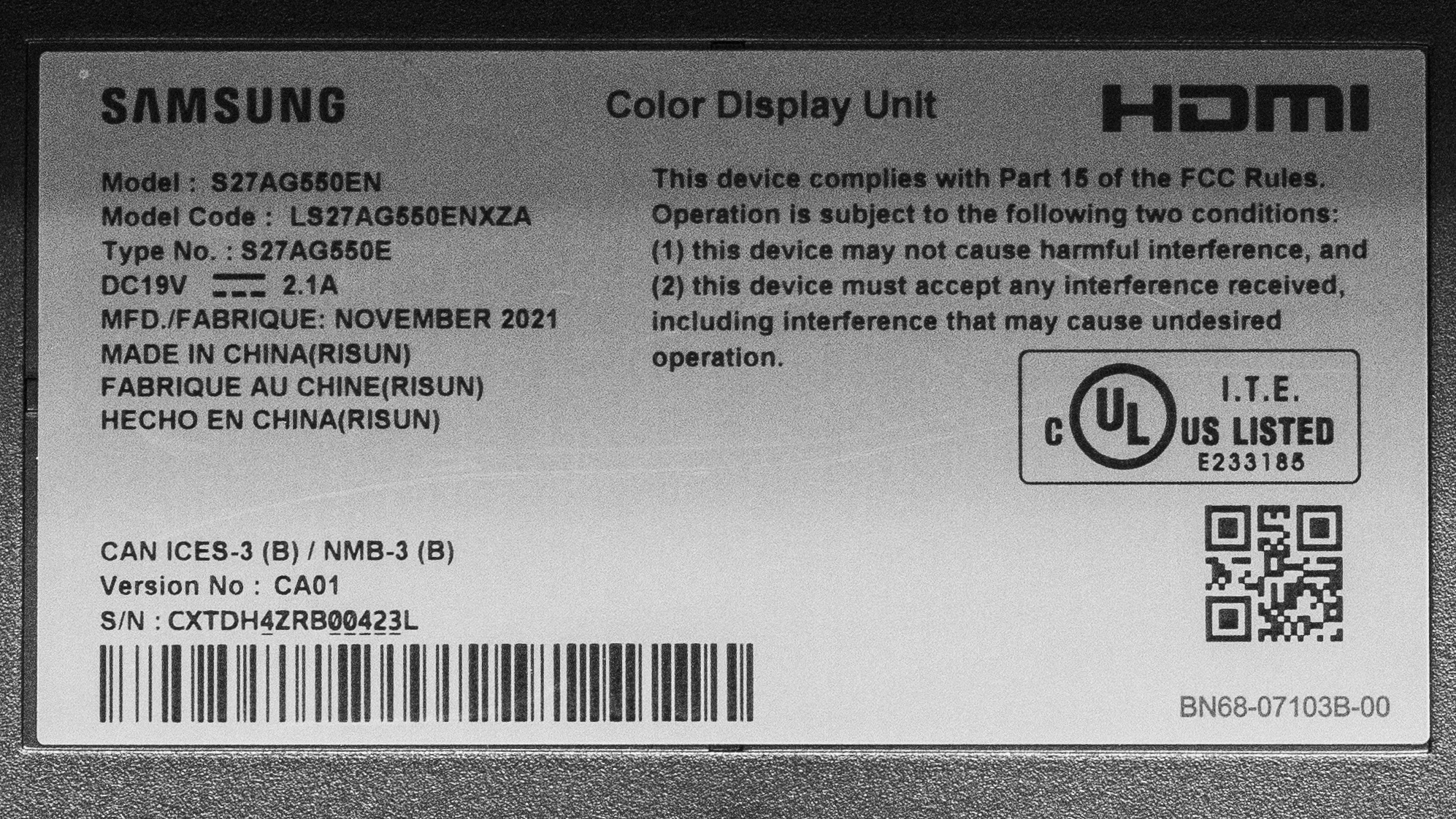 Our unit was manufactured in November 2021; you can see the label here. It was tested with firmware M-A5500GCZA-1001.4.