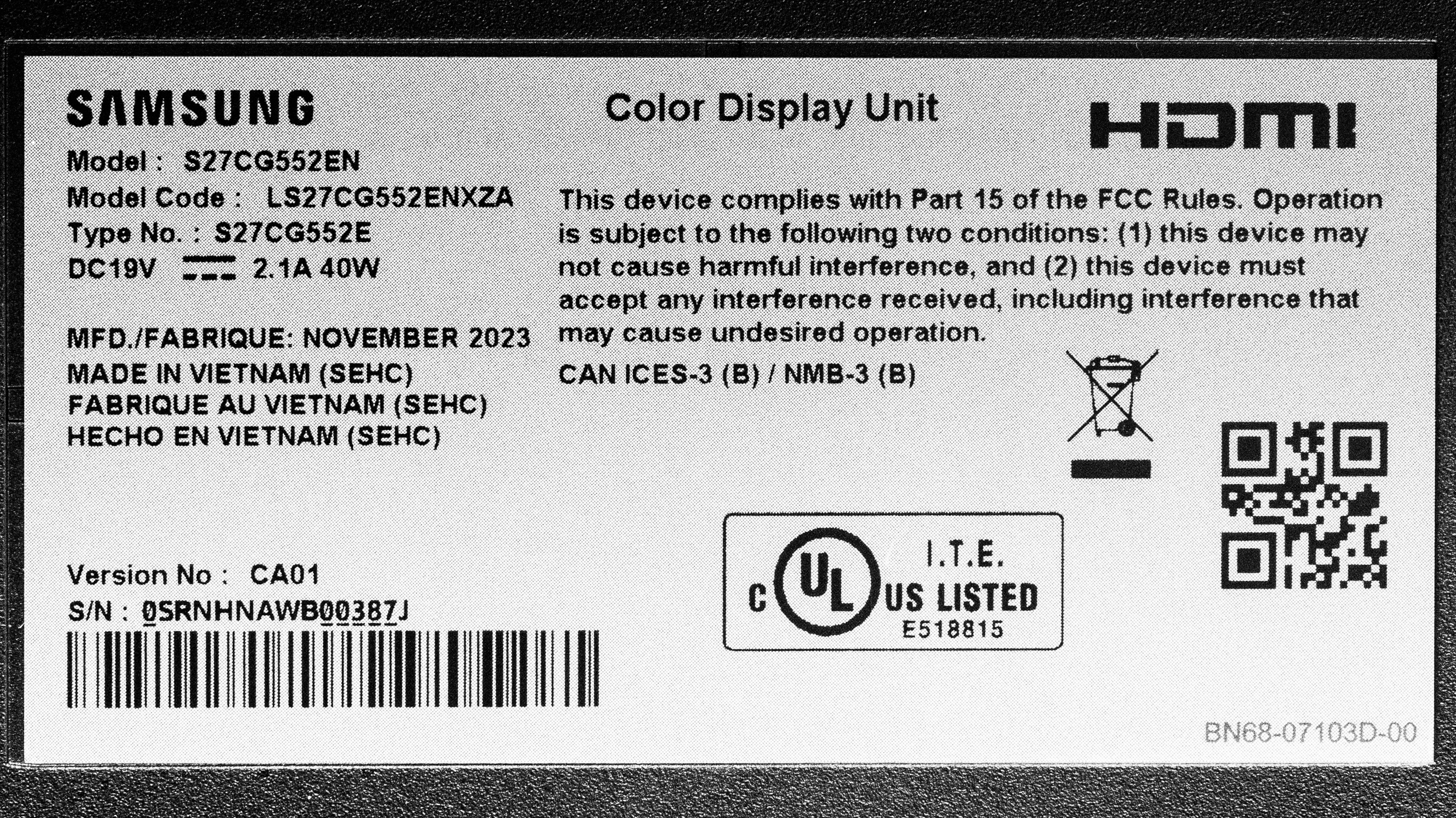 Our unit was manufactured in November 2023; you can see the label here. We tested it with firmware M-C5500GGZA-1001.0.