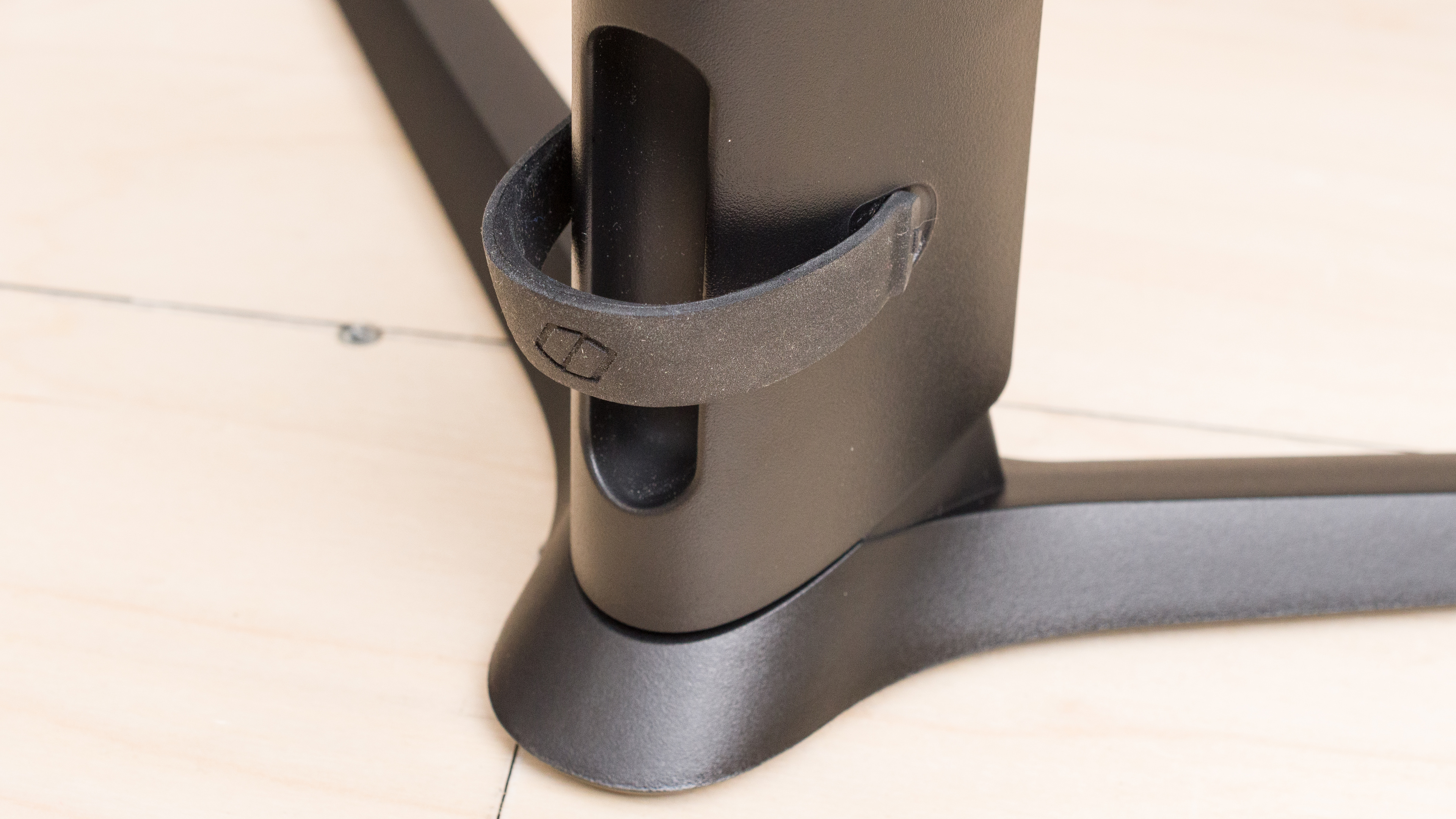 This monitor has fantastic ergonomics, and you can easily place it in an ideal position. The back of the stand has a rubber hook that you can use for cable management.