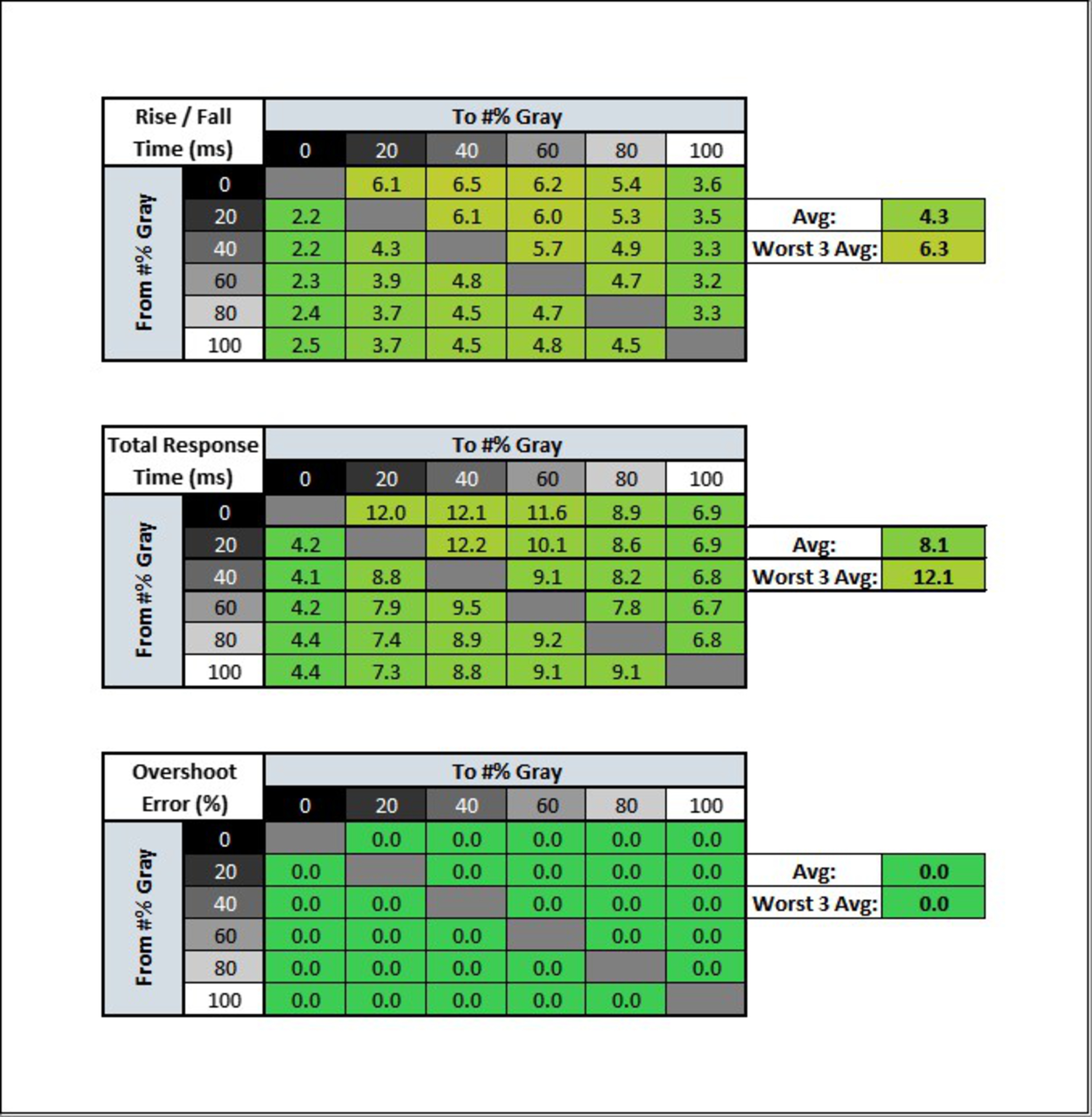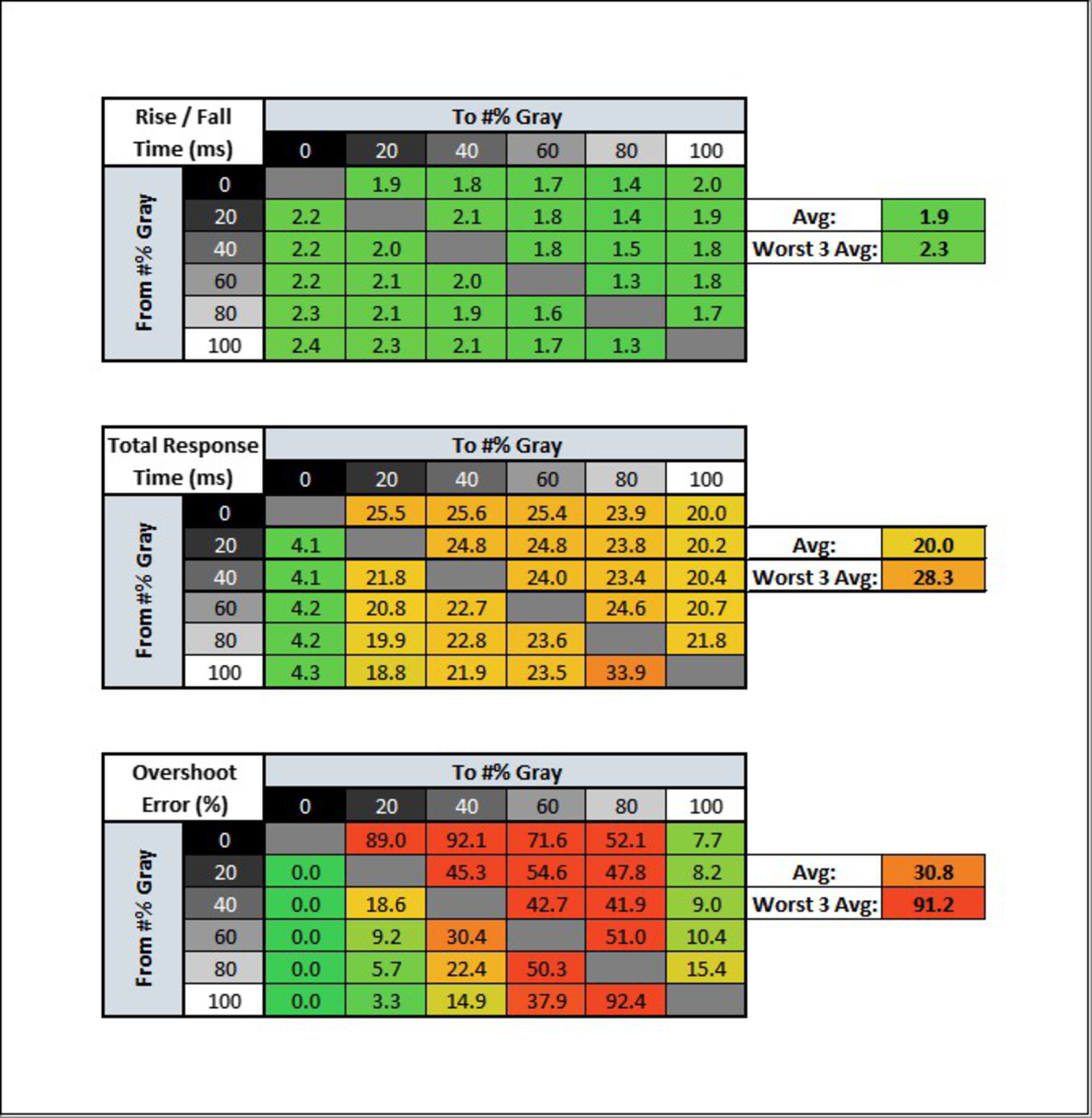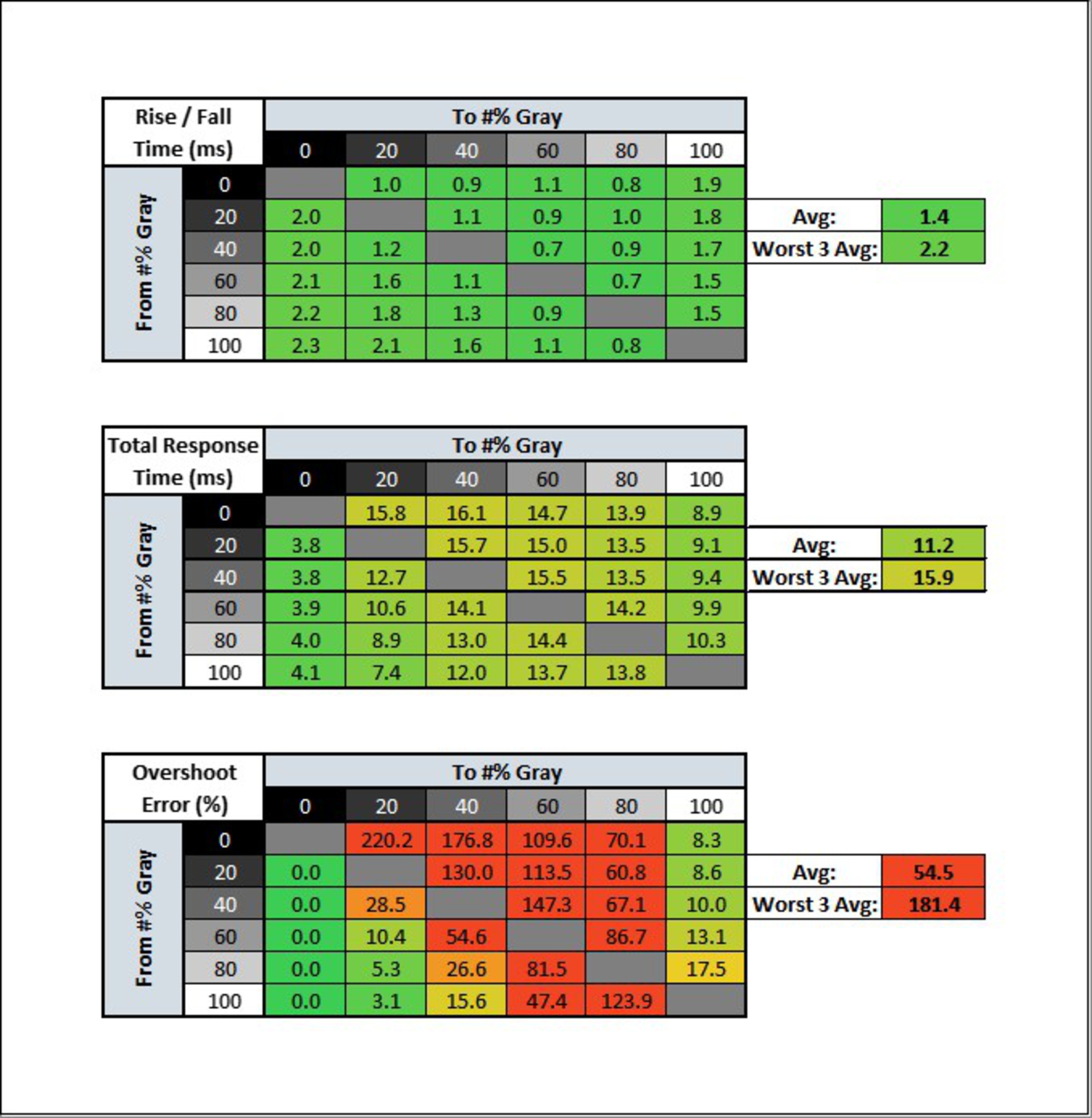 The refresh rate compliance is good. While its response time isn't fast enough to make full color transitions before the monitor draws the next frame at high frame rates, it's better than other LED-backlit monitors, and it improves at 60Hz.