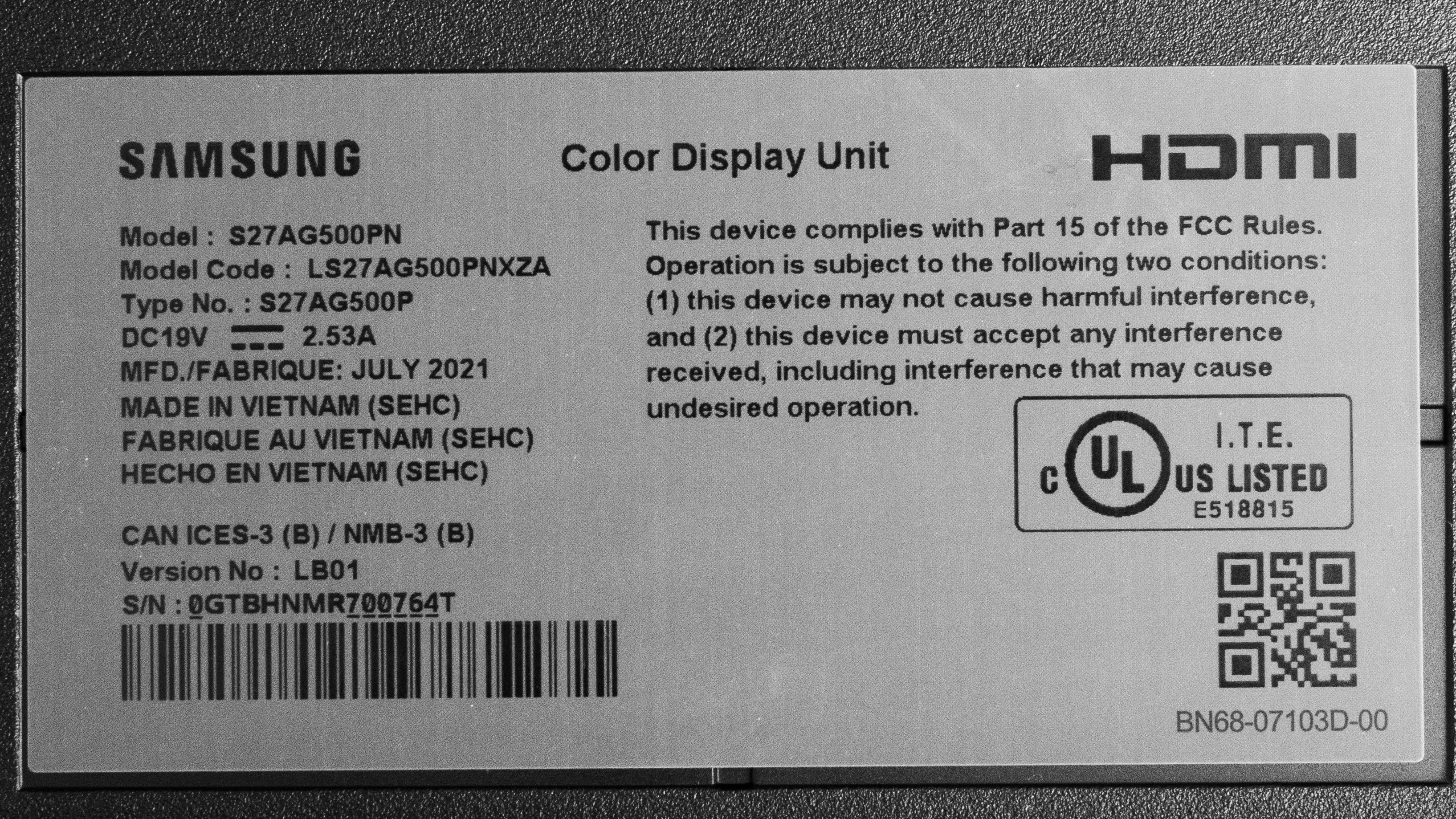 Our unit of the G50A was manufactured in July 2021, and you can see the label here.