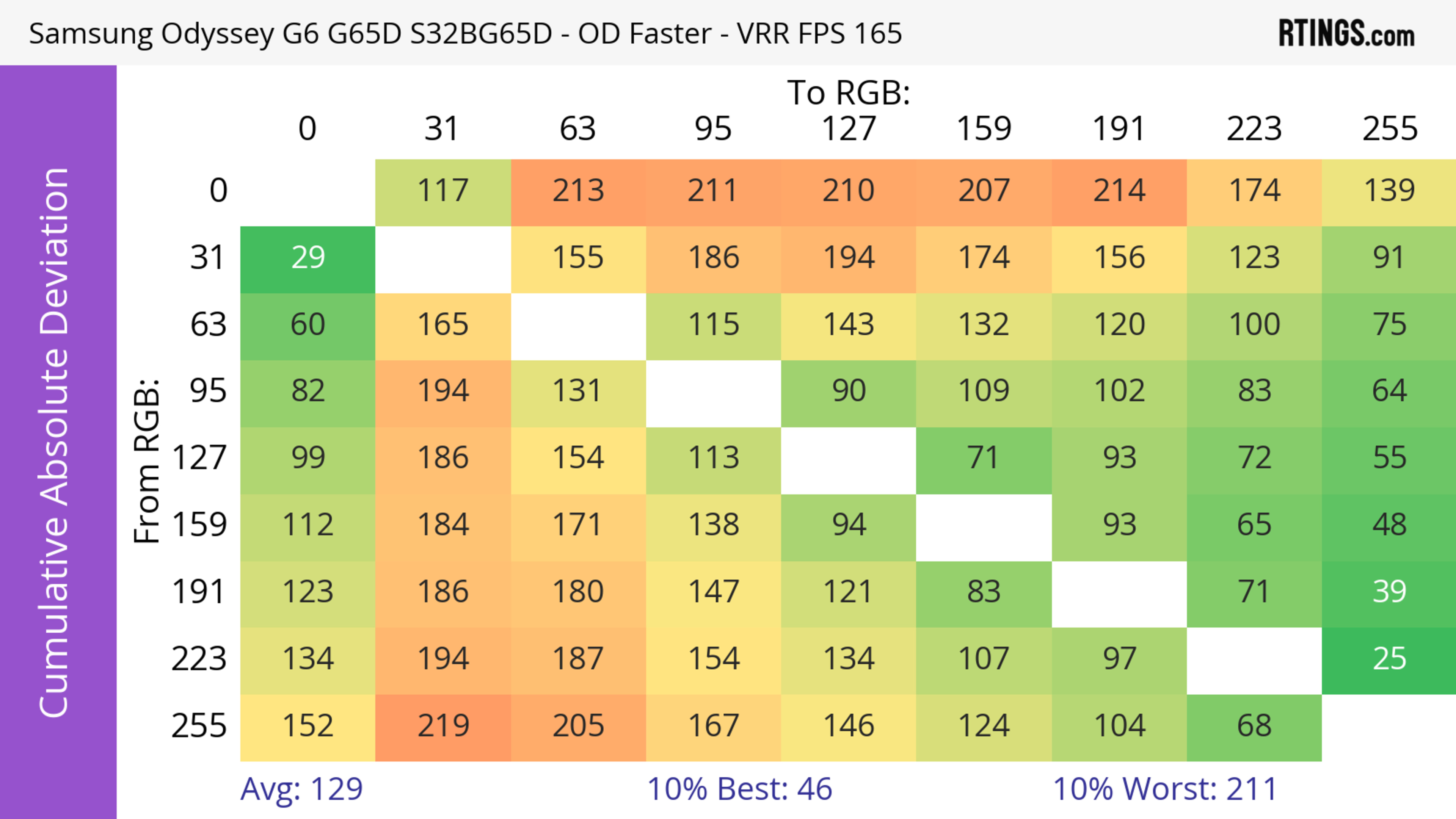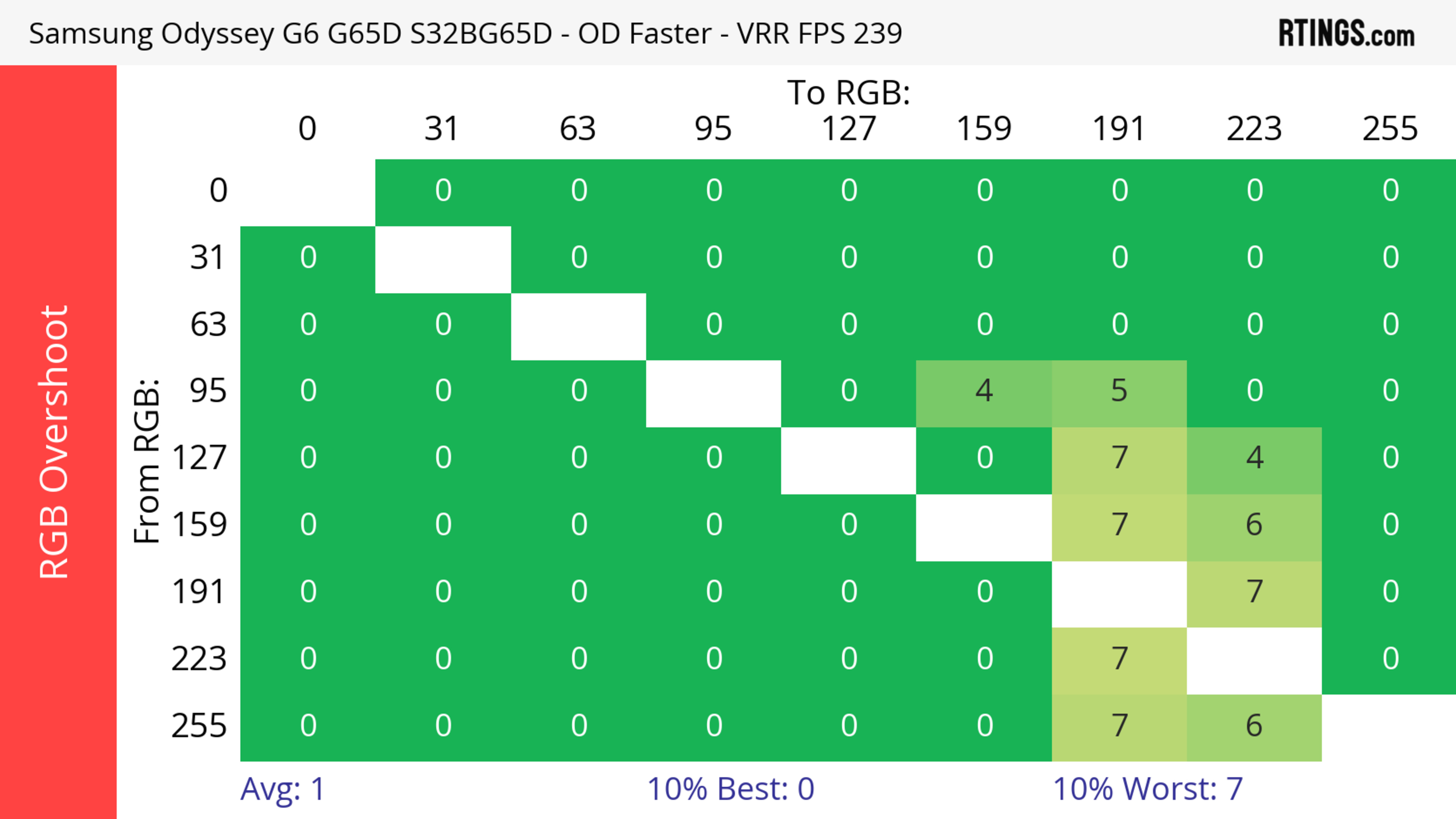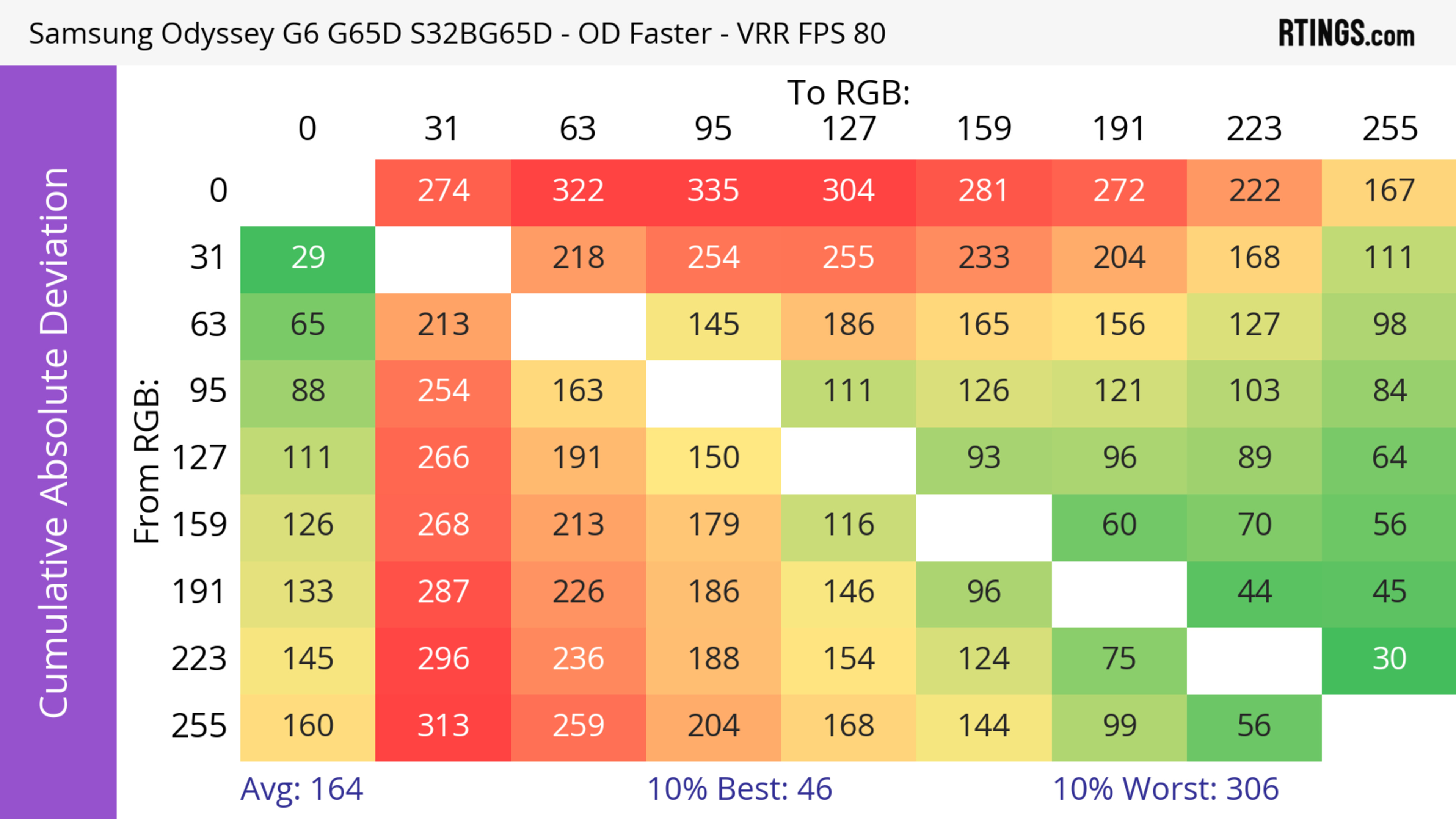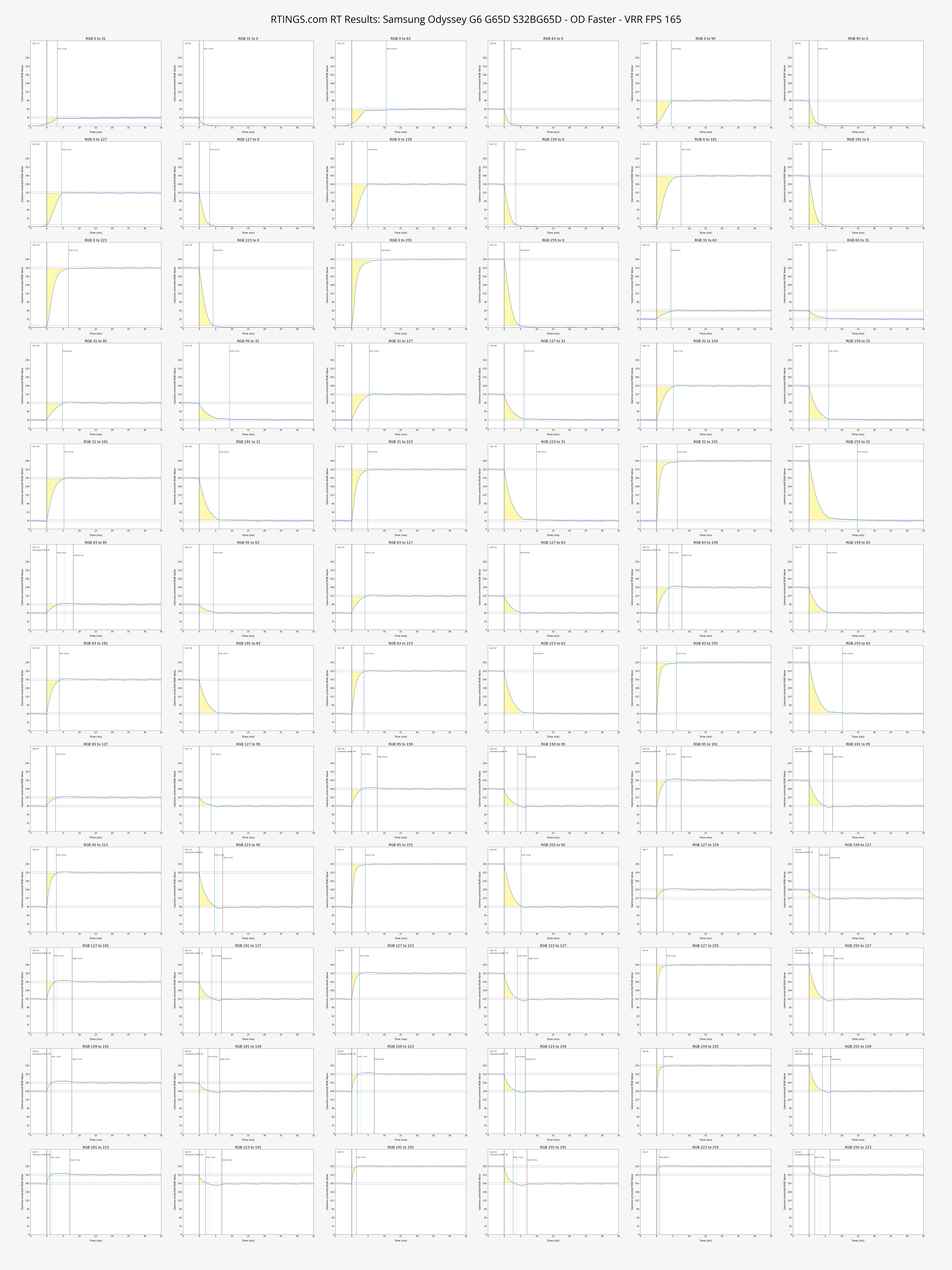 The refresh rate compliance is great. Although its response time isn't fast enough to make full color transitions before the monitor draws the next frame at the max refresh rate, it's much better at lower refresh rates.