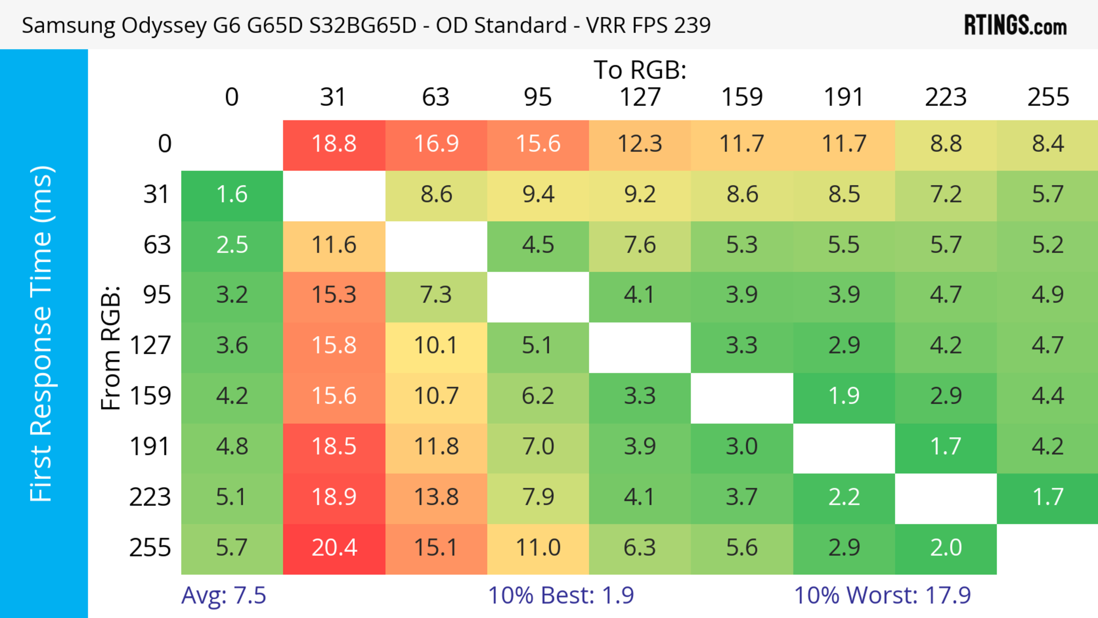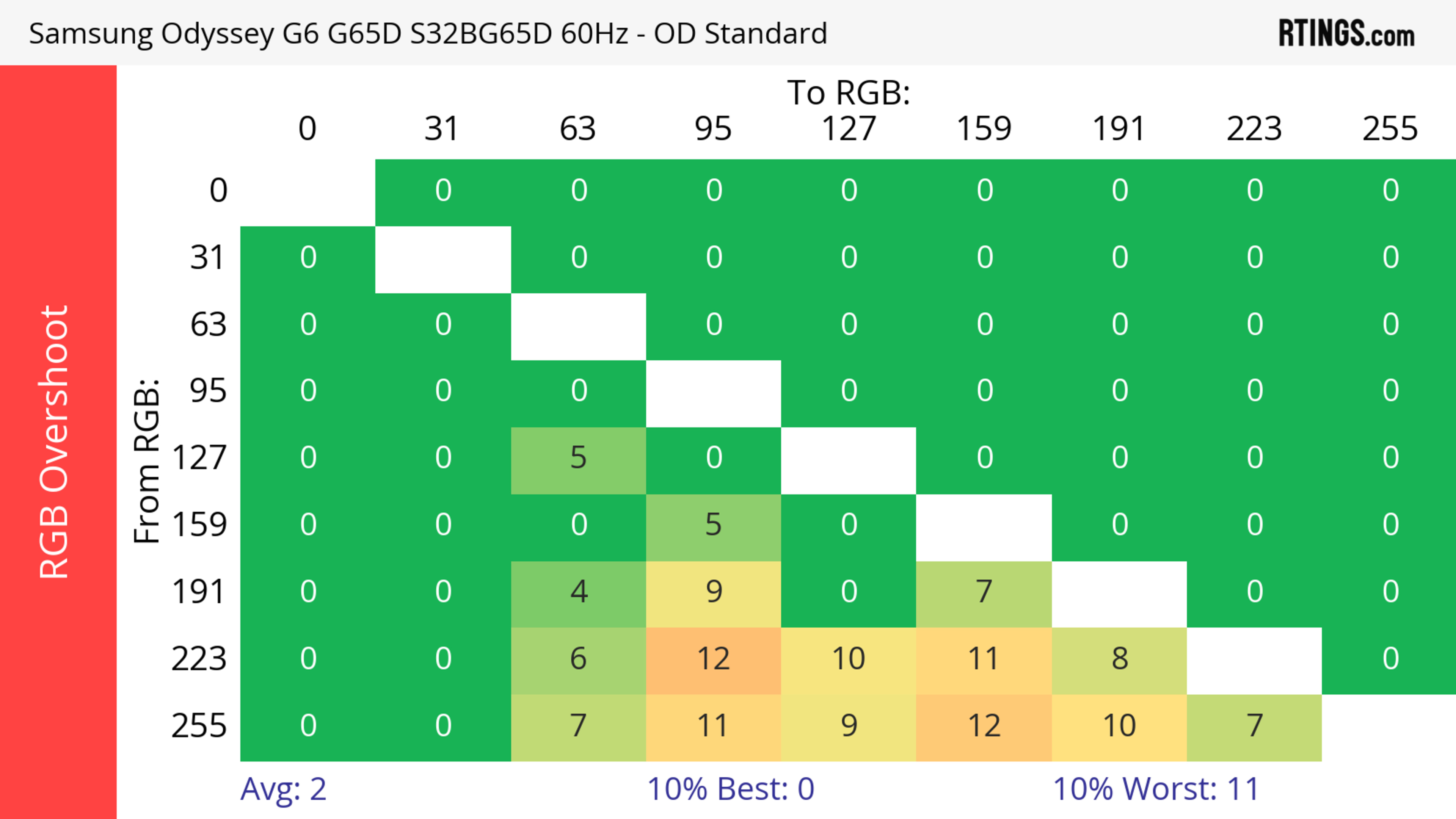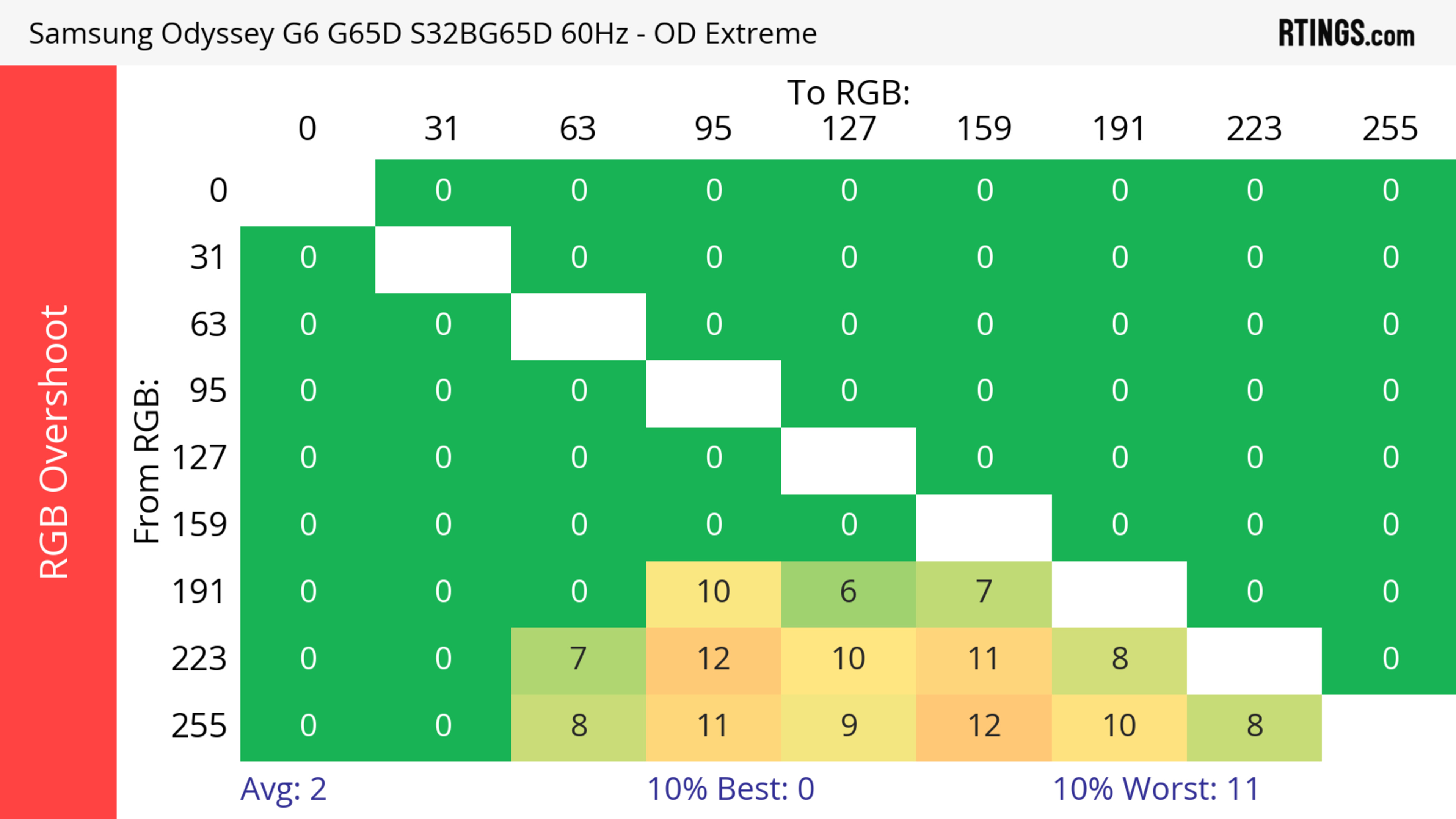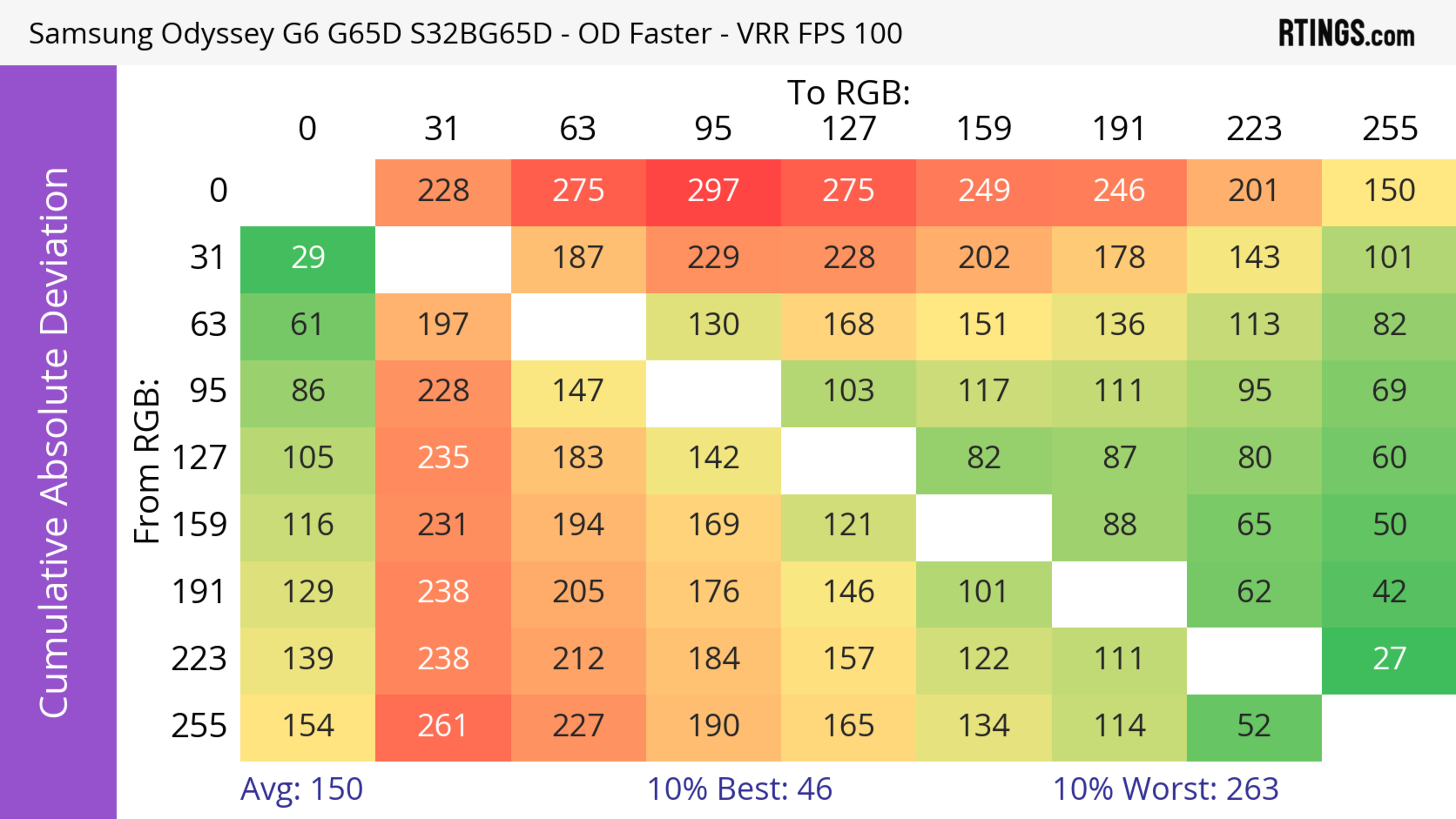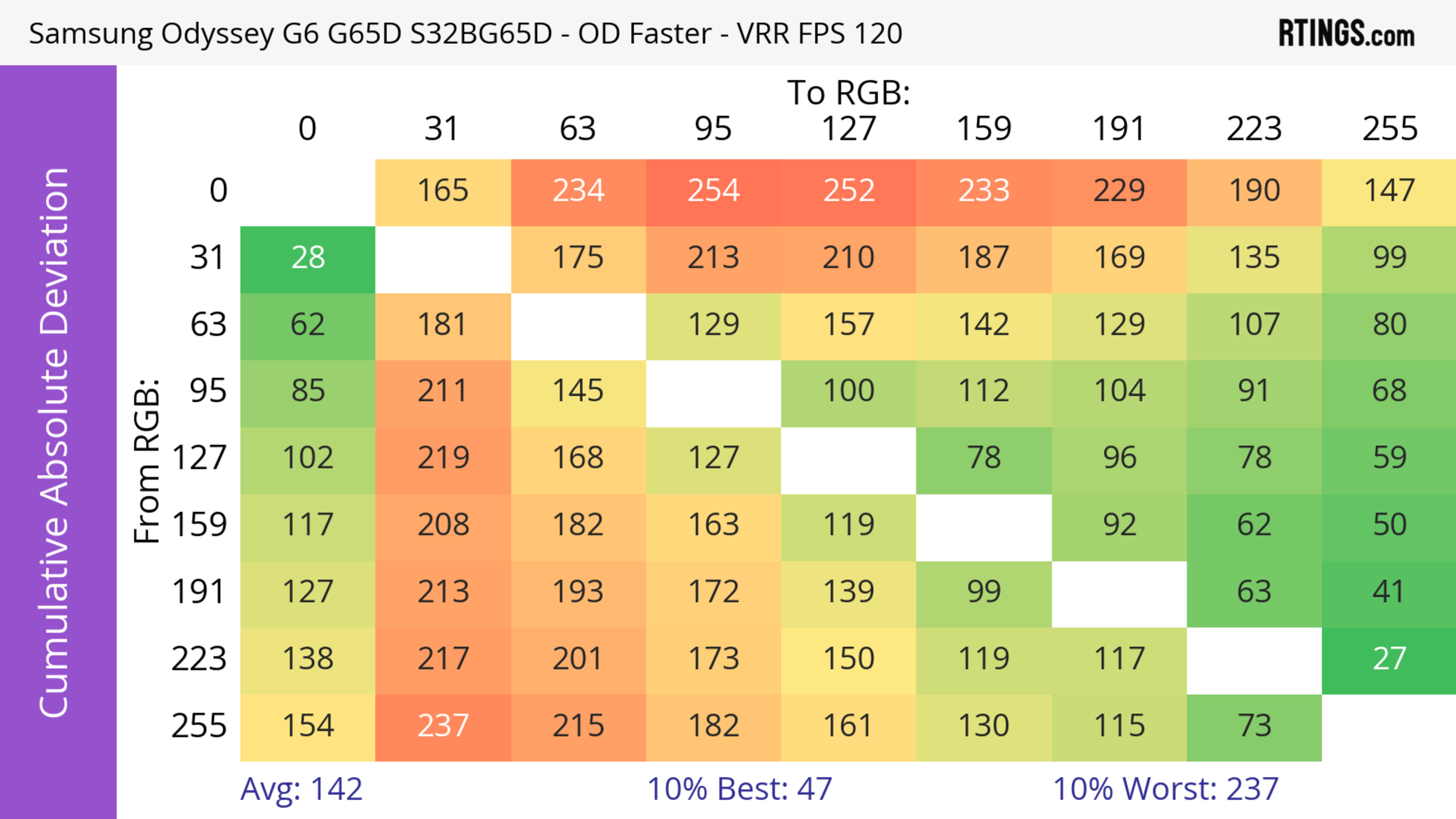 The refresh rate compliance is great. Although its response time isn't fast enough to make full color transitions before the monitor draws the next frame at the max refresh rate, it's much better at lower refresh rates.
