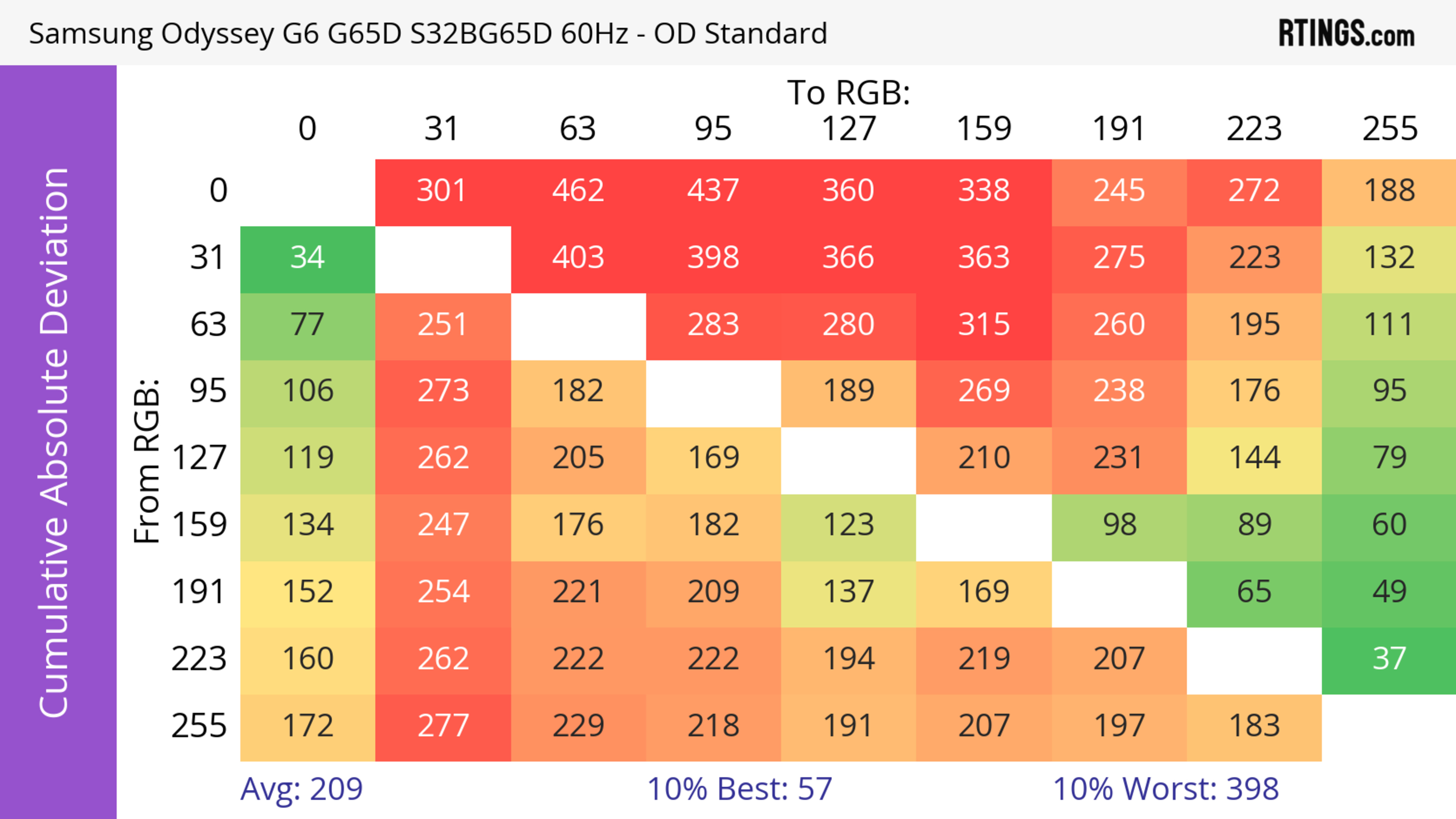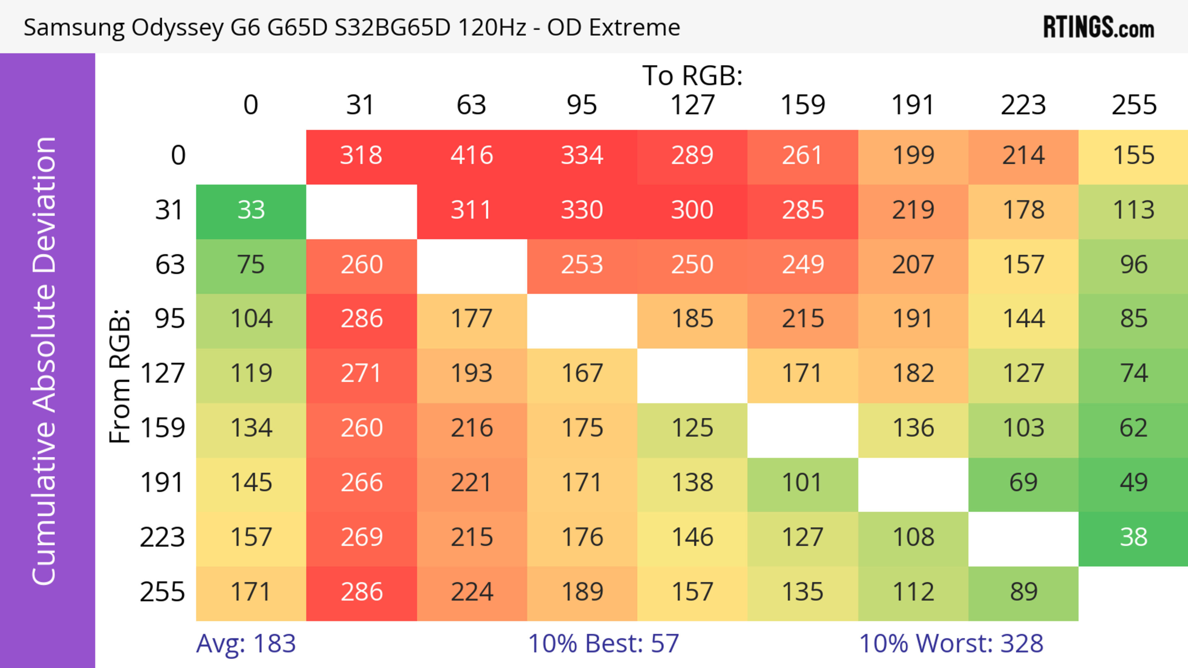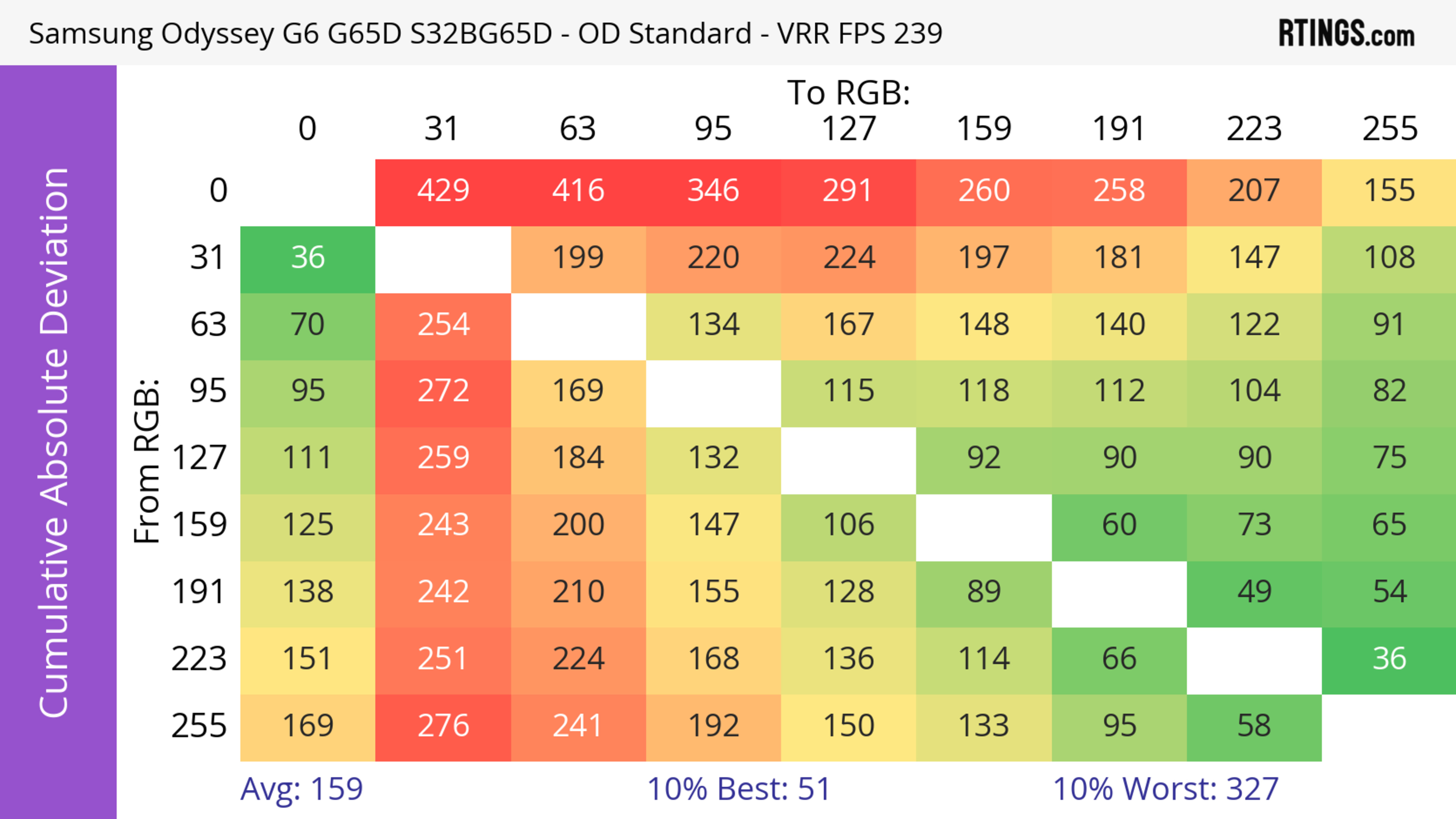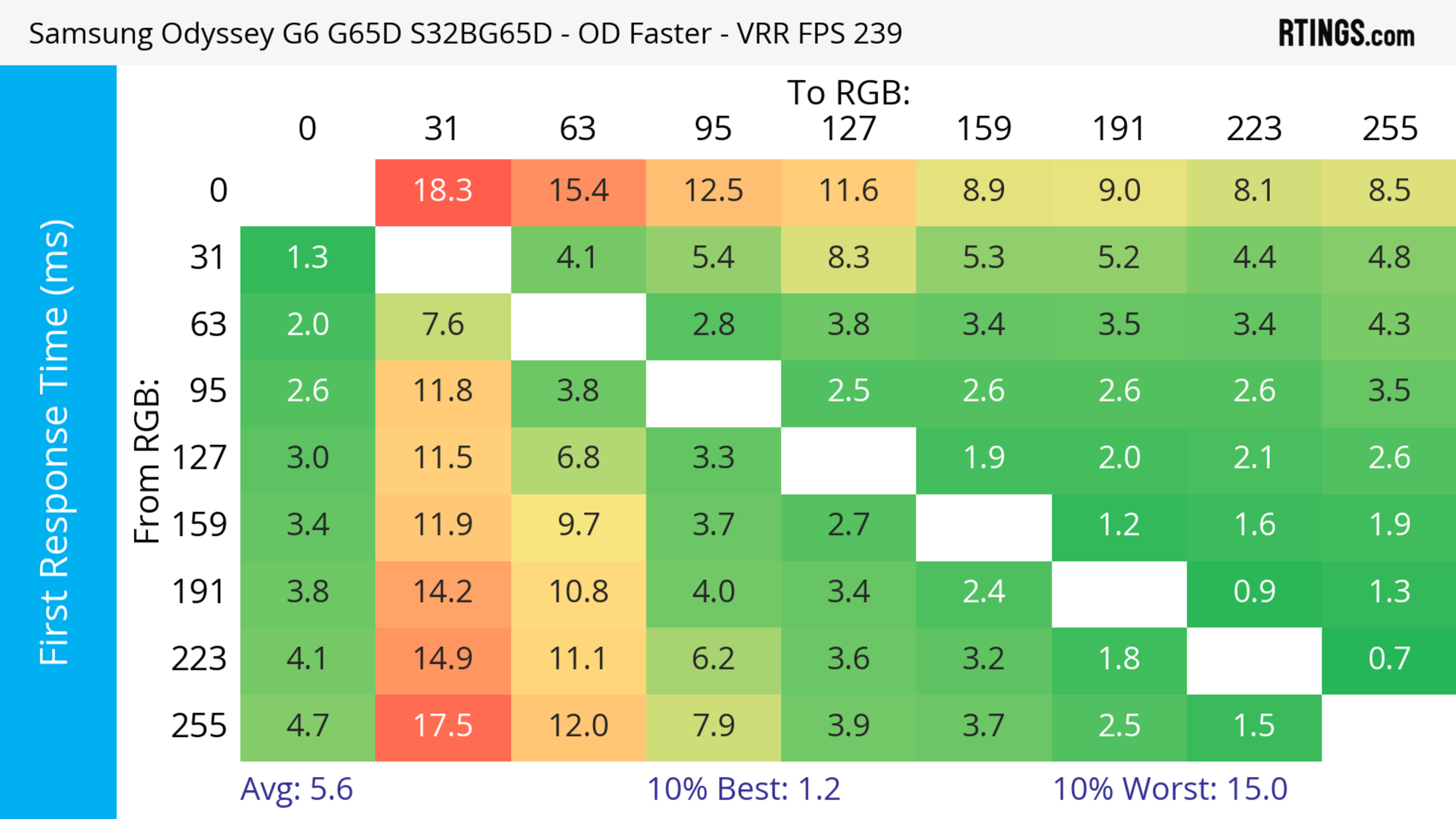 The refresh rate compliance is great. Although its response time isn't fast enough to make full color transitions before the monitor draws the next frame at the max refresh rate, it's much better at lower refresh rates.