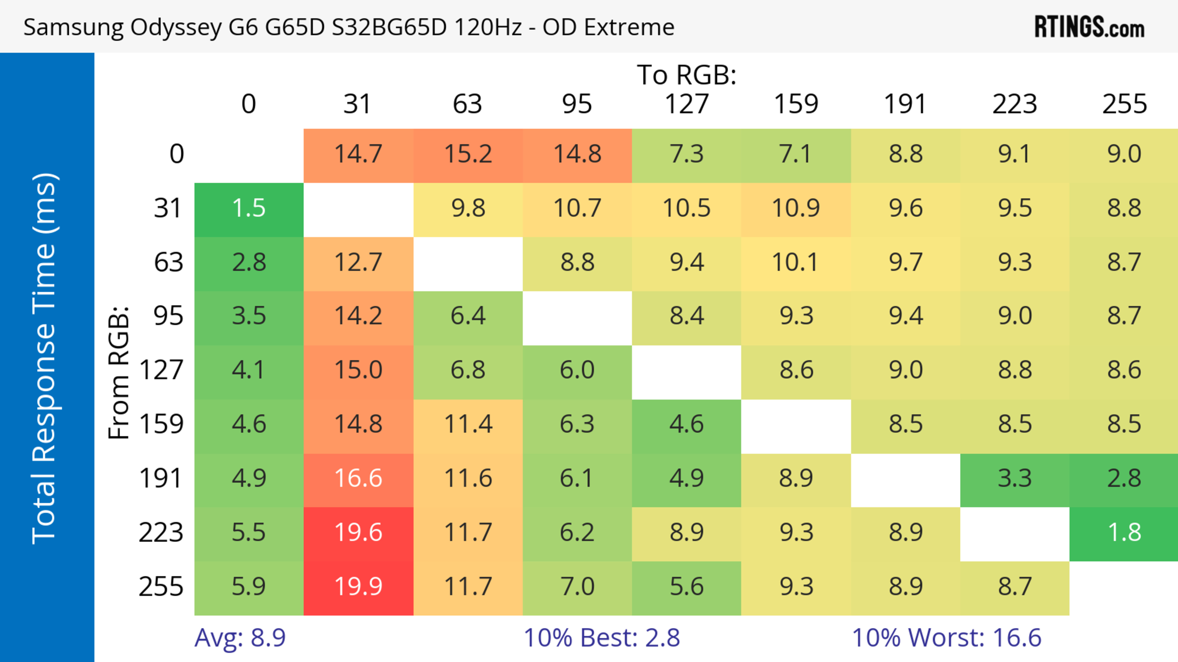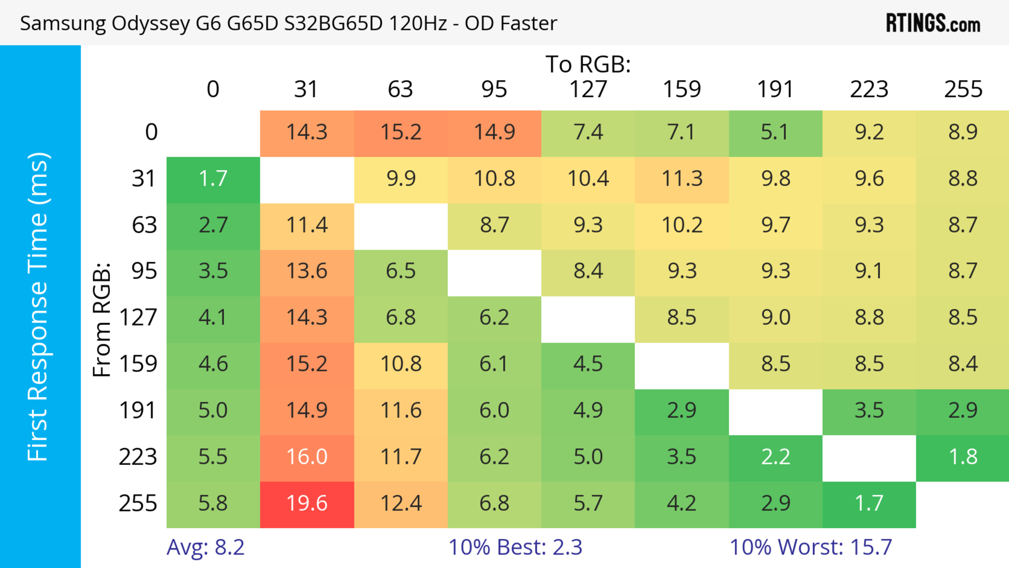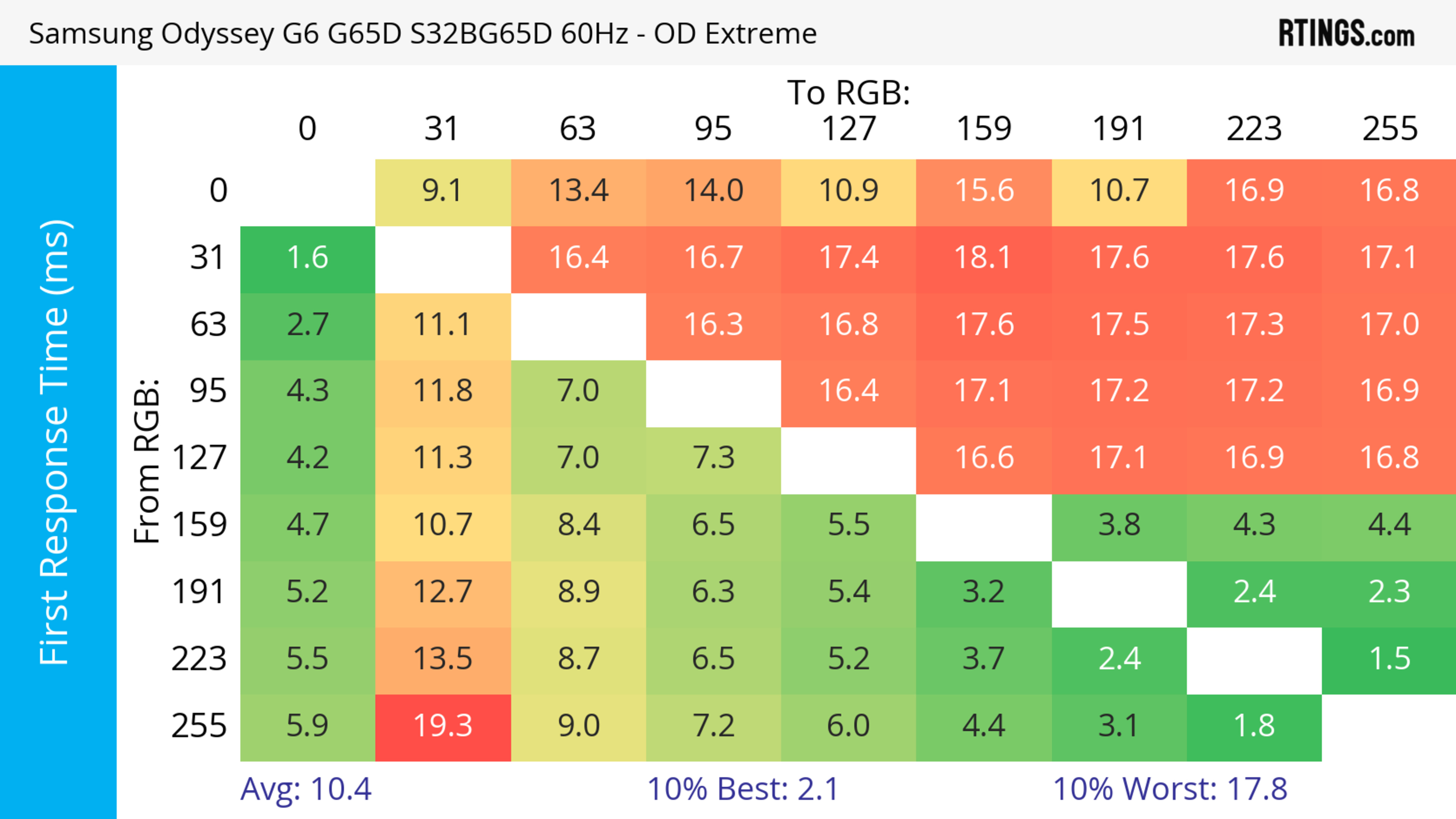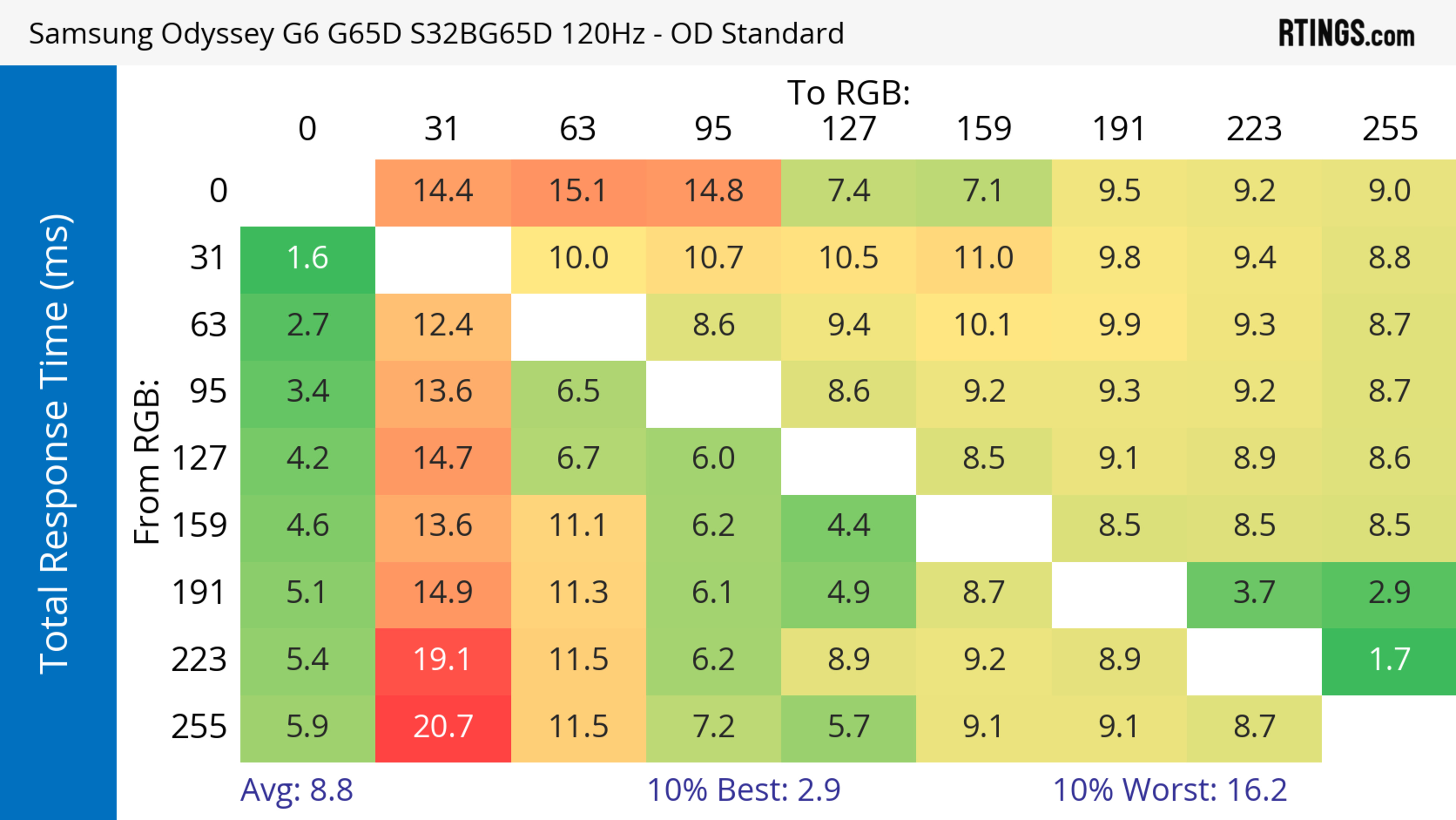 The refresh rate compliance is great. Although its response time isn't fast enough to make full color transitions before the monitor draws the next frame at the max refresh rate, it's much better at lower refresh rates.