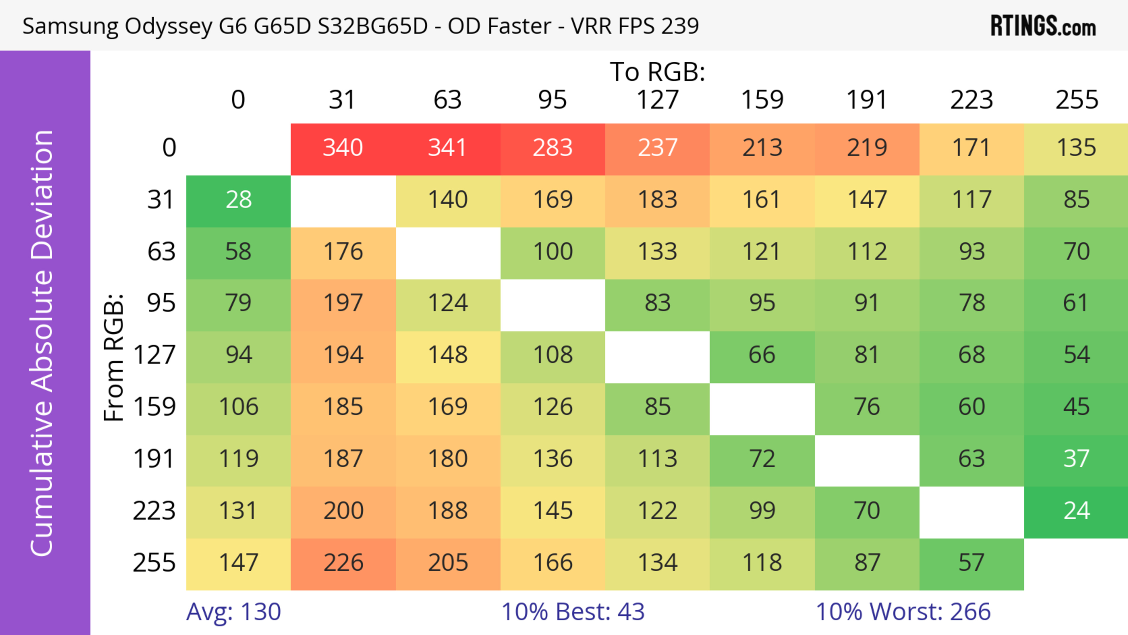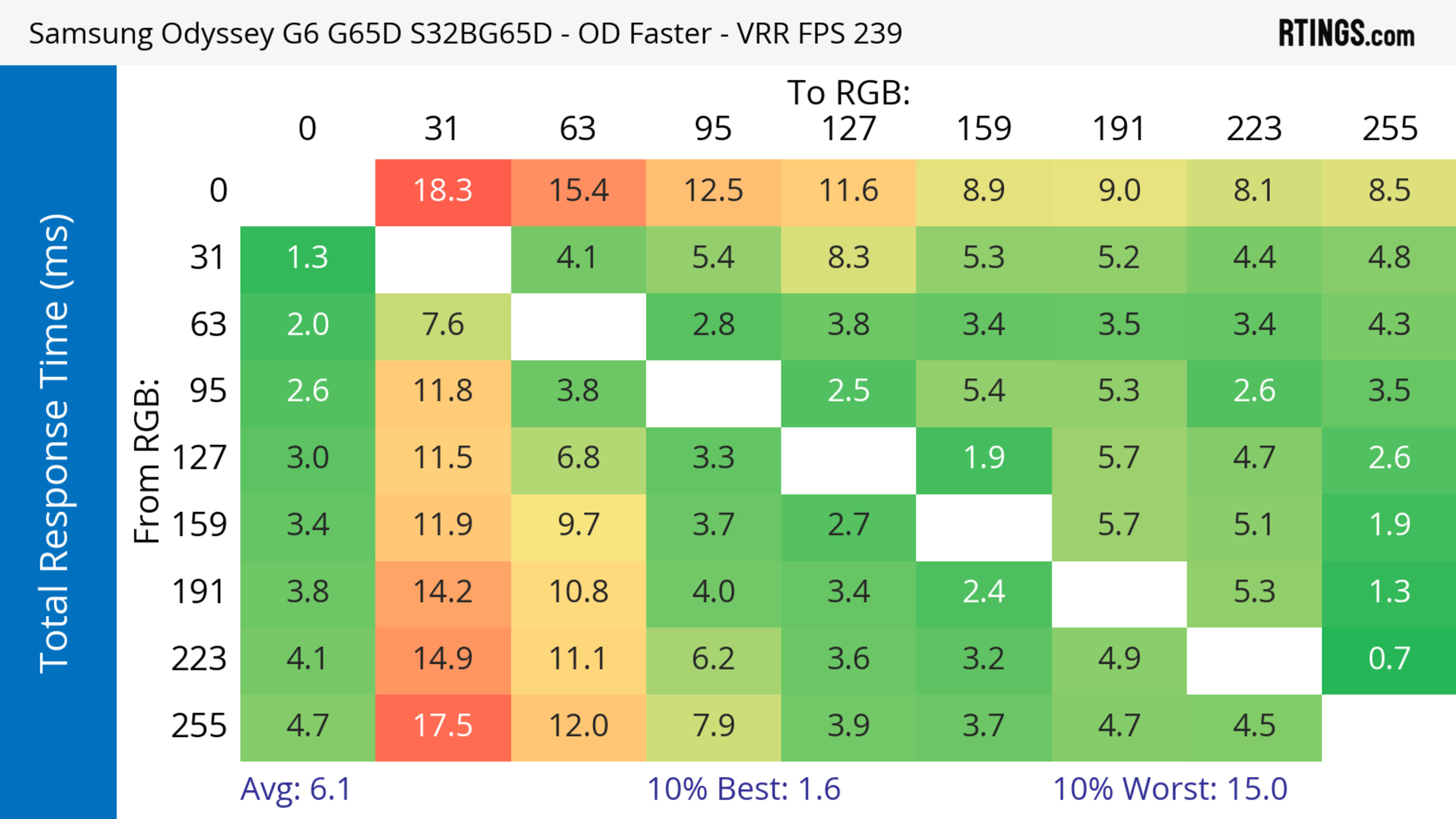 The Samsung Odyssey G65D has a good response time. It performs well across its refresh rate range with VRR enabled. That said, there's still smearing and inverse ghosting, and motion looks worse with lower refresh rate signals.