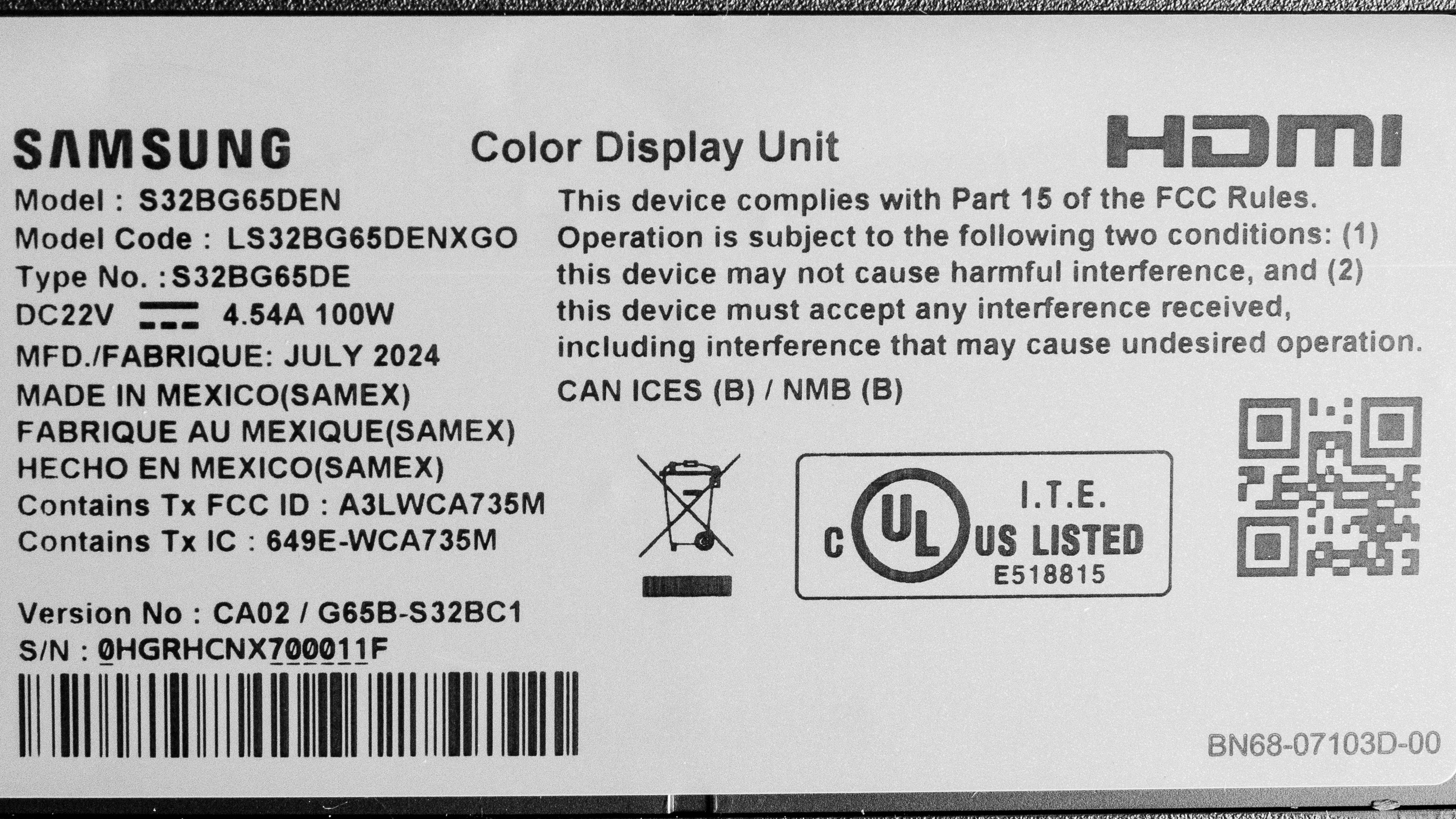 Our unit's label indicates it was manufactured in July 2024. We tested it with firmware 1651.