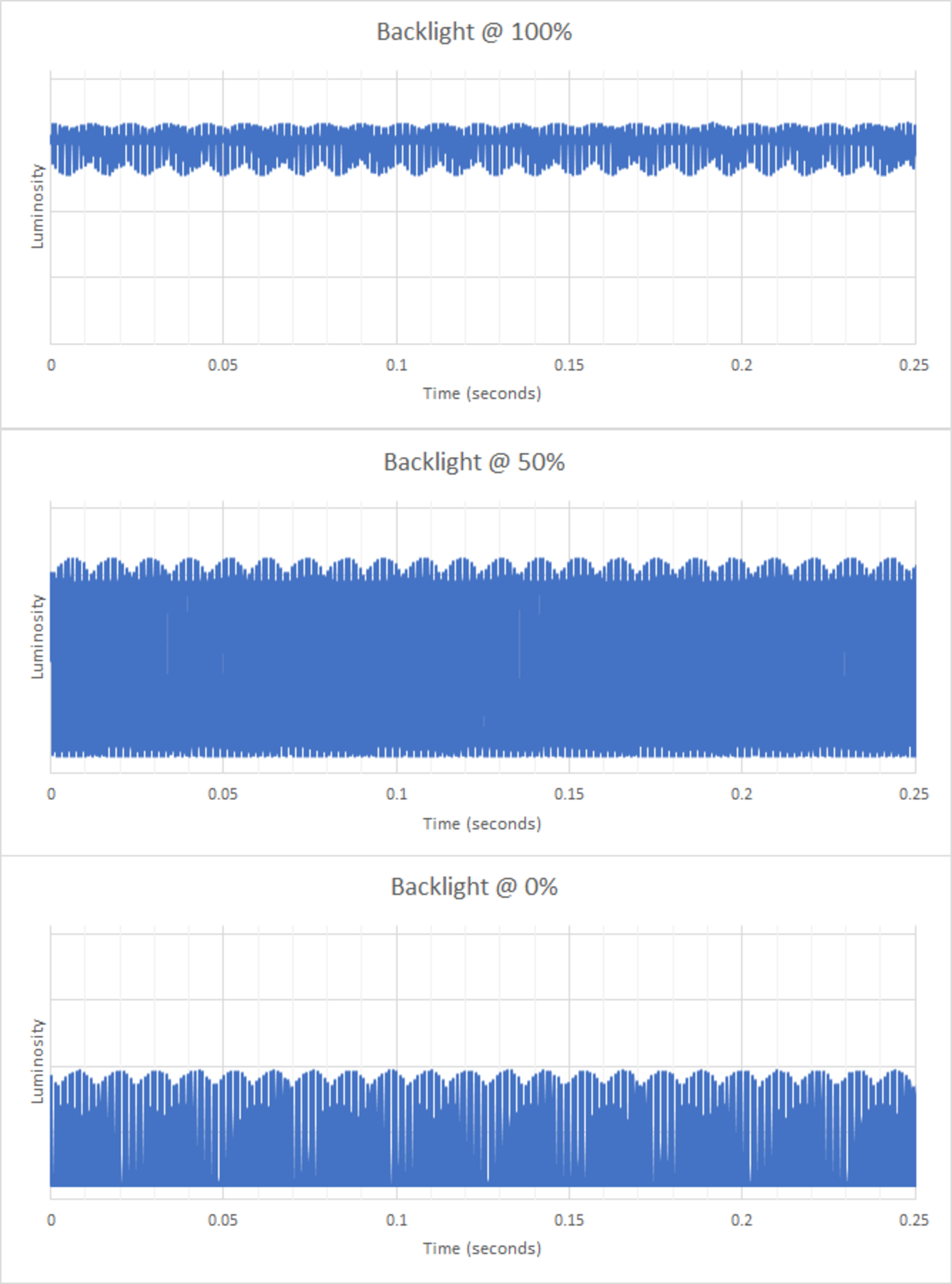 The Samsung Odyssey G70B is completely flicker-free with the local dimming disabled, which helps reduce eye strain. However, the flicker is over 1000Hz when you enable local dimming, and you can see the graph here.