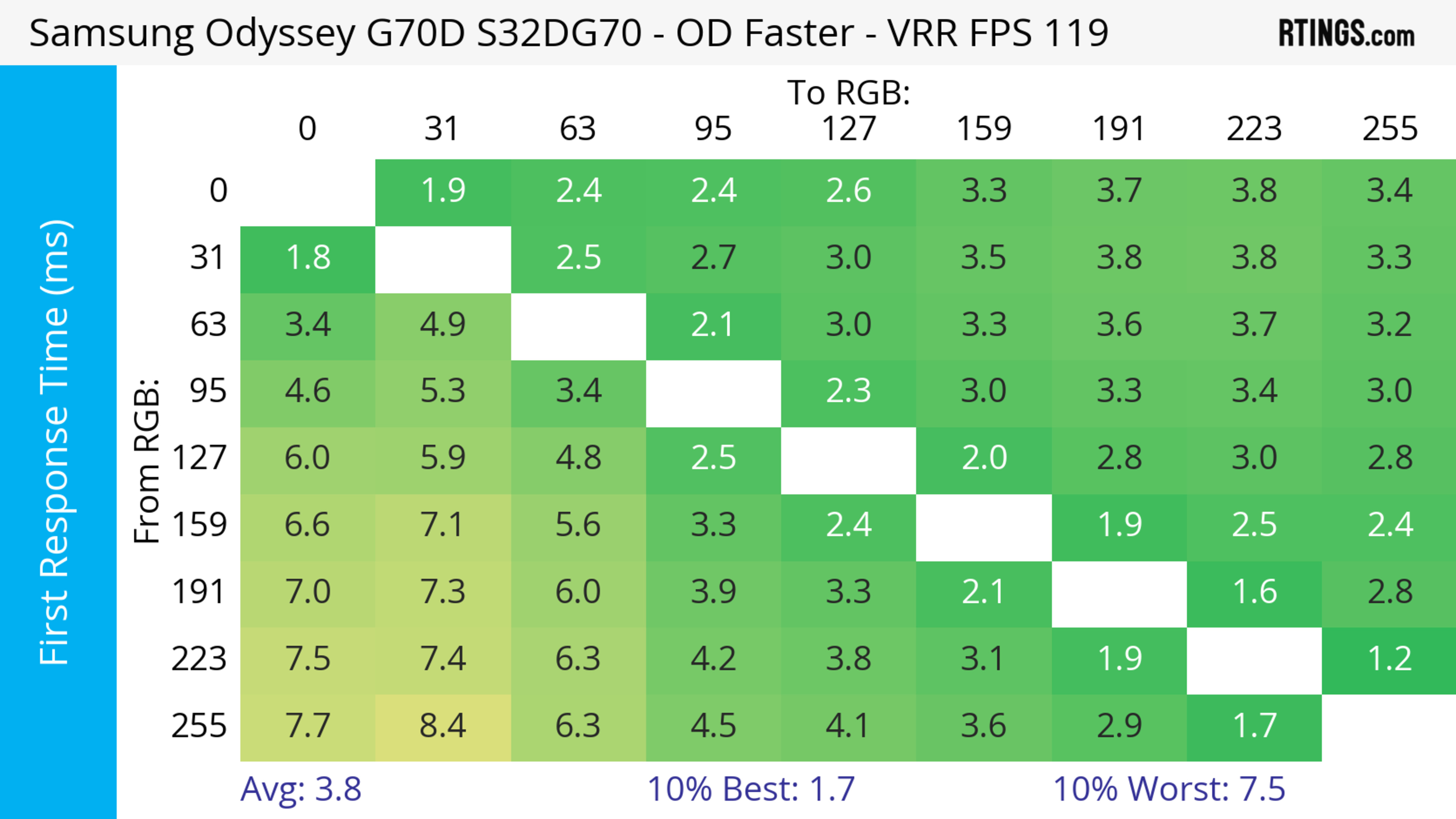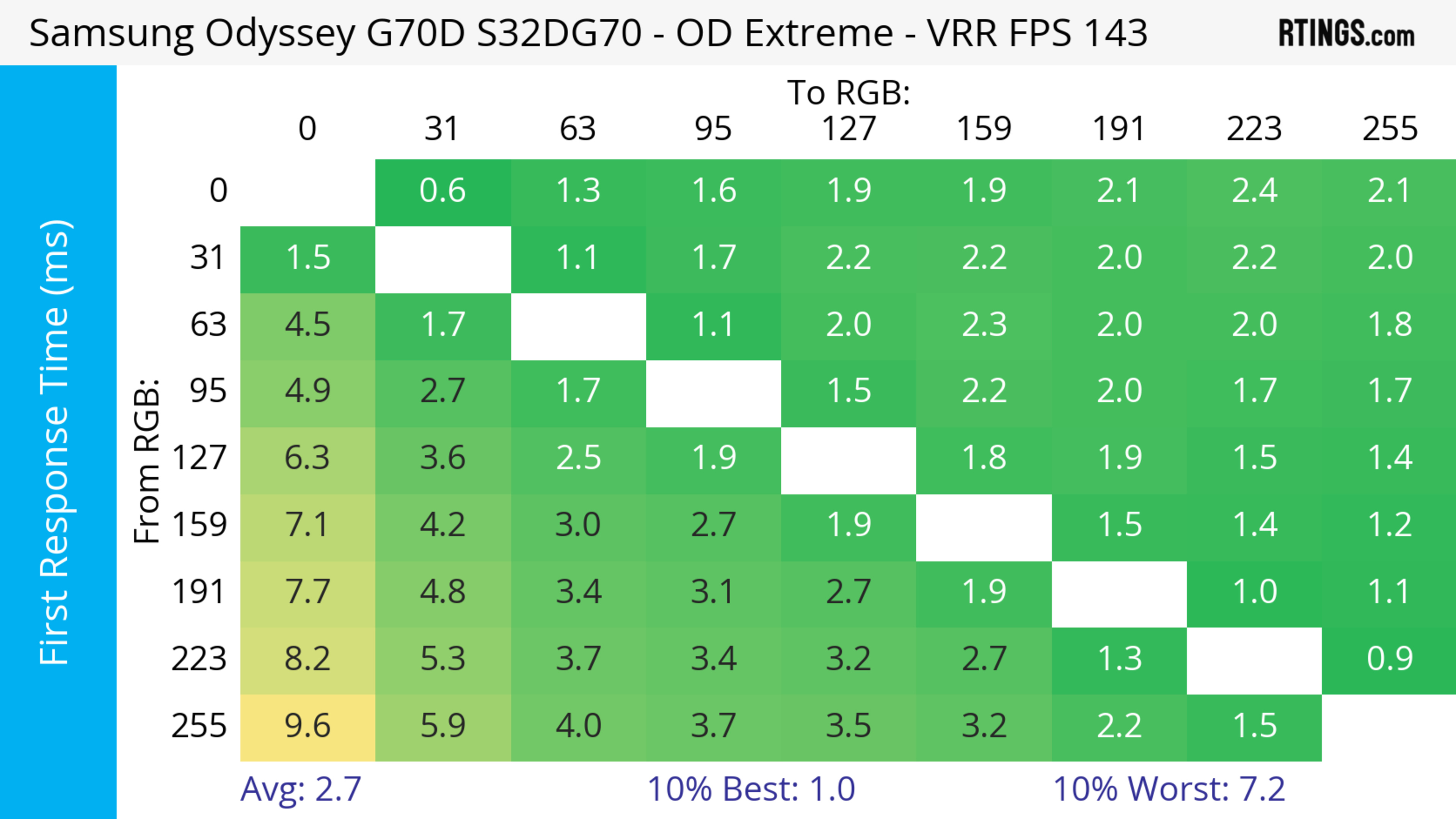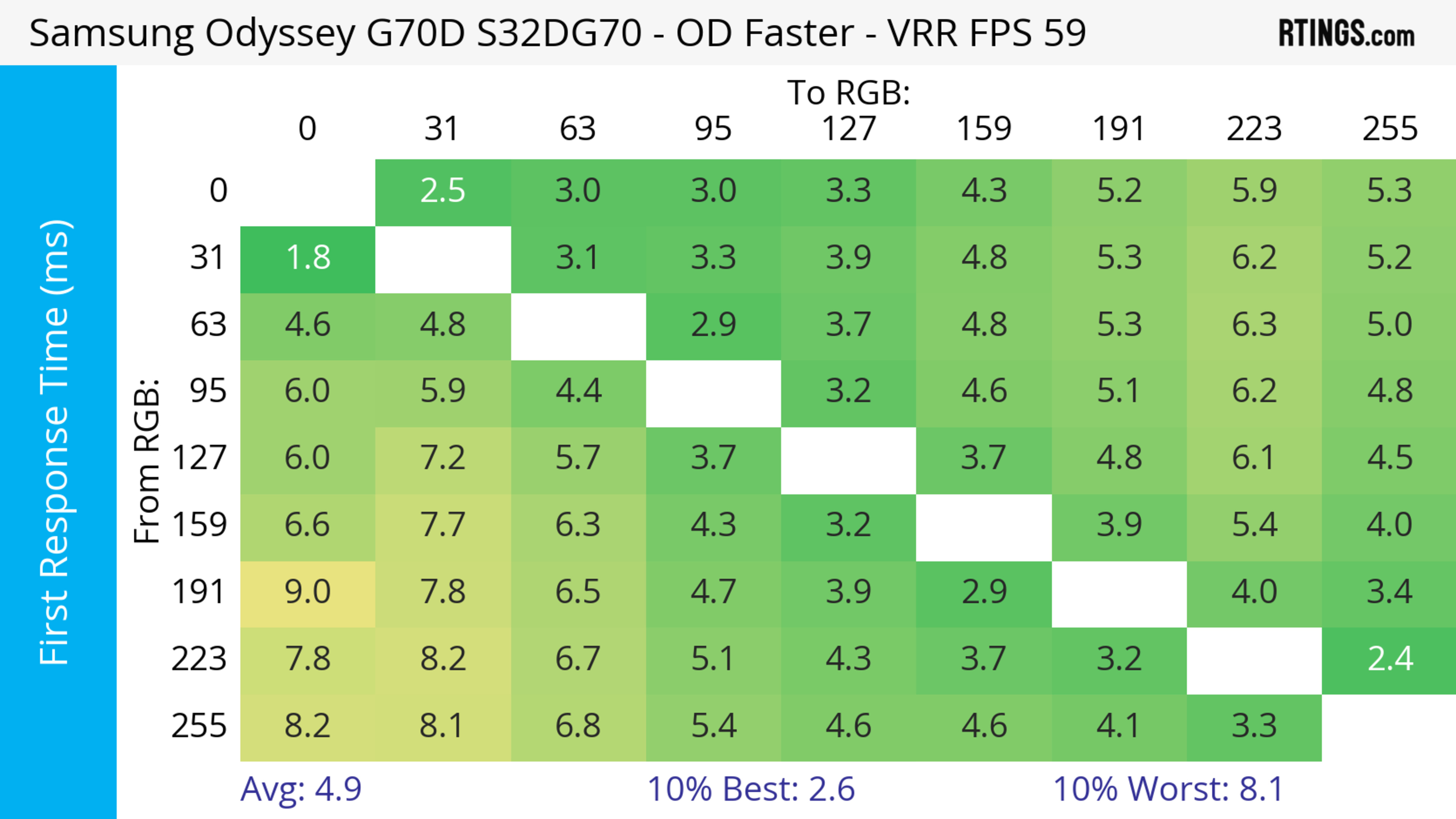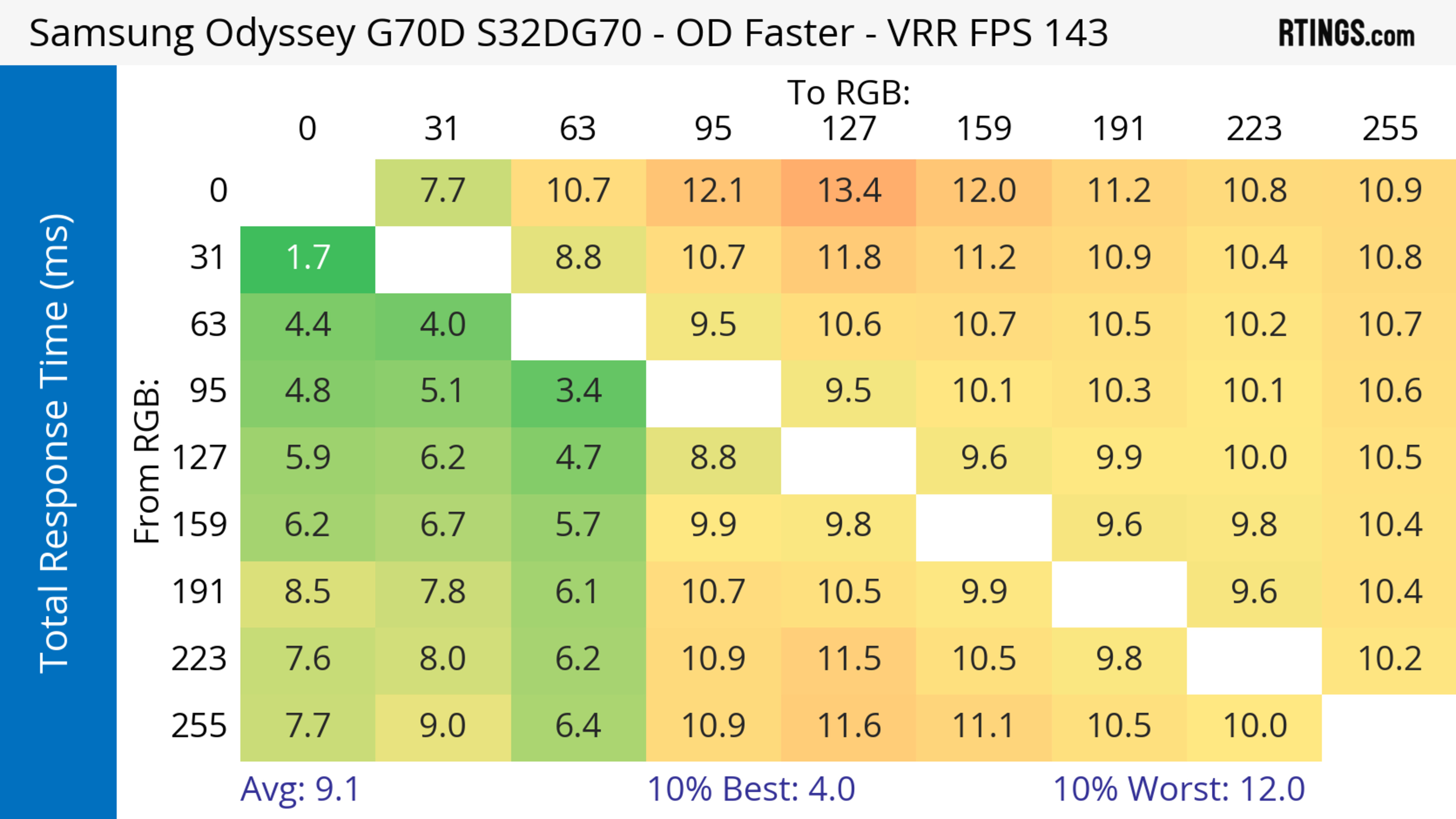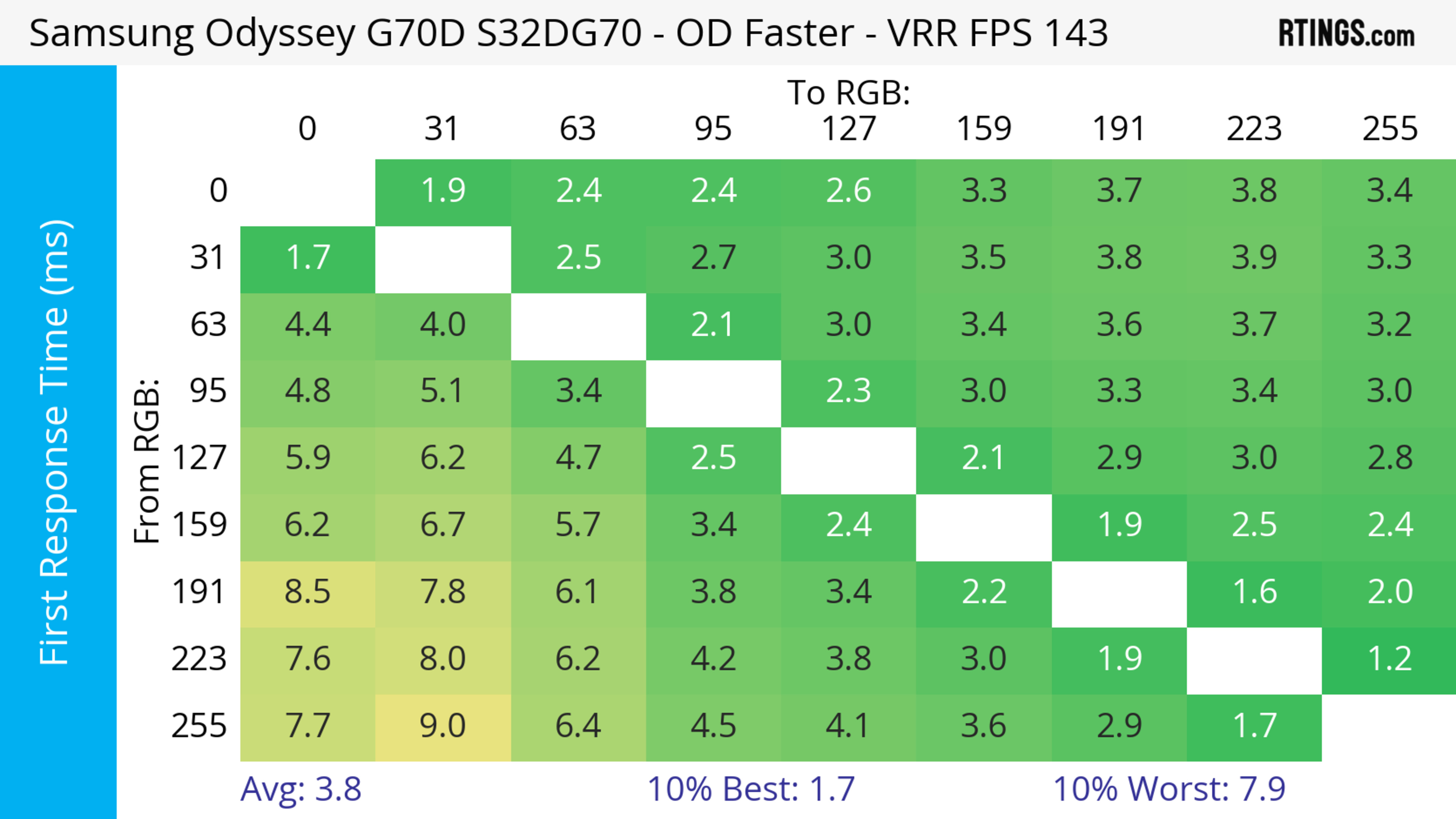 The refresh rate compliance is good. It can't make full color transitions before drawing the next frame, though it gets much closer at lower refresh rates.
