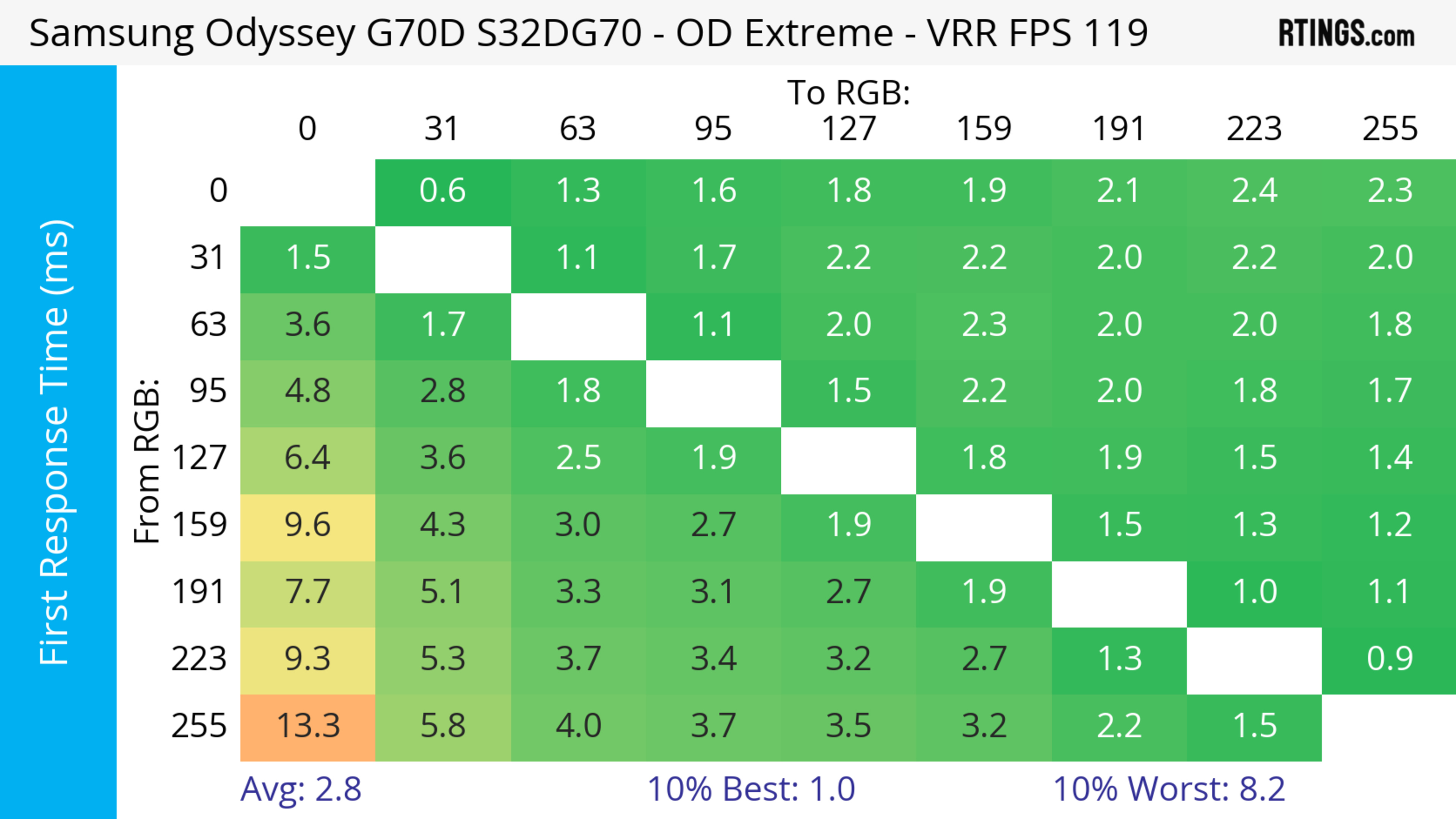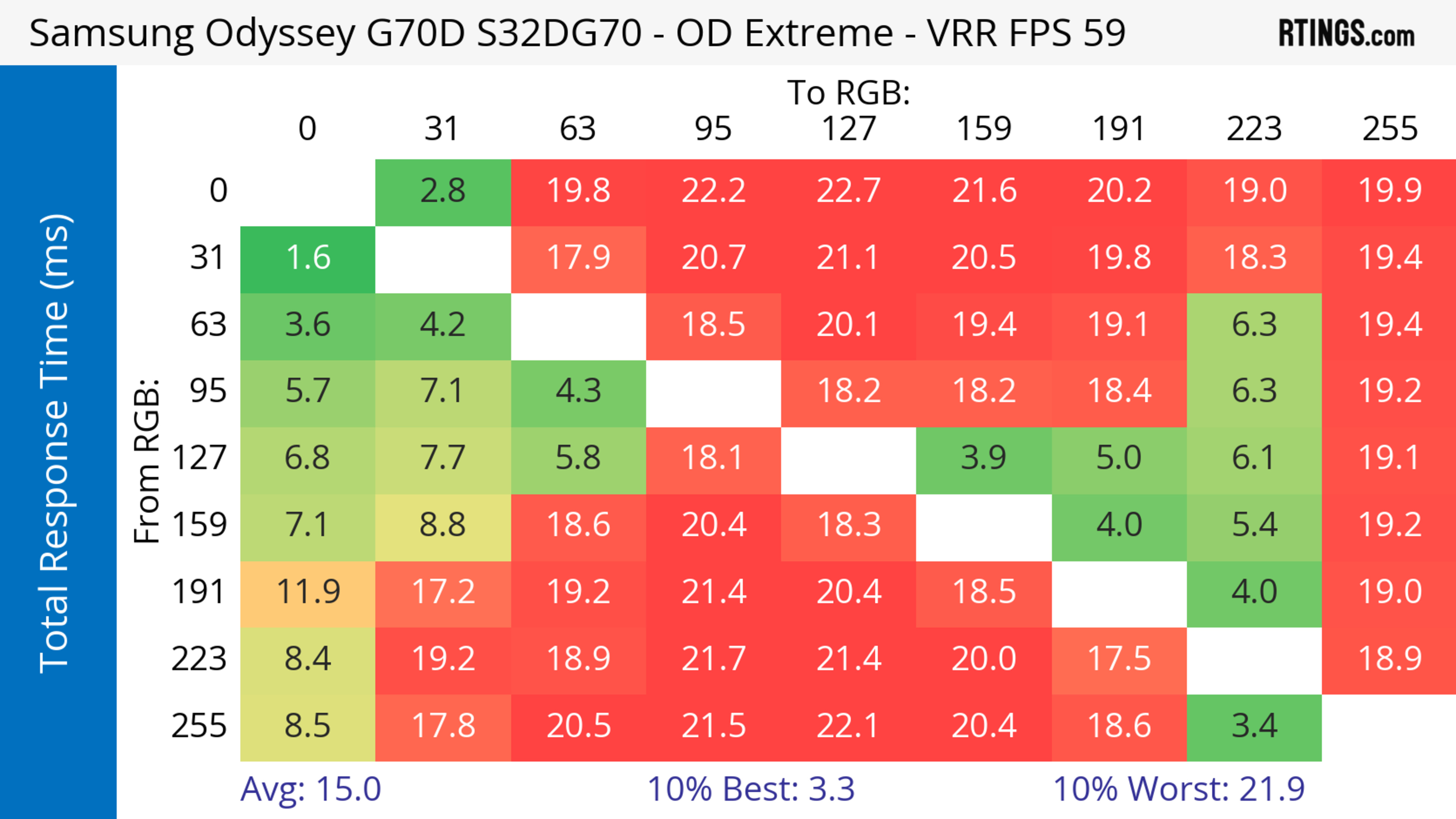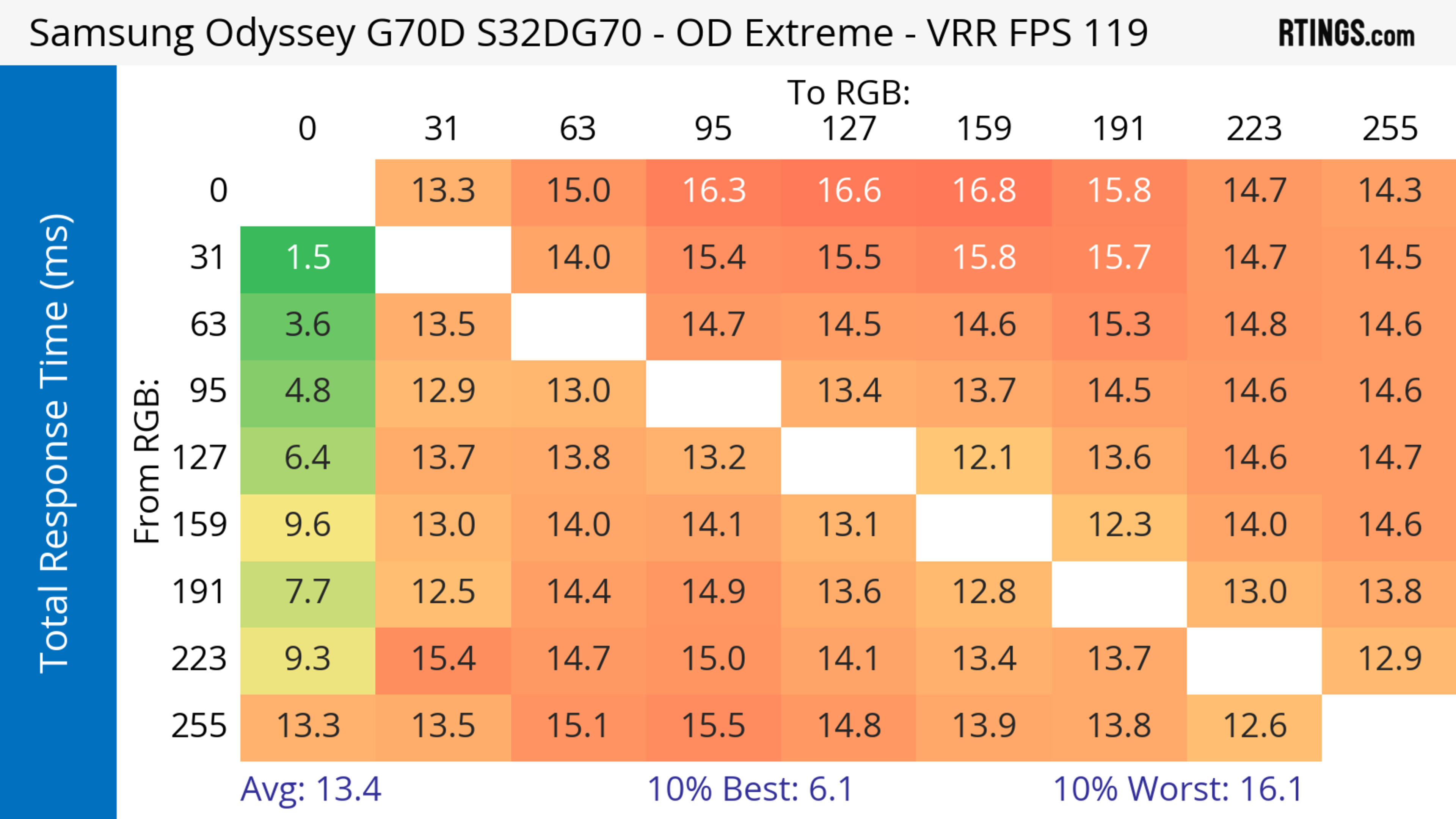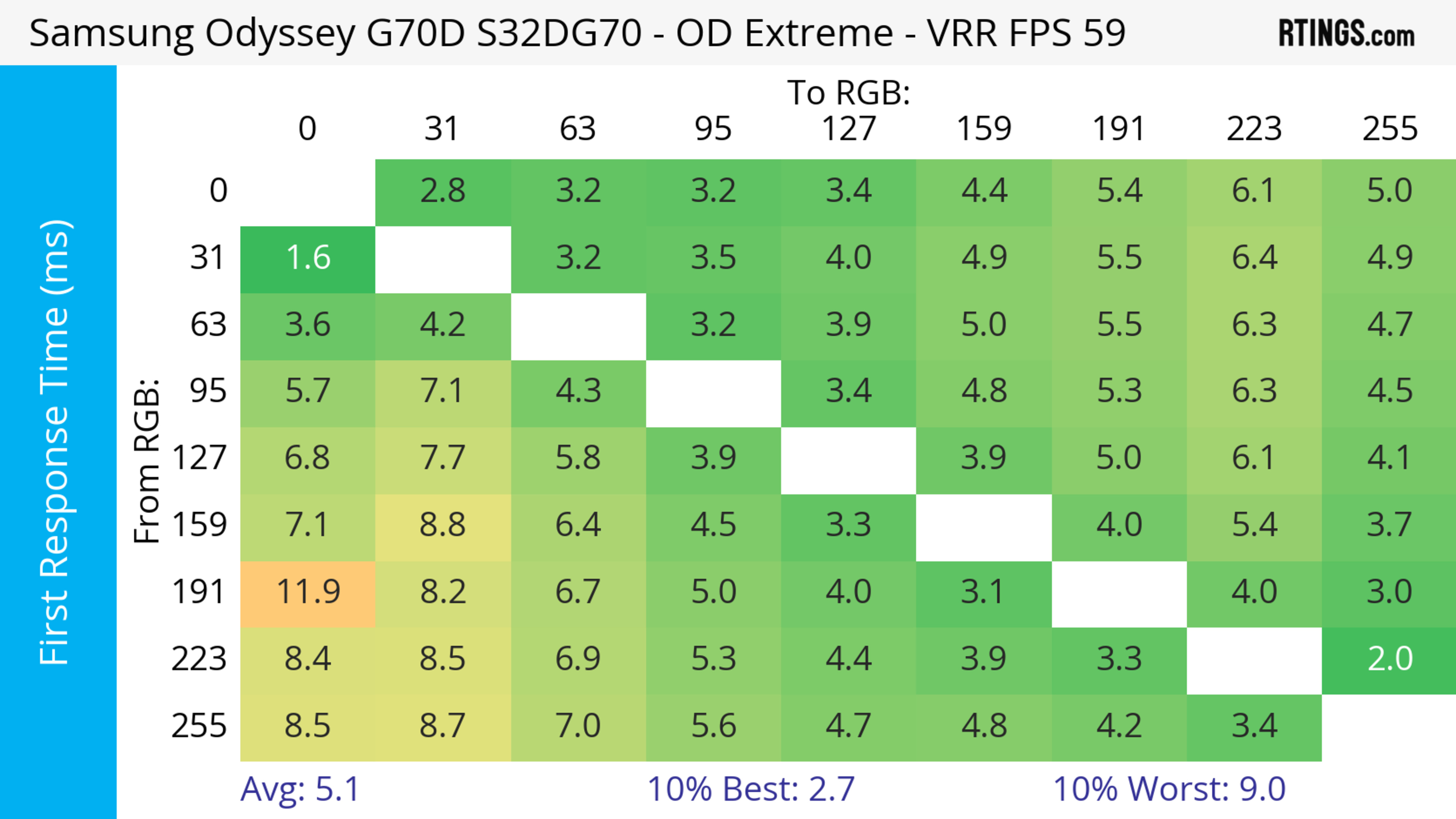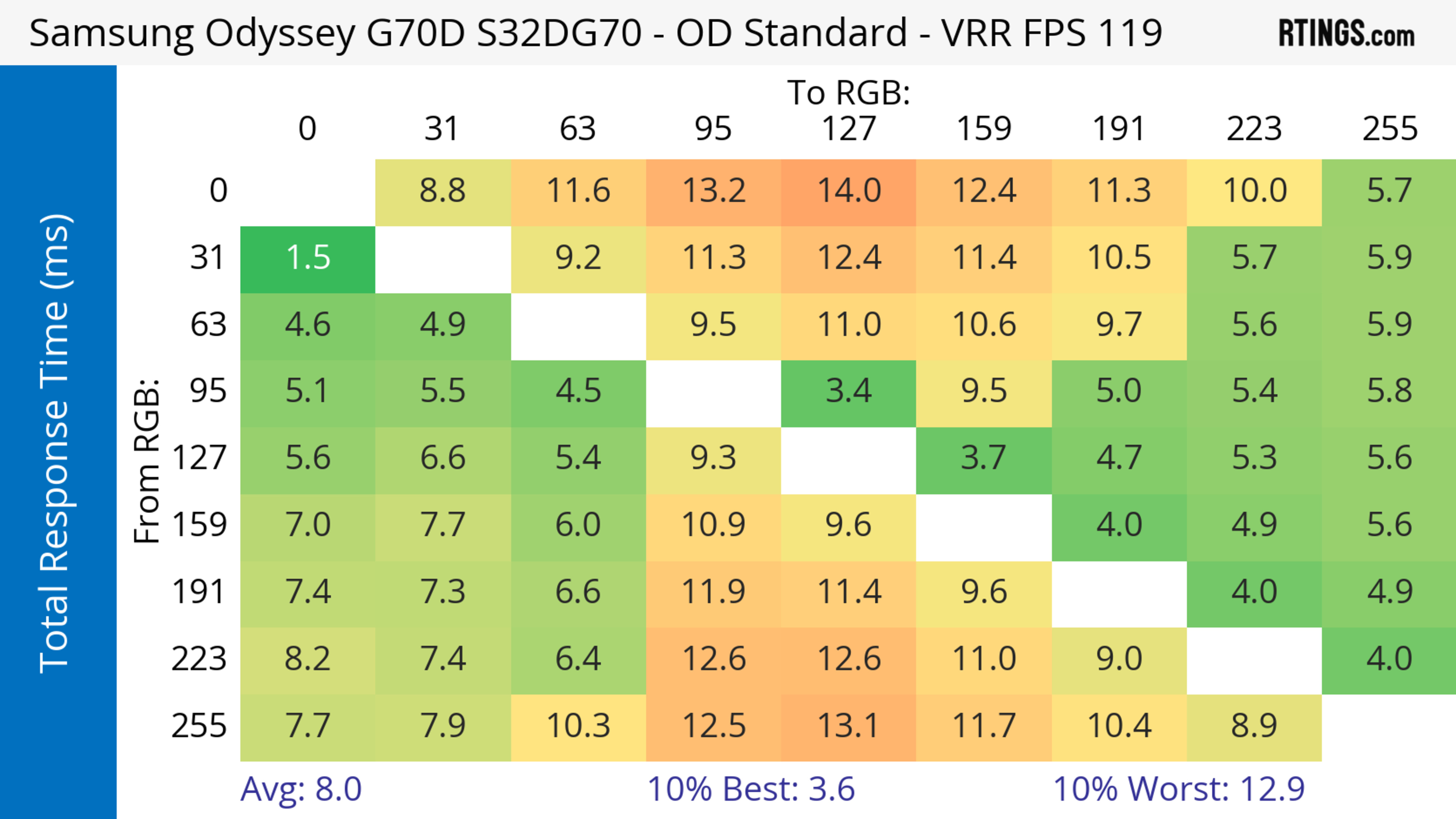 The refresh rate compliance is good. It can't make full color transitions before drawing the next frame, though it gets much closer at lower refresh rates.