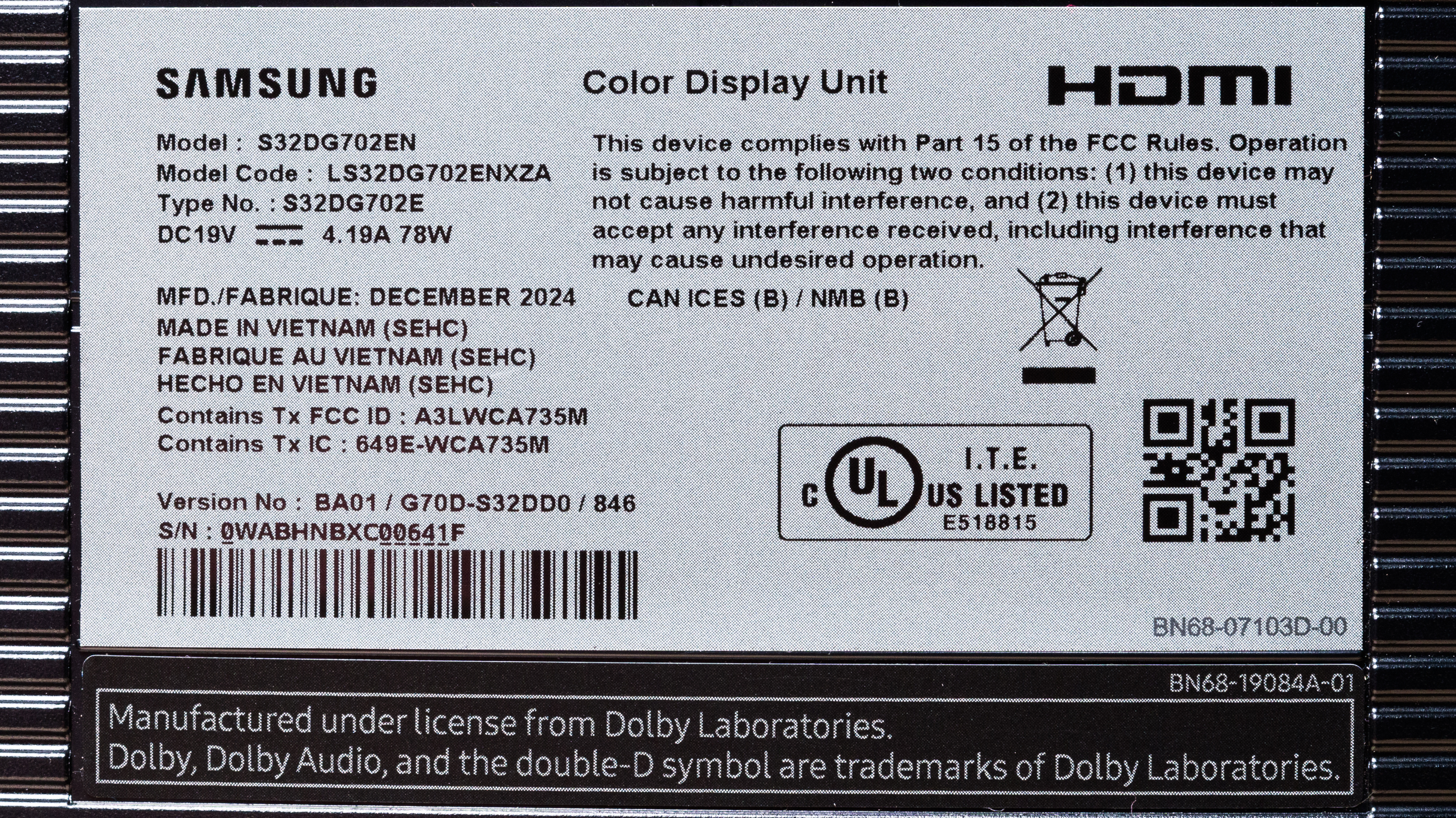 We tested the 32-inch Samsung Odyssey G70D S32DG70, though the full model code may vary between regions. Samsung also offers the G70D in a 27-inch size, the S27DG70, but that version performs differently. You can see the main differences between these monitors below. These results are only valid for this model.